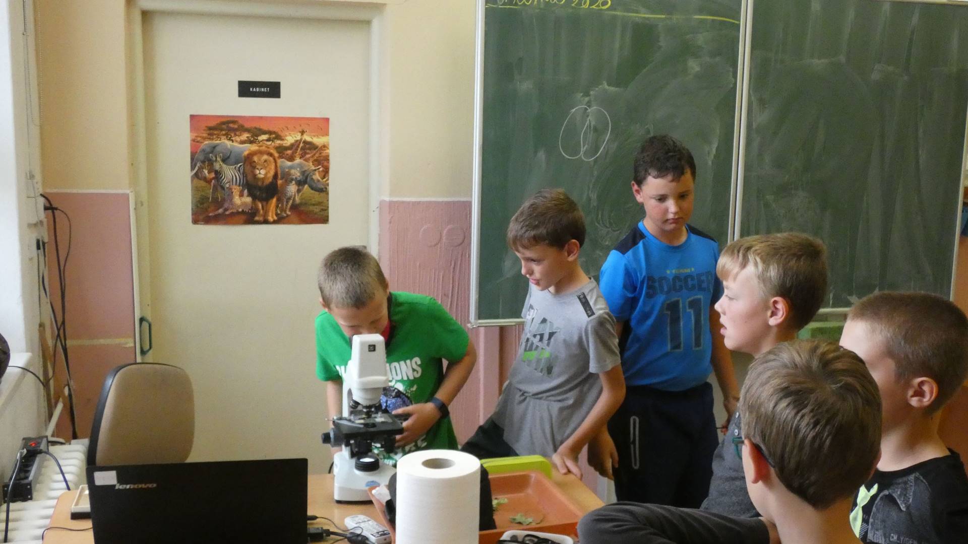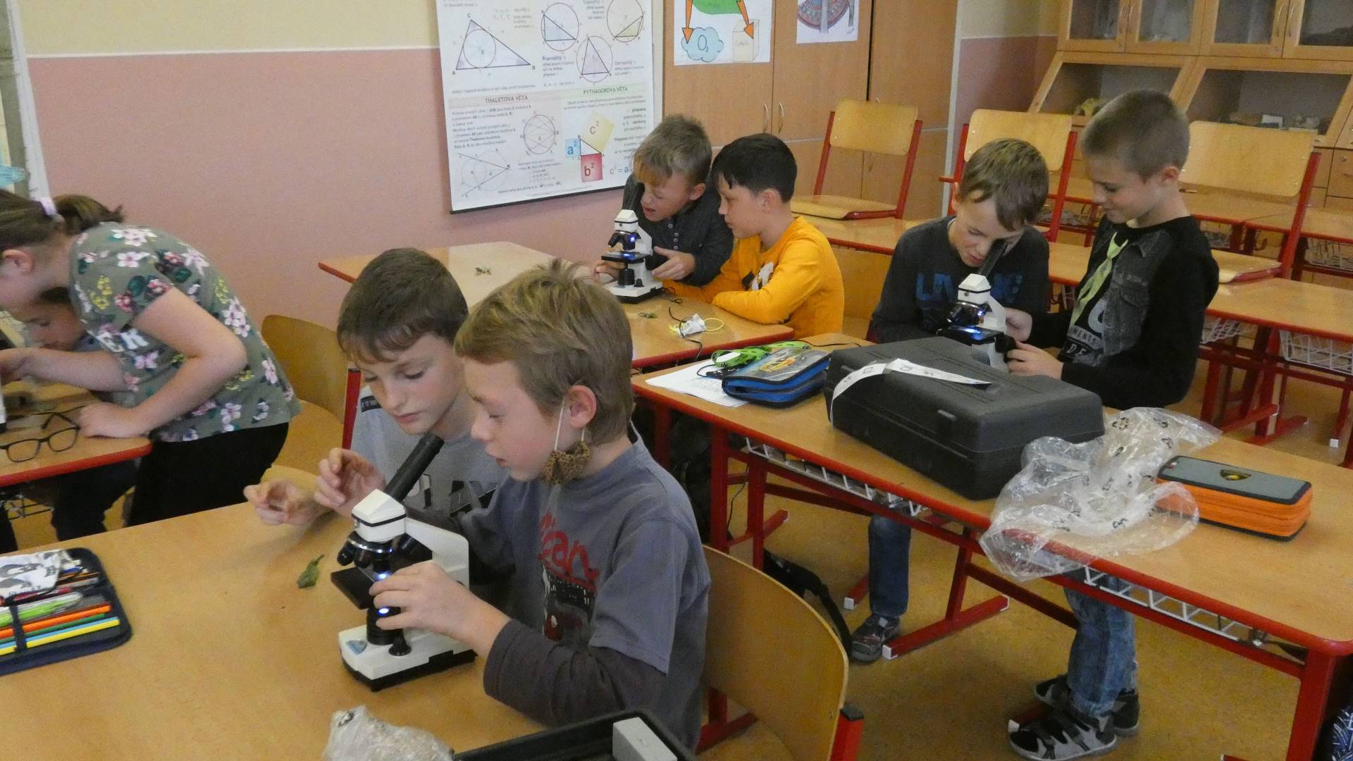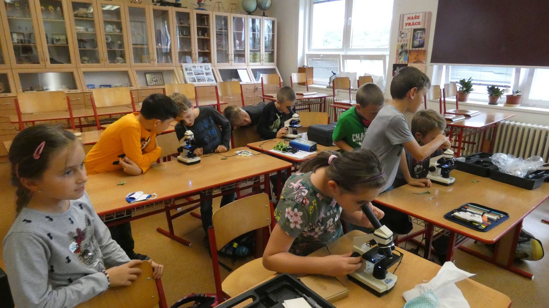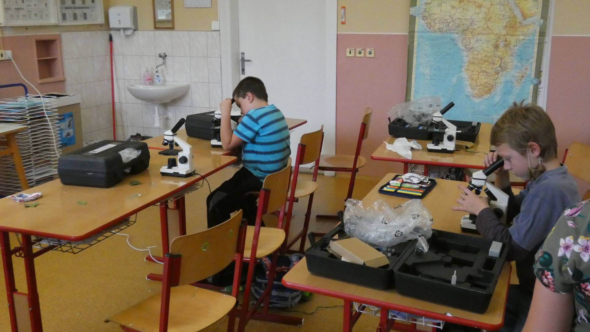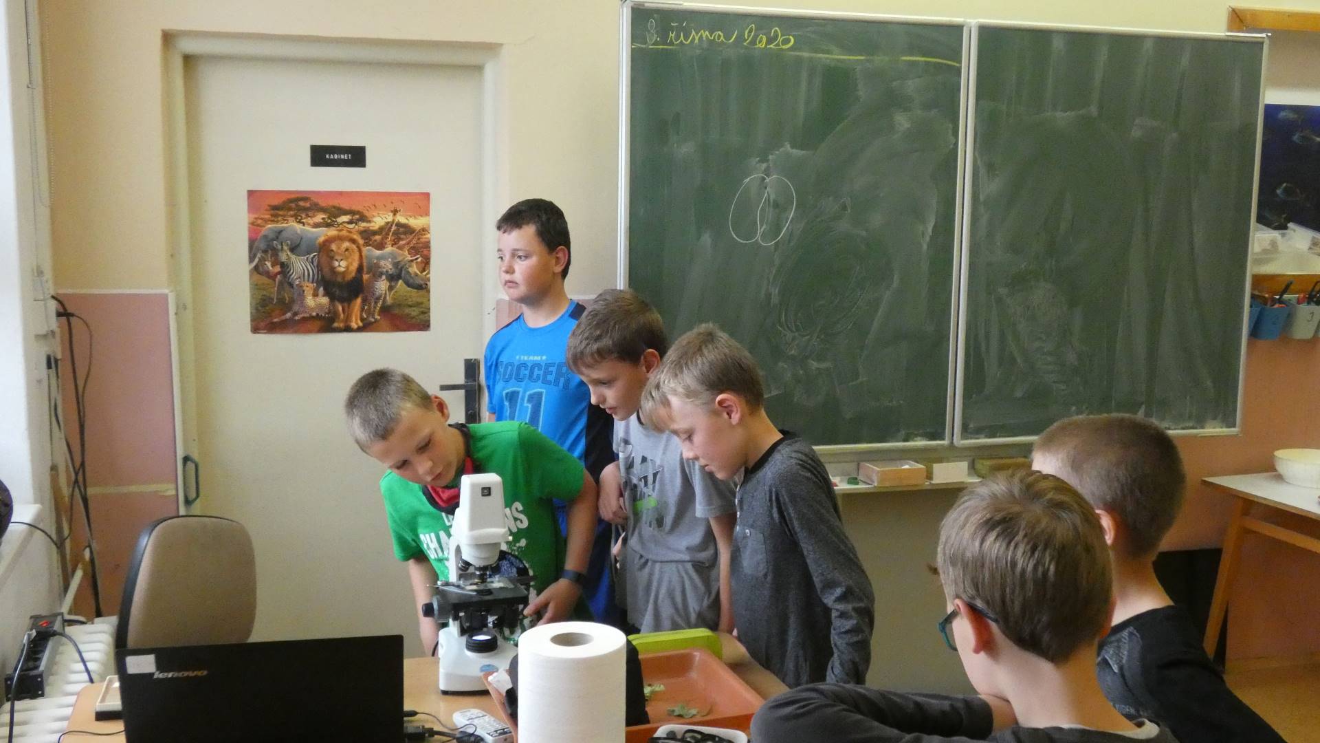 Vyzkoušeli jsme, jak se dělá otisk průduchu listu, prozkoumali jsme ho pod mikroskopem. Pak jsme probrali velkou školní sbírku trvalých preparátů a mikroskopovali a mikroskopovali.
