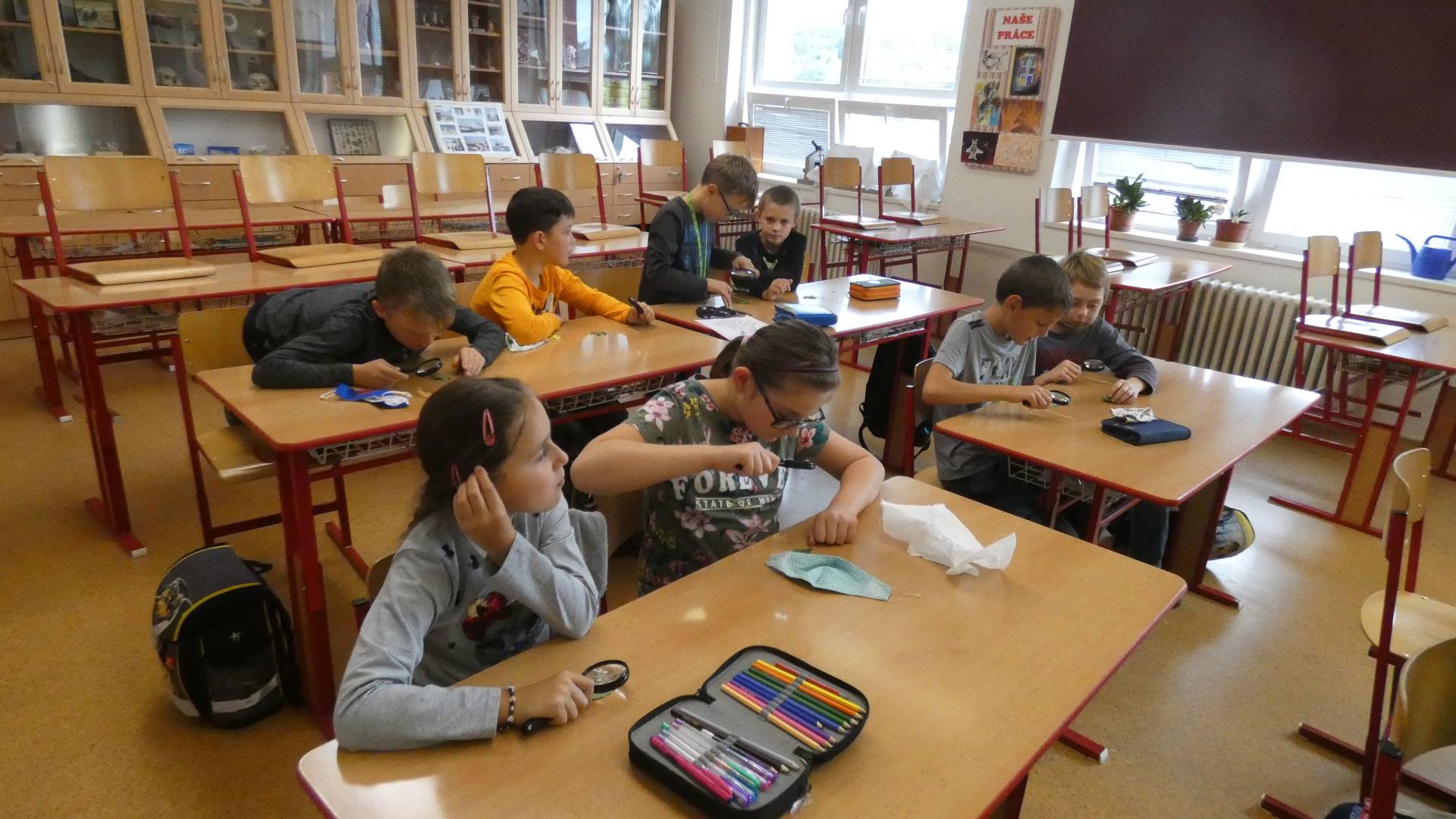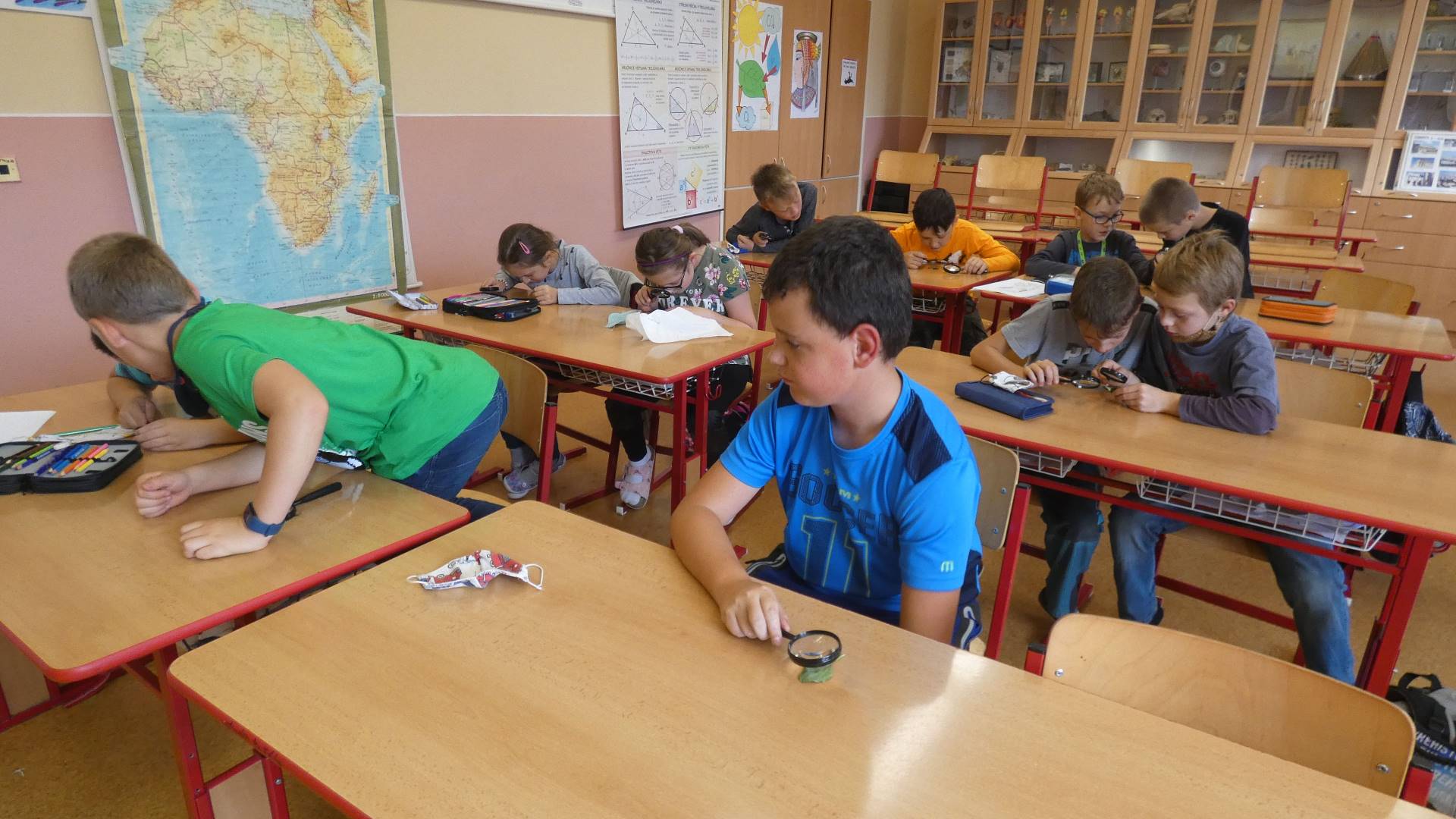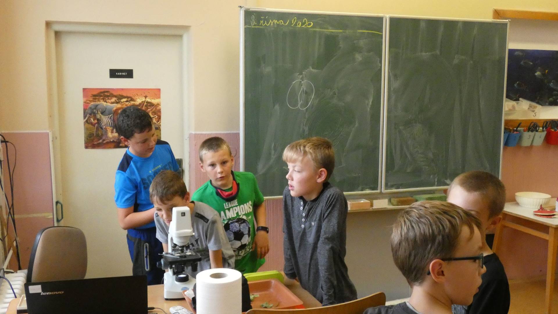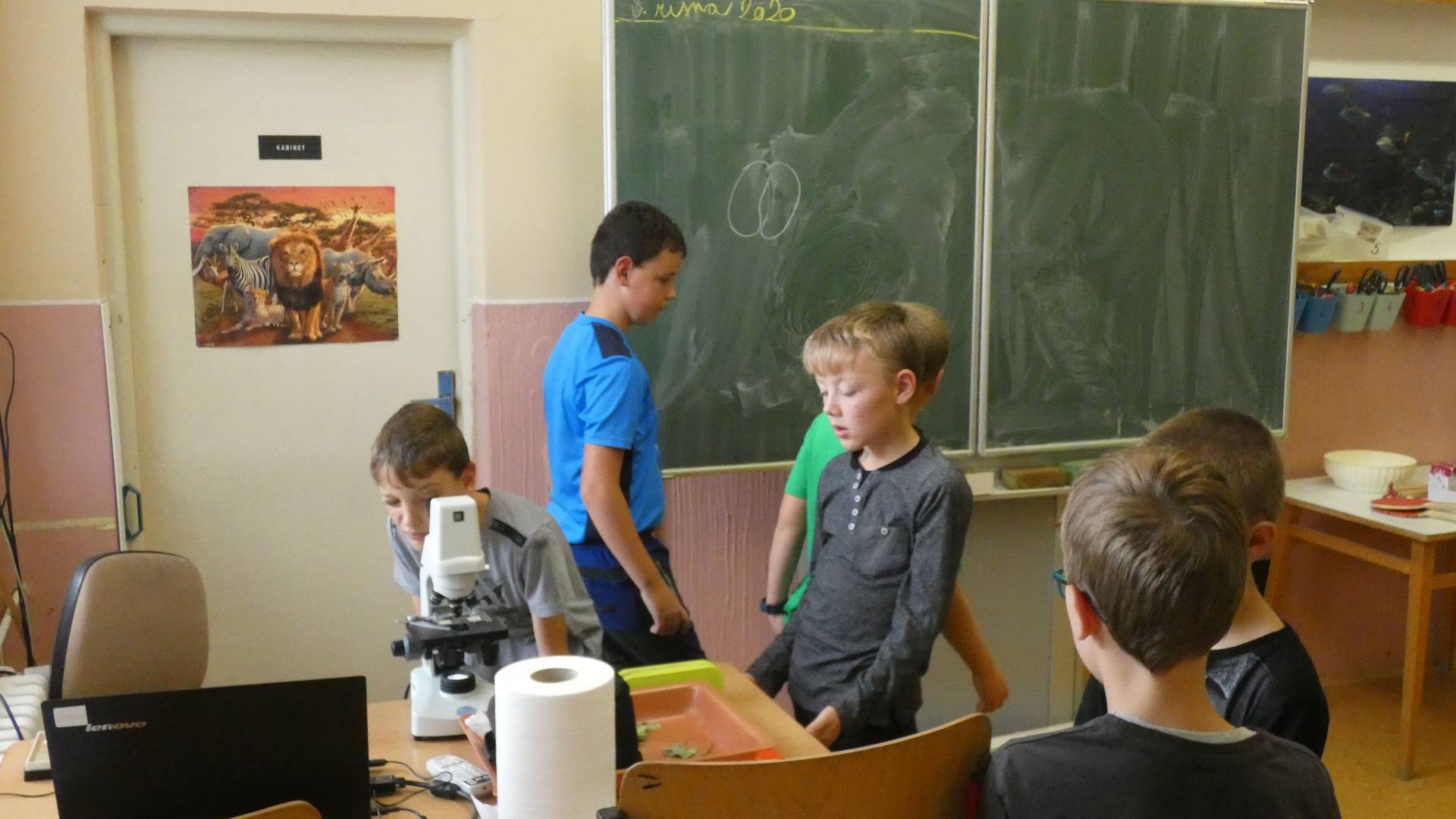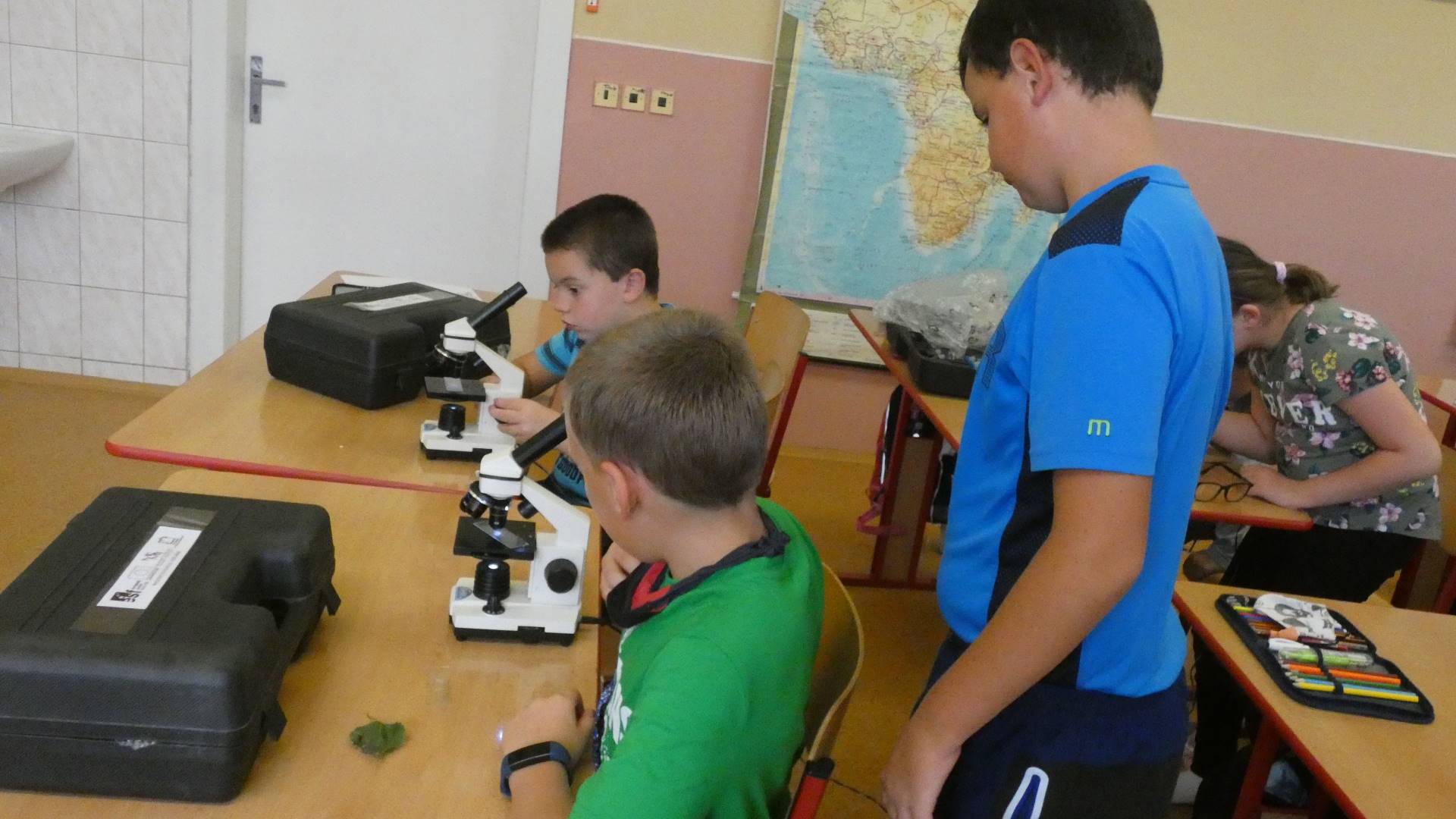 Vyzkoušeli jsme, jak se dělá otisk průduchu listu, prozkoumali jsme ho pod mikroskopem. Pak jsme probrali velkou školní sbírku trvalých preparátů a mikroskopovali a mikroskopovali.