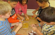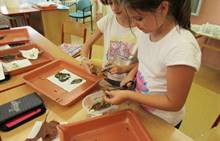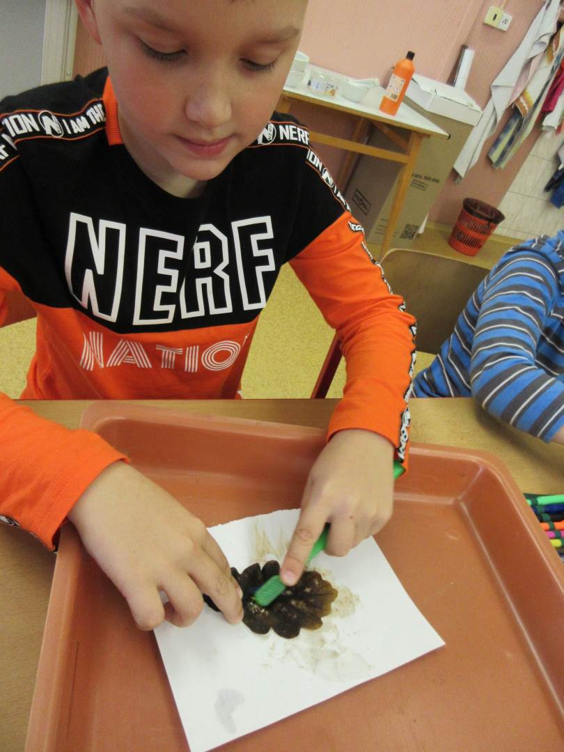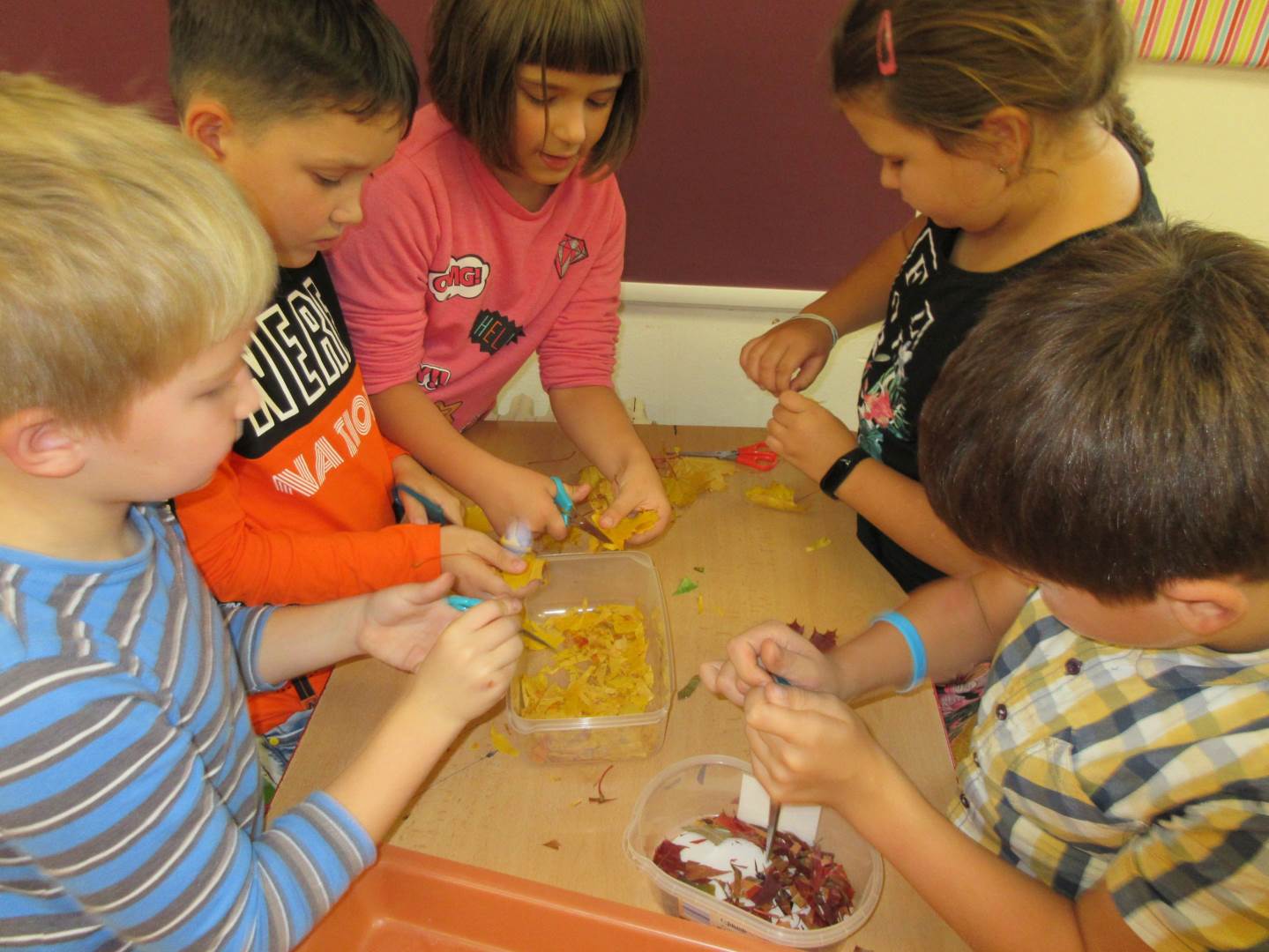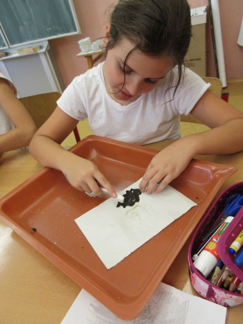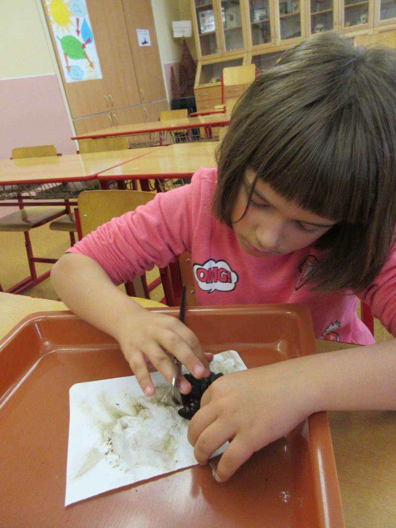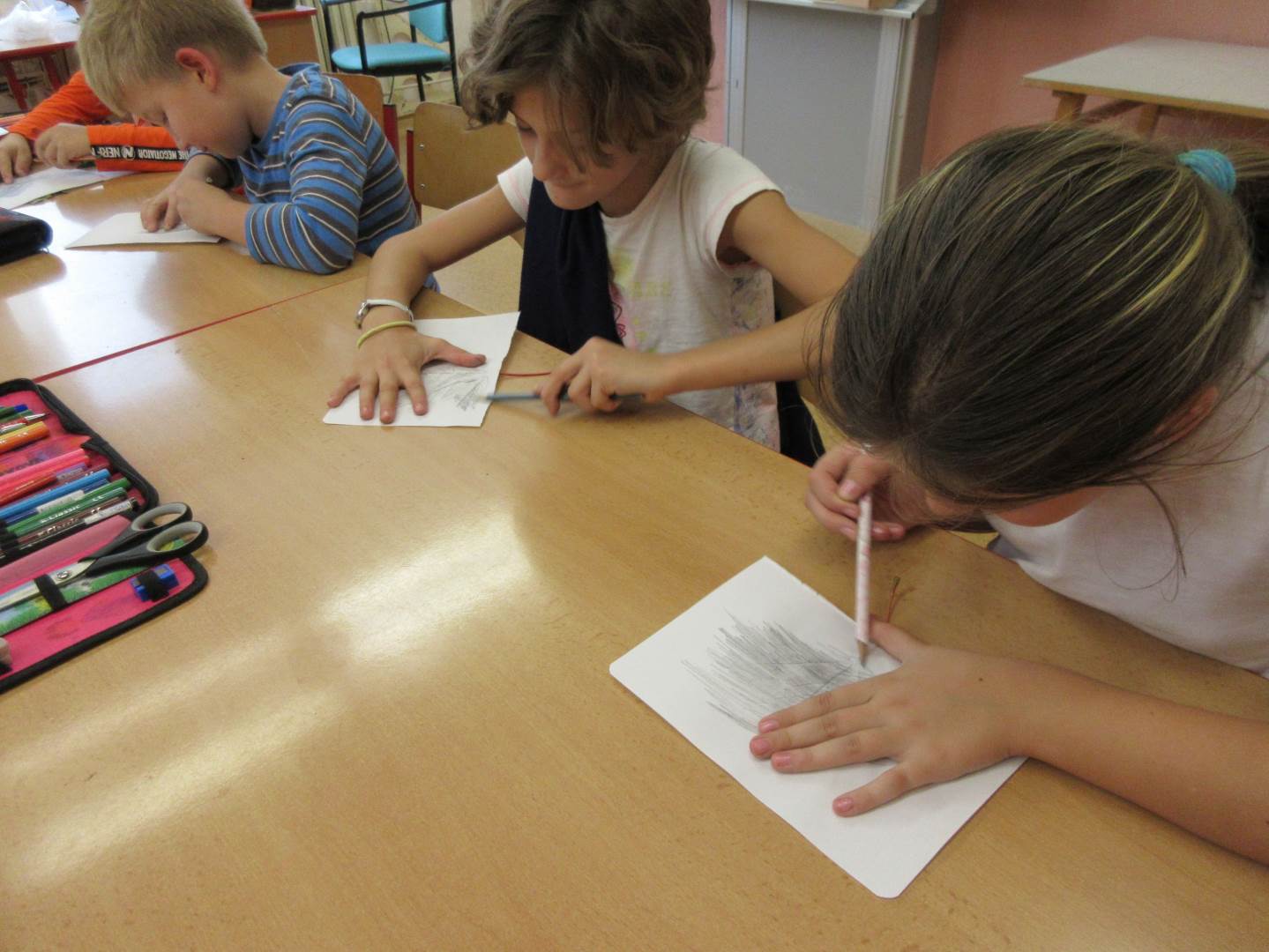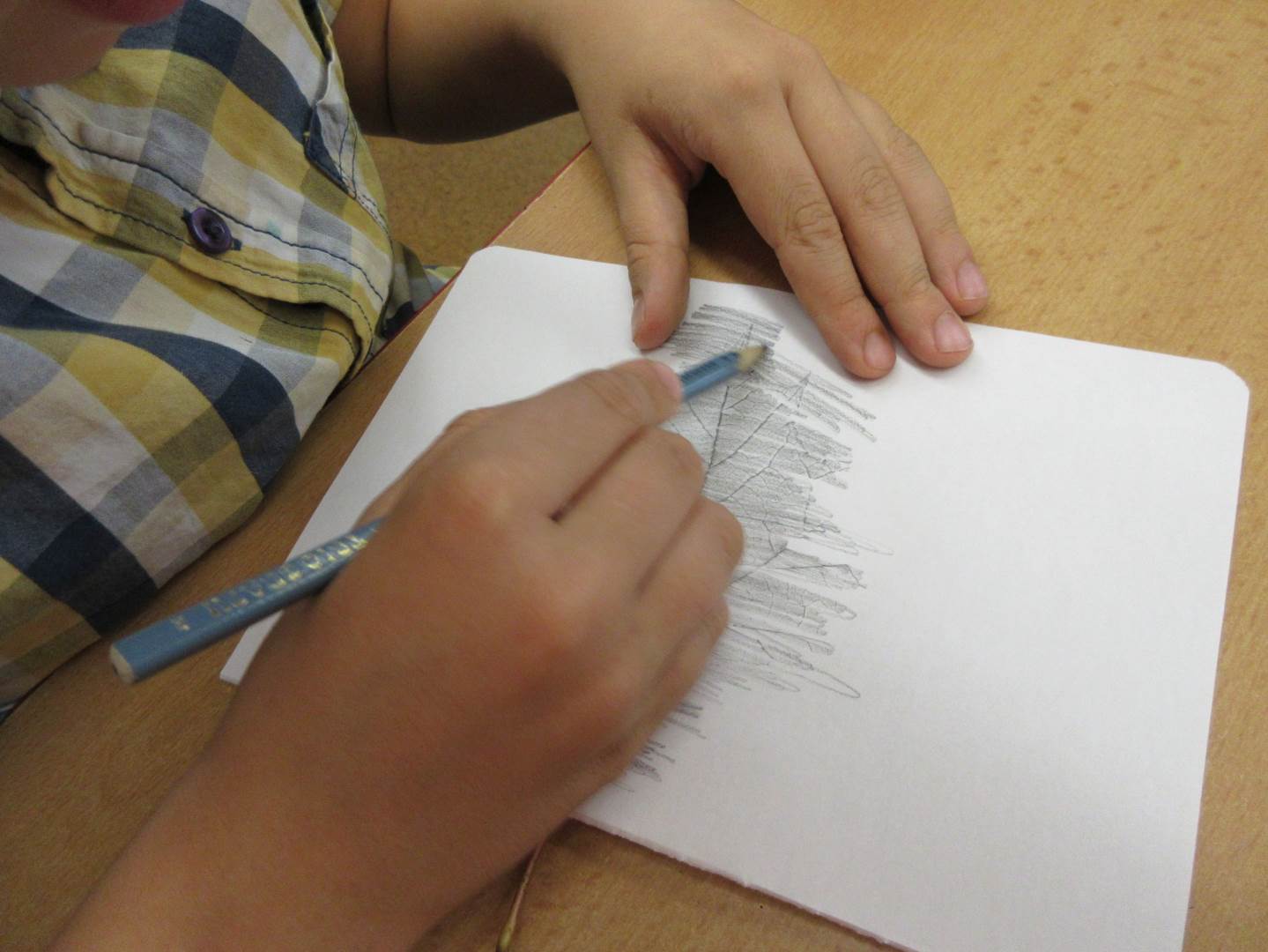 Pozorovali jsme žilnatinu listů, udělali jsme její frotáž. Udělali jsme obtisk průduchů, který jsme si prohlédli pod mikroskopem. Pak jsme z listů získávali jejich "kostřičku" a na závěr si na příště připravili výluh barev z listů.