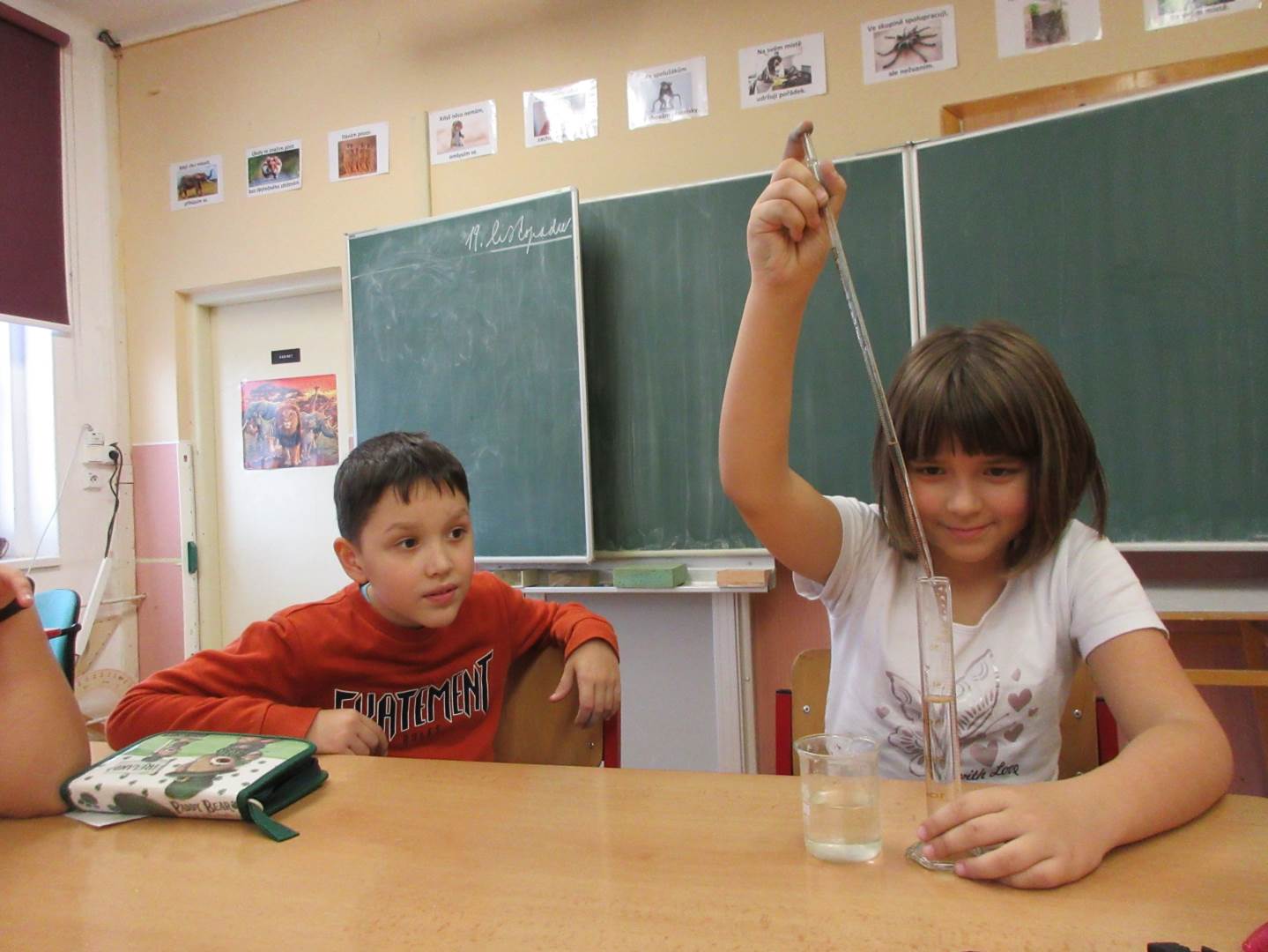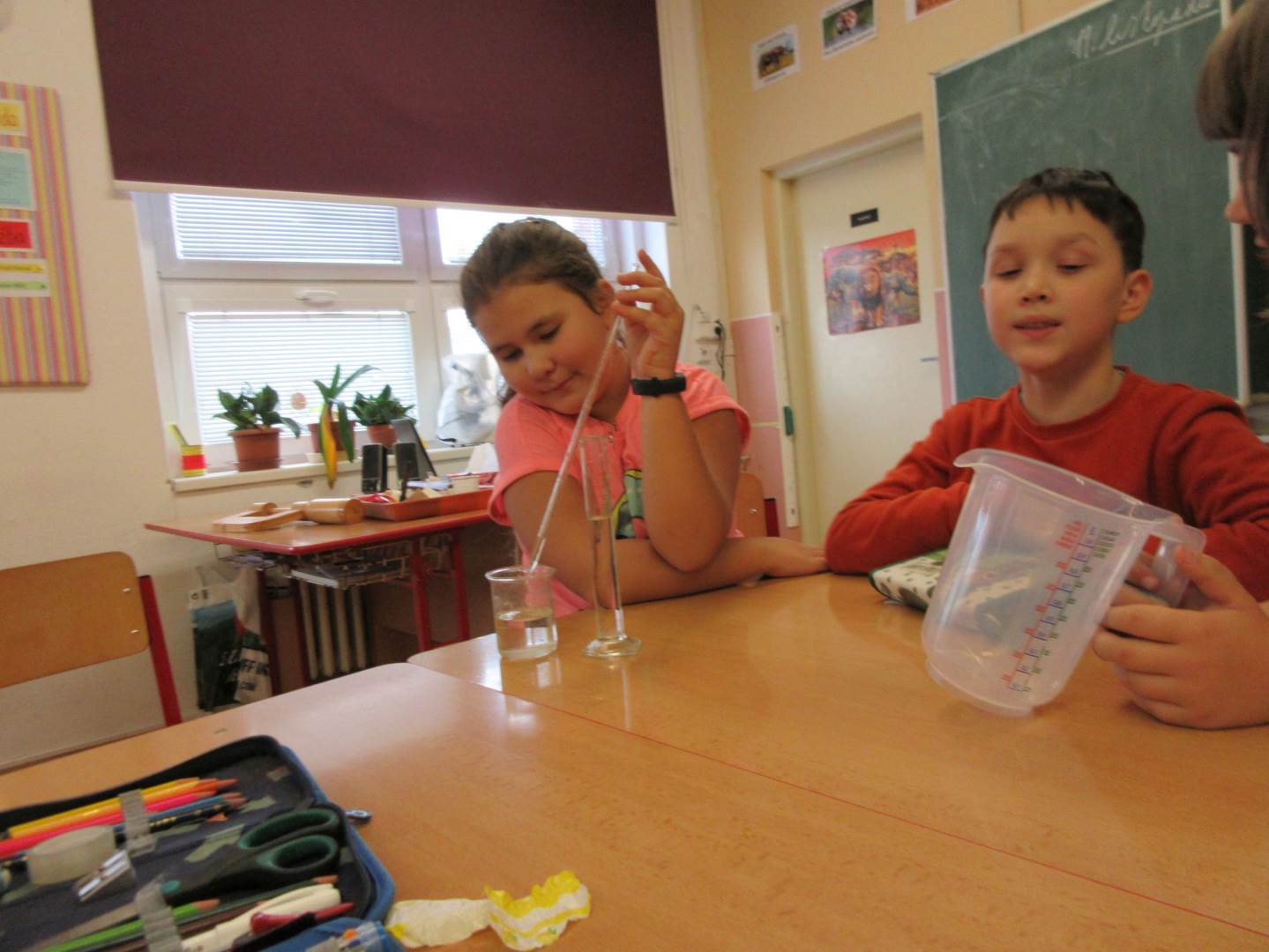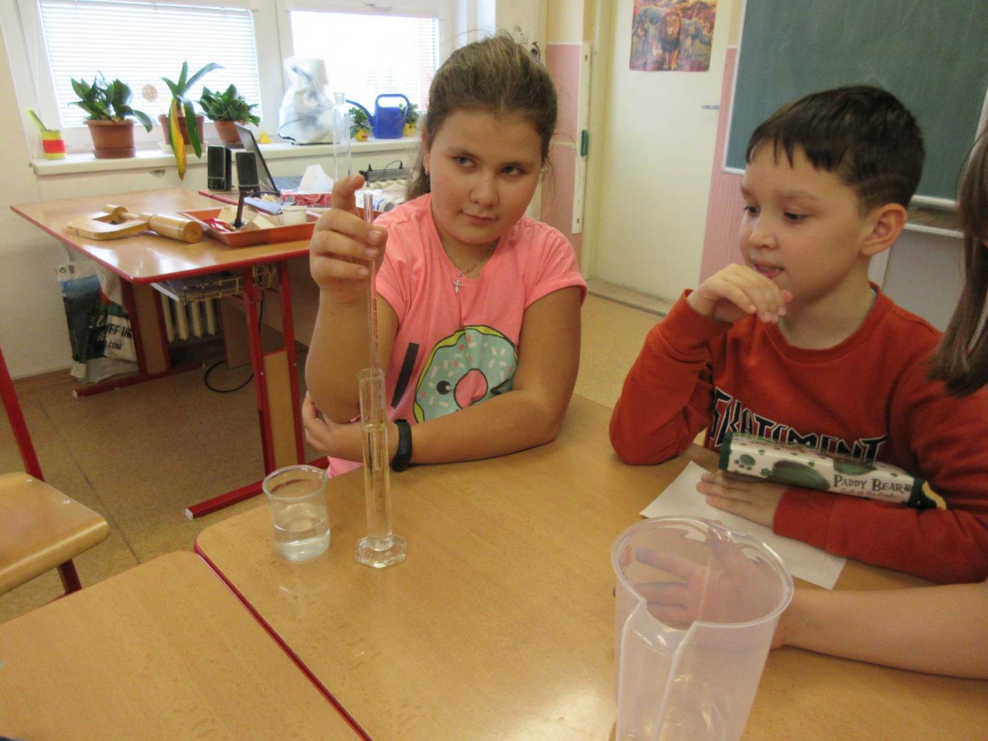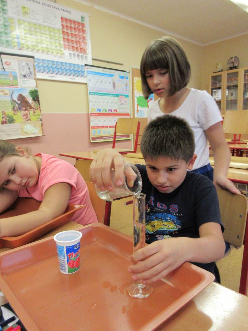 Zkoušeli jsme odhadovat délku. Změřili jsme tloušťku vlasu. Ukázali jsme si, jak se měří objem a vymysleli způsob, jak zjistit, do kterého kelímku od jogurtu se vejde nejvíc jogurtu.