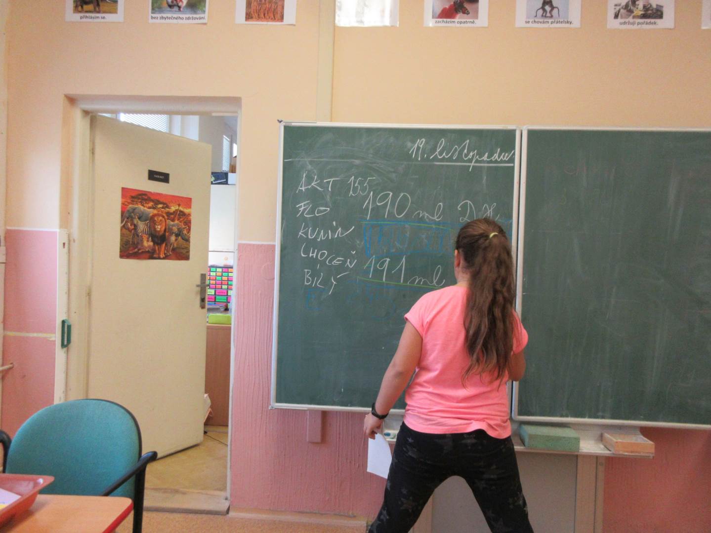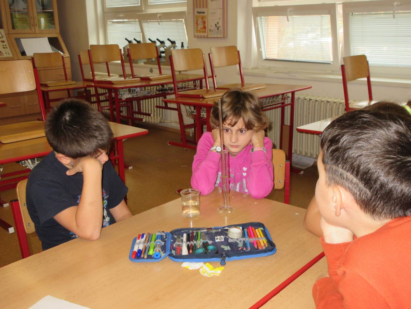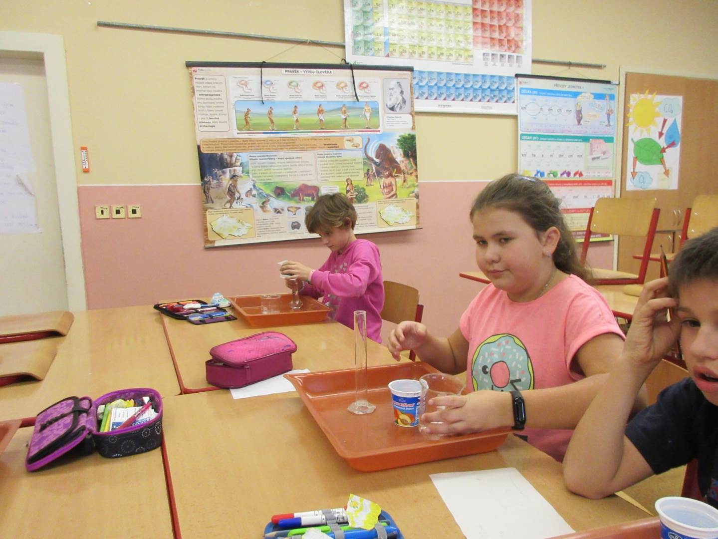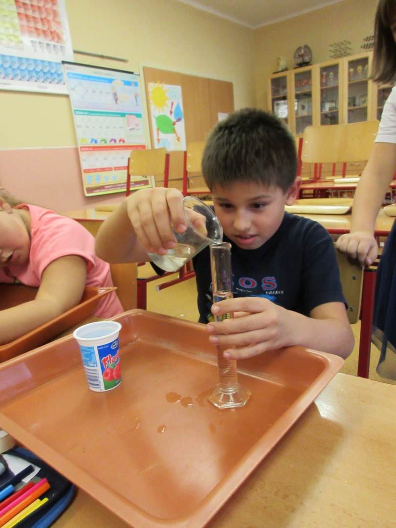 Zkoušeli jsme odhadovat délku. Změřili jsme tloušťku vlasu. Ukázali jsme si, jak se měří objem a vymysleli způsob, jak zjistit, do kterého kelímku od jogurtu se vejde nejvíc jogurtu.