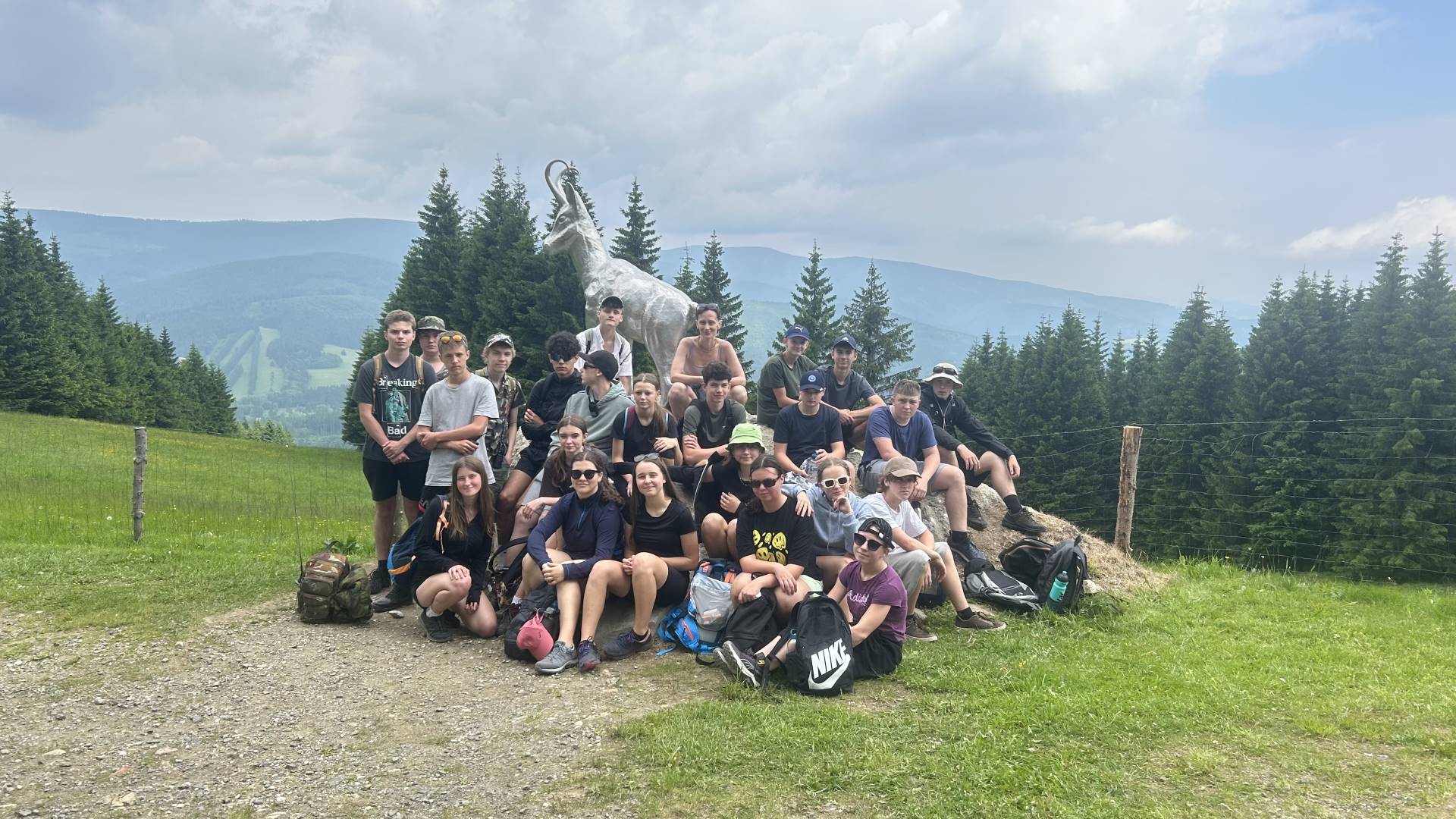 Ve dnech 18. – 20. 6. se 9. třída vydala společně s paní učitelkou třídní Petrou Galbovou, panem ředitelem Jiřím Rosenbergem a panem učitelem Niklasem Kűlzerem na výlet do hor. Jasná volba nejkrásnějšího pohoří u nás byl Jeseník. Věříte, že i cesta vlakem bez klimatizace a nabíjení telefonu může být zábavná? Bujarý zpěv žáků vykouzlil nejednomu cestujícímu úsměv na rtech a všichni společně odstartovali symbolický výlet za dobrodružstvím.