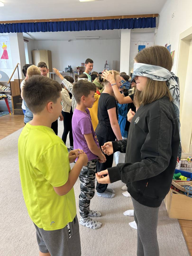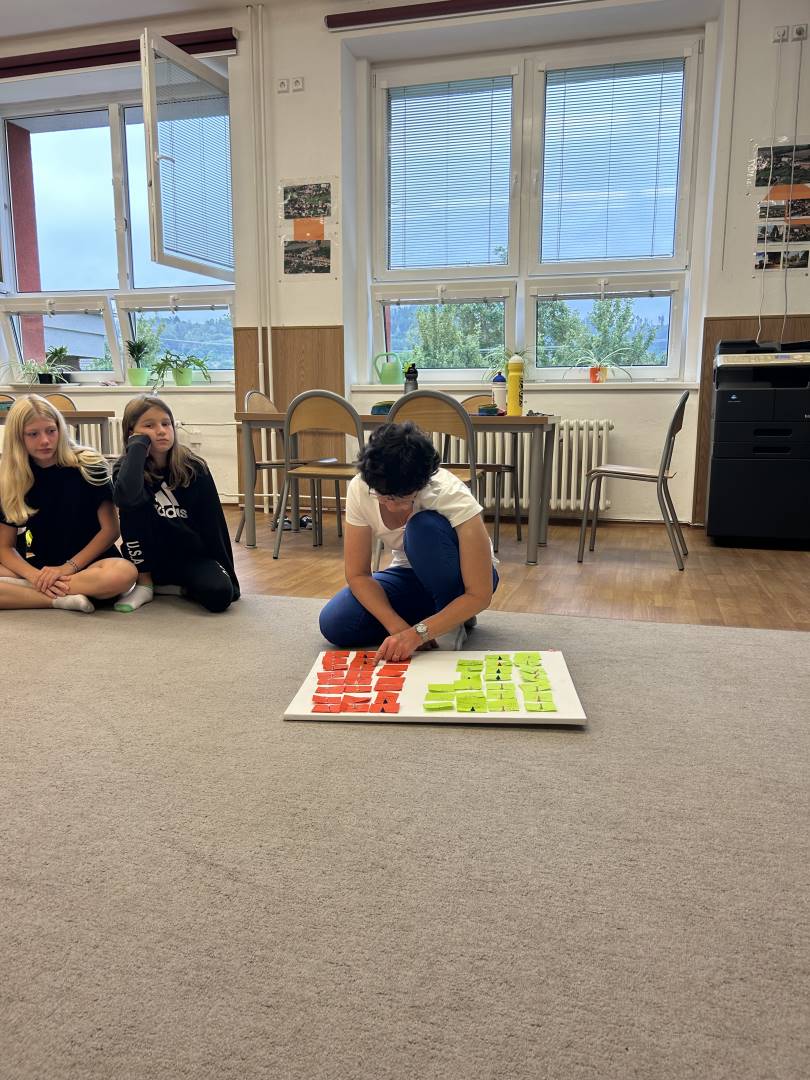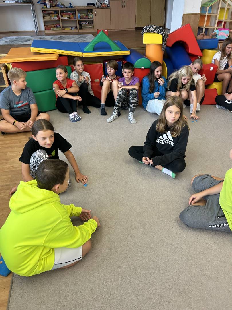 V pátek dne 15. 9. 2023 žáky čekaly hry zaměřené na prohloubení vzájemného poznávání a na hlubší poznání učitele, kdy si např. zahráli na reportéry a připravili si pro svoji třídní učitelku otázky, na něž by rádi získali odpovědi. Poté si vyráběli odznaky s vlastnoručně navrženým logem a na samotném závěru si zformulovali základní pravidla třídy, která se budou snažit dodržovat po celý školní rok.