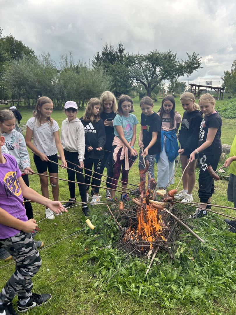 Ve čtvrtek jsme strávili první tři vyučovací hodiny ve škole a věnovali se aktivitám zaměřeným na sebeuvědomování, zbavení se ostychu, na poznávání se, na navození dobré nálady, na koordinaci a kooperaci. Pak jsme se vydali na procházku po Knínicích a zakončili tento den opékáním špekáčků na školní zahradě.