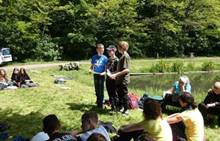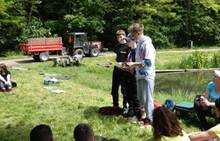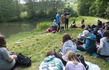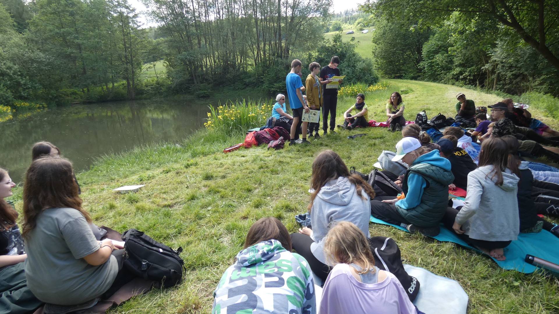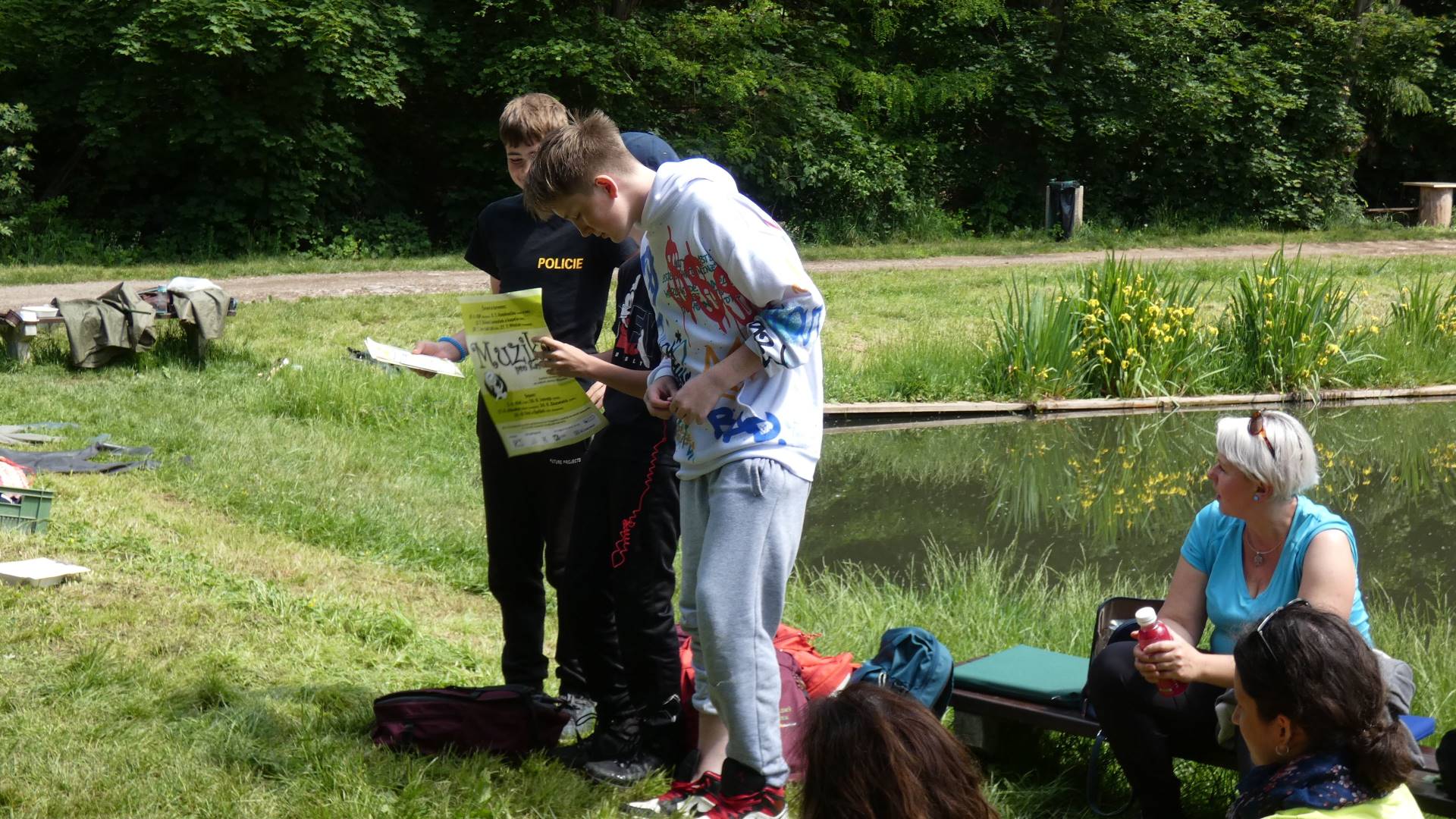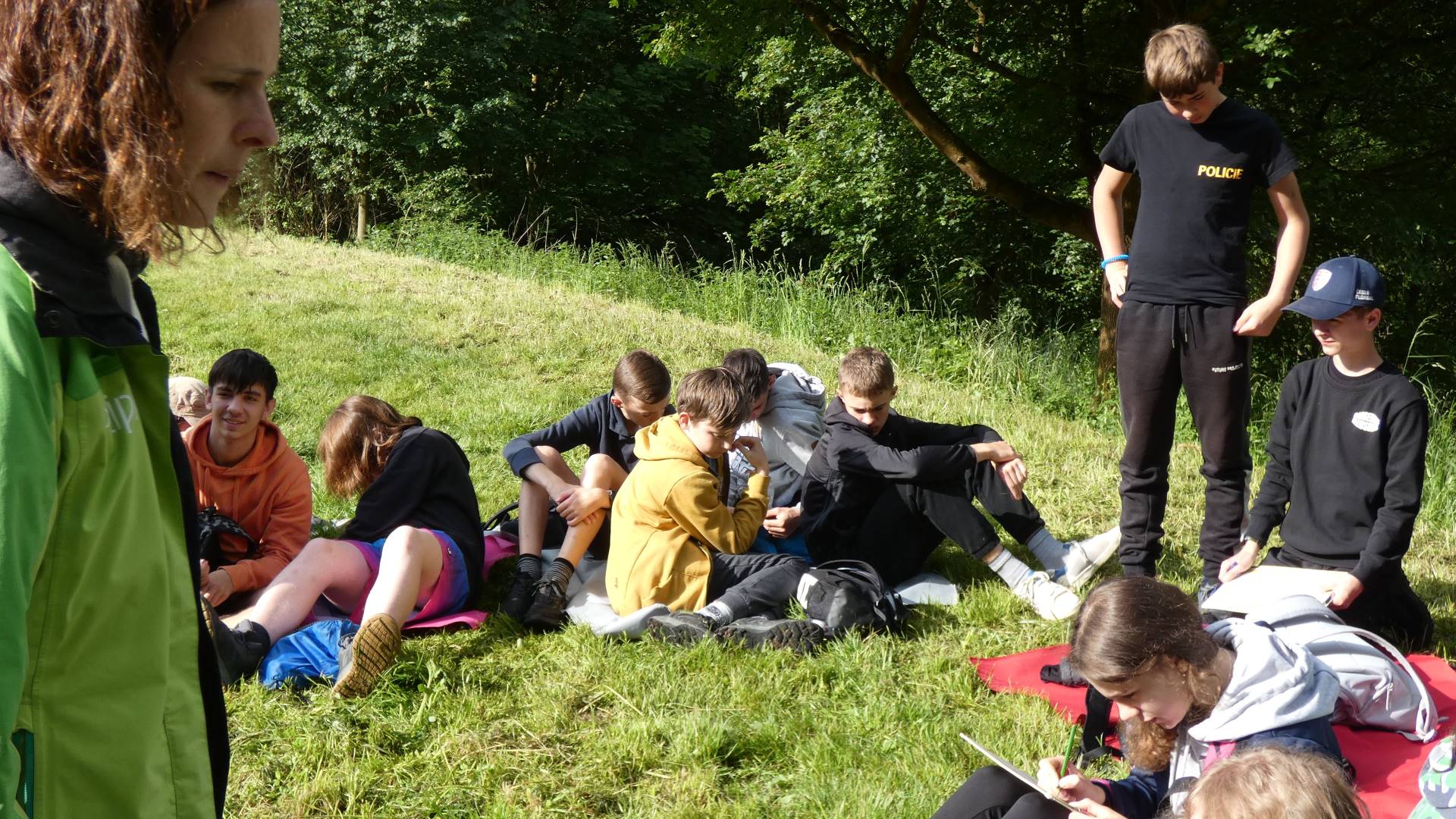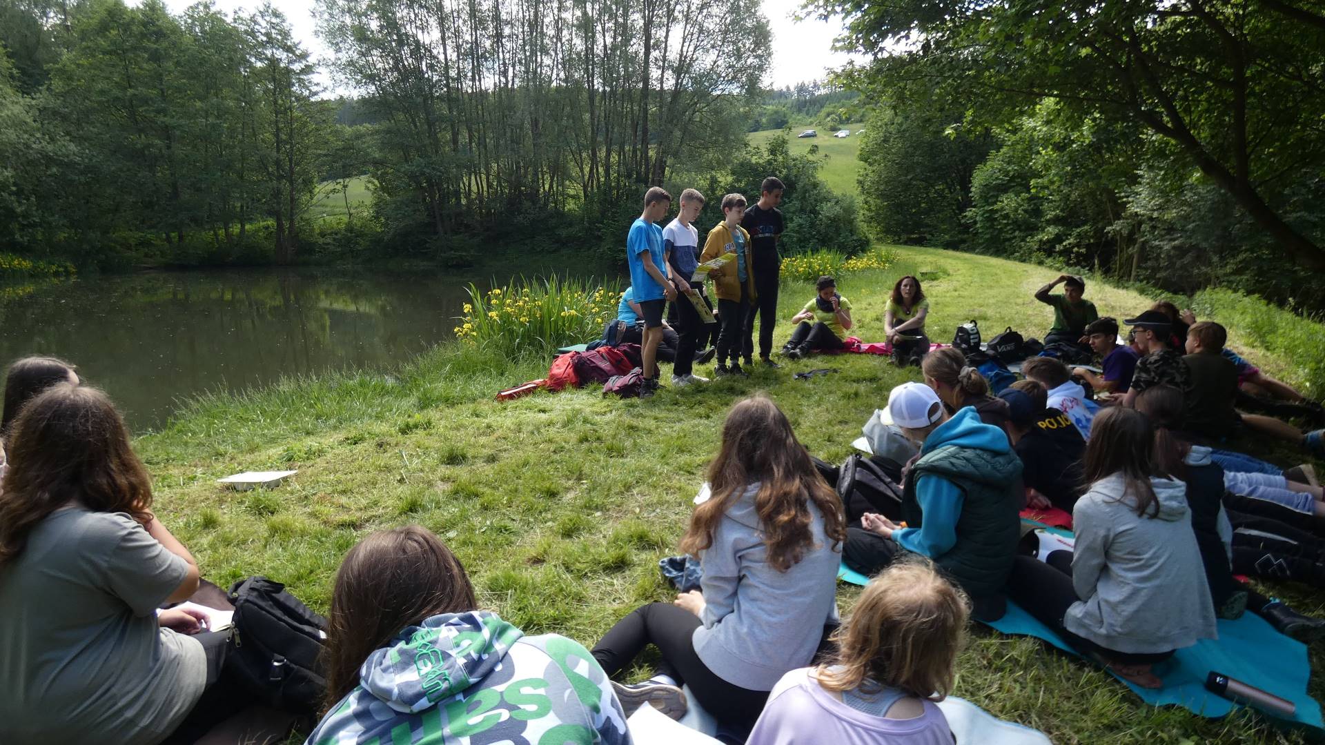 V pondělí 20. května se sedmáci pod vedením lektorek z Lipky pustili do přírodovědného bádání v okolí rybníčku. Zkusili si položit badatelkou otázku, stanovit hypotézu, naplánovat postup bádání, bádat, vyvodit závěr a prezentovat výsledky. Dokonce i počasí nám přálo a navzdory předpovědi ani nekáplo.