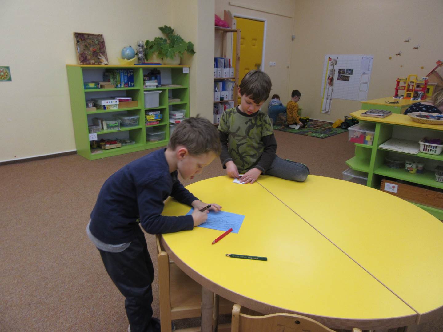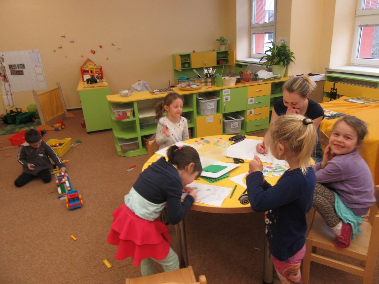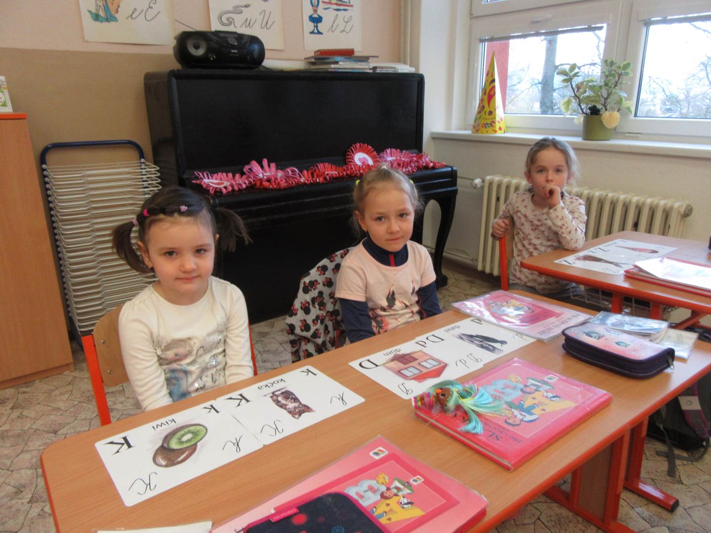 Ve čtvrtek jsme vyráběli holčičku a chlapečka. Holčička měla na talíři všechno zdravé jídlo a chlapeček nezdravé. Na elipse jsme oslavili narozeniny Lucinky Grénarové. Později jsme vyrazili na školní zahradu.