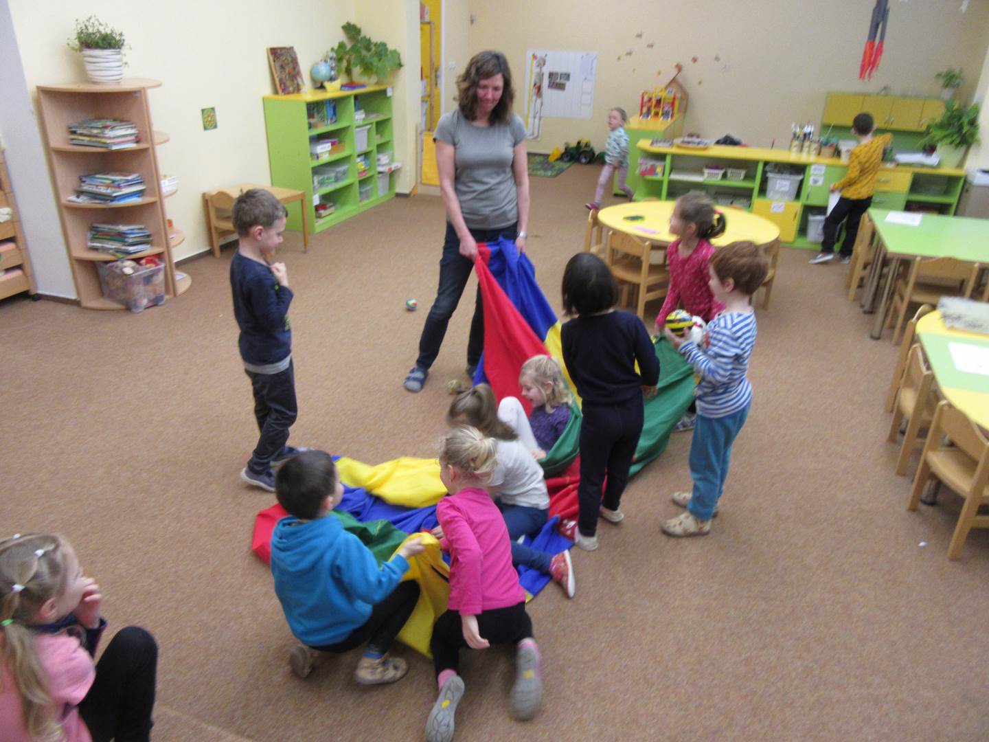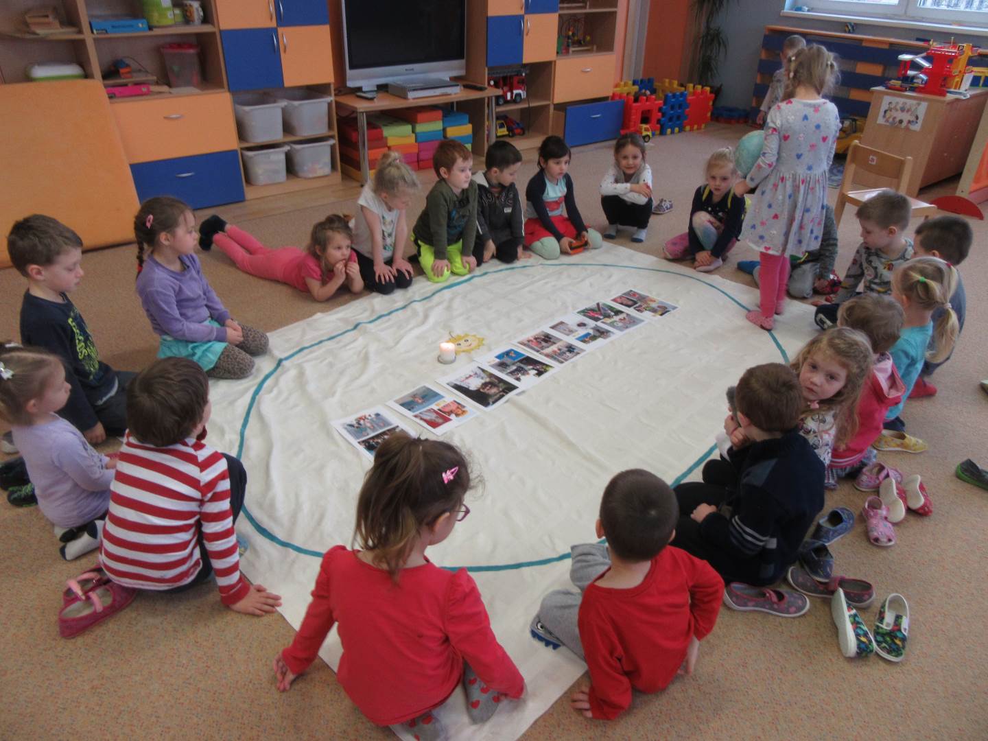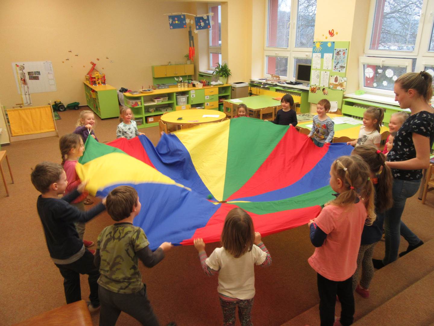 První březnový týden jsme zahájili na elipse. Seznámili jsme se s novým plánem na měsíc březen - „Rozjaření“ a také jsme si sdělili, co jsme zažili o víkendu. Hrou s míčky a padákem (na bacily a vitamíny) a čtením poslední kapitoly z knížky „Filipova dobrodružství“ jsme zakončili téma „Znám své tělo a vím, co mi škodí“. Poté jsme se vydali proběhnout na čerstvý vzduch a v dešti.