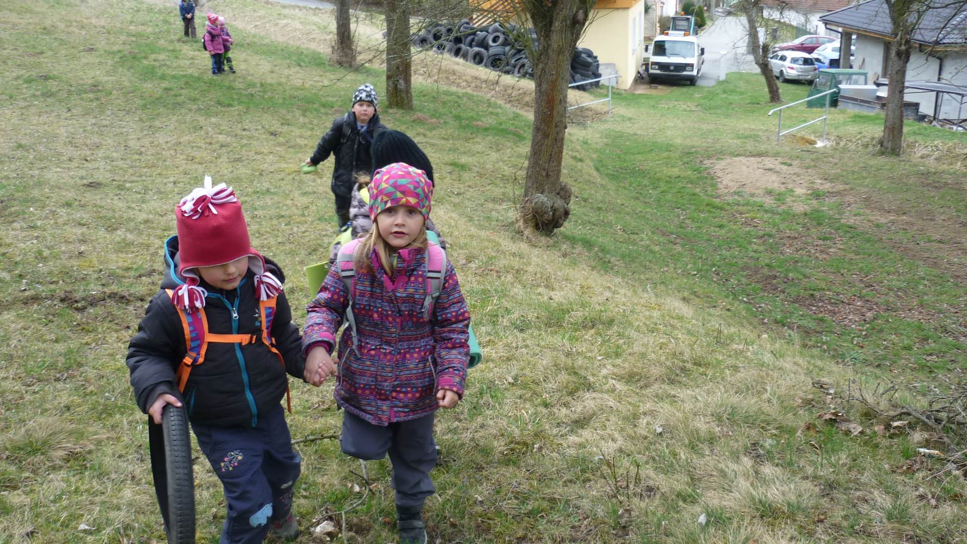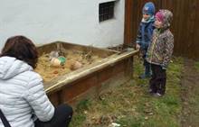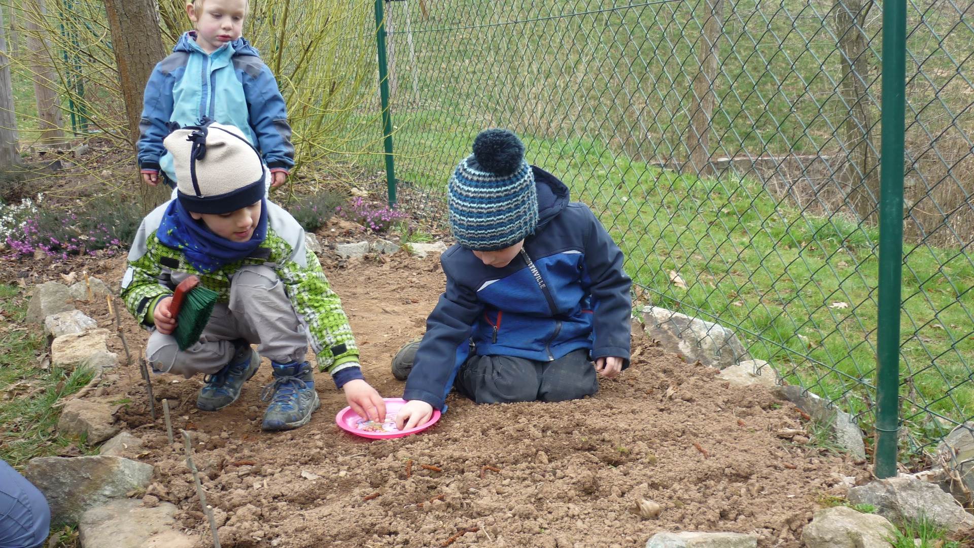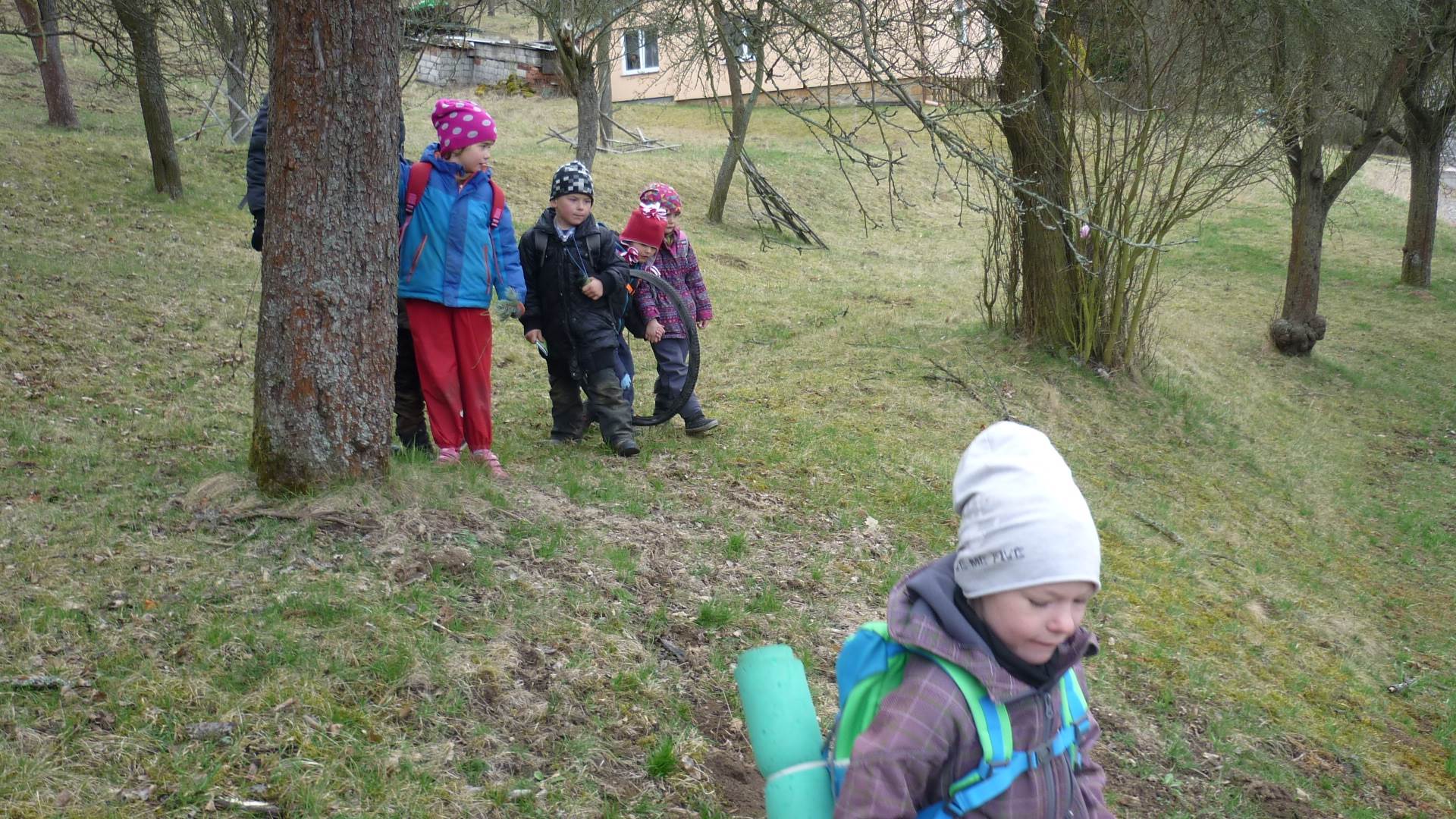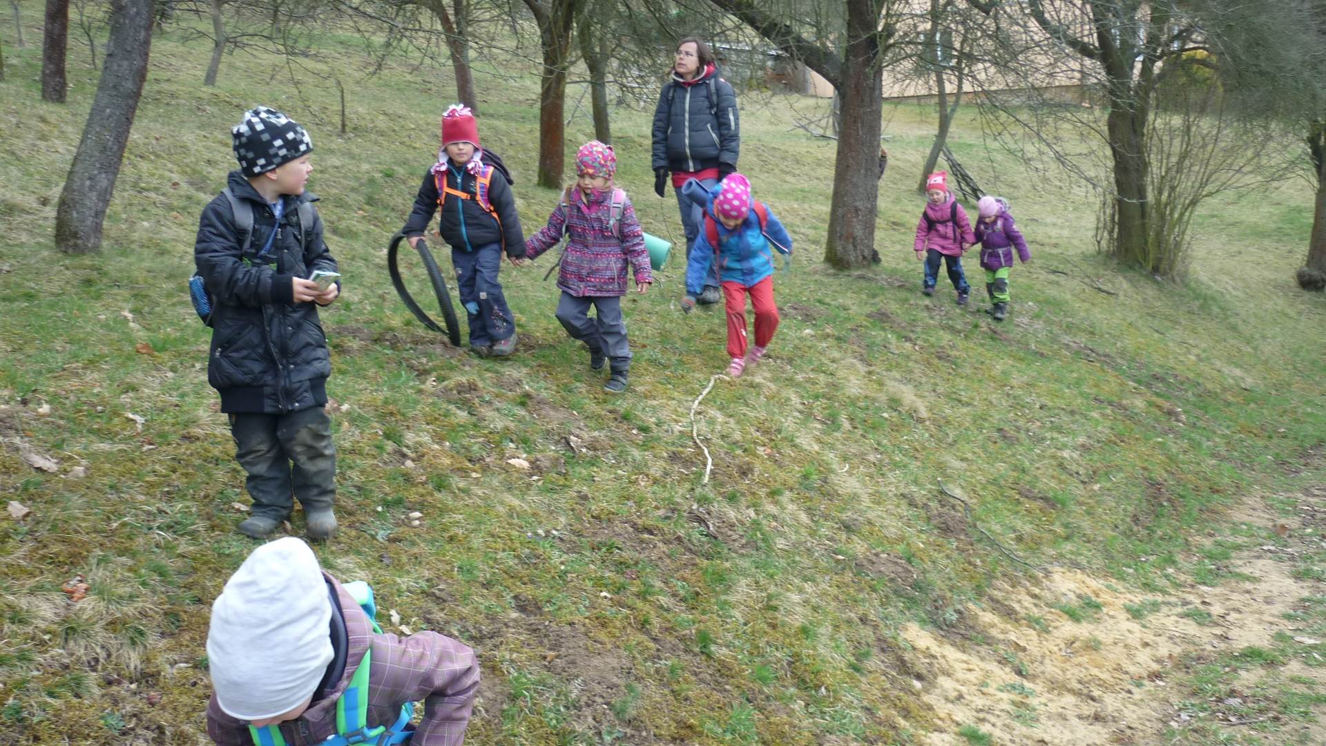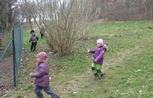 Tento týden si povídáme o kompostu. Co do něj patří a nepatří a k čemu je takový kompost dobrý. Přišla za námi žížala Žofinka a povídala nám o své kamarádce žížale Fridolíně a o tom, jak ji málem sezobl kos. Žížalu jsme si pak vyrobili skládáním papíru a procvičili si tak jemnou motoriku. Zahráli jsme si i na kosy a snažili se pinzetovým úchopem posbírat co nejvíce žížal. Naučili jsme se i pohybovou hru na krtka, který honí žížaly. Když jsme připravovali záhonky na setí, mohli jsme zkoumat i opravdové žížaly! Povídali jsme si pak o tom, jak jsou užitečné. Ve Vážanech jsme poslali po vodě všechny Moreny, aby už zima definitivně odešla, a na záhonek u maringotky i u školky jsme zaseli hrášek. Rozkvetlá zlatice nás inspirovala k výtvarnému tvoření a na farní zahradě jsme pozorovali veverky. Čenda si jeden den přinesl do školky metr, tak jsme se pustili do měření a porovnávali, co je delší a co kratší.