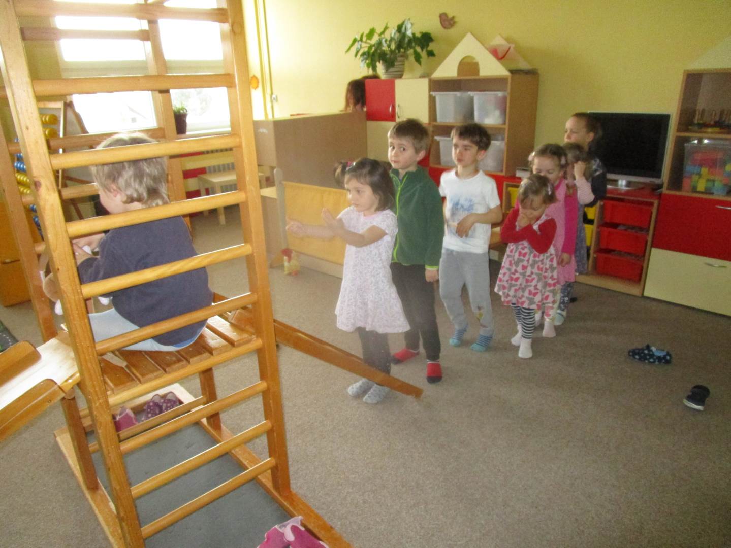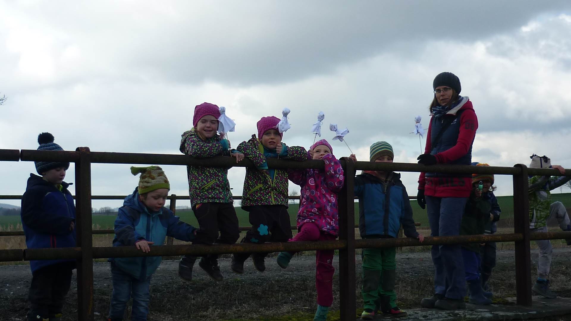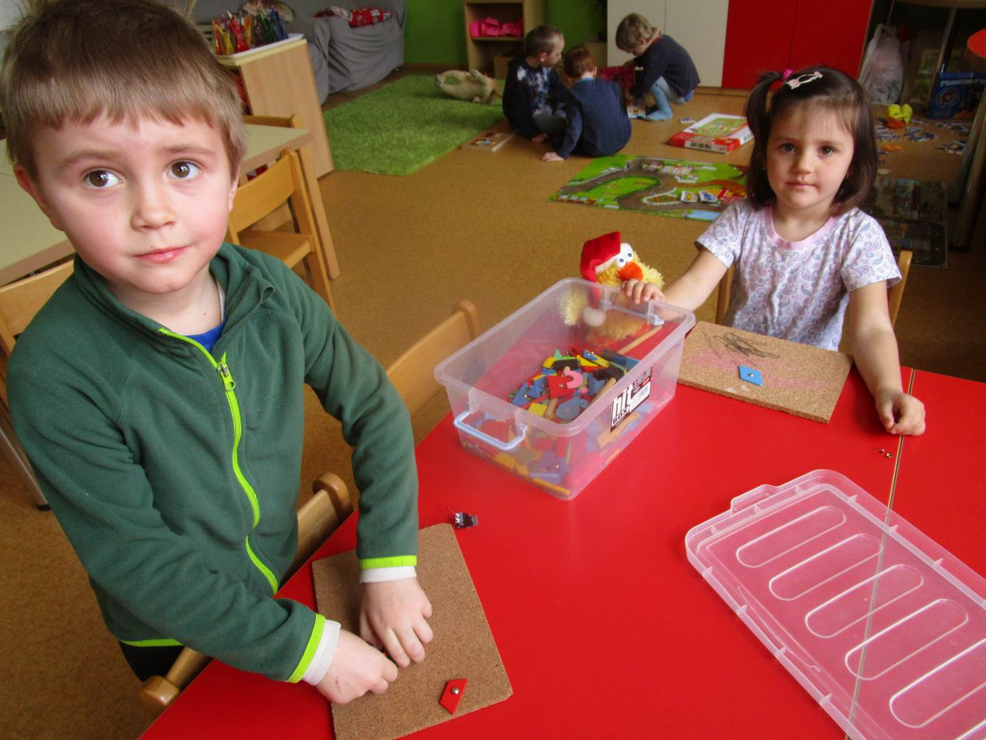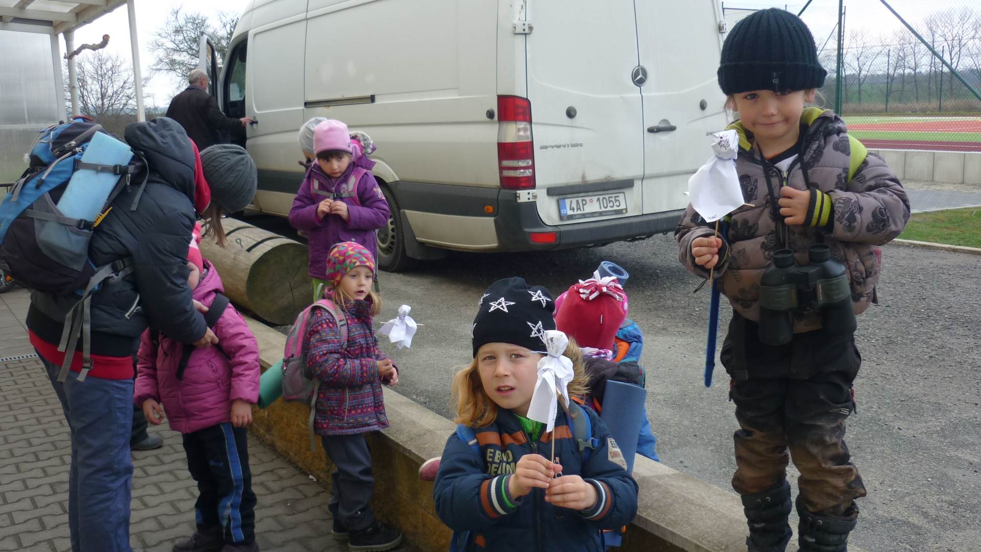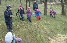 Tento týden si povídáme o kompostu. Co do něj patří a nepatří a k čemu je takový kompost dobrý. Přišla za námi žížala Žofinka a povídala nám o své kamarádce žížale Fridolíně a o tom, jak ji málem sezobl kos. Žížalu jsme si pak vyrobili skládáním papíru a procvičili si tak jemnou motoriku. Zahráli jsme si i na kosy a snažili se pinzetovým úchopem posbírat co nejvíce žížal. Naučili jsme se i pohybovou hru na krtka, který honí žížaly. Když jsme připravovali záhonky na setí, mohli jsme zkoumat i opravdové žížaly! Povídali jsme si pak o tom, jak jsou užitečné. Ve Vážanech jsme poslali po vodě všechny Moreny, aby už zima definitivně odešla, a na záhonek u maringotky i u školky jsme zaseli hrášek. Rozkvetlá zlatice nás inspirovala k výtvarnému tvoření a na farní zahradě jsme pozorovali veverky. Čenda si jeden den přinesl do školky metr, tak jsme se pustili do měření a porovnávali, co je delší a co kratší.