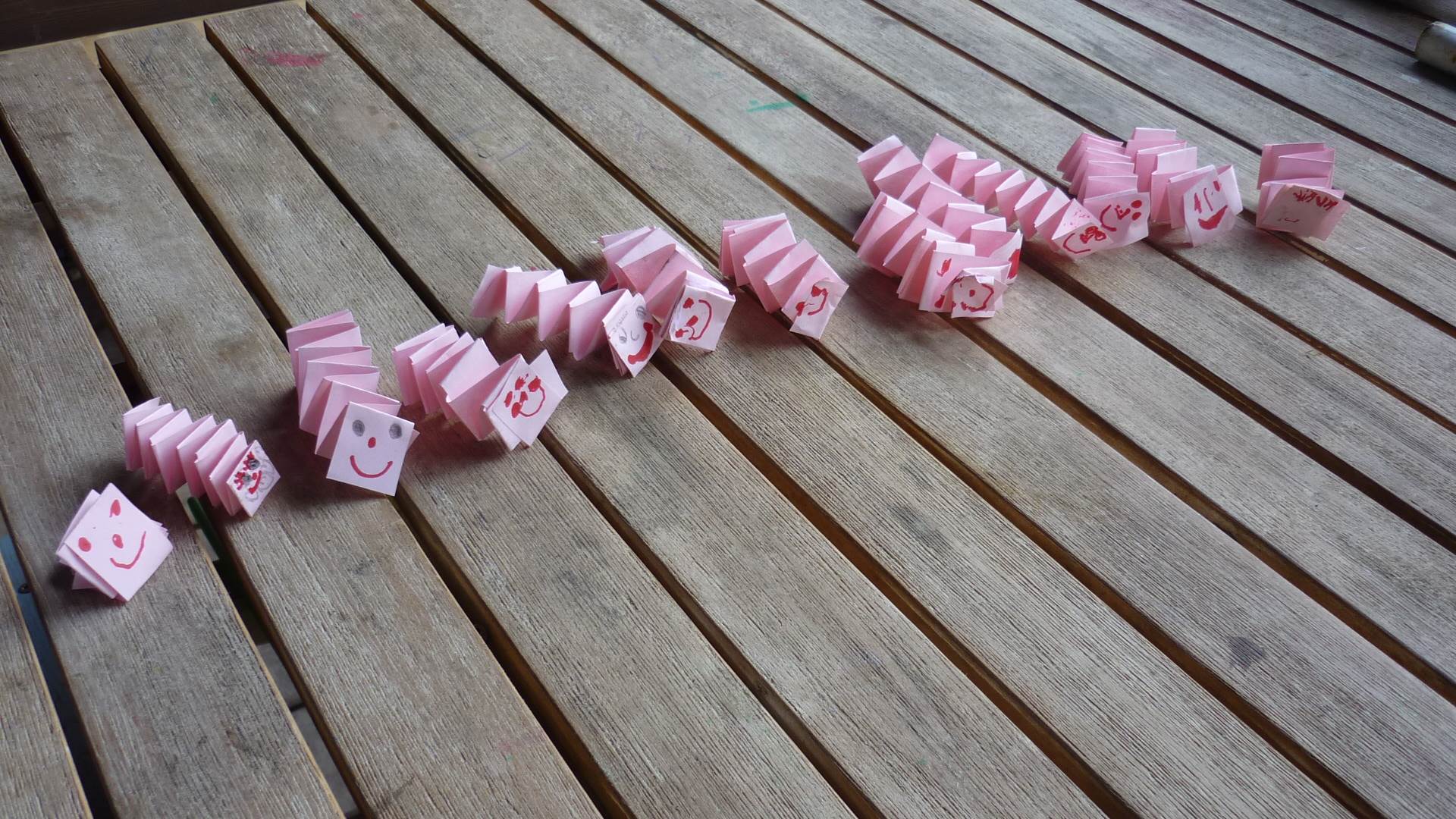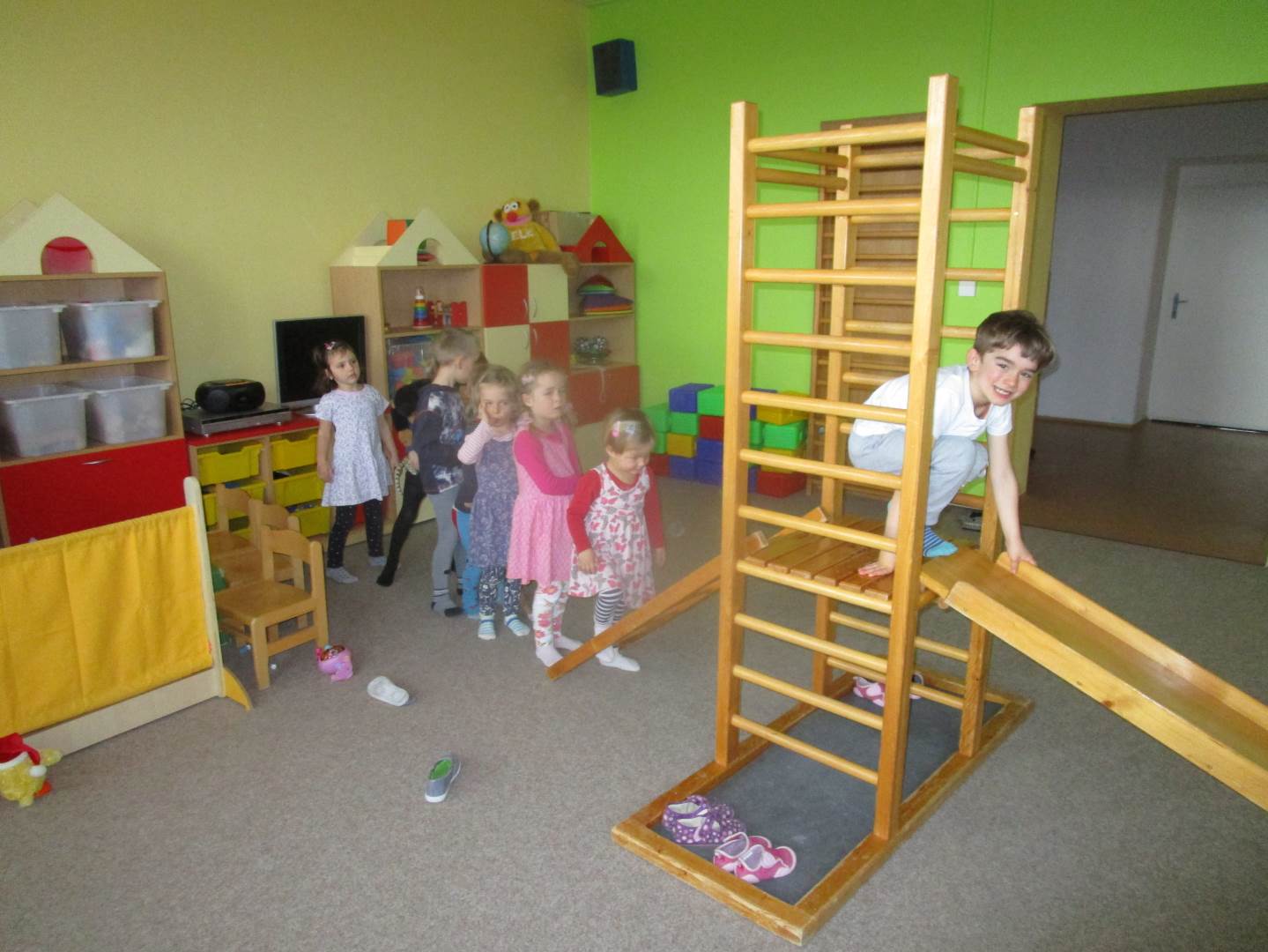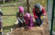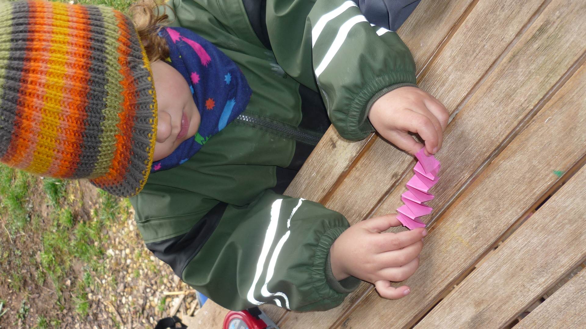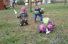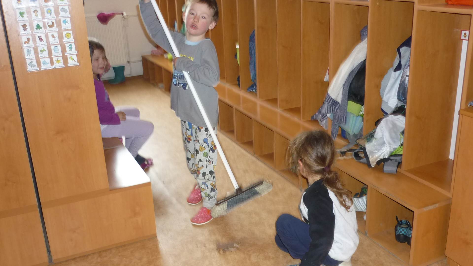 Tento týden si povídáme o kompostu. Co do něj patří a nepatří a k čemu je takový kompost dobrý. Přišla za námi žížala Žofinka a povídala nám o své kamarádce žížale Fridolíně a o tom, jak ji málem sezobl kos. Žížalu jsme si pak vyrobili skládáním papíru a procvičili si tak jemnou motoriku. Zahráli jsme si i na kosy a snažili se pinzetovým úchopem posbírat co nejvíce žížal. Naučili jsme se i pohybovou hru na krtka, který honí žížaly. Když jsme připravovali záhonky na setí, mohli jsme zkoumat i opravdové žížaly! Povídali jsme si pak o tom, jak jsou užitečné. Ve Vážanech jsme poslali po vodě všechny Moreny, aby už zima definitivně odešla, a na záhonek u maringotky i u školky jsme zaseli hrášek. Rozkvetlá zlatice nás inspirovala k výtvarnému tvoření a na farní zahradě jsme pozorovali veverky. Čenda si jeden den přinesl do školky metr, tak jsme se pustili do měření a porovnávali, co je delší a co kratší.