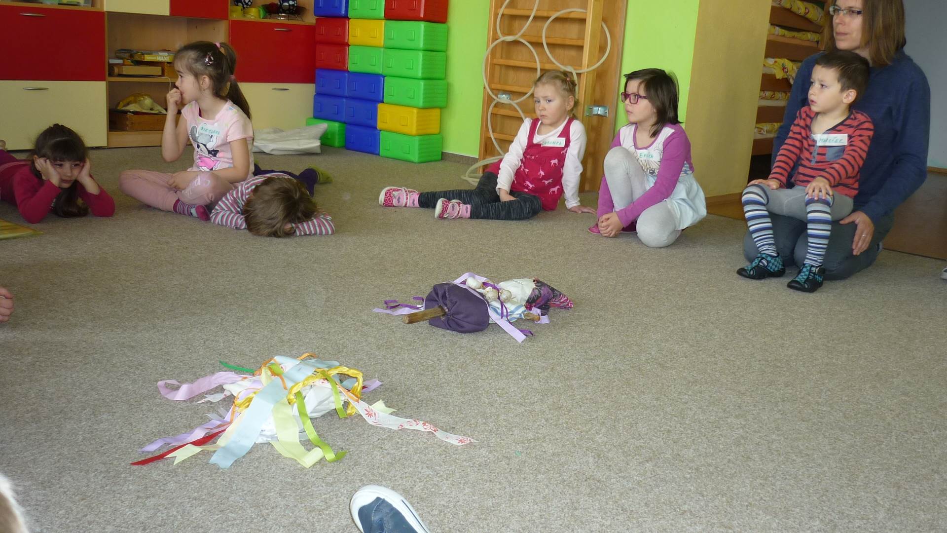 Tento týden jsme už přivítali jaro. Všímáme si jeho charakteristických znaků: rašících pupenů, prvních květin, mláďátek...) Přijela za námi paní z Ekocentra Brno s výukovým programem Loučení s Morenou aneb jaro a Velikonoce jsou tady. Pověděla nám o lidových zvyklostech a zaseli jsme si obilí. O jaru se učíme básničky a písničky. Kdo chtěl, vyrobil si Morenu z papíru, špejlí a provázku. Už se těšíme, až ji pošem po vodě. Ve čtvrtek jsme přivítali kalendářní jaro ve žluté (sluníčkové) barvě a vyrobili si sluníčko z papíru a společně pak vílu Jarněnku. V pátek jsme ještě navštívili místní dobrovolné hasiče a završili tak povídání o povoláních.