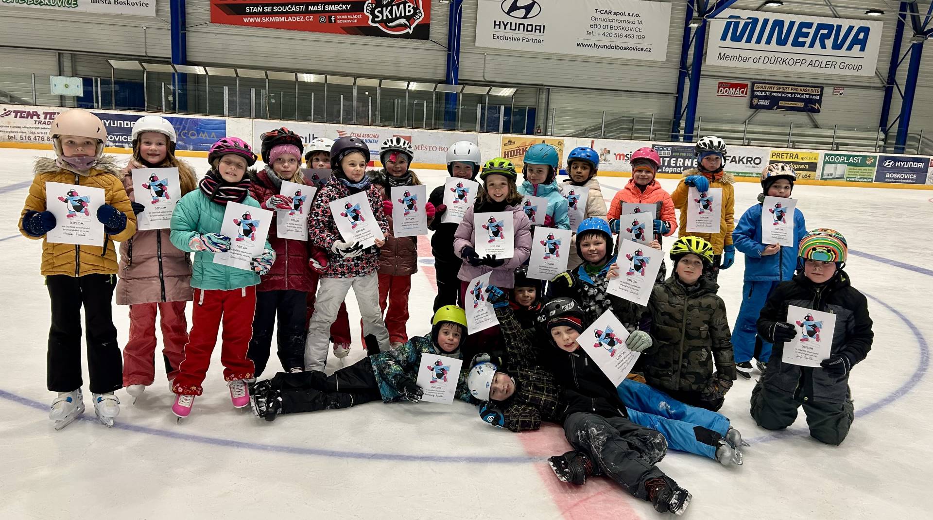 Po ukončení plaveckého výcviku se druháci a třeťáci pustili do zdokonalování svých bruslařských dovedností. Navázali tak na vše, co se naučili jako předškoláci, v minulých ročnících a také se svými rodiči. Každý lednový čtvrtek jsme začínali rozcvičením a rozbruslením na ZS v Boskovicích. K ruce nám byly studentky Střední pedagogické školy, které pomáhaly s výcvikem a zároveň získávaly svoje první pedagogické zkušenosti v netypickém prostředí. Všichni bruslaři byli moc šikovní a posunuli se zase o kousek dále ve svých dovednostech. Odměnou byl všem diplom malého bruslaře a občerstvení na ZS. Velká pochvala všem zúčastněným. Už teď se těšíme na další bruslařskou sezonu.