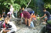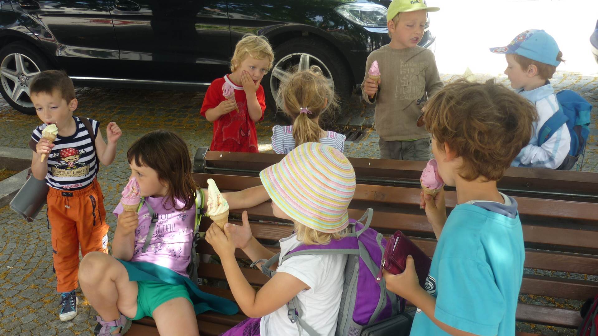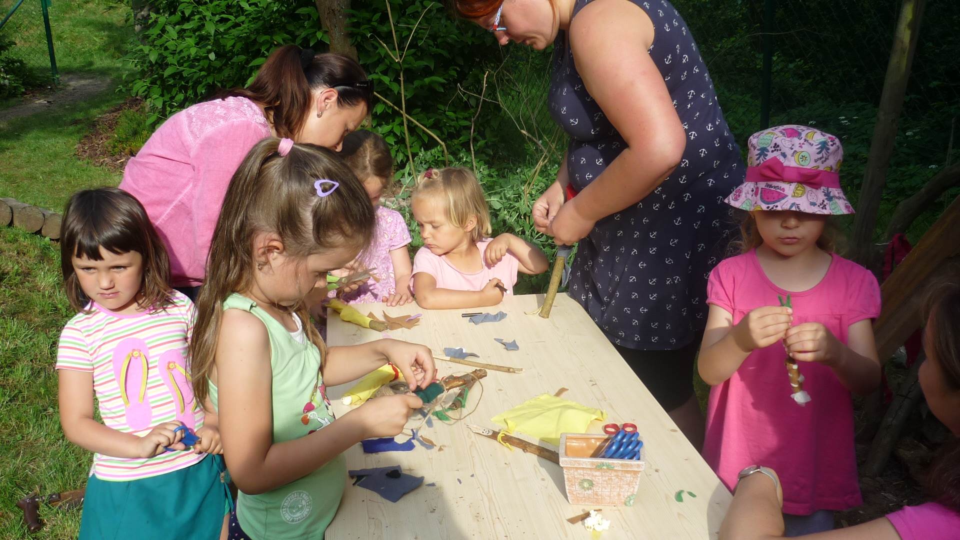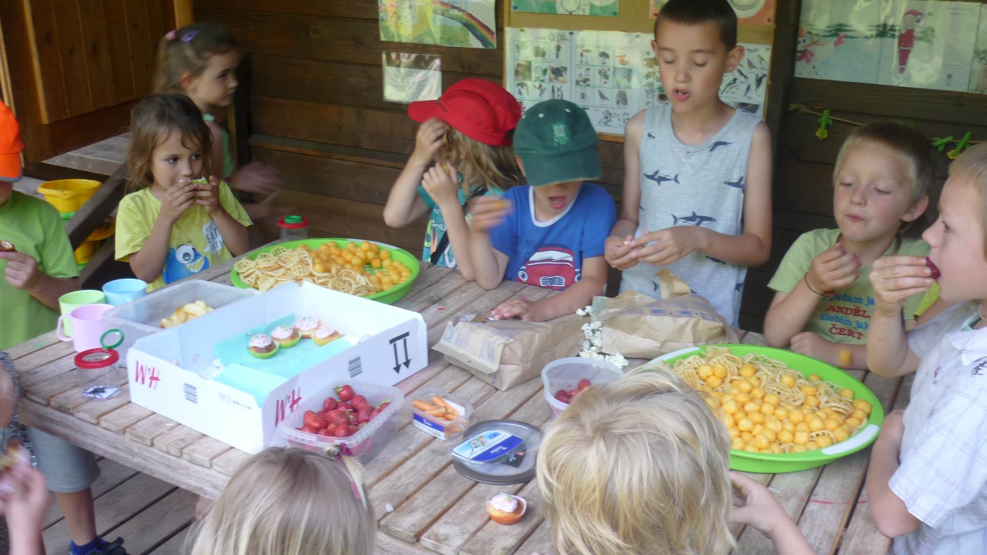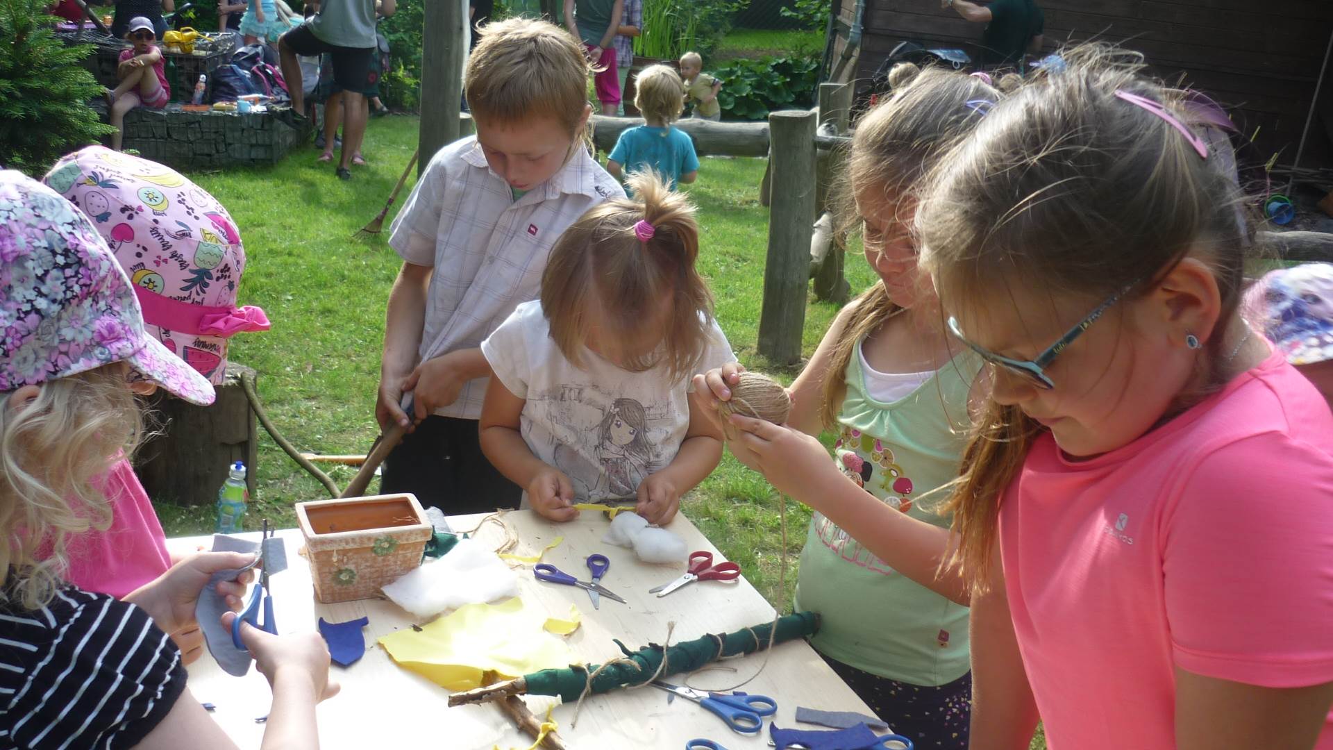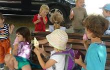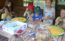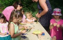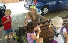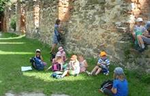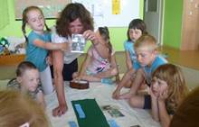 Tento týden jsme zahájili stopovanou s úkoly. V areálu u maringotky jsme se společně s rodiči rozloučili se školním rokem a paní učitelkou Dankou, která odchází do MŠ Borotín. Děti si vyrobily "větvánky" - panáčky z klacíků a dostaly na památku zvětšovací kelímek na pozorování. Pak jsme si společně opekli párky a loučili se a loučili... zkrátka bylo to dojemné. Další dny jsme slavili narozeniny Leničky, Čendy a p.uč.Olči, na balících slámy jsme procvičili hrubou motoriku a na rybníčku jsme pouštěli lodičky. Podařil se nám i výlet do Boskovic na hrad a vše jsme zakončili sladkou tečkou - zmrzlinou.