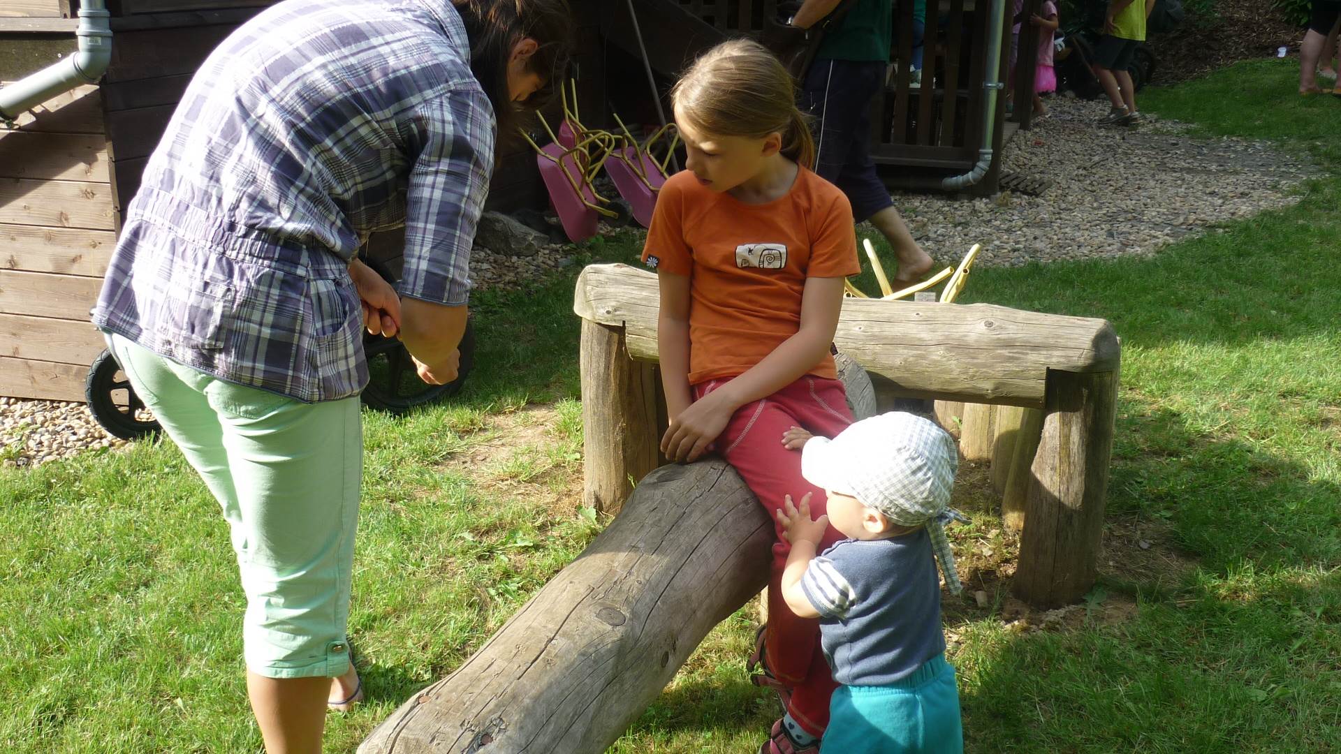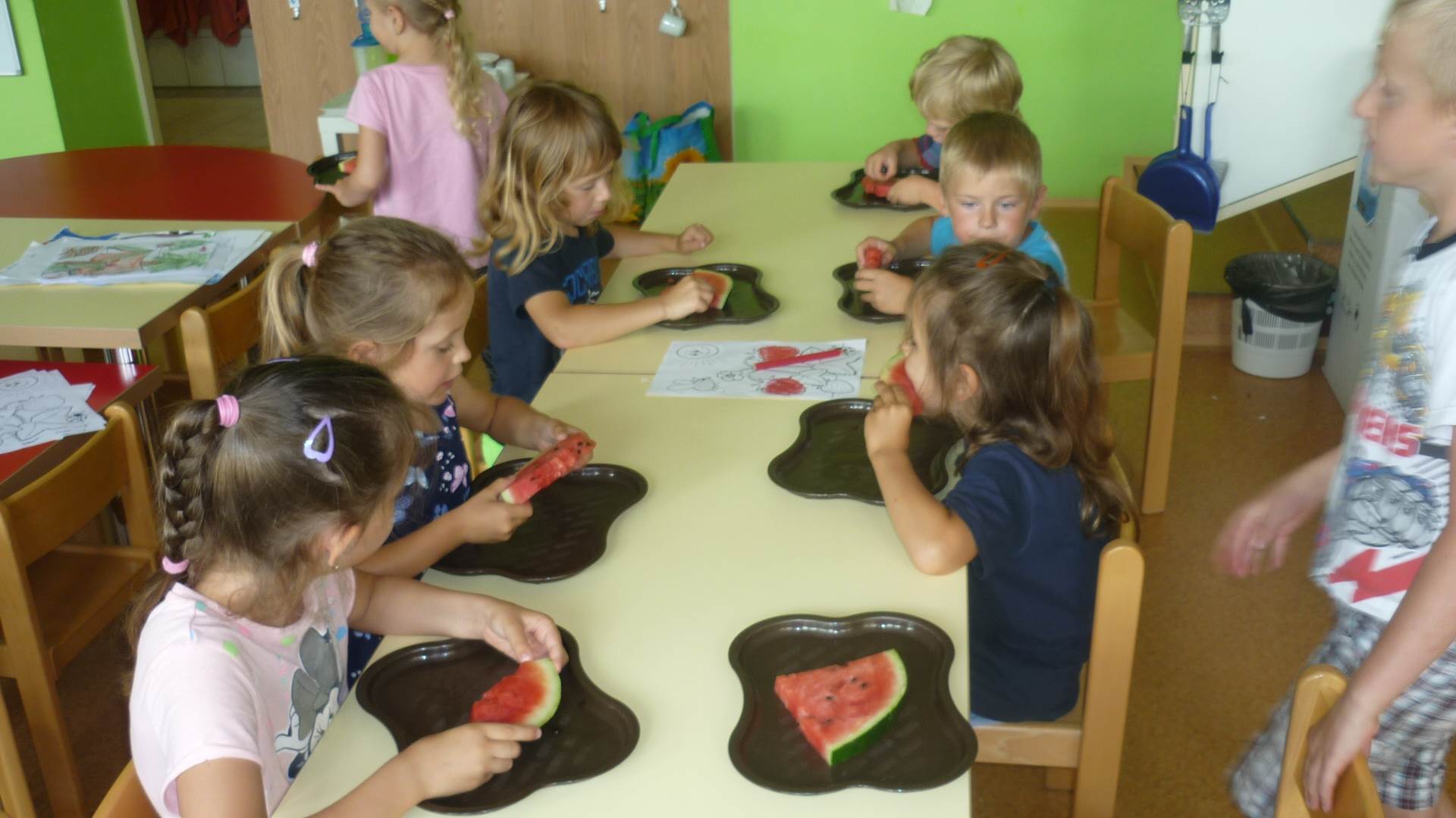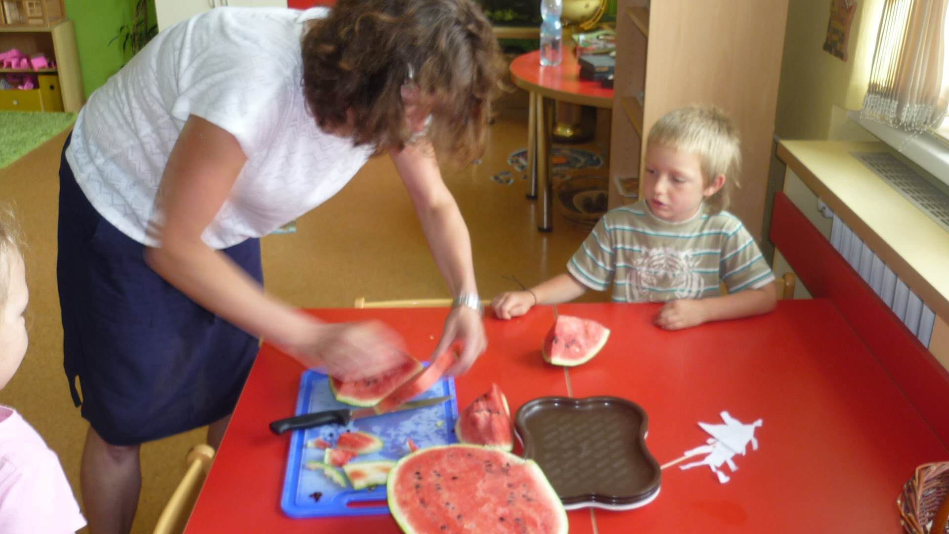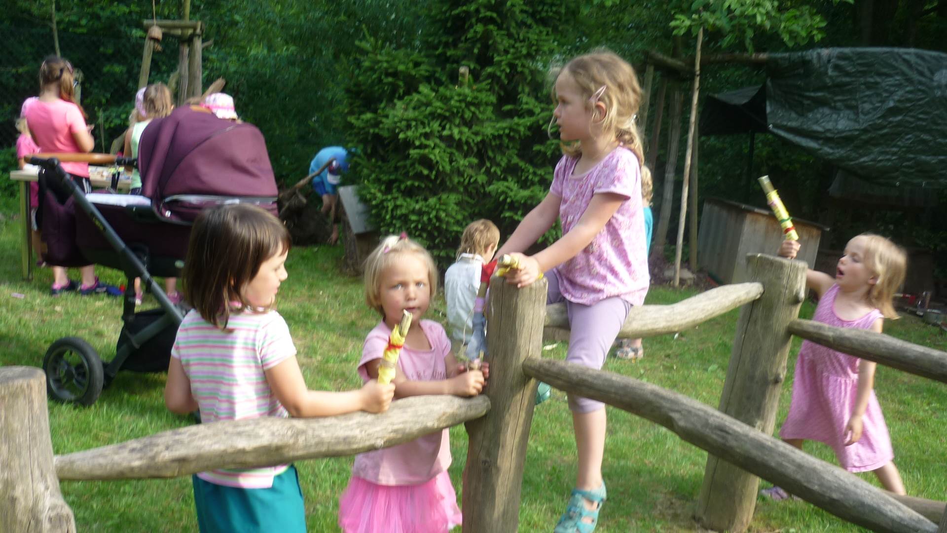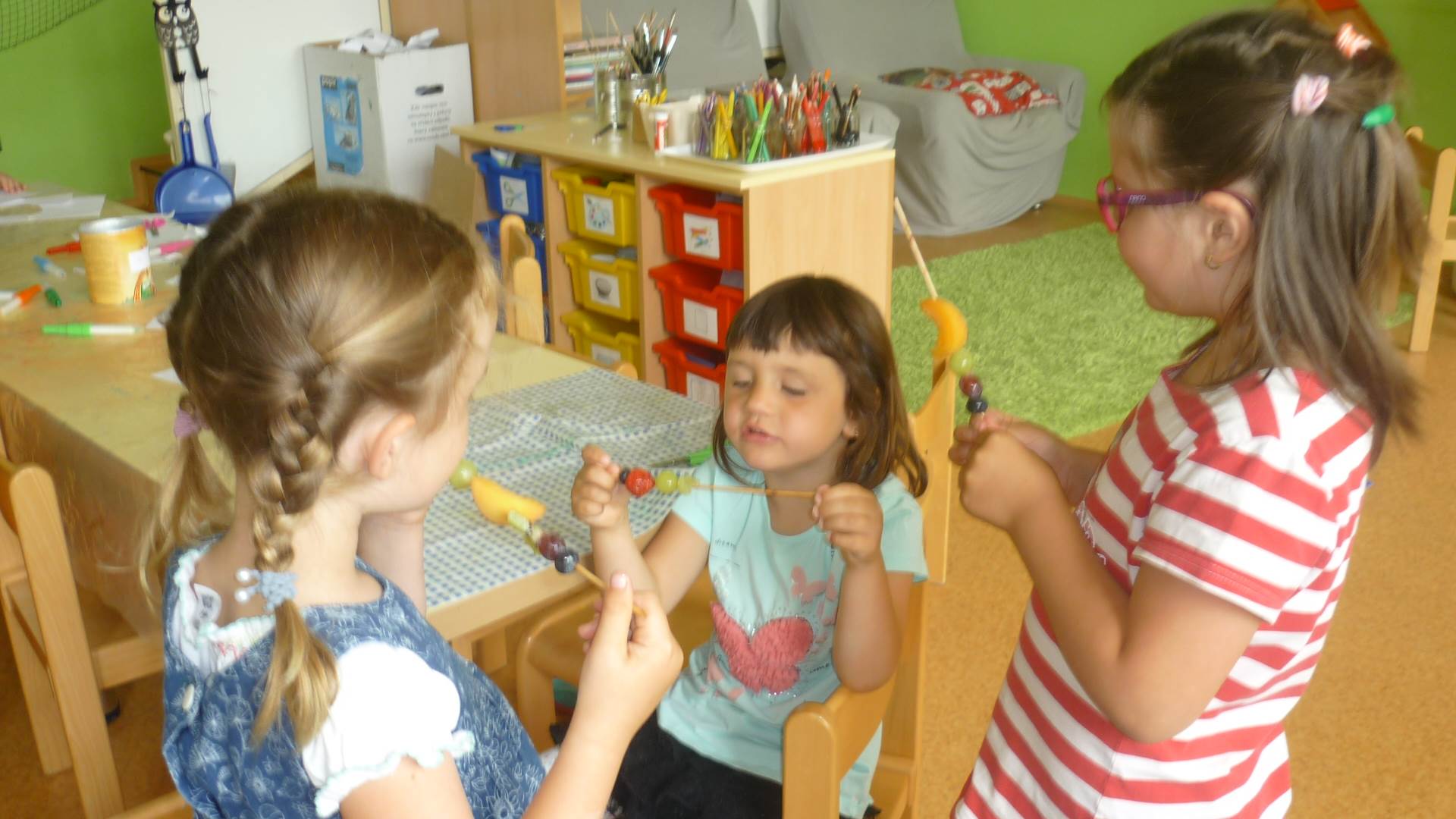 Tento týden jsme zahájili stopovanou s úkoly. V areálu u maringotky jsme se společně s rodiči rozloučili se školním rokem a paní učitelkou Dankou, která odchází do MŠ Borotín. Děti si vyrobily "větvánky" - panáčky z klacíků a dostaly na památku zvětšovací kelímek na pozorování. Pak jsme si společně opekli párky a loučili se a loučili... zkrátka bylo to dojemné. Další dny jsme slavili narozeniny Leničky, Čendy a p.uč.Olči, na balících slámy jsme procvičili hrubou motoriku a na rybníčku jsme pouštěli lodičky. Podařil se nám i výlet do Boskovic na hrad a vše jsme zakončili sladkou tečkou - zmrzlinou.
