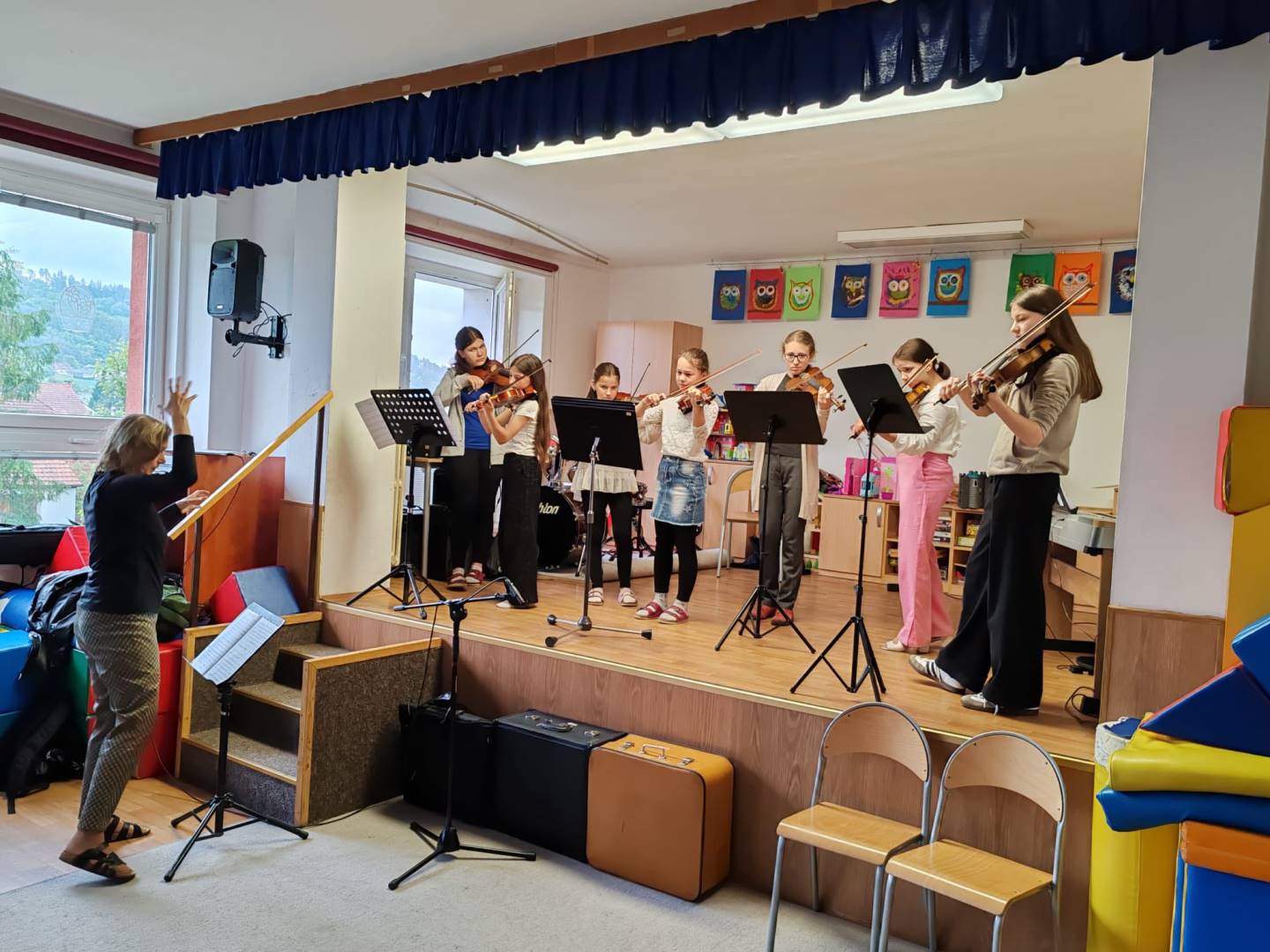Ve čtvrtek 29. 5. se naše škola proměnila v hudební scénu, kde se místo běžného vyučování rozezněly tóny různých nástrojů, zpěv, rytmy a kreativita. Projektový den byl nejen oslavou hudebního umění, ale také příležitostí pro žáky všech ročníků zapojit se do tvořivých aktivit, poznat nové hudební styly a podpořit svůj hudební um.