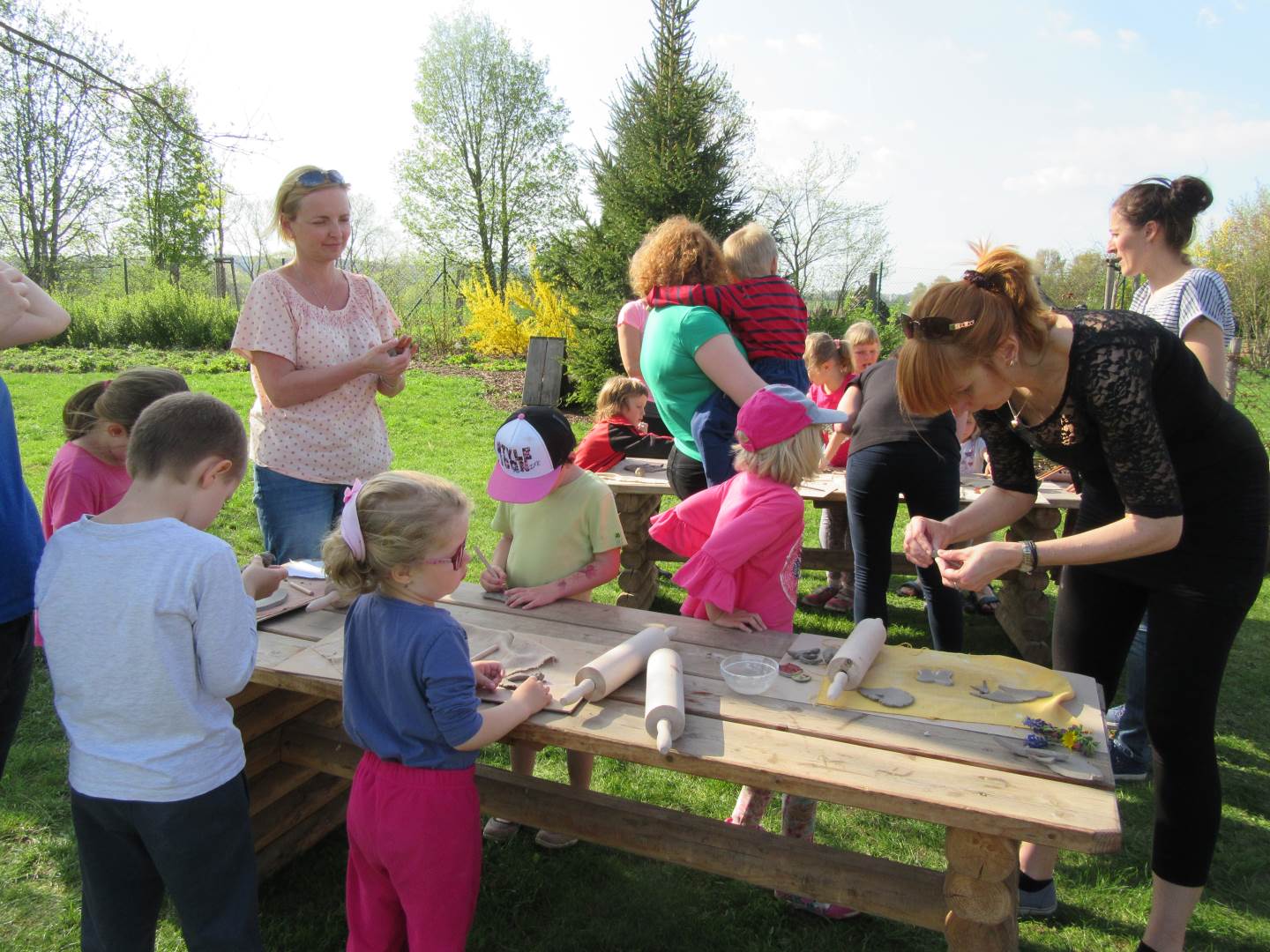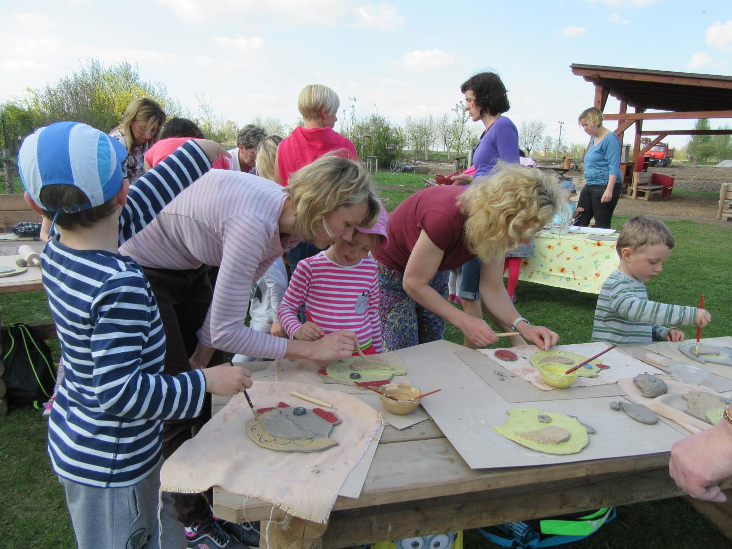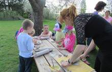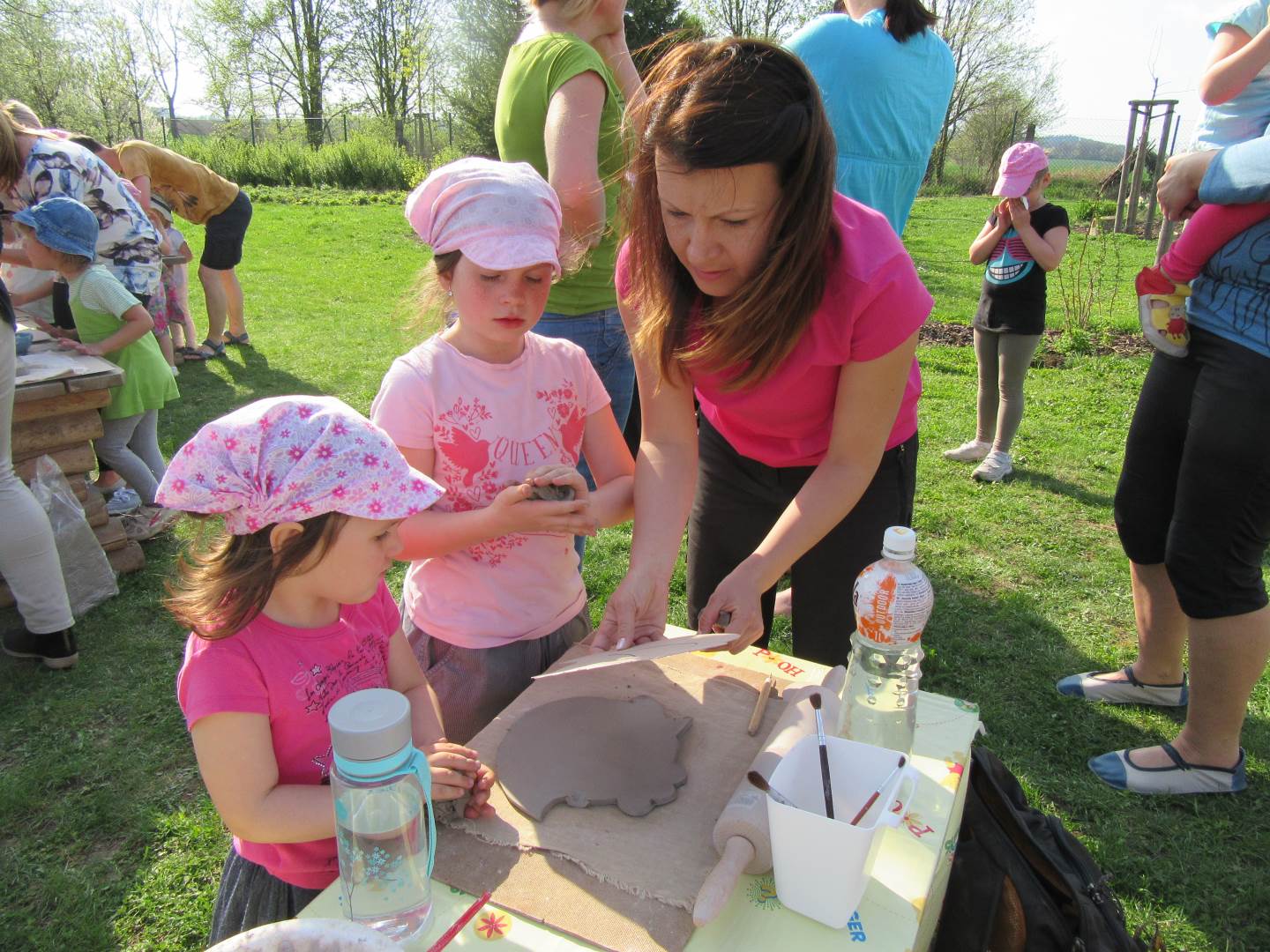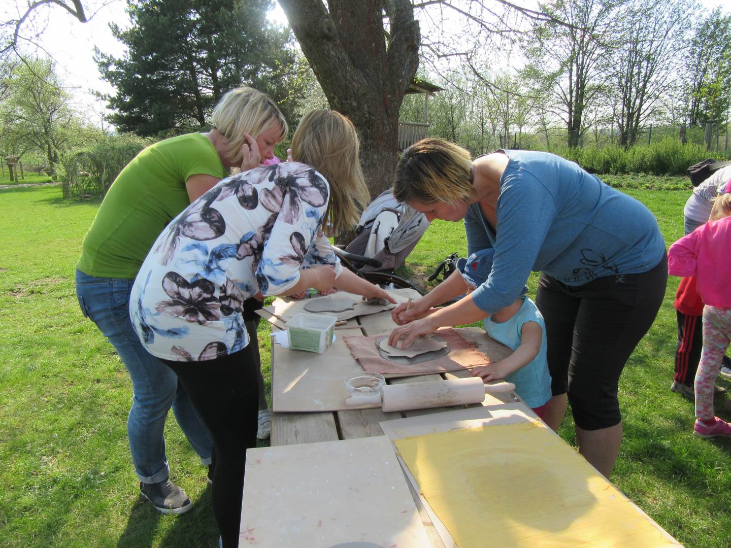 Ve čtvrtek 19. dubna jsme se sešli s dětmi a rodiči na naší zahradě. Tvořili jsme z keramické hlíny, učili se, jak s ní správně pravovat, malovali jsme engobou. Hotové výrobky se právě suší a chystají na výpal v keramické peci. Dílničky na zahradě byly moc příjemné, těšíme se na další setkávání.
