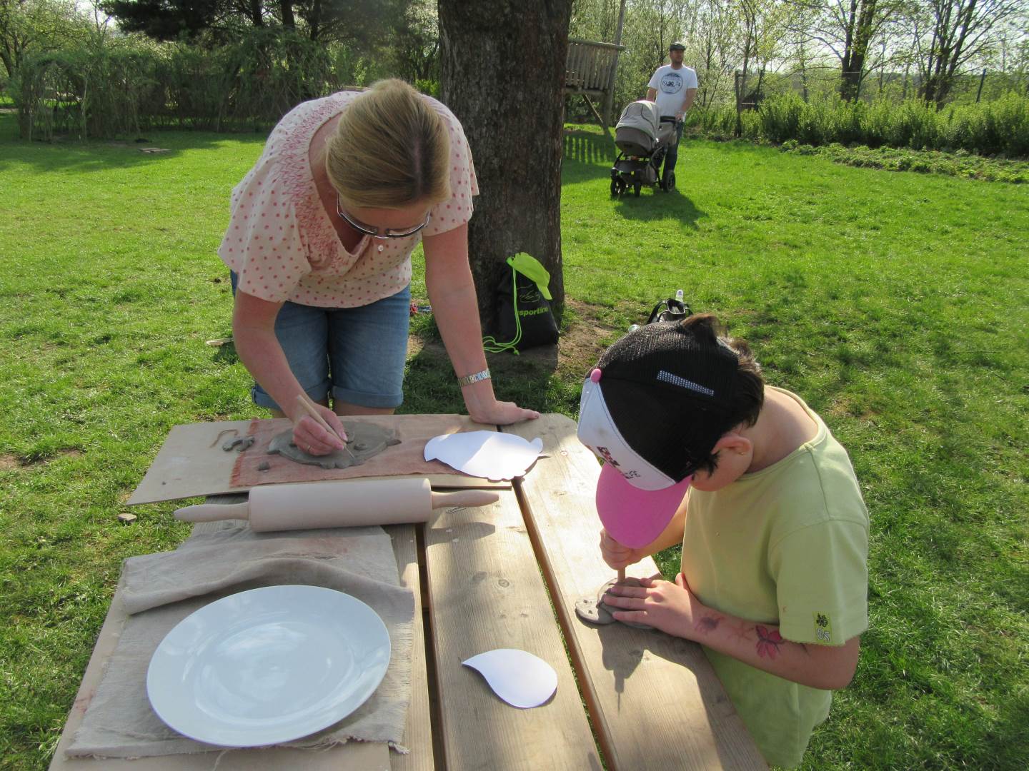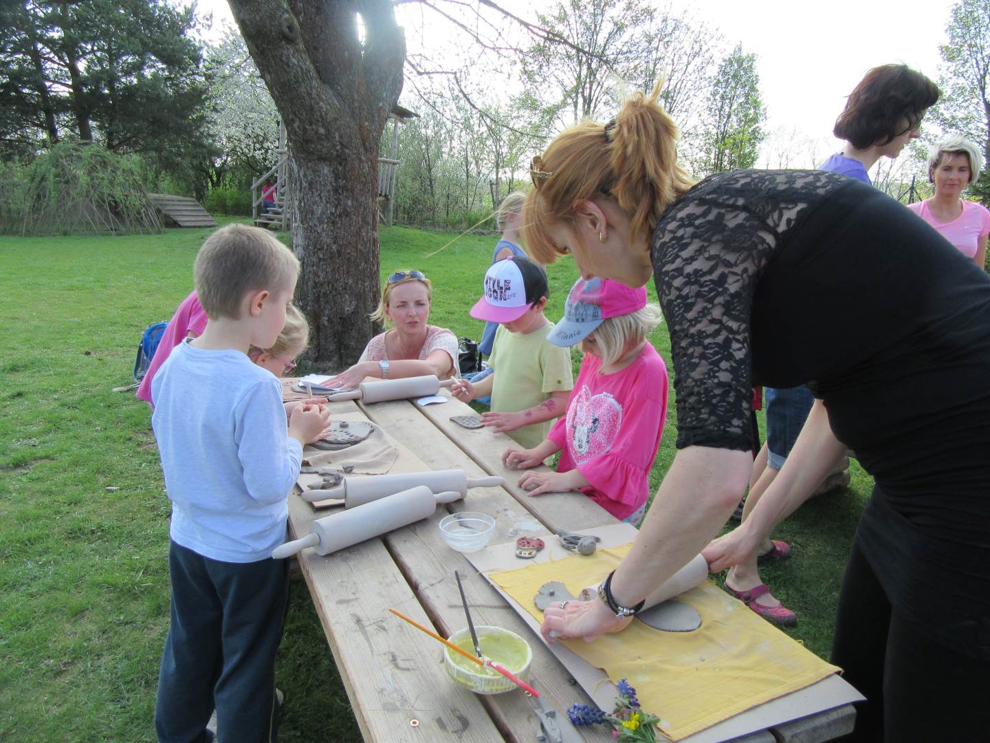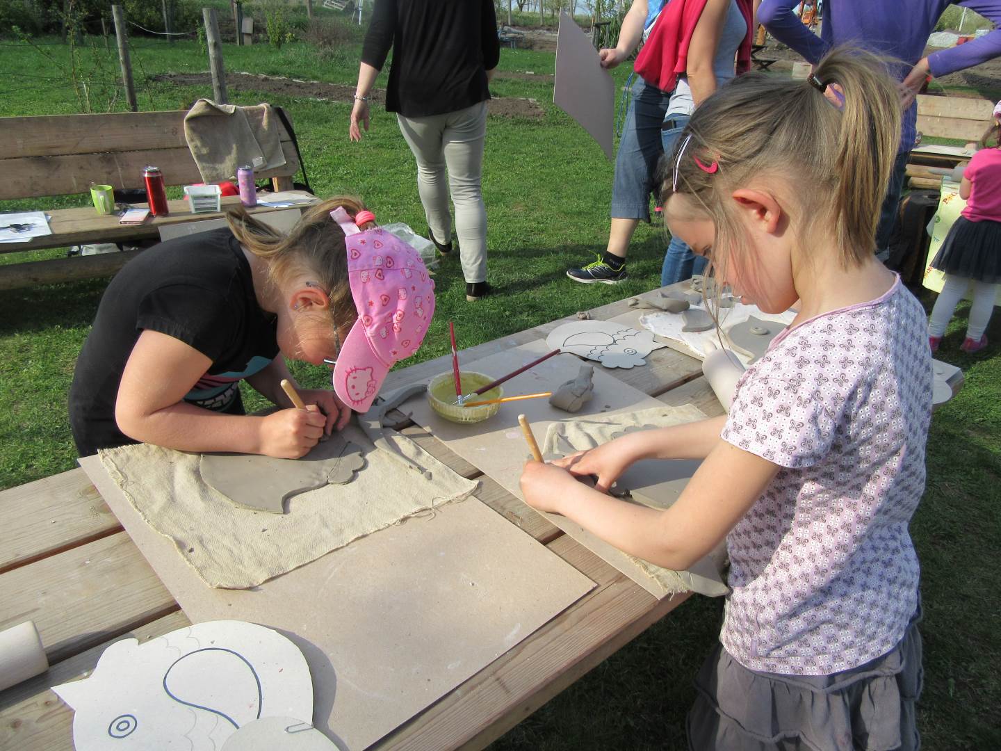 Ve čtvrtek 19. dubna jsme se sešli s dětmi a rodiči na naší zahradě. Tvořili jsme z keramické hlíny, učili se, jak s ní správně pravovat, malovali jsme engobou. Hotové výrobky se právě suší a chystají na výpal v keramické peci. Dílničky na zahradě byly moc příjemné, těšíme se na další setkávání.