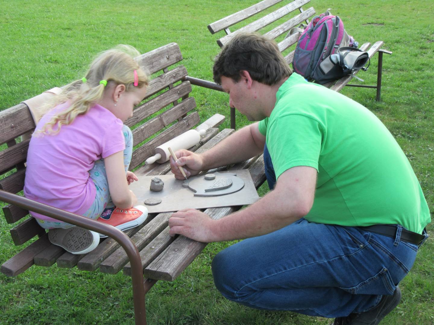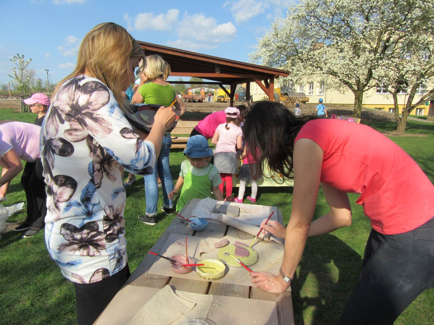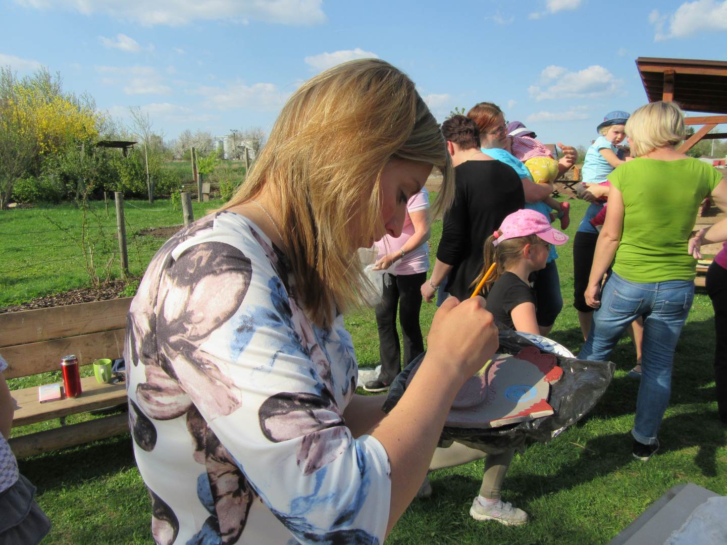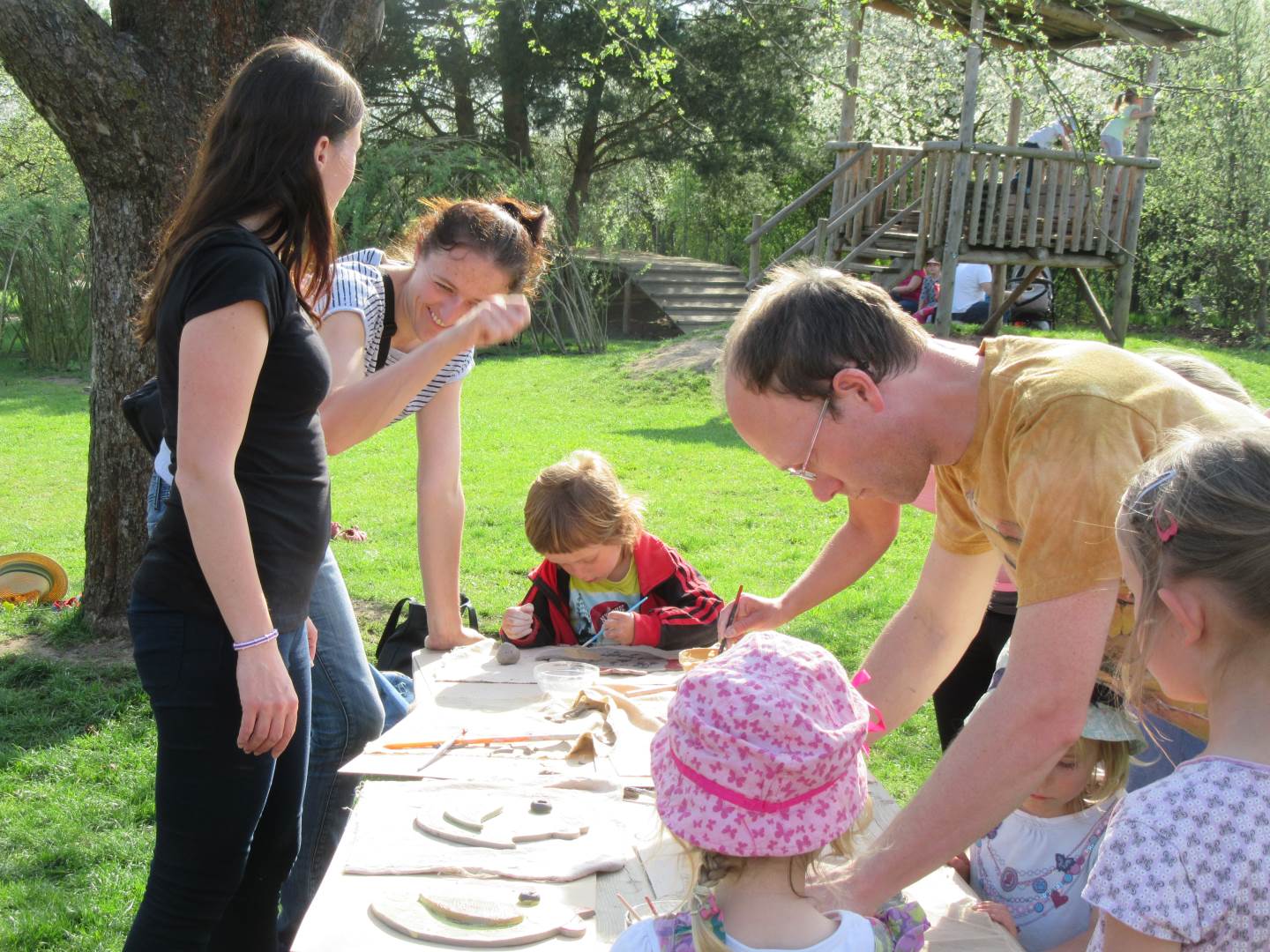 Ve čtvrtek 19. dubna jsme se sešli s dětmi a rodiči na naší zahradě. Tvořili jsme z keramické hlíny, učili se, jak s ní správně pravovat, malovali jsme engobou. Hotové výrobky se právě suší a chystají na výpal v keramické peci. Dílničky na zahradě byly moc příjemné, těšíme se na další setkávání.