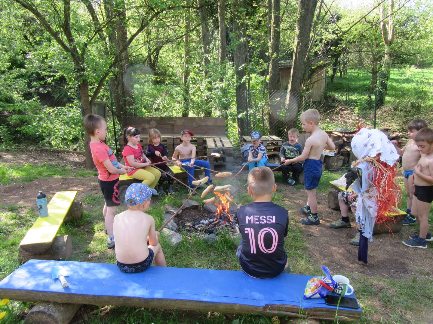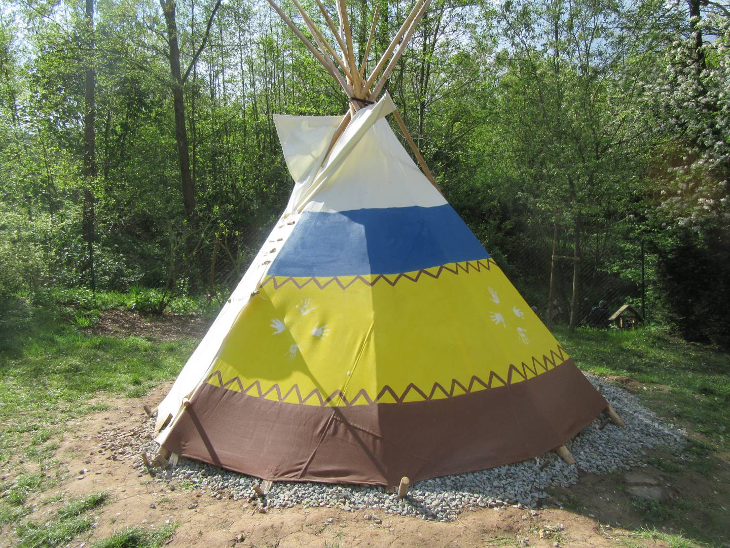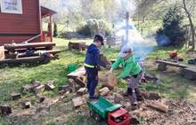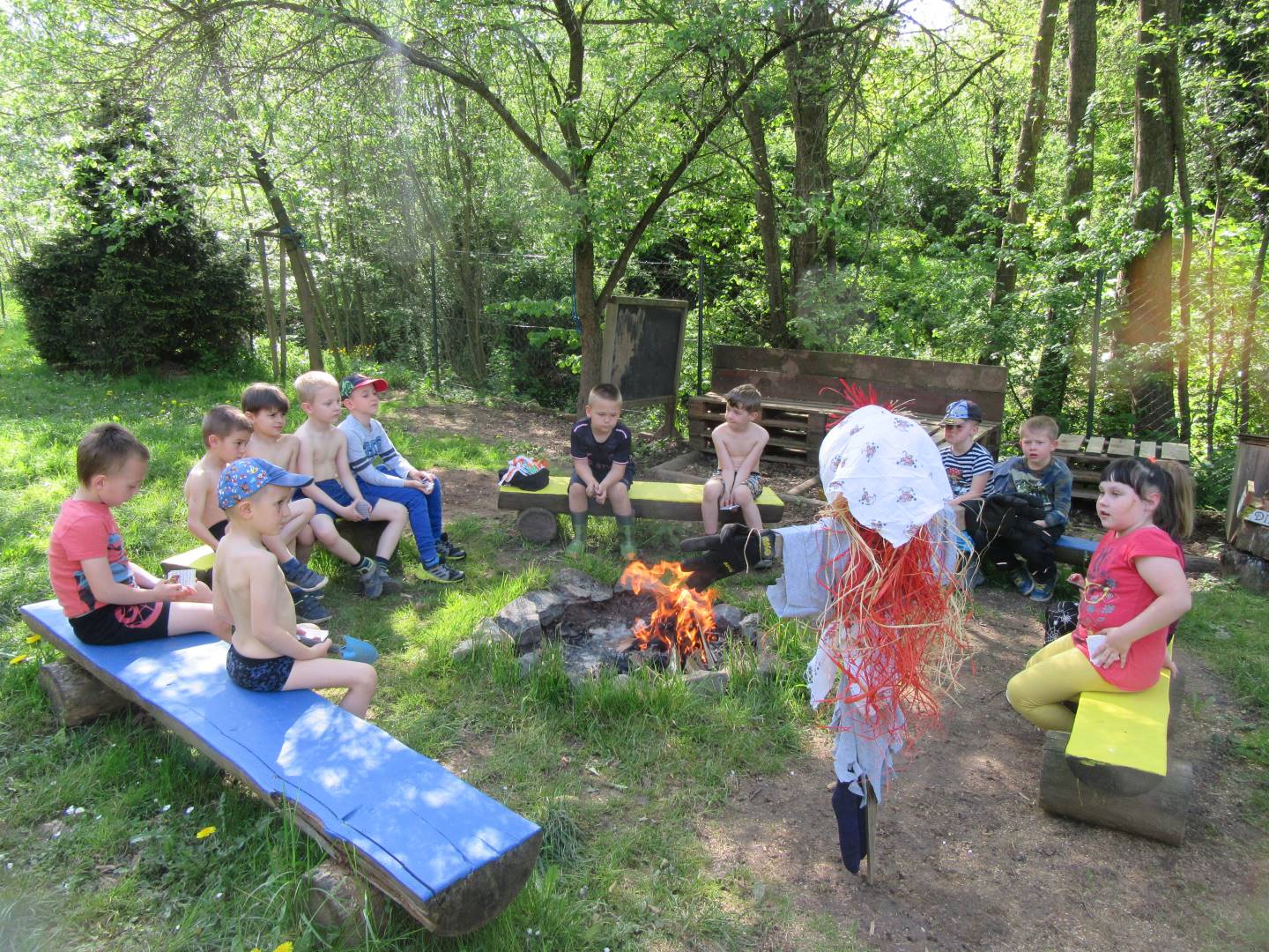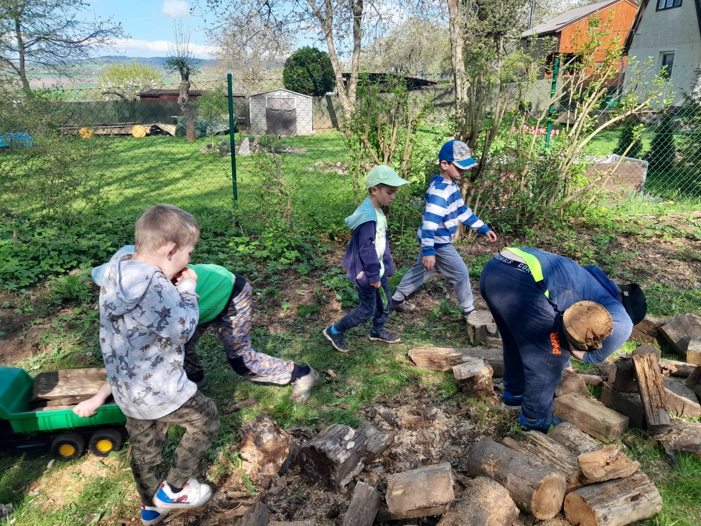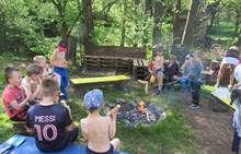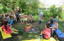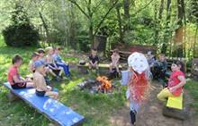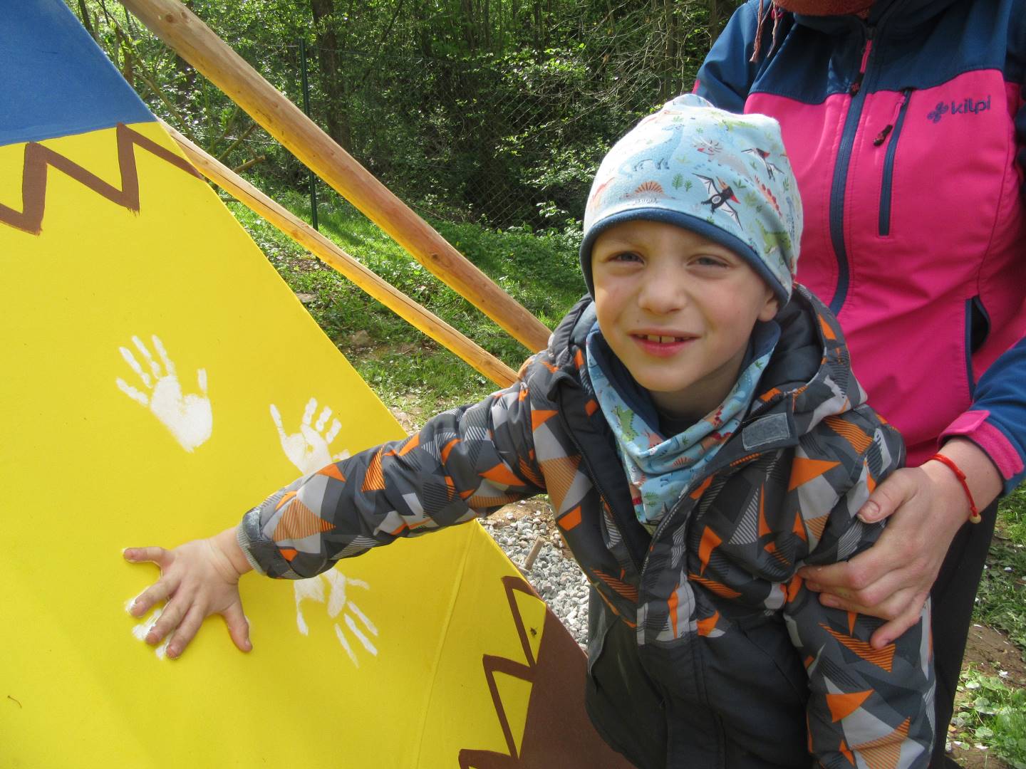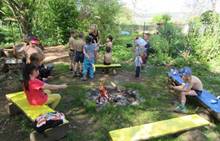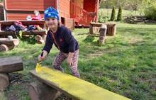 Duben 2024 - jaro, projektový den Fyzika, dopravní prostředky, zdobení týpí a úklid dřeva u maringotky, muzikodrama, slavíme čarodějnice