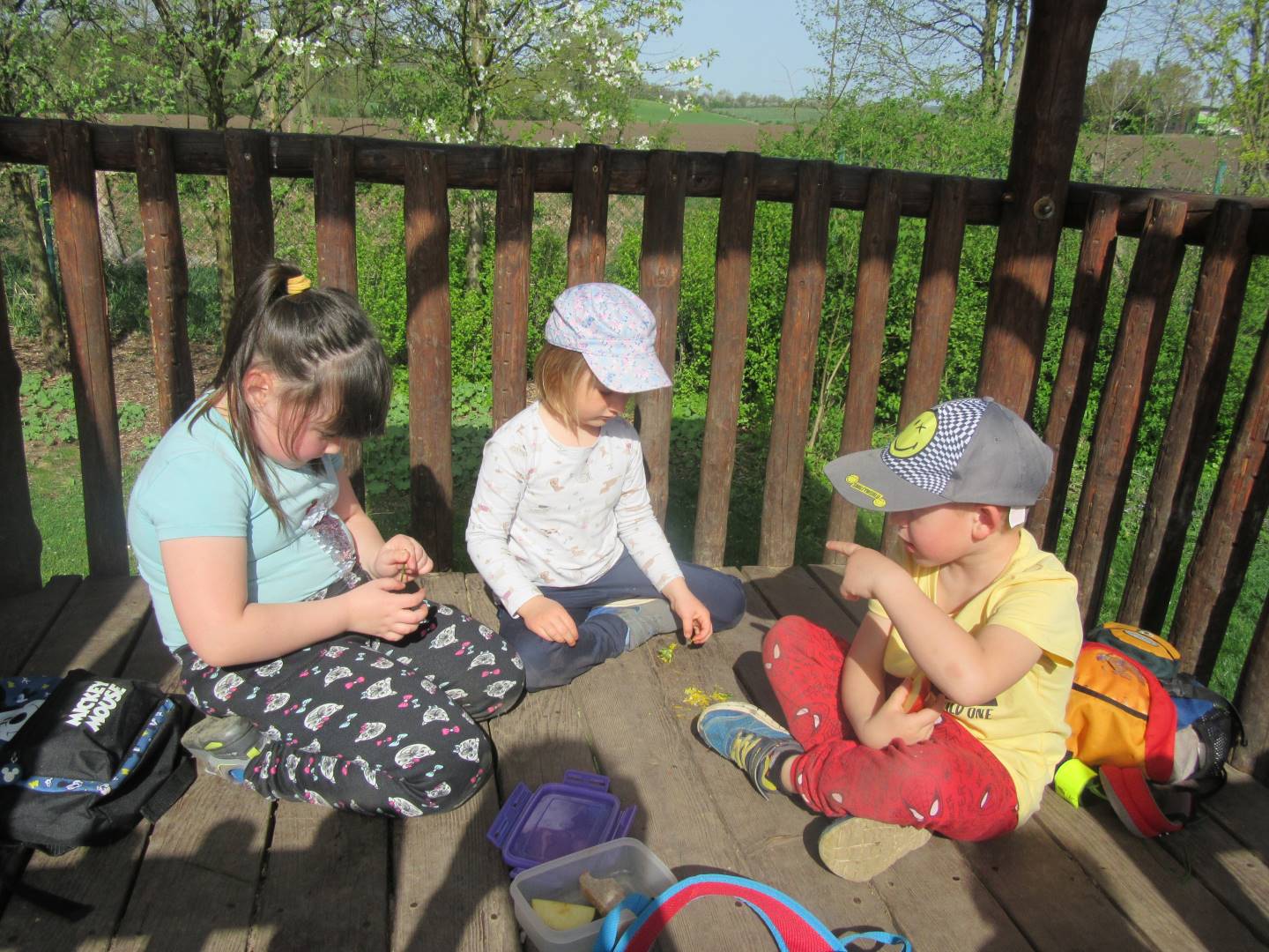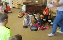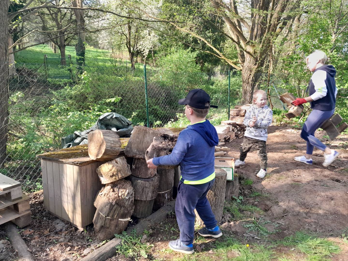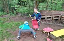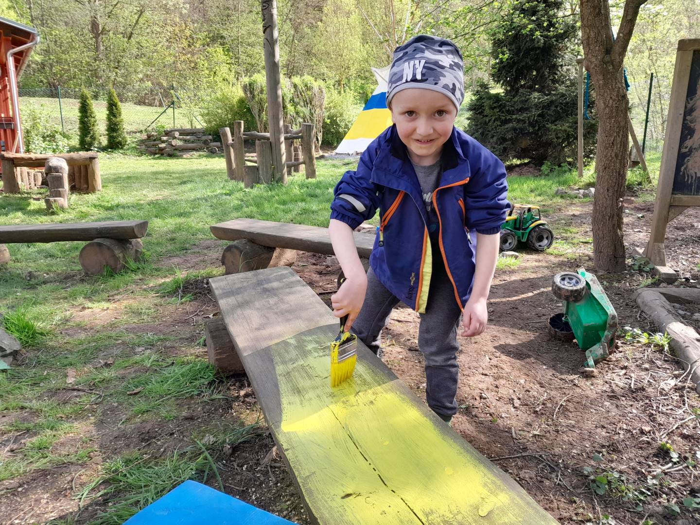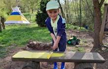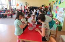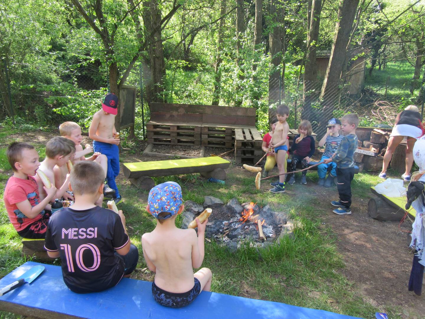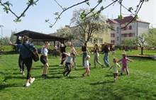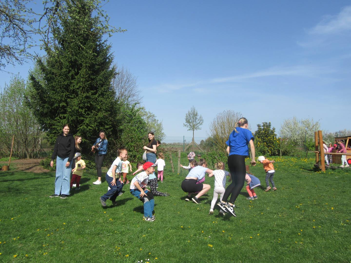 Duben 2024 - jaro, projektový den Fyzika, dopravní prostředky, zdobení týpí a úklid dřeva u maringotky, muzikodrama, slavíme čarodějnice