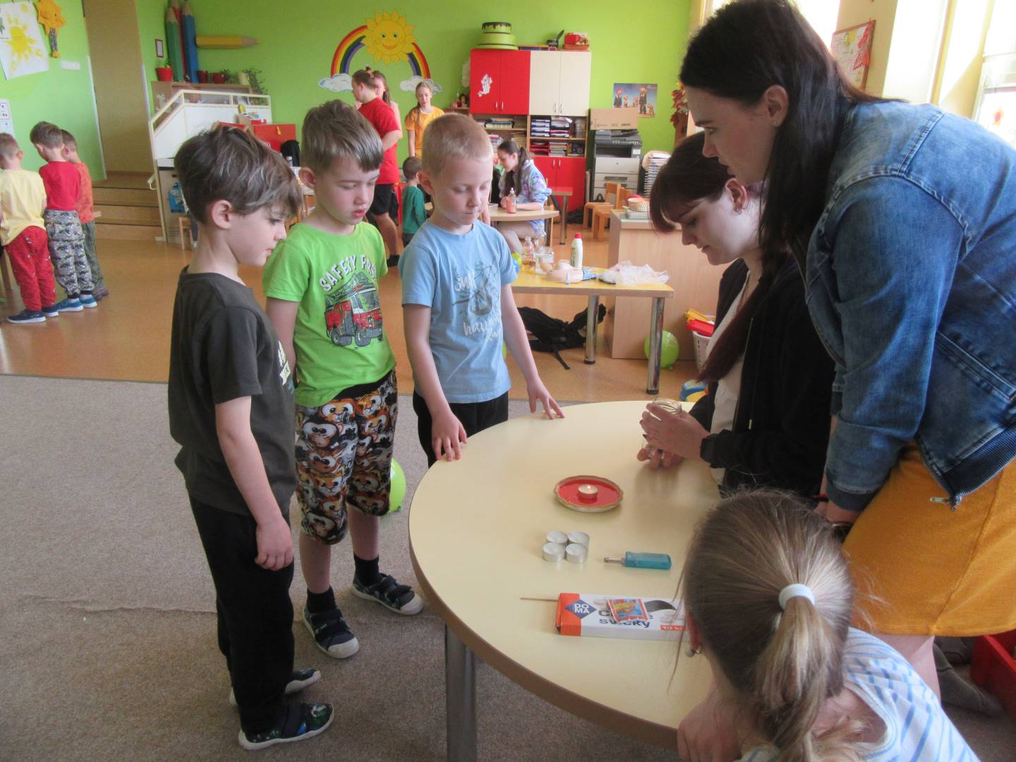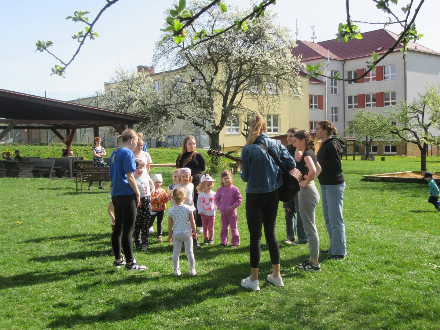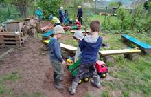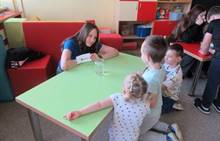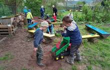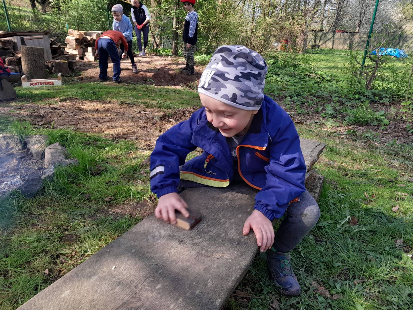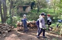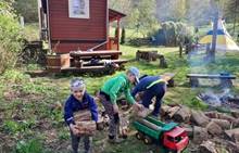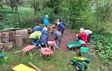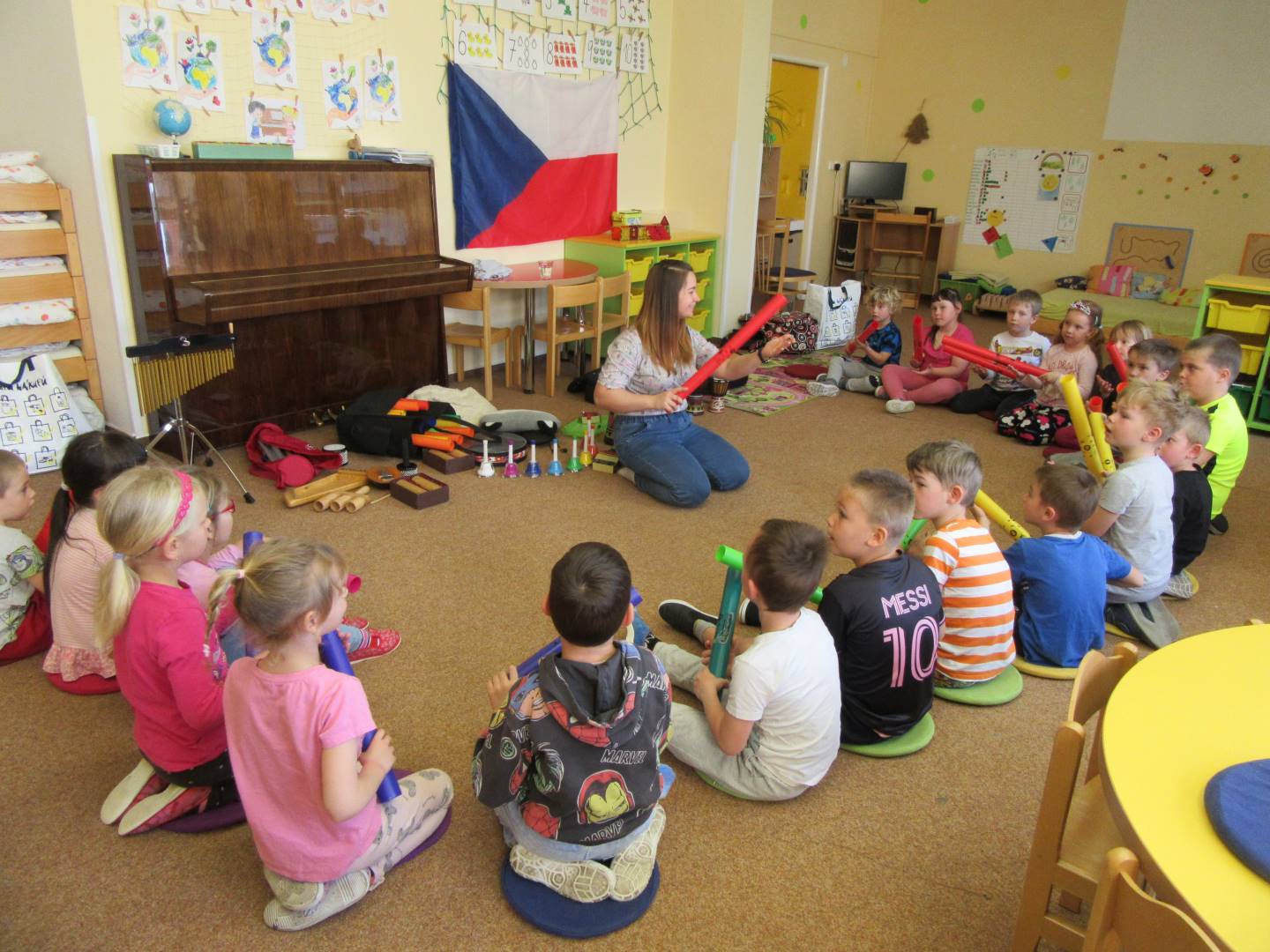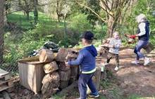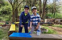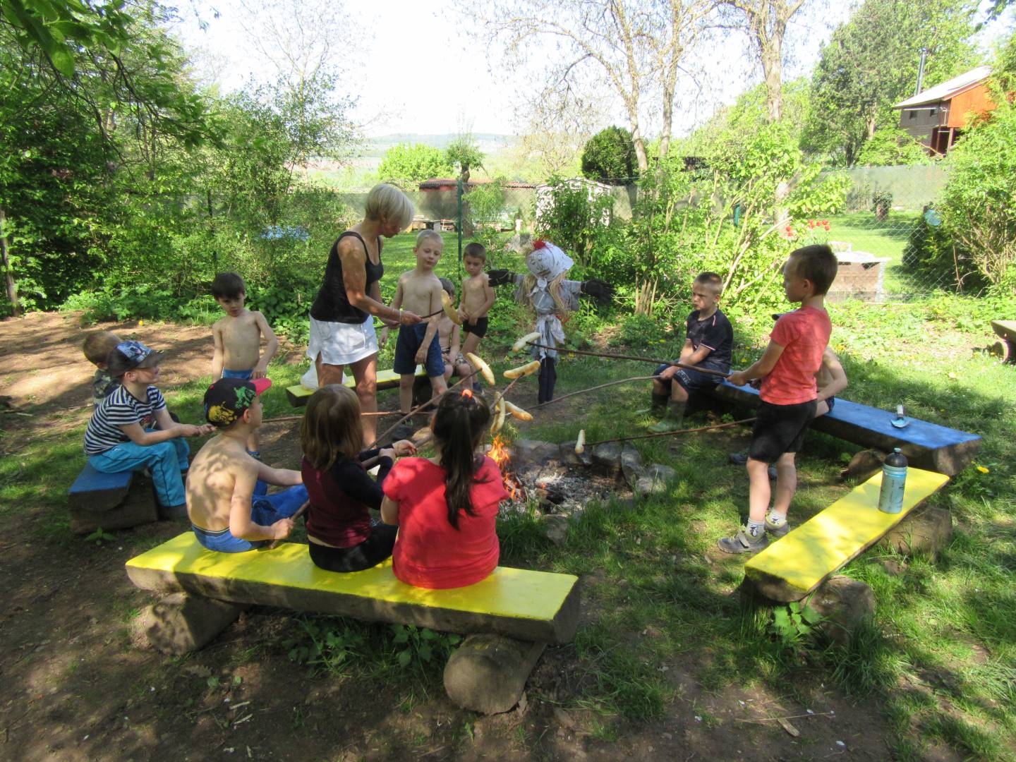 Duben 2024 - jaro, projektový den Fyzika, dopravní prostředky, zdobení týpí a úklid dřeva u maringotky, muzikodrama, slavíme čarodějnice