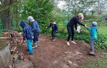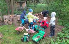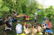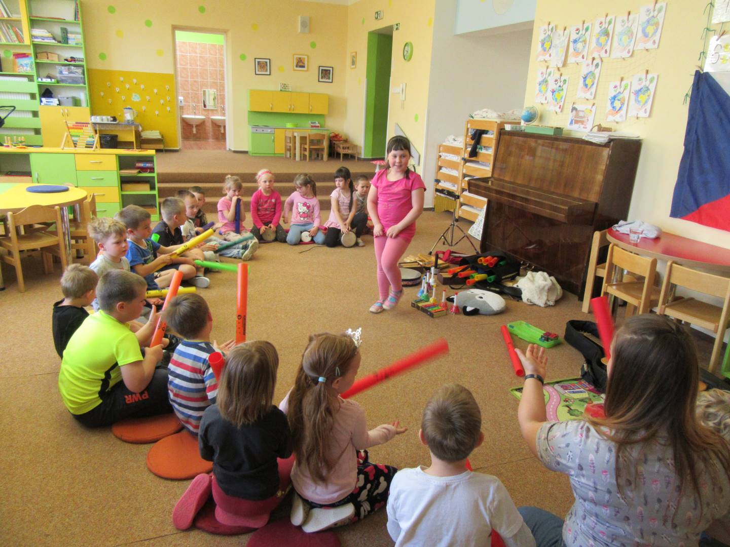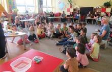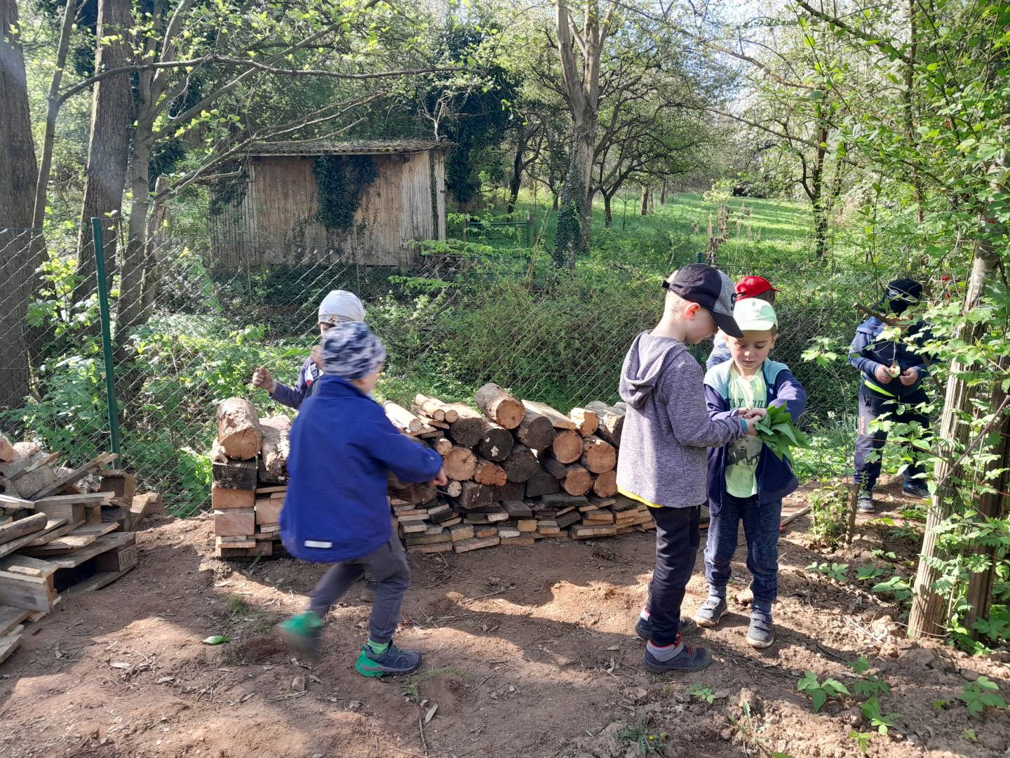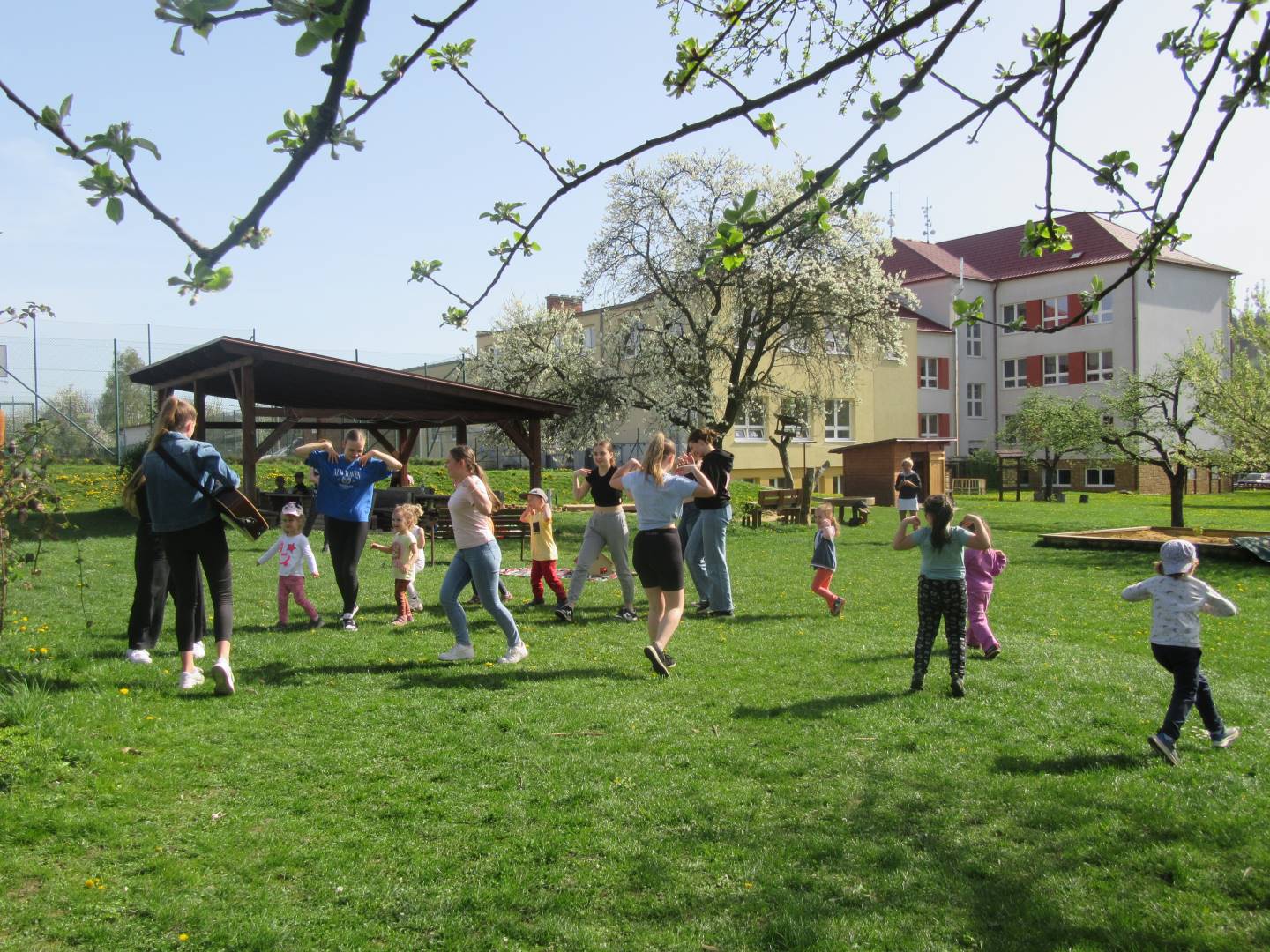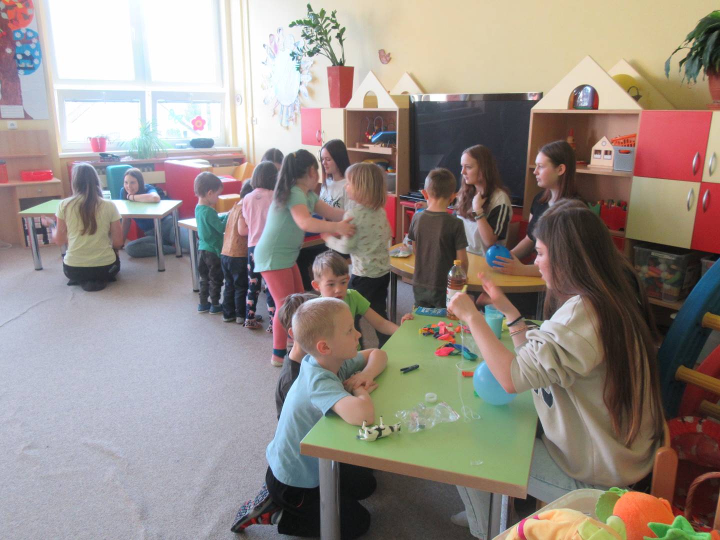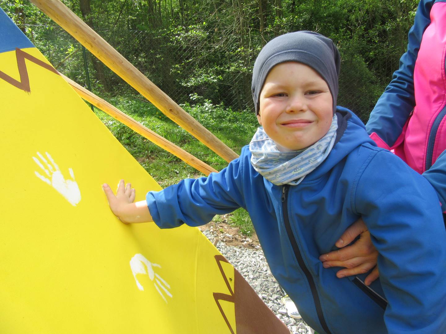Duben 2024 - jaro, projektový den Fyzika, dopravní prostředky, zdobení týpí a úklid dřeva u maringotky, muzikodrama, slavíme čarodějnice