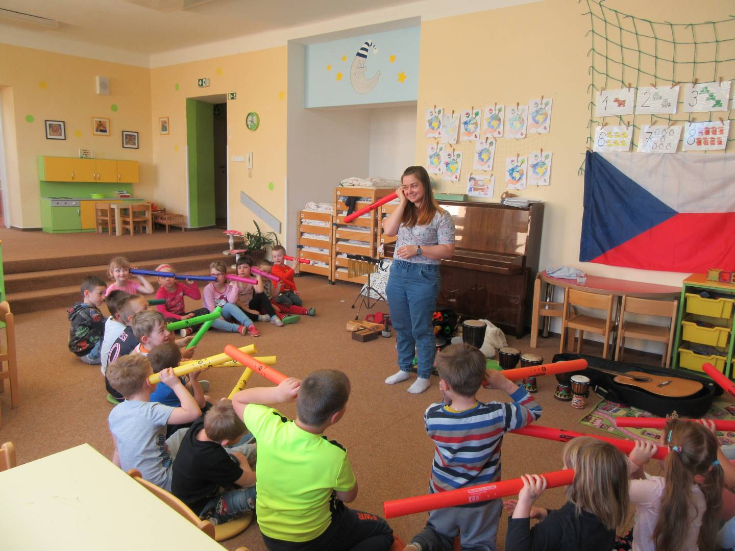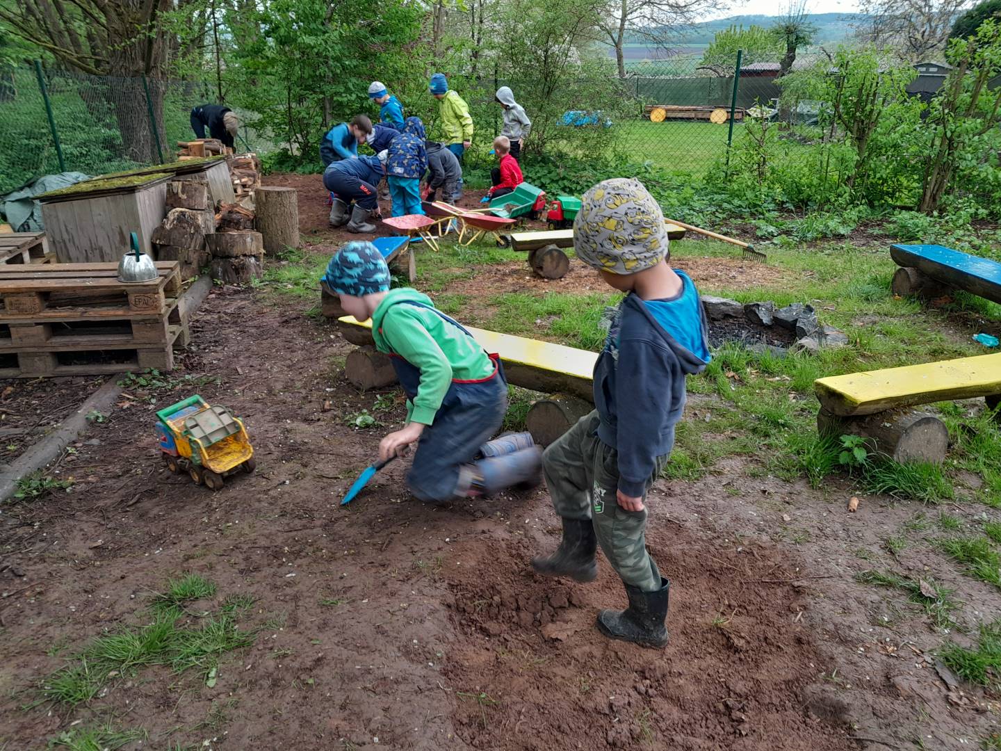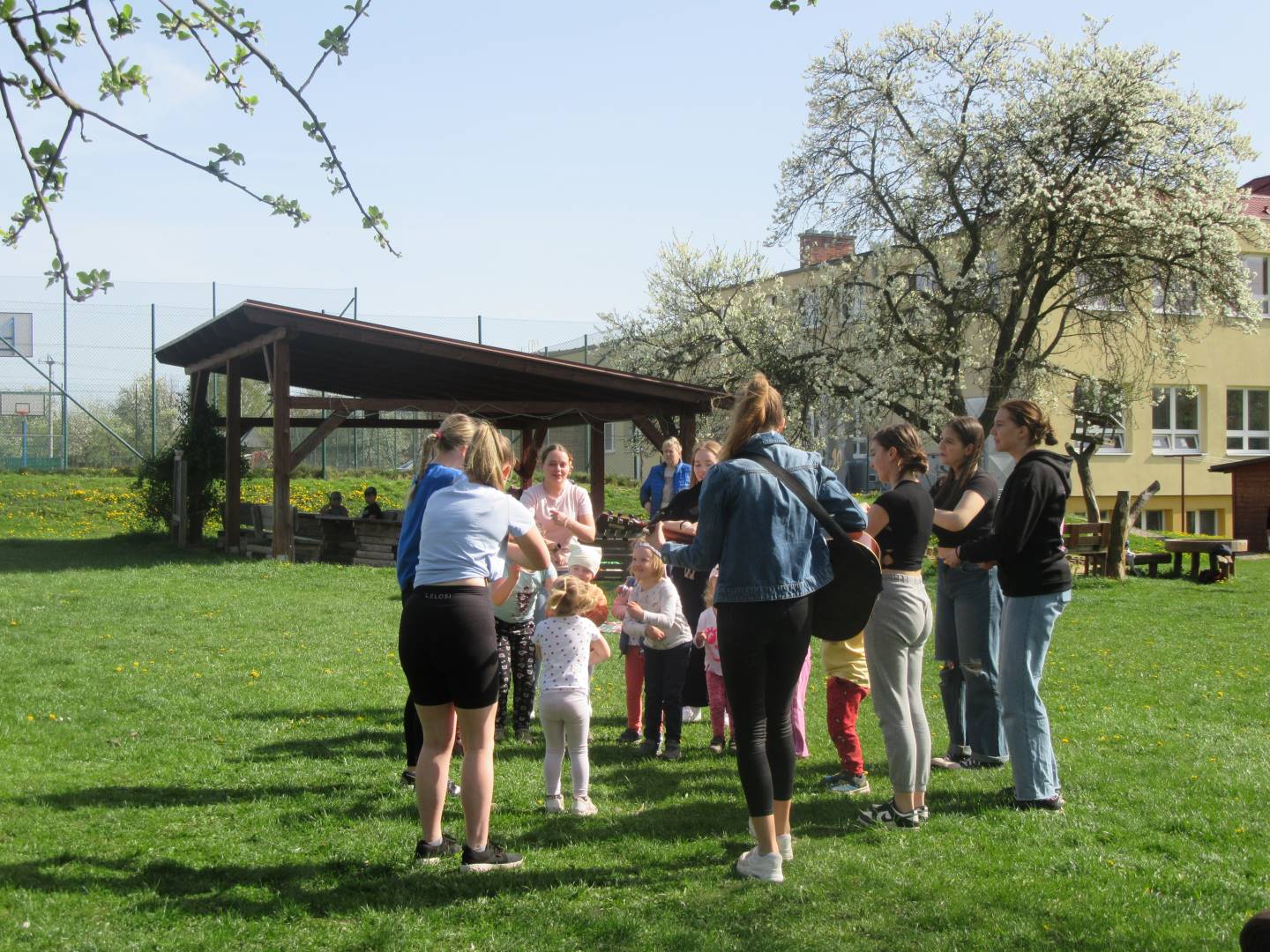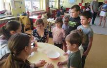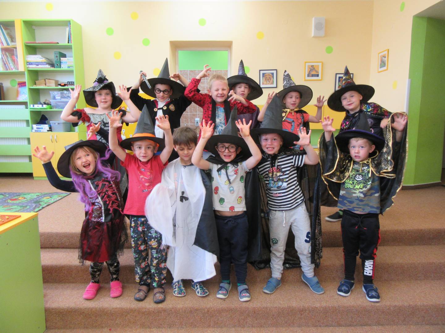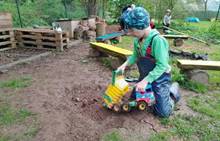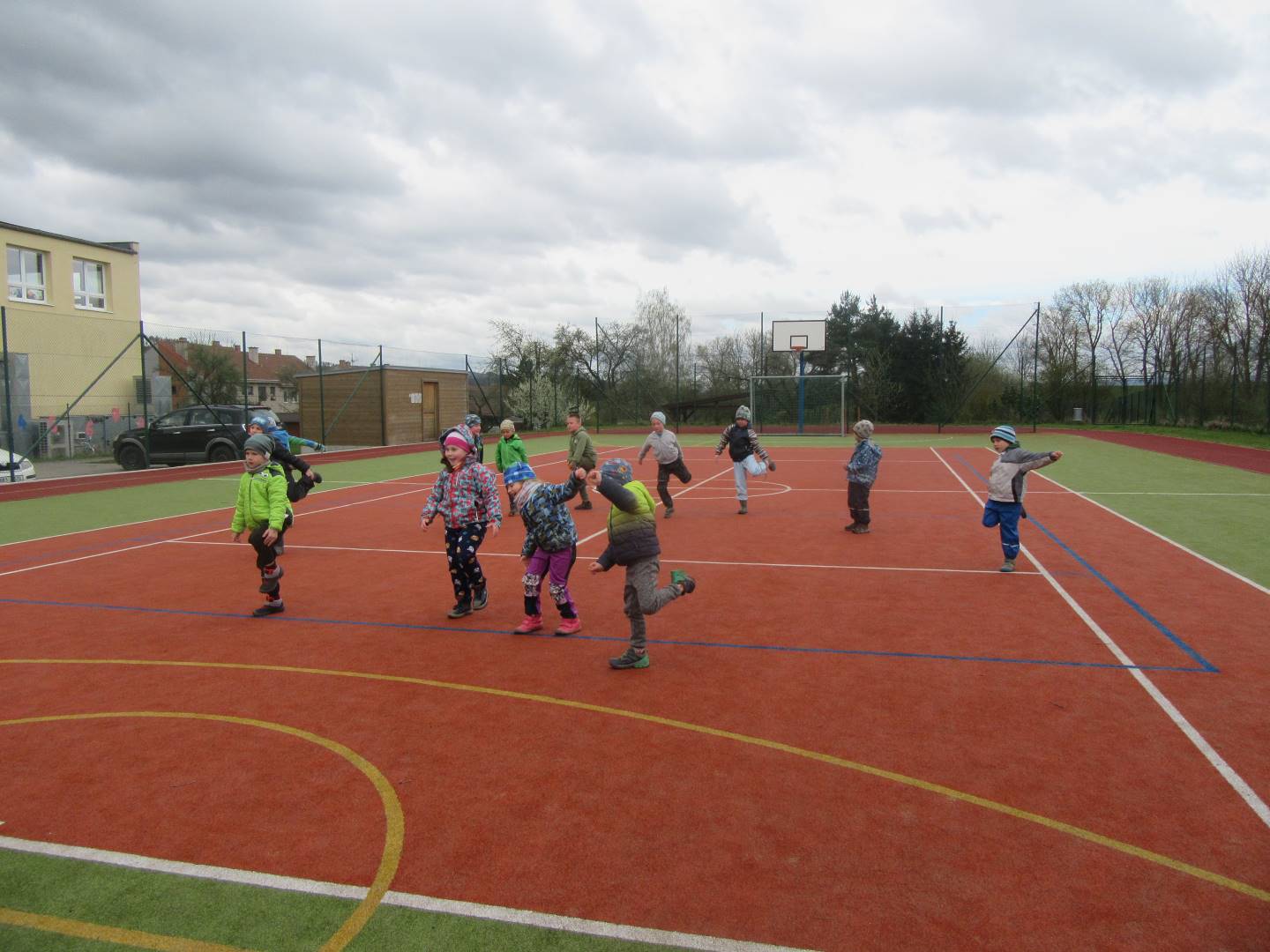 Duben 2024 - jaro, projektový den Fyzika, dopravní prostředky, zdobení týpí a úklid dřeva u maringotky, muzikodrama, slavíme čarodějnice