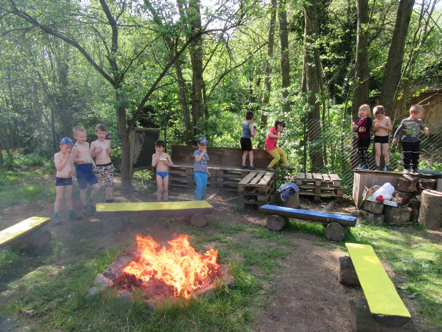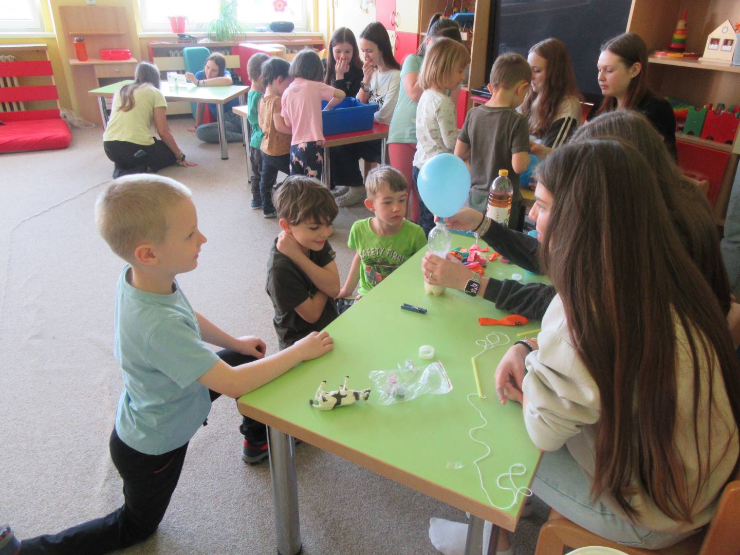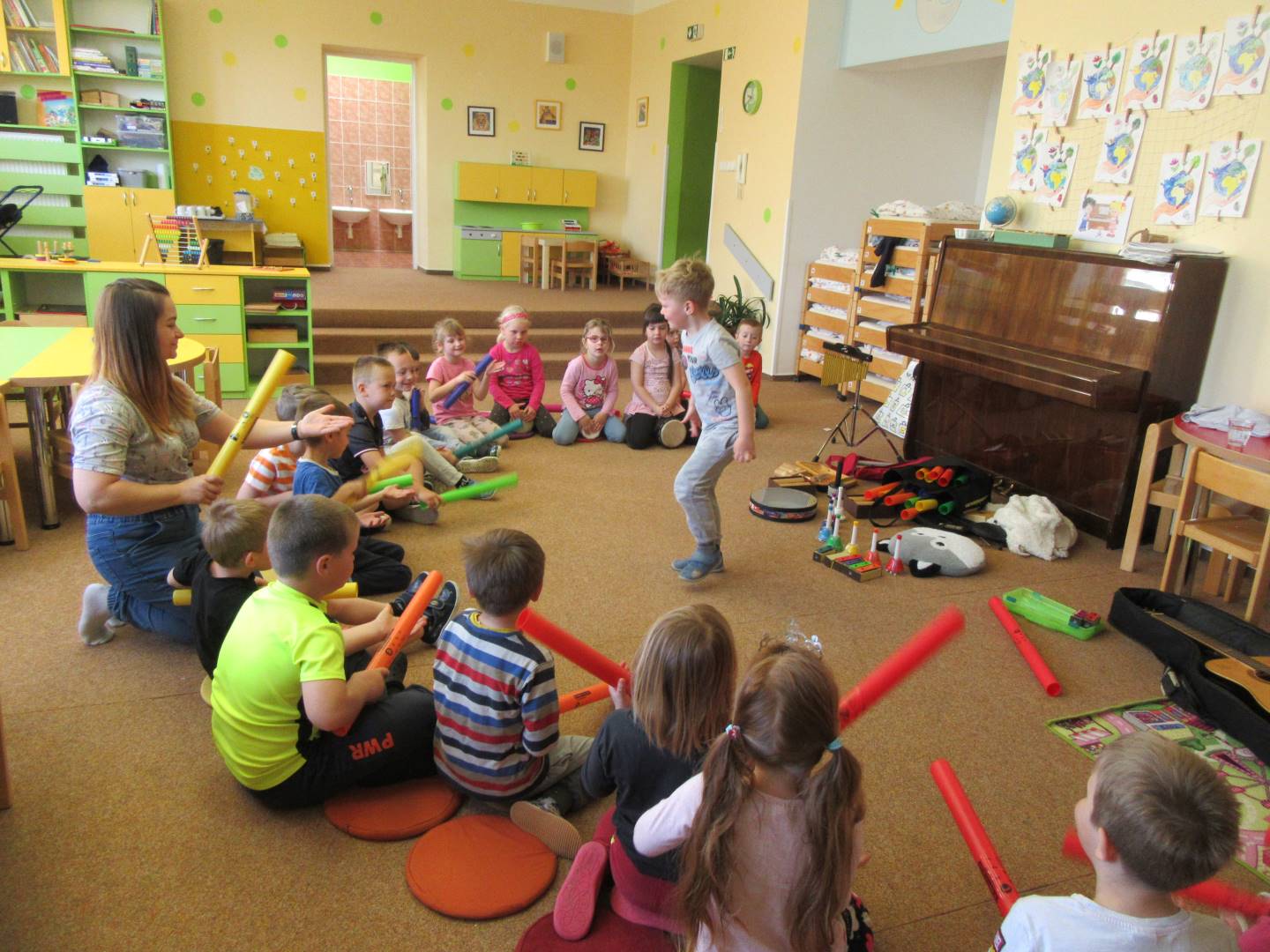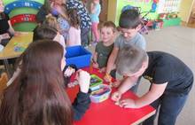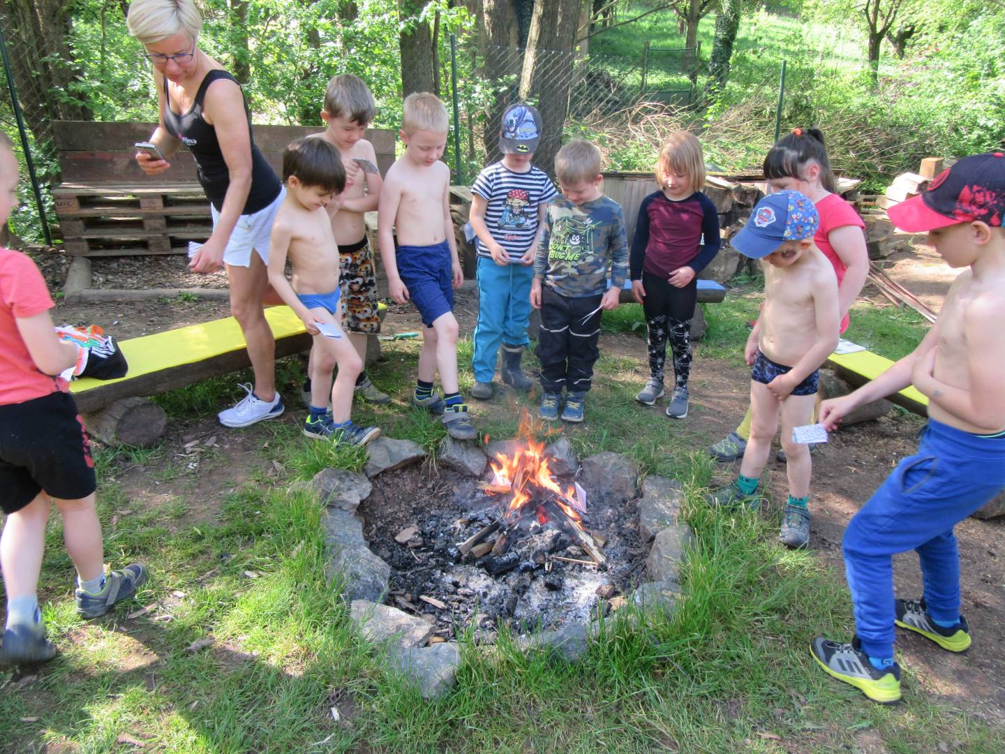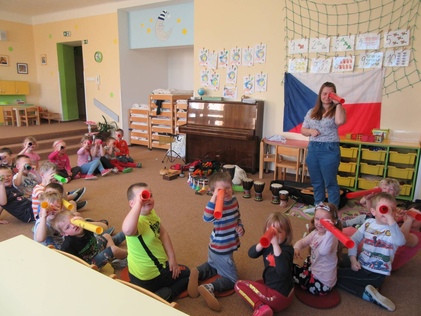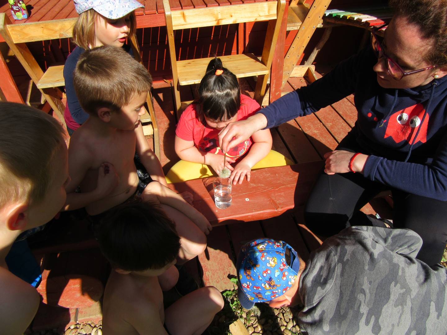 Duben 2024 - jaro, projektový den Fyzika, dopravní prostředky, zdobení týpí a úklid dřeva u maringotky, muzikodrama, slavíme čarodějnice