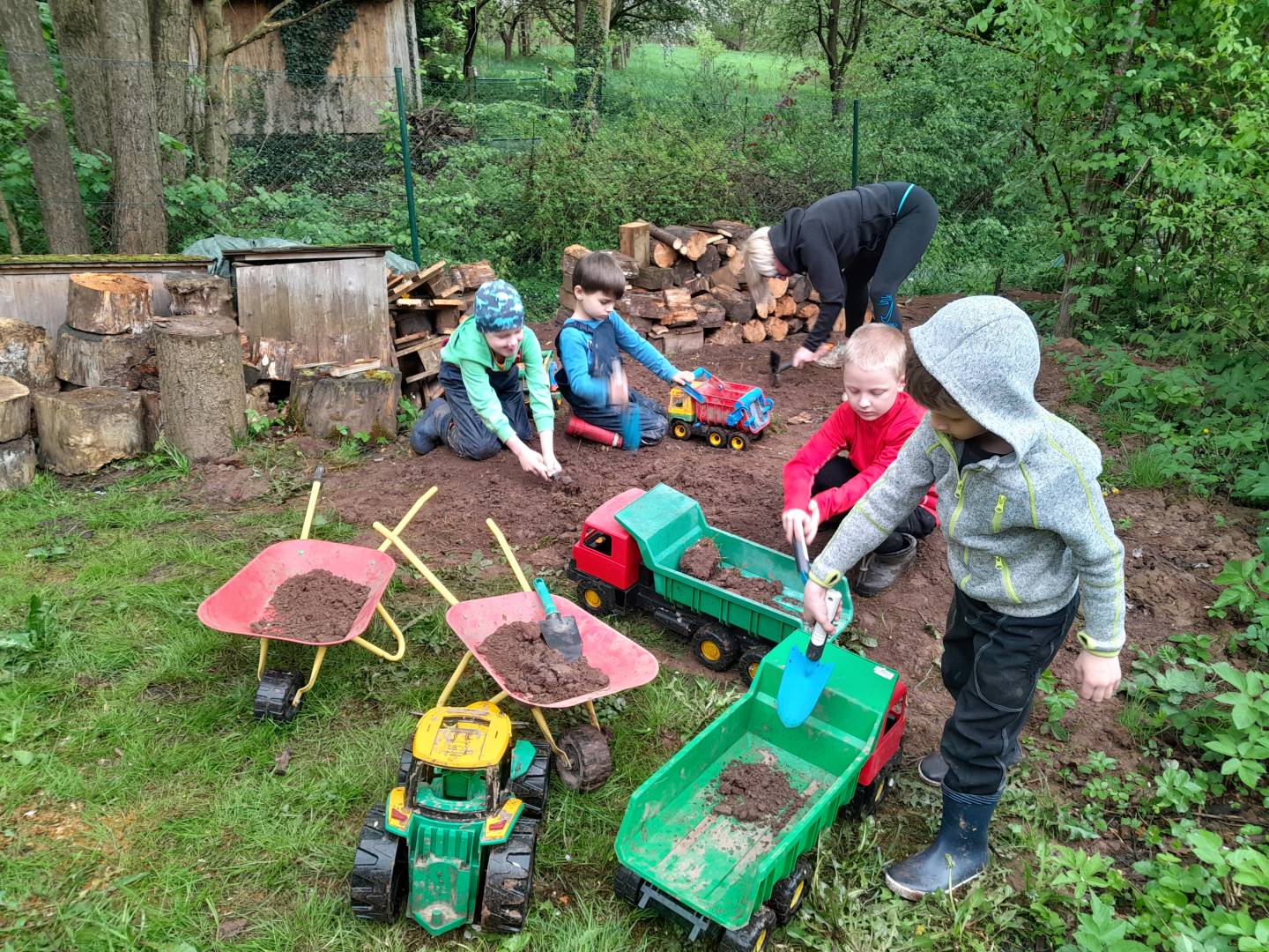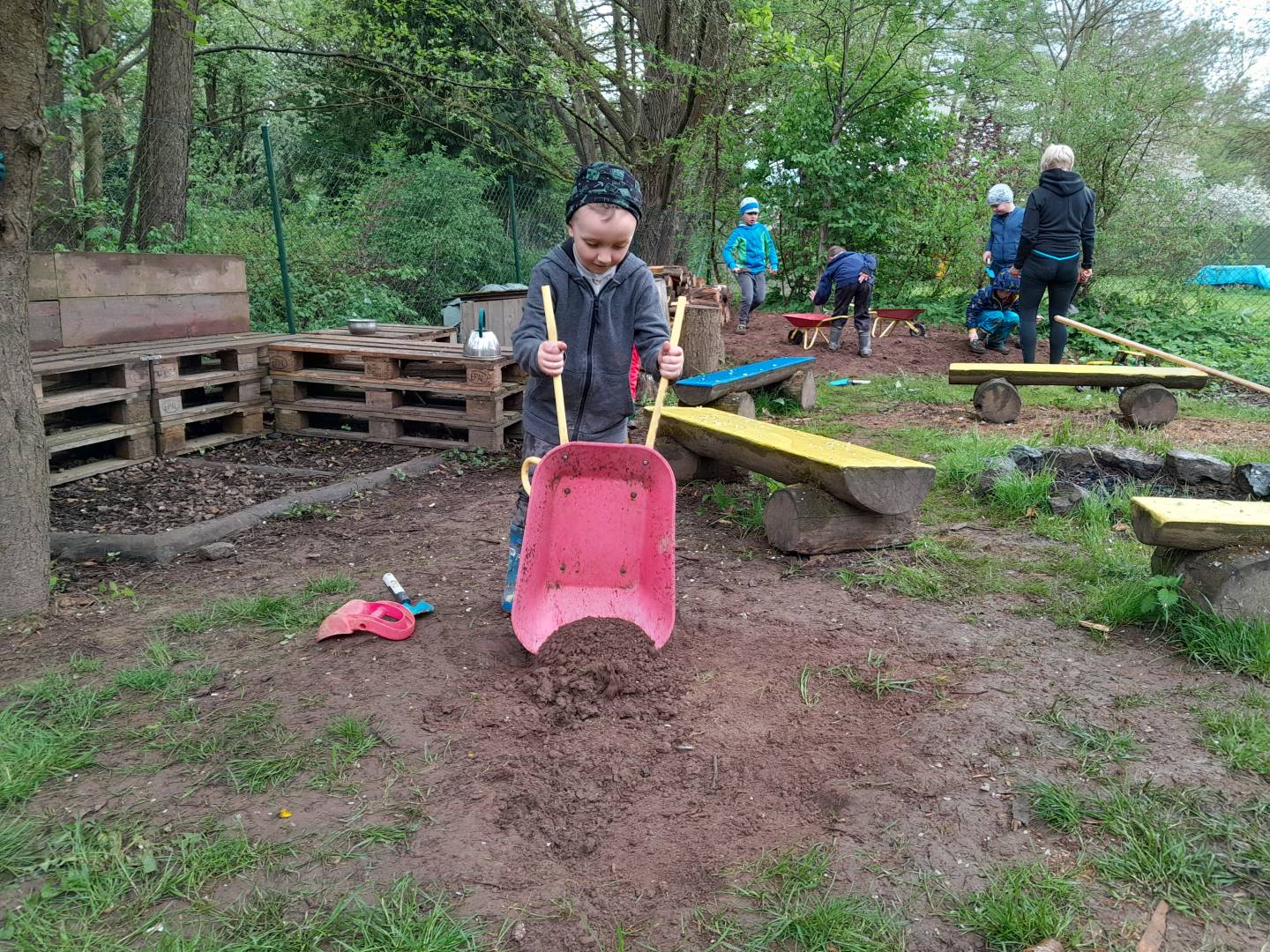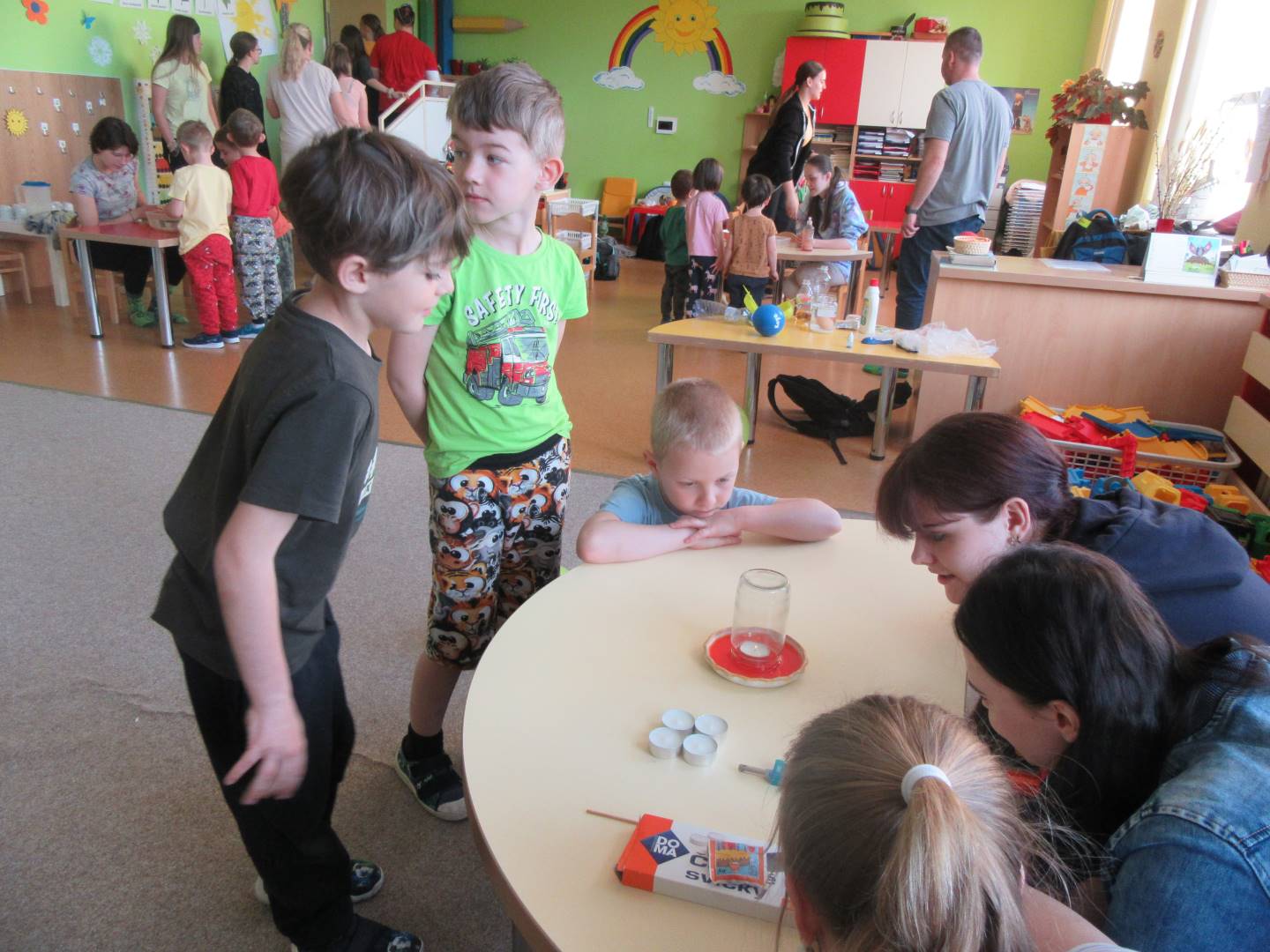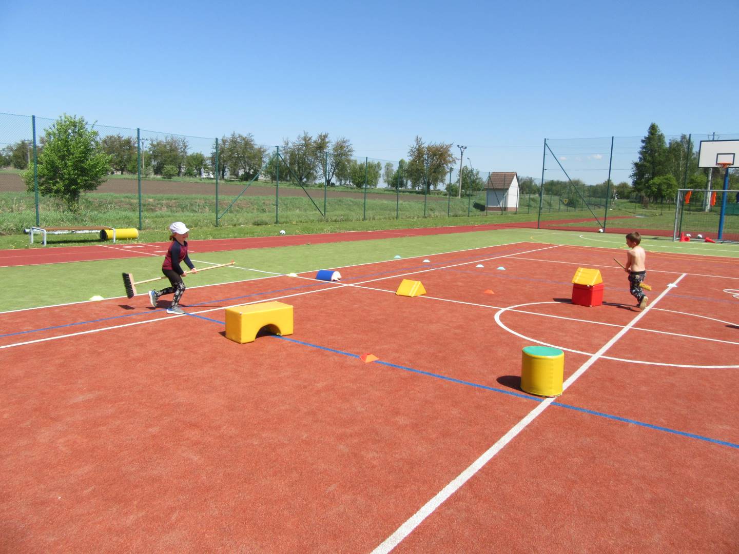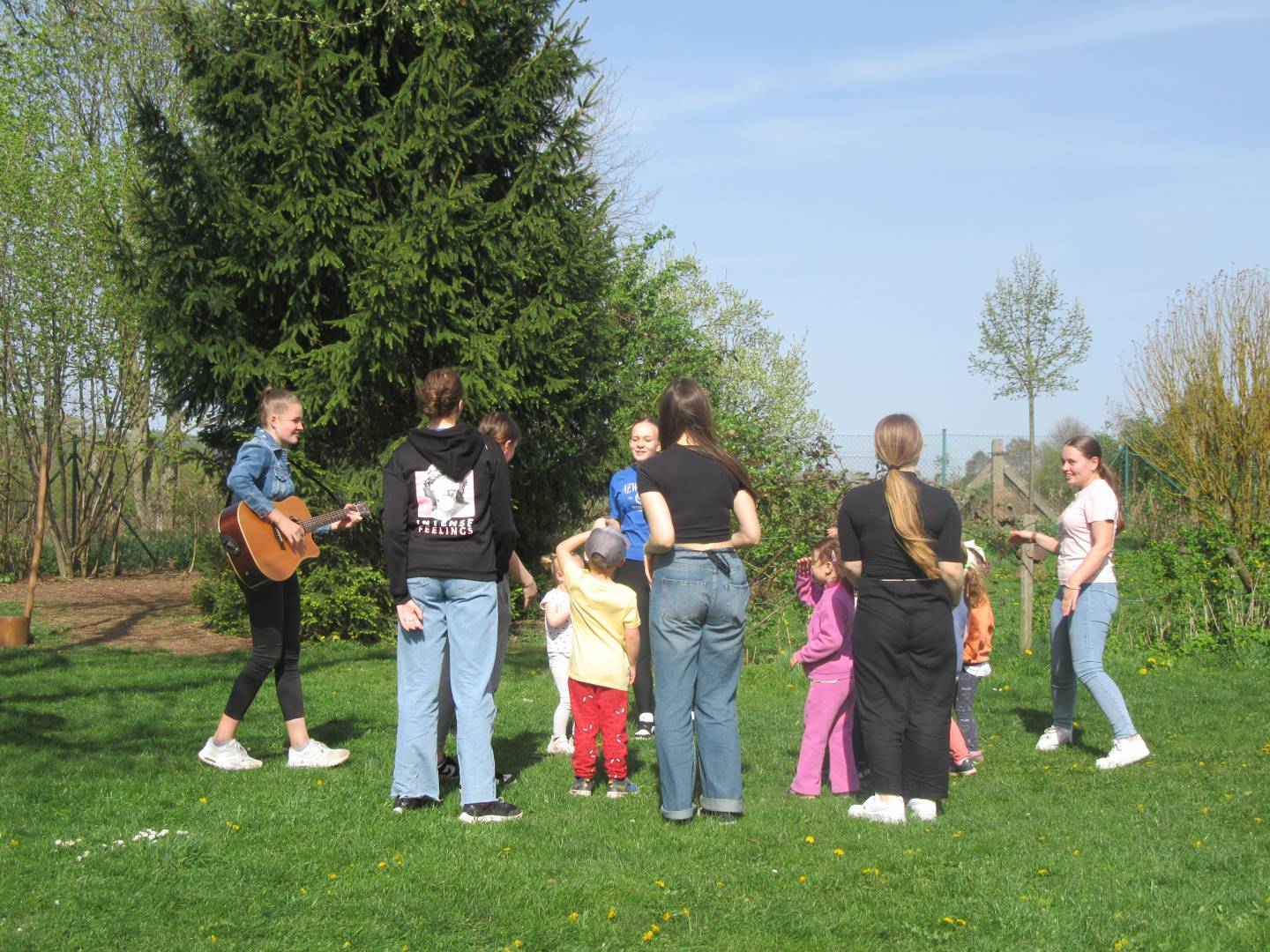 Duben 2024 - jaro, projektový den Fyzika, dopravní prostředky, zdobení týpí a úklid dřeva u maringotky, muzikodrama, slavíme čarodějnice