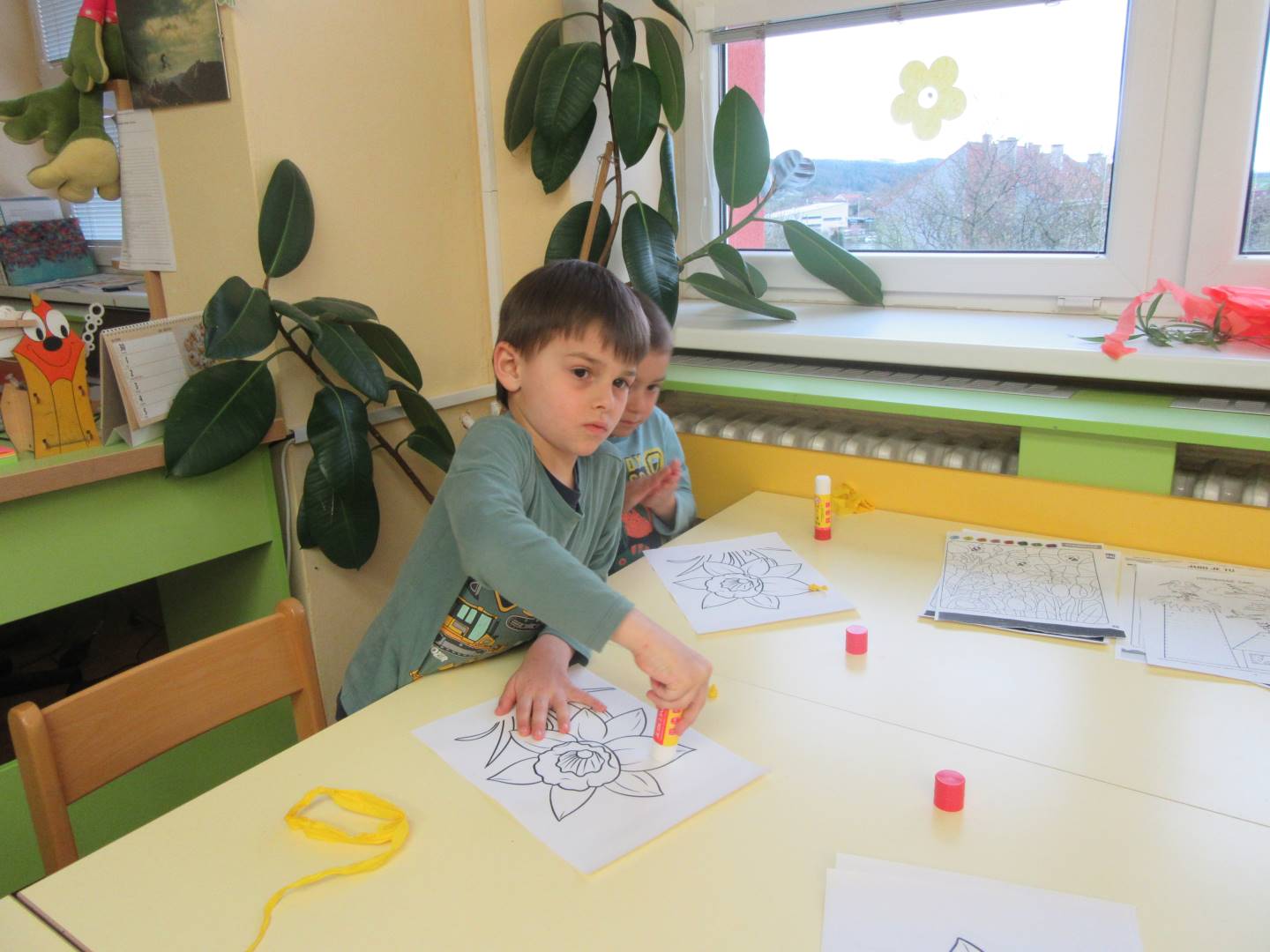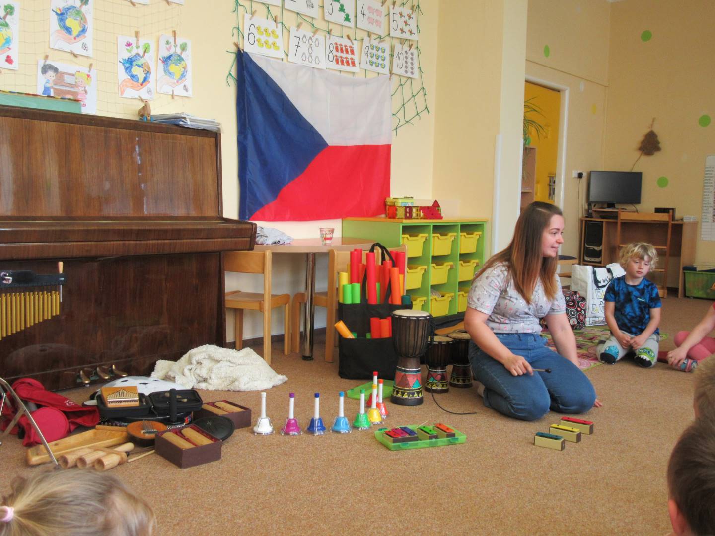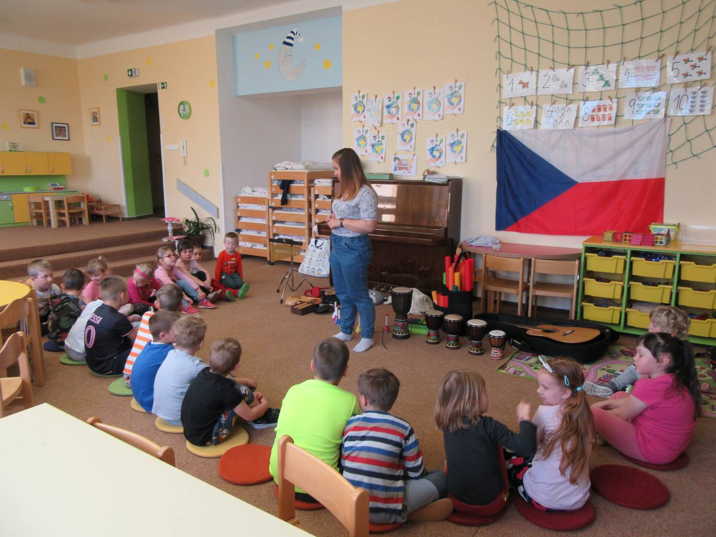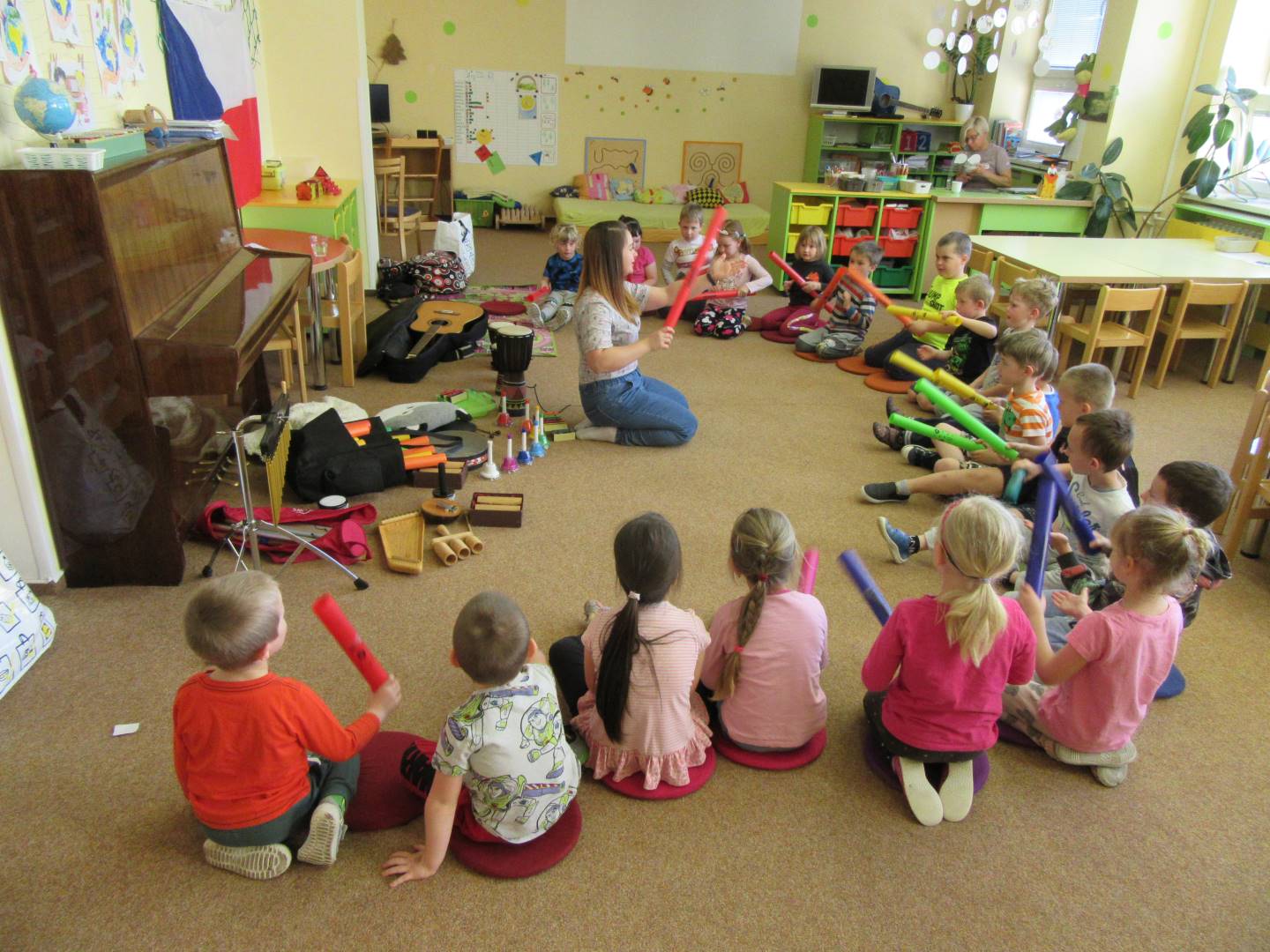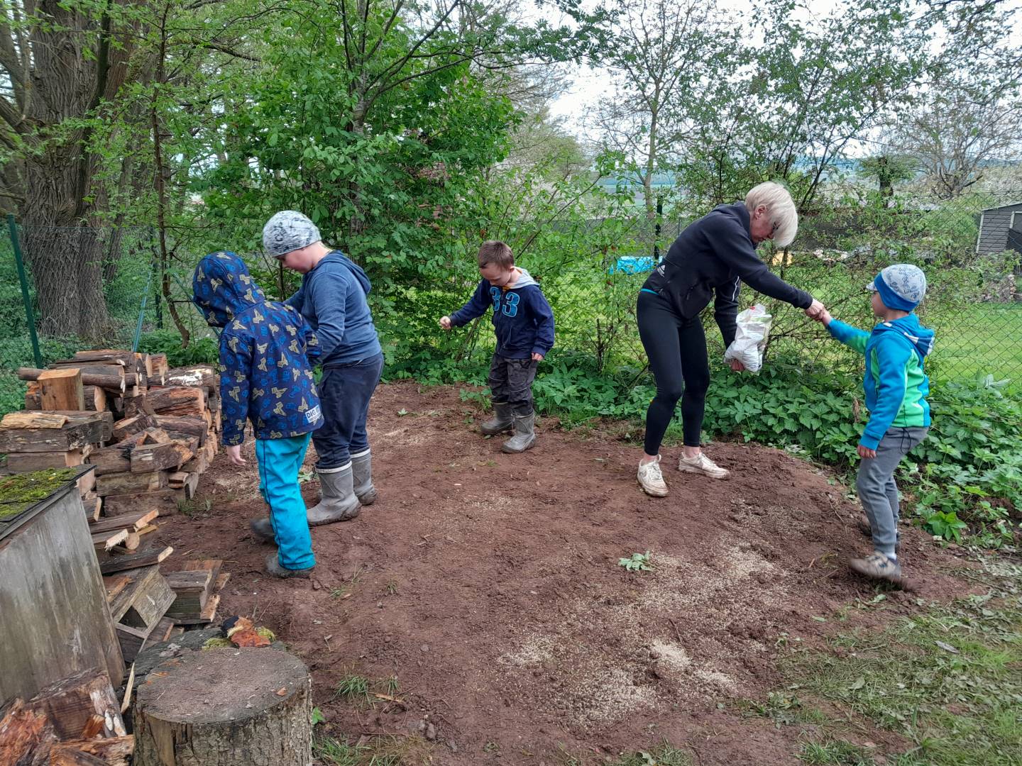 Duben 2024 - jaro, projektový den Fyzika, dopravní prostředky, zdobení týpí a úklid dřeva u maringotky, muzikodrama, slavíme čarodějnice