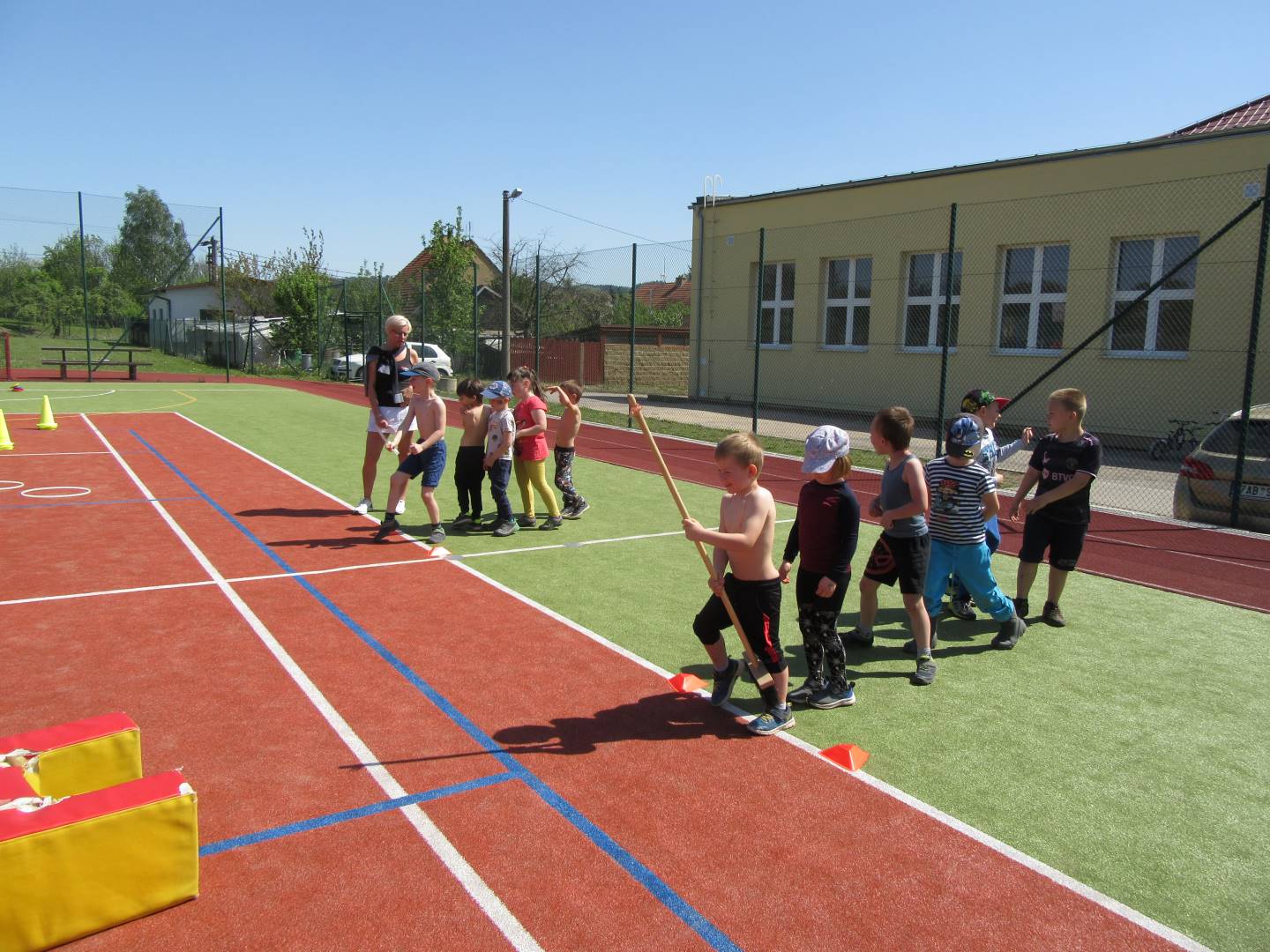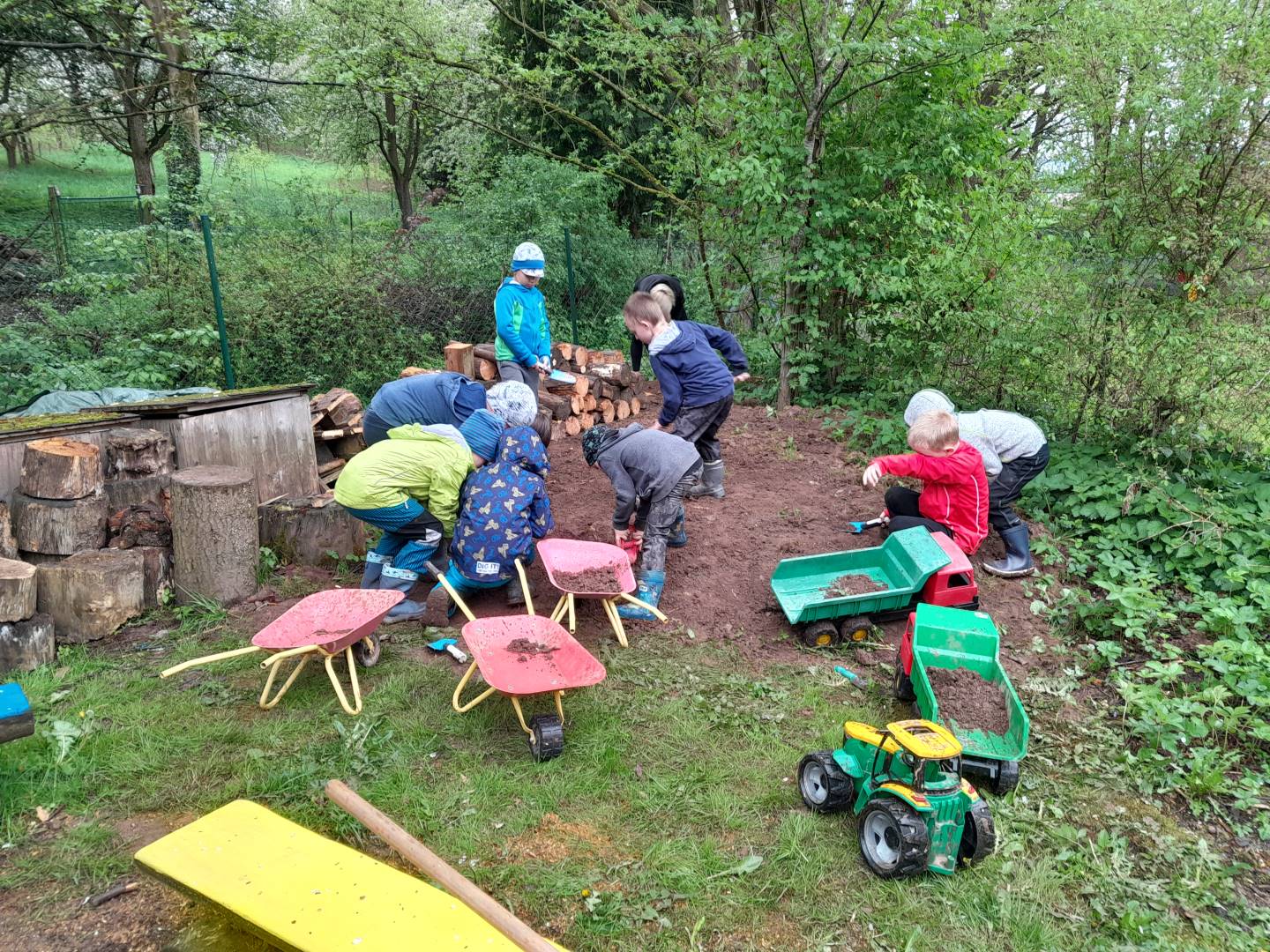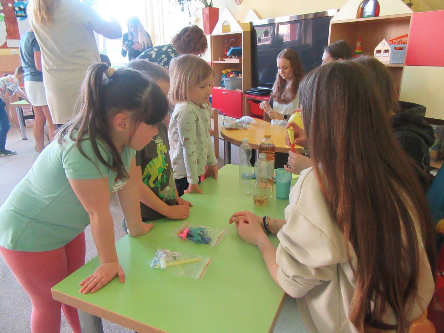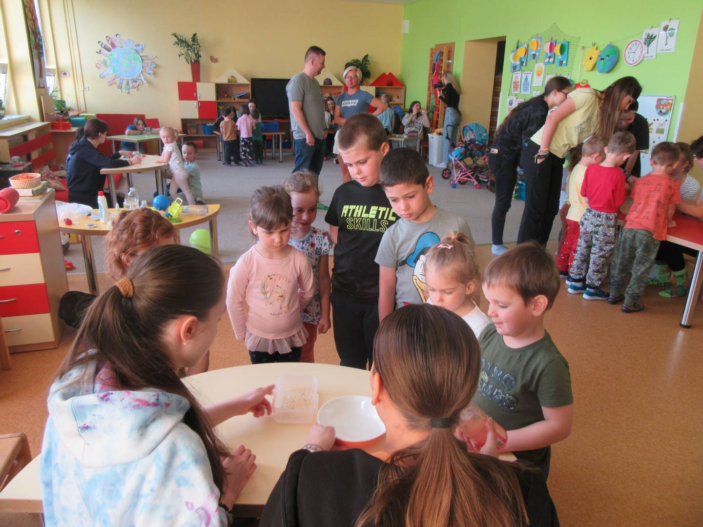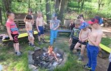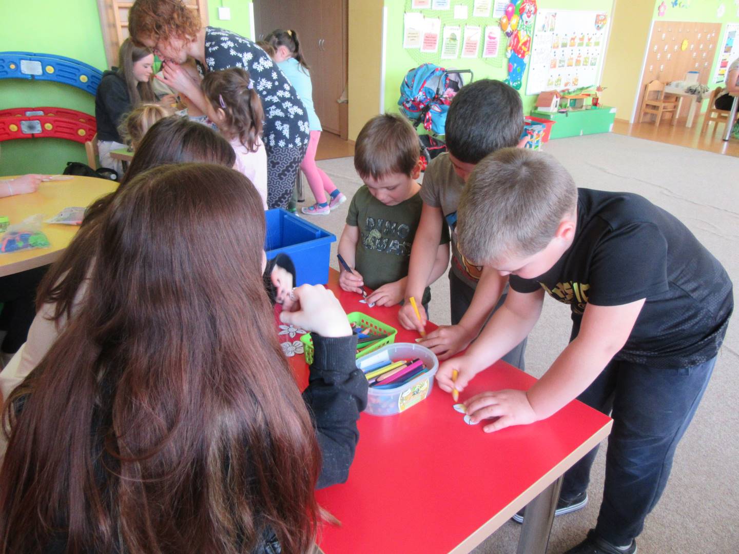 Duben 2024 - jaro, projektový den Fyzika, dopravní prostředky, zdobení týpí a úklid dřeva u maringotky, muzikodrama, slavíme čarodějnice