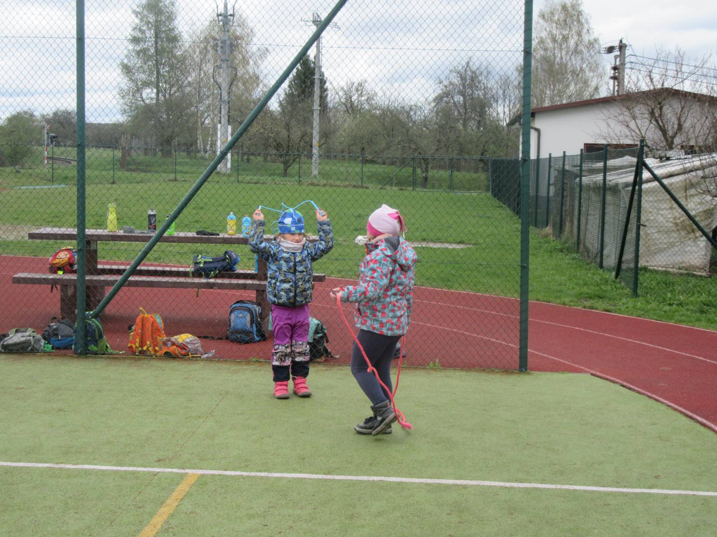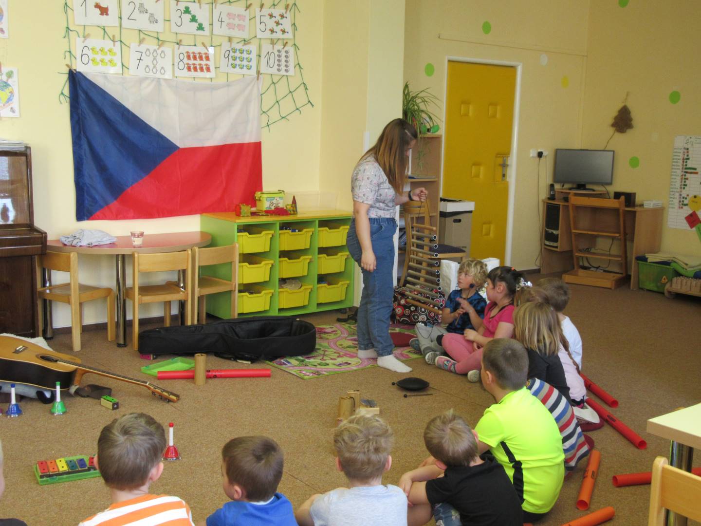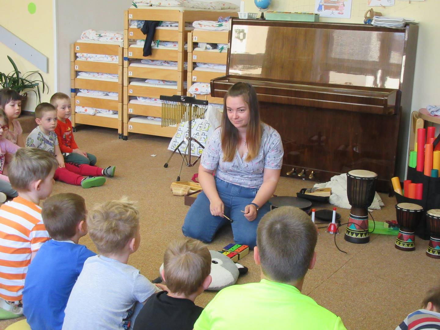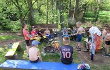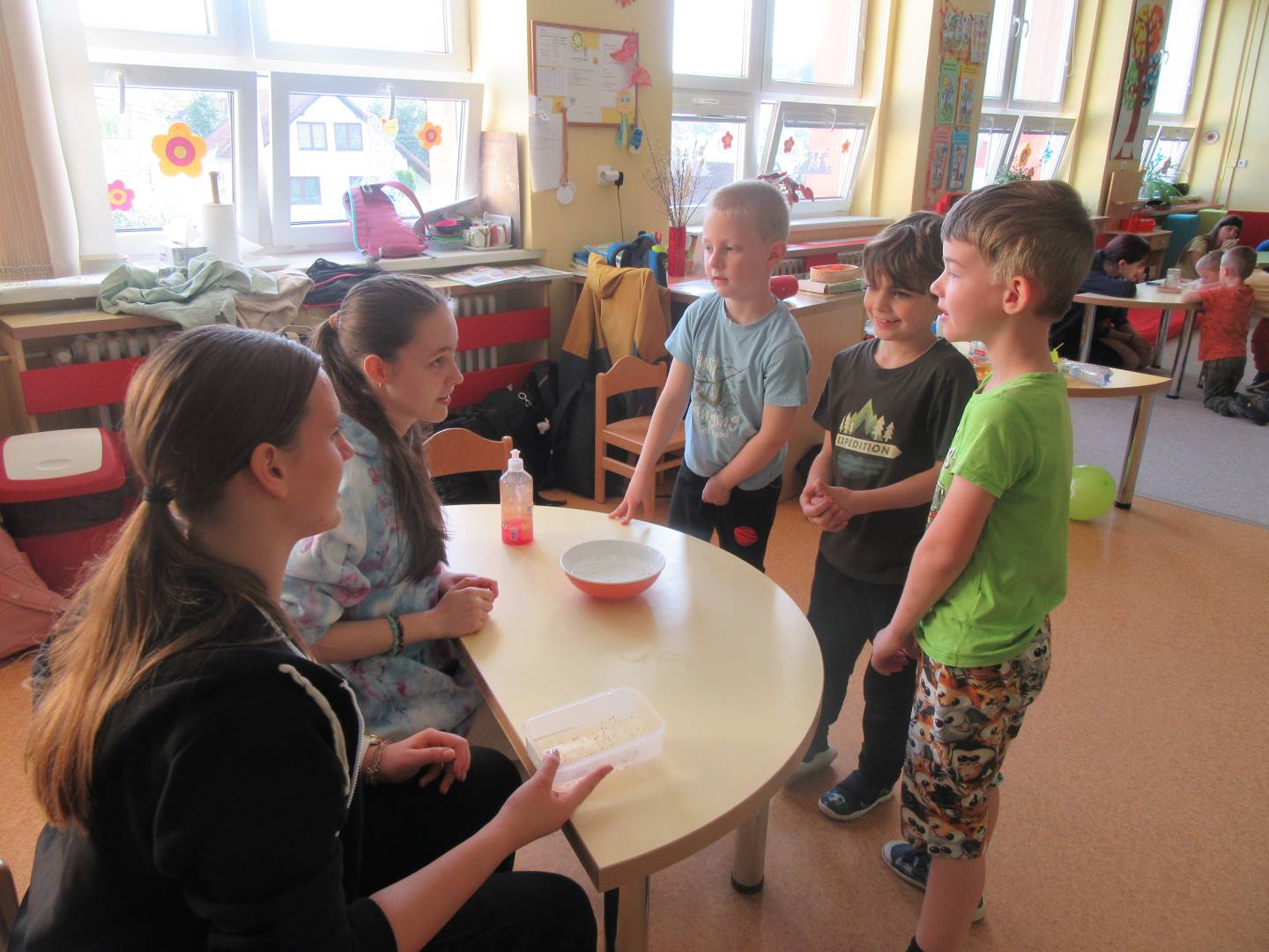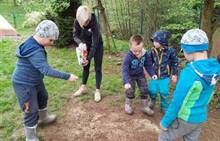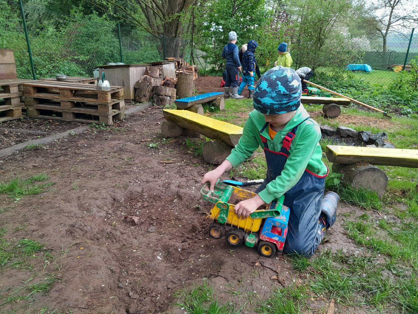 Duben 2024 - jaro, projektový den Fyzika, dopravní prostředky, zdobení týpí a úklid dřeva u maringotky, muzikodrama, slavíme čarodějnice