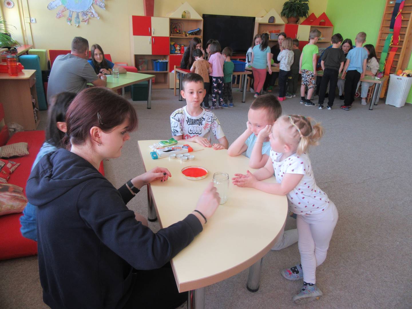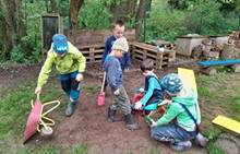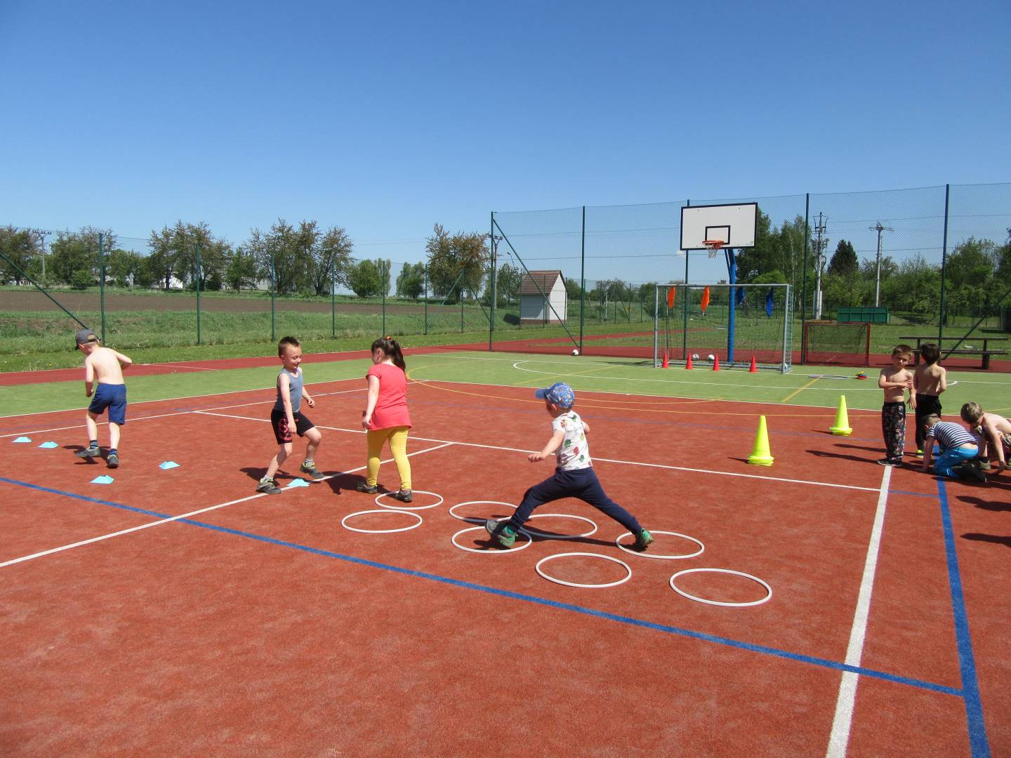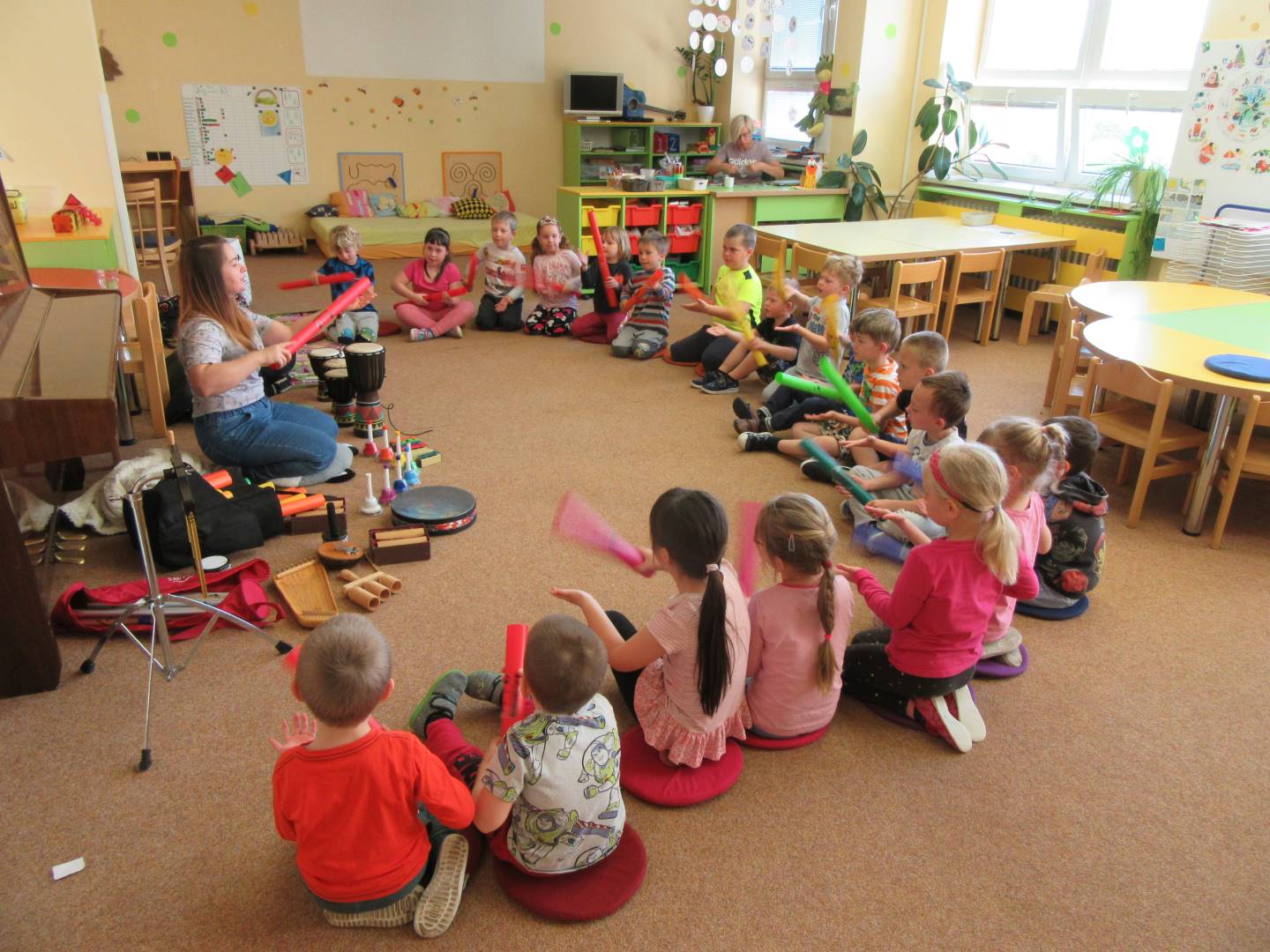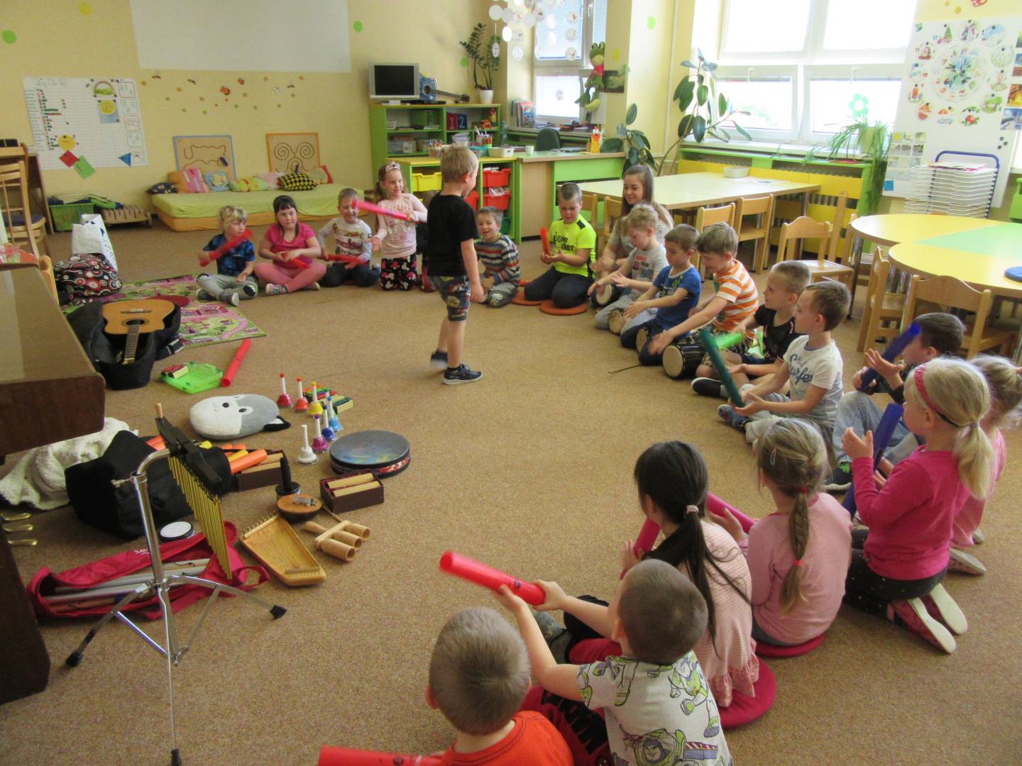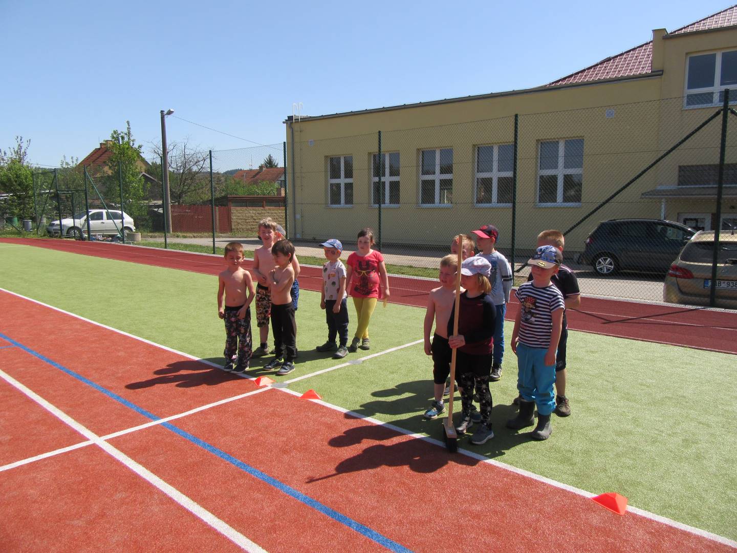 Duben 2024 - jaro, projektový den Fyzika, dopravní prostředky, zdobení týpí a úklid dřeva u maringotky, muzikodrama, slavíme čarodějnice