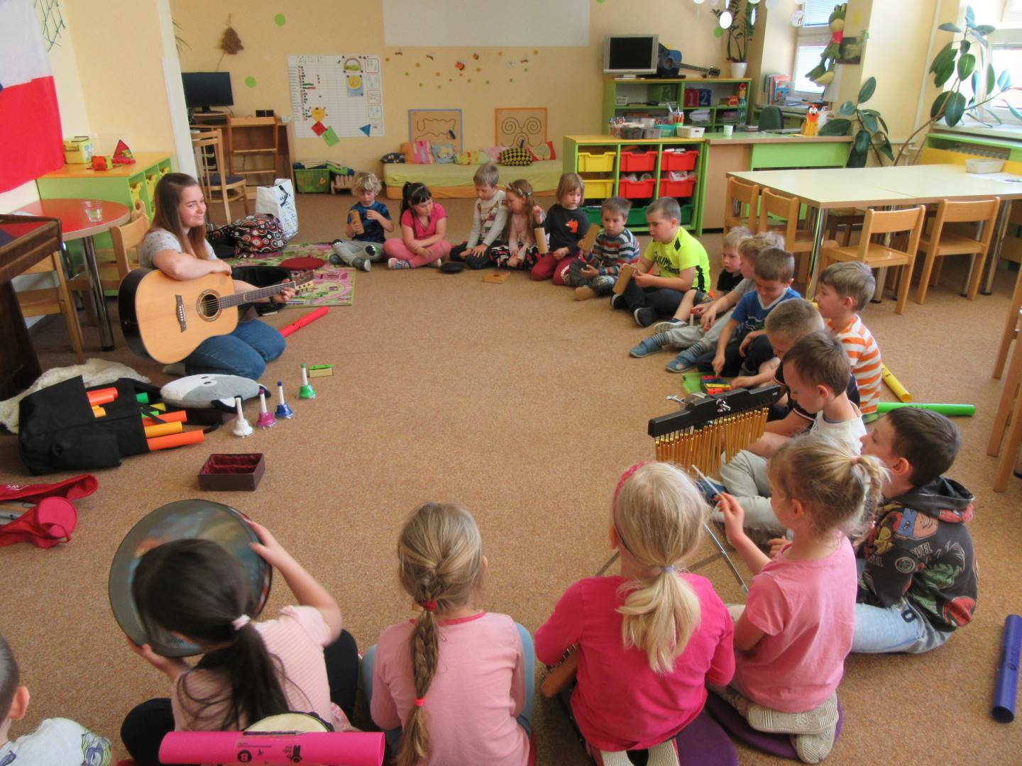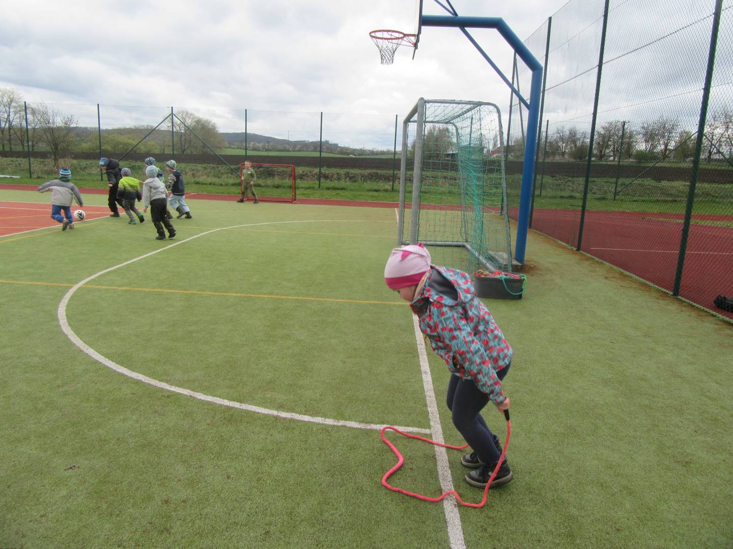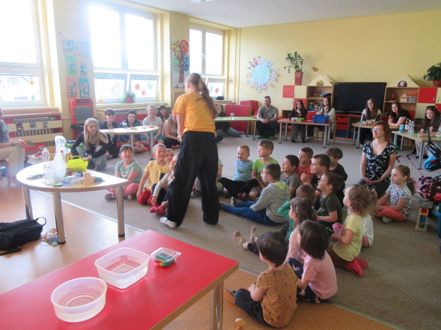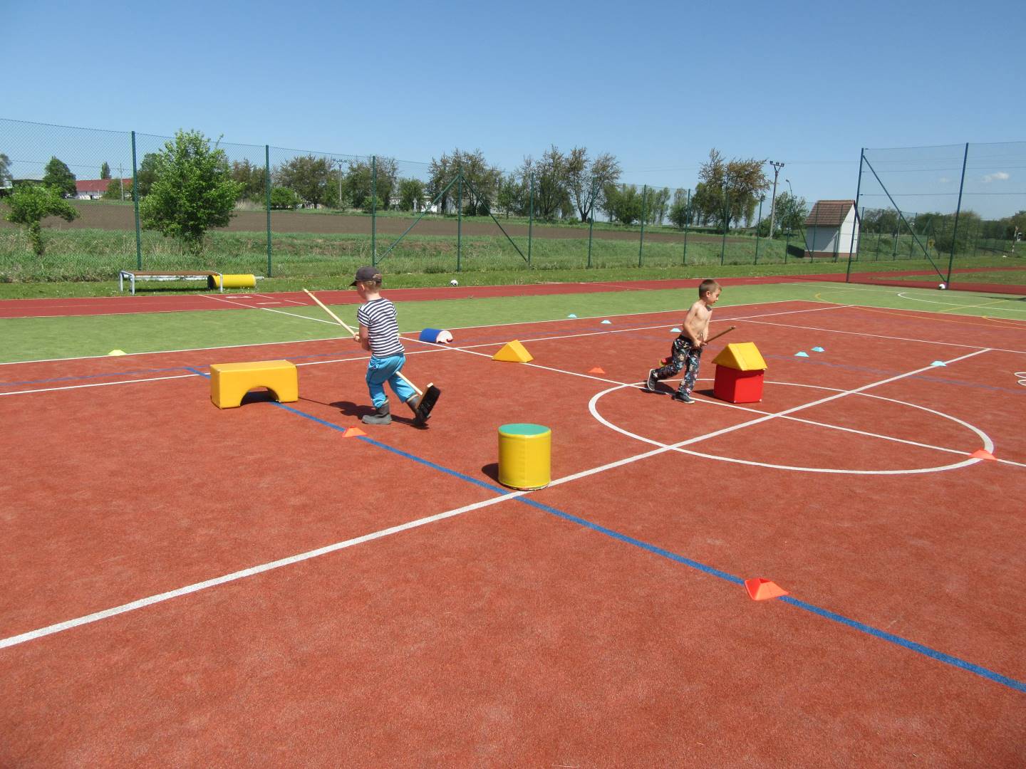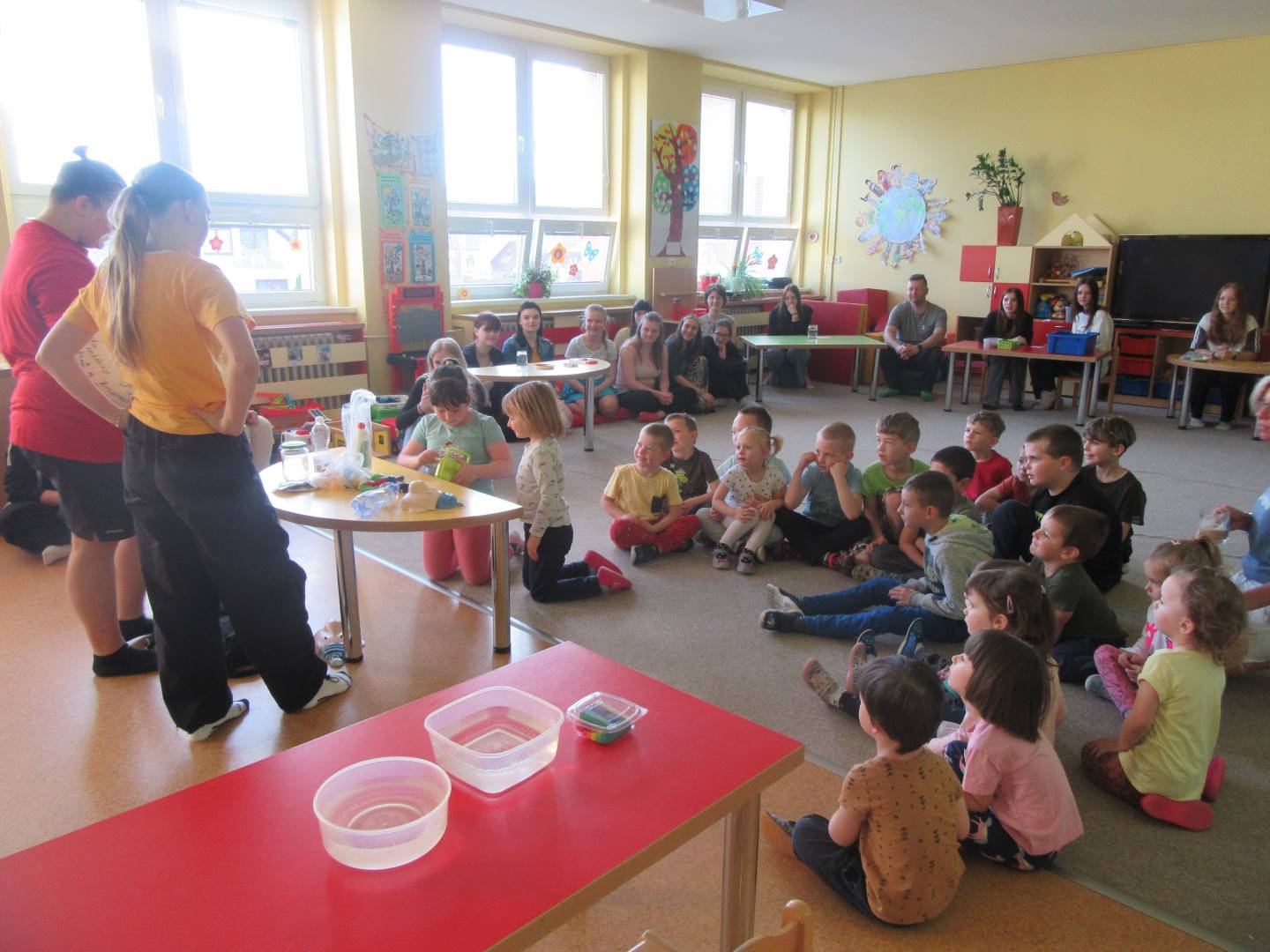 Duben 2024 - jaro, projektový den Fyzika, dopravní prostředky, zdobení týpí a úklid dřeva u maringotky, muzikodrama, slavíme čarodějnice