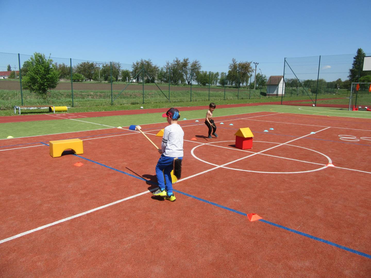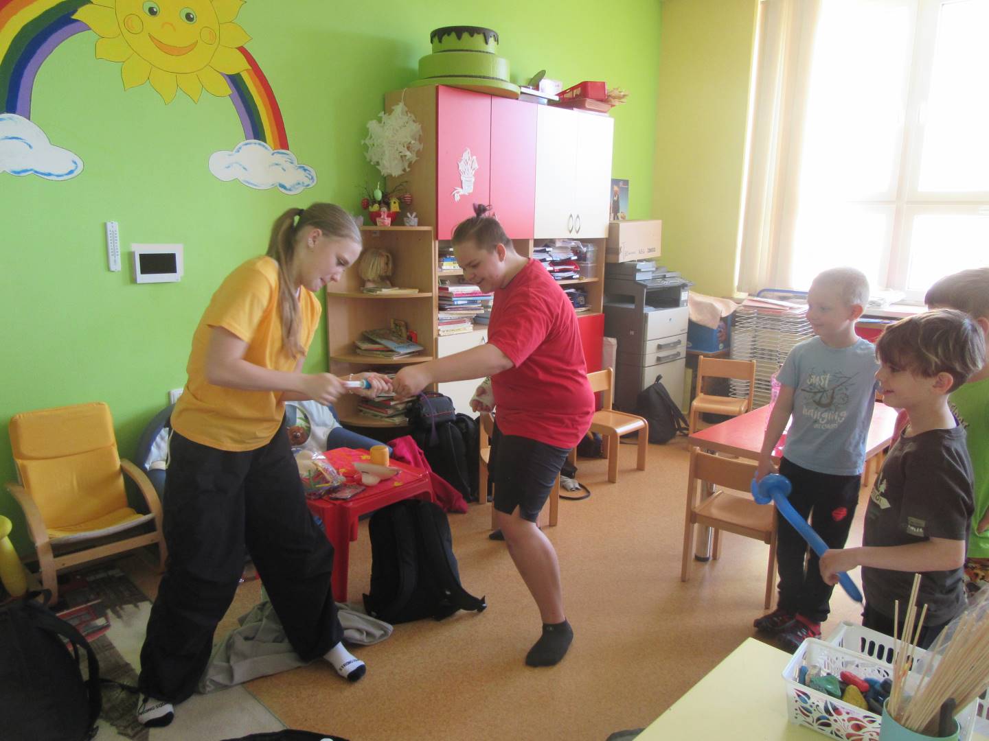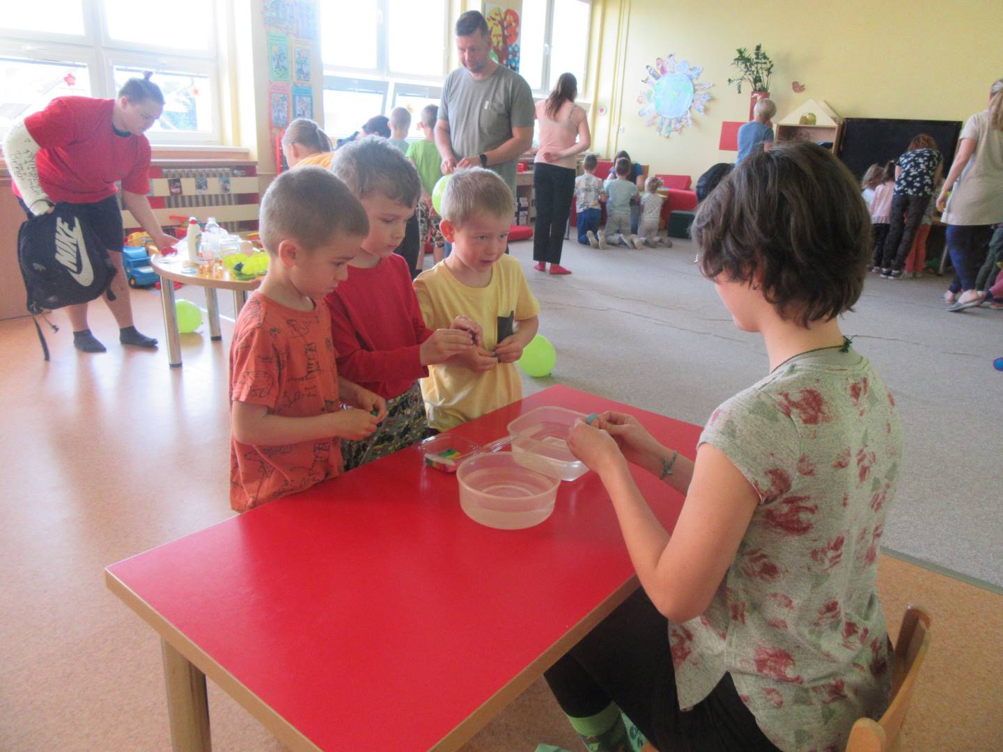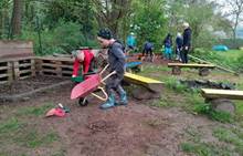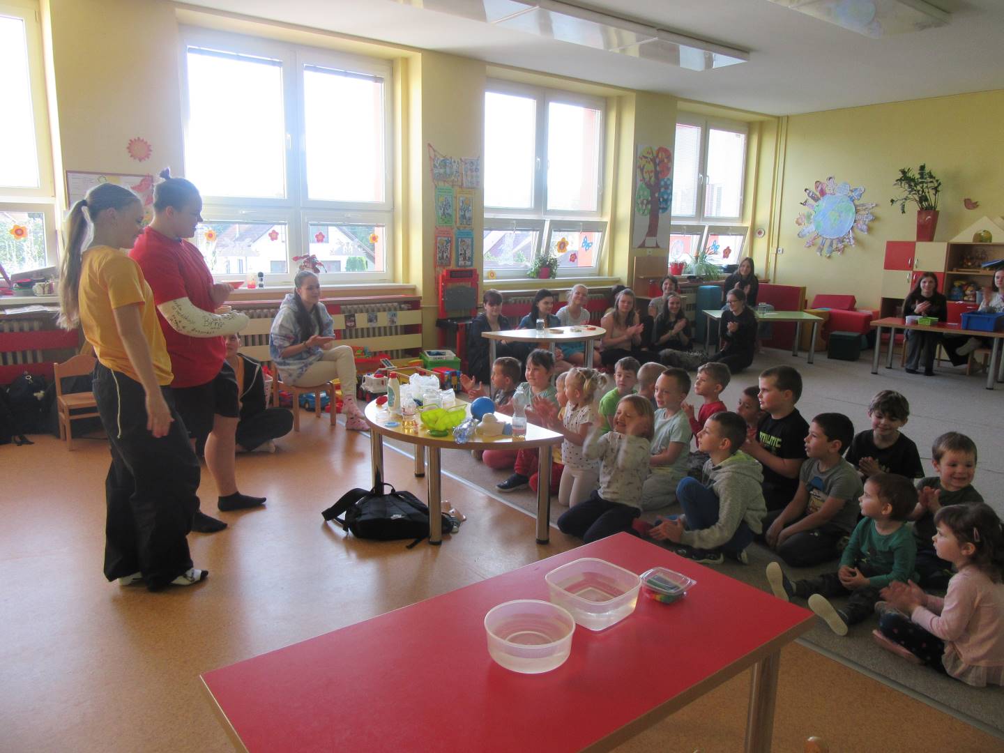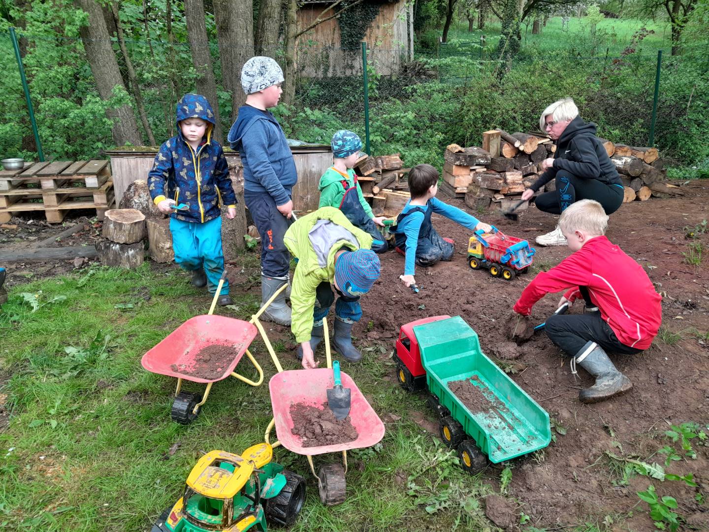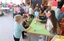 Duben 2024 - jaro, projektový den Fyzika, dopravní prostředky, zdobení týpí a úklid dřeva u maringotky, muzikodrama, slavíme čarodějnice