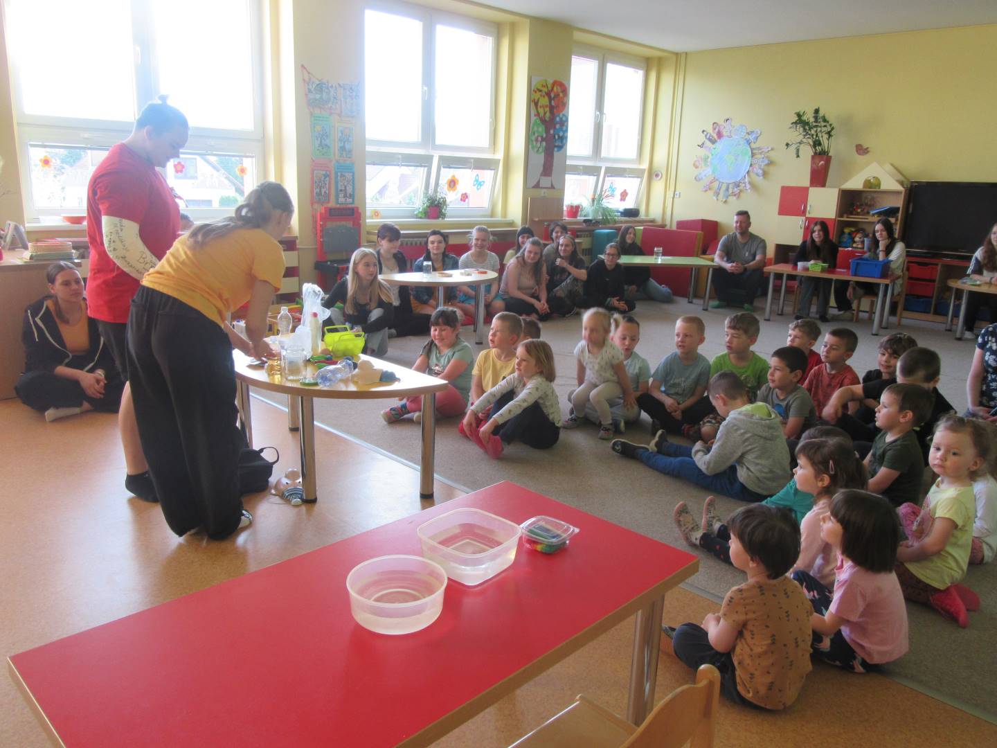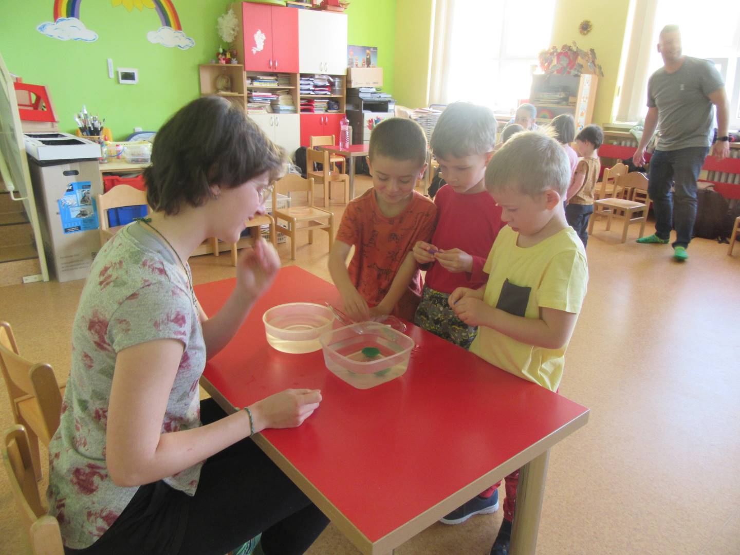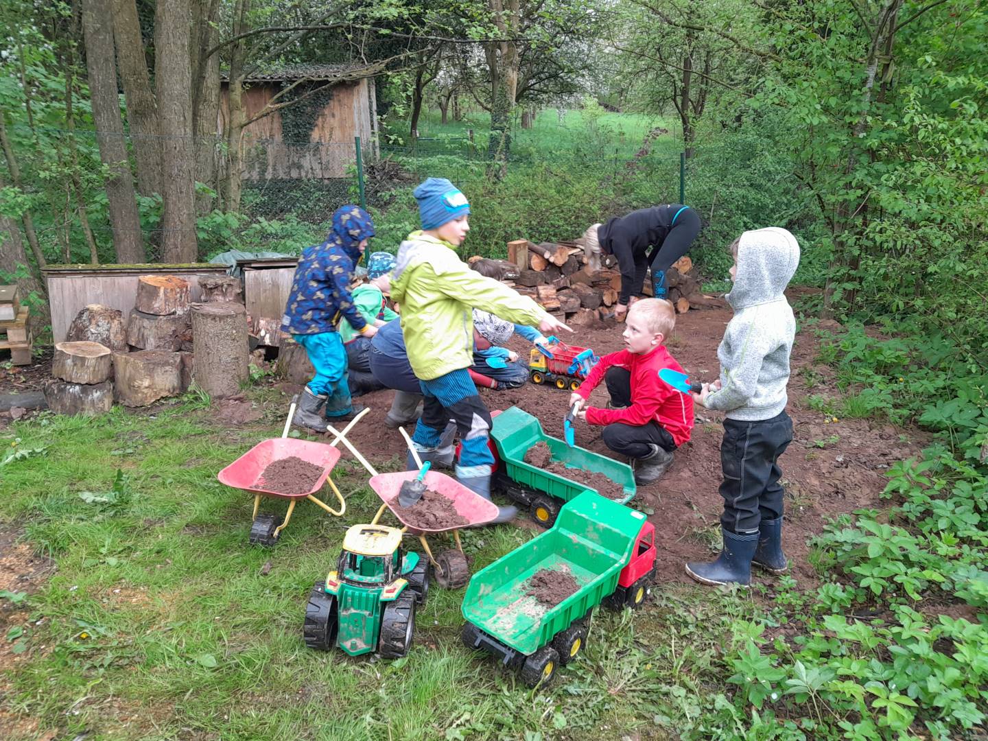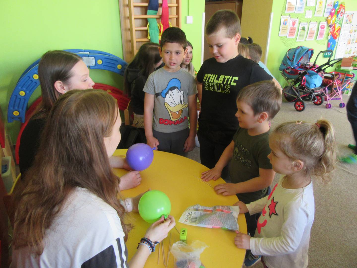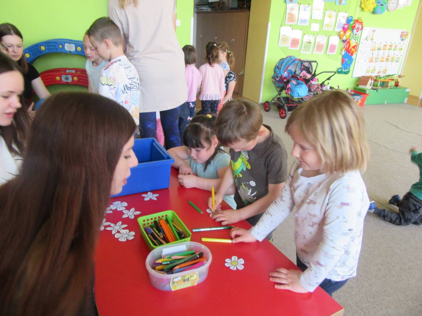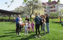 Duben 2024 - jaro, projektový den Fyzika, dopravní prostředky, zdobení týpí a úklid dřeva u maringotky, muzikodrama, slavíme čarodějnice