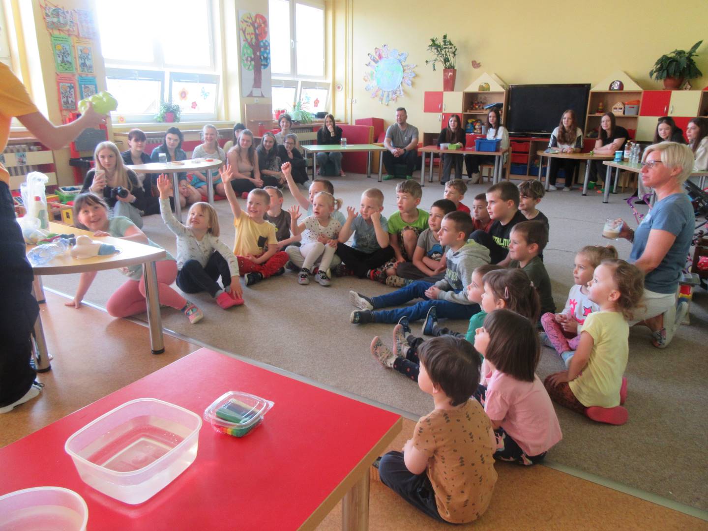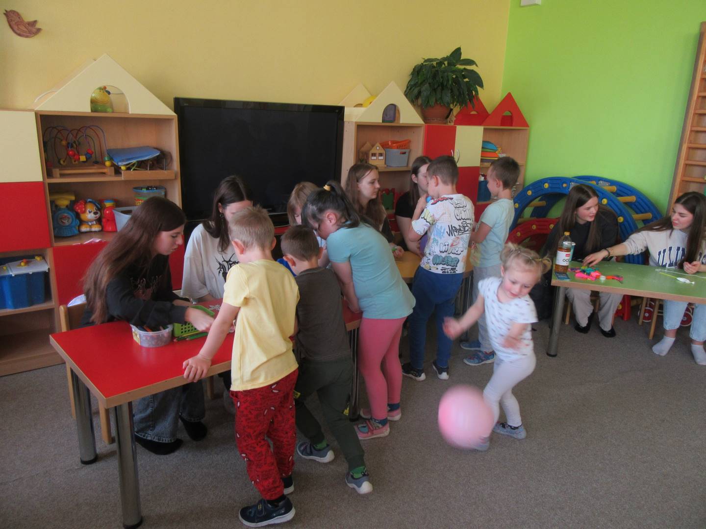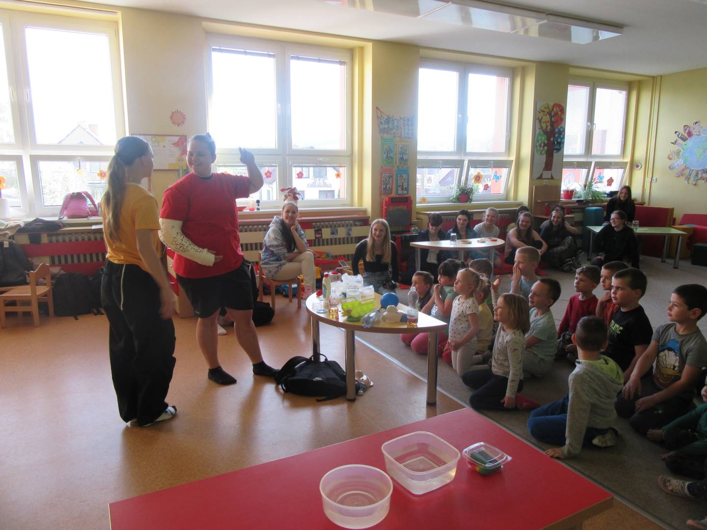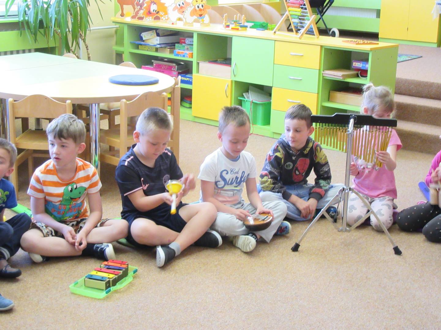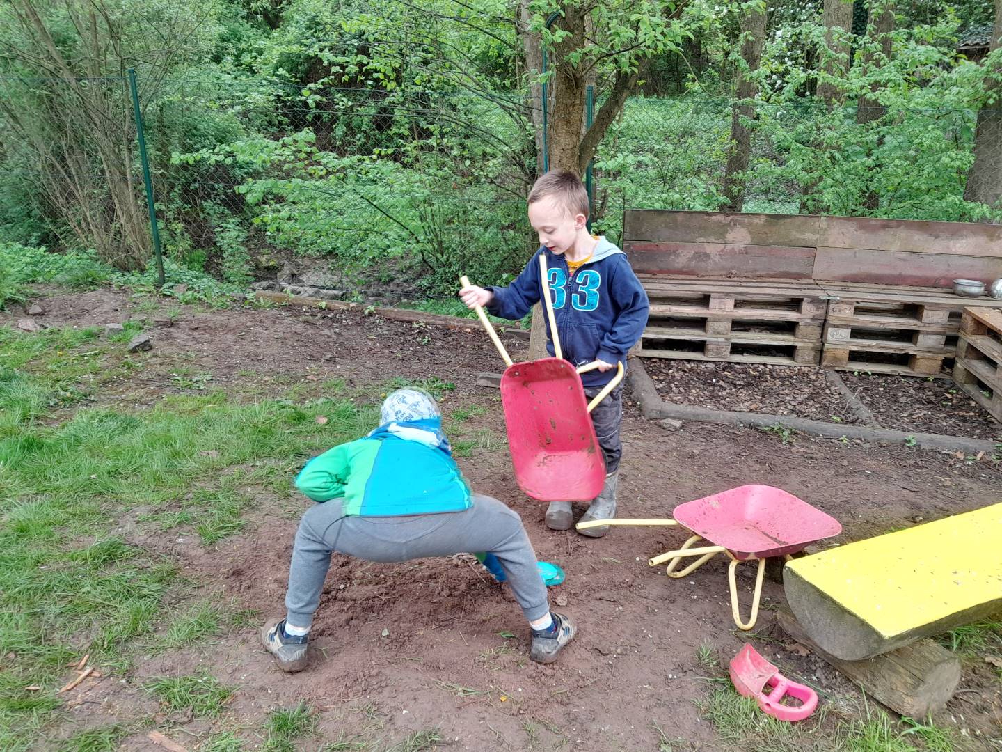 Duben 2024 - jaro, projektový den Fyzika, dopravní prostředky, zdobení týpí a úklid dřeva u maringotky, muzikodrama, slavíme čarodějnice
