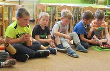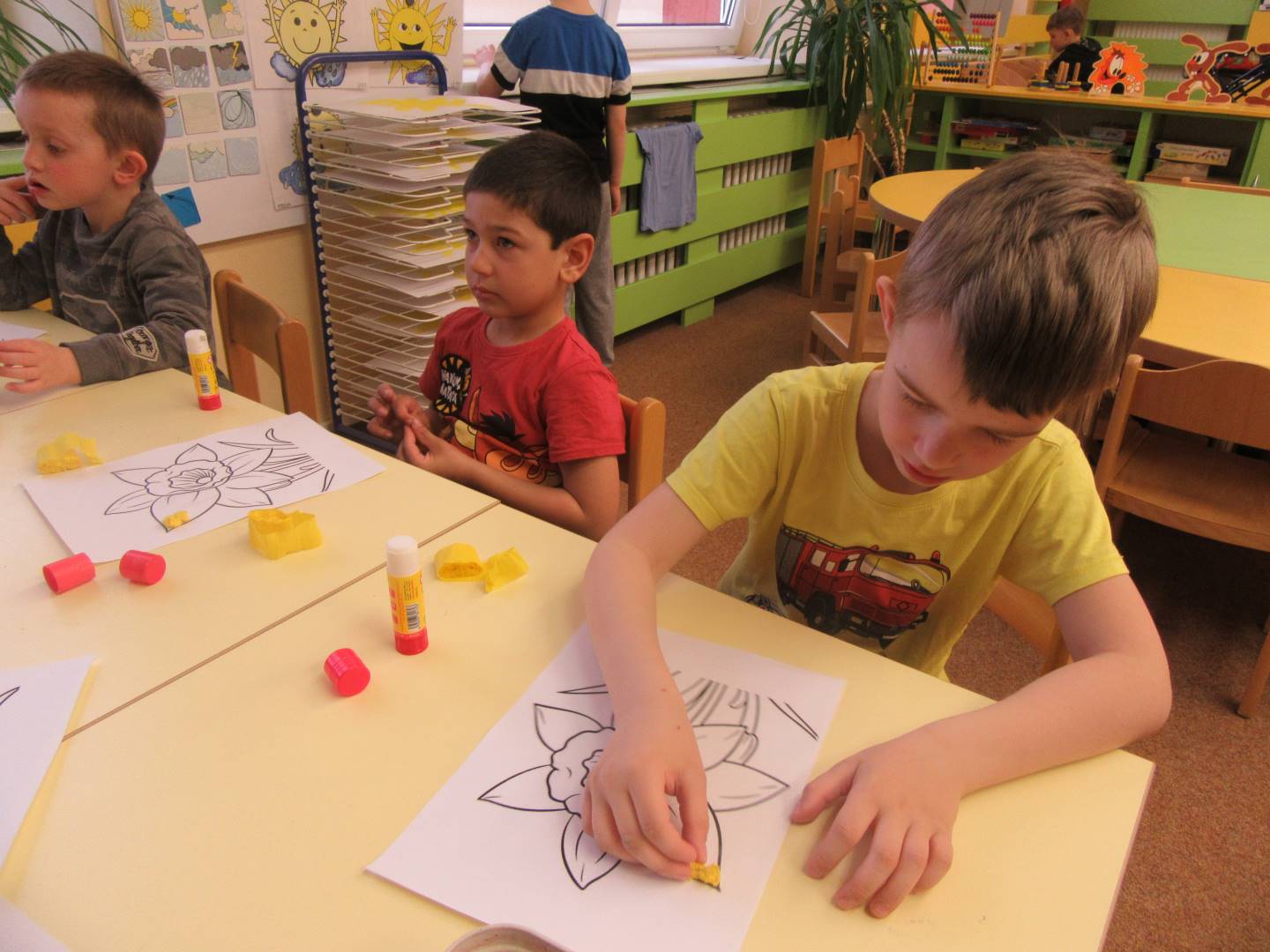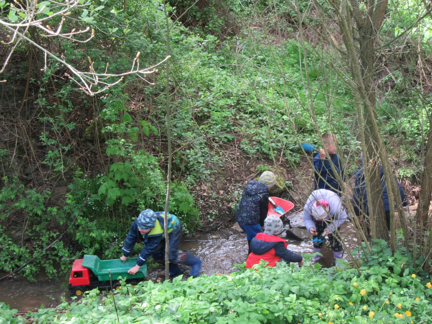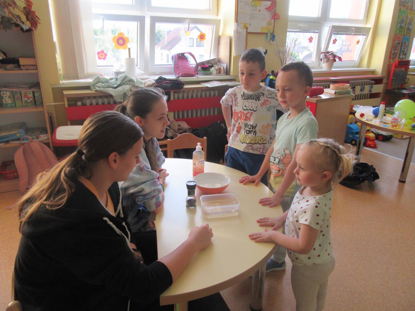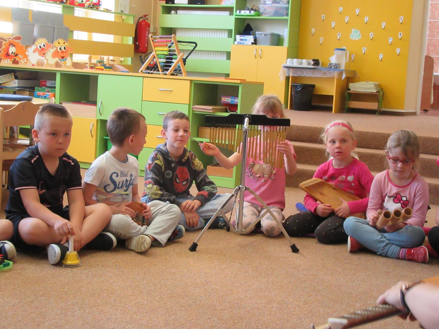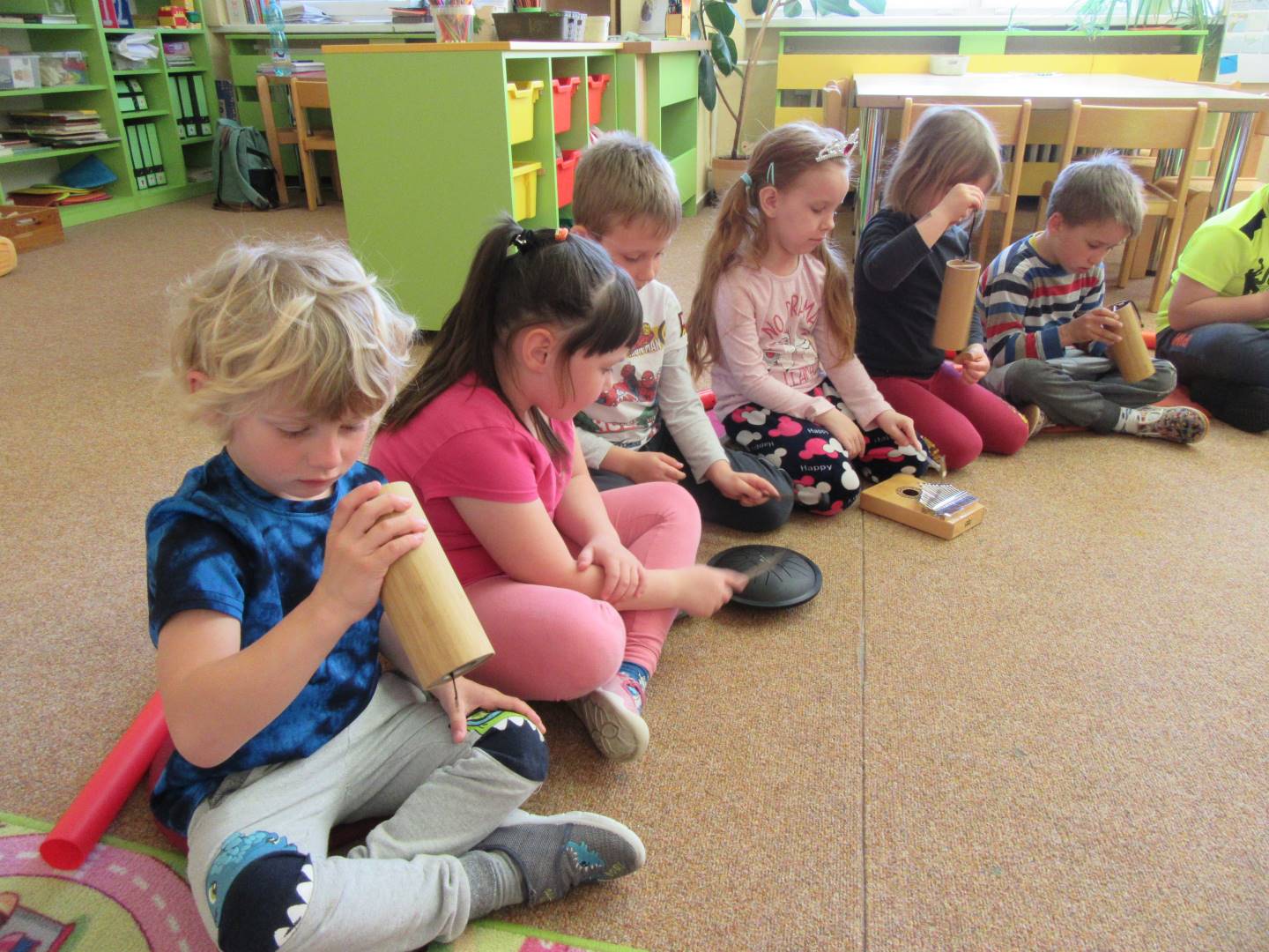 Duben 2024 - jaro, projektový den Fyzika, dopravní prostředky, zdobení týpí a úklid dřeva u maringotky, muzikodrama, slavíme čarodějnice