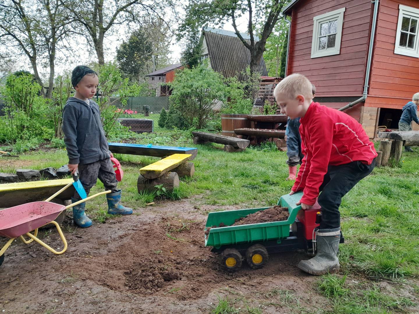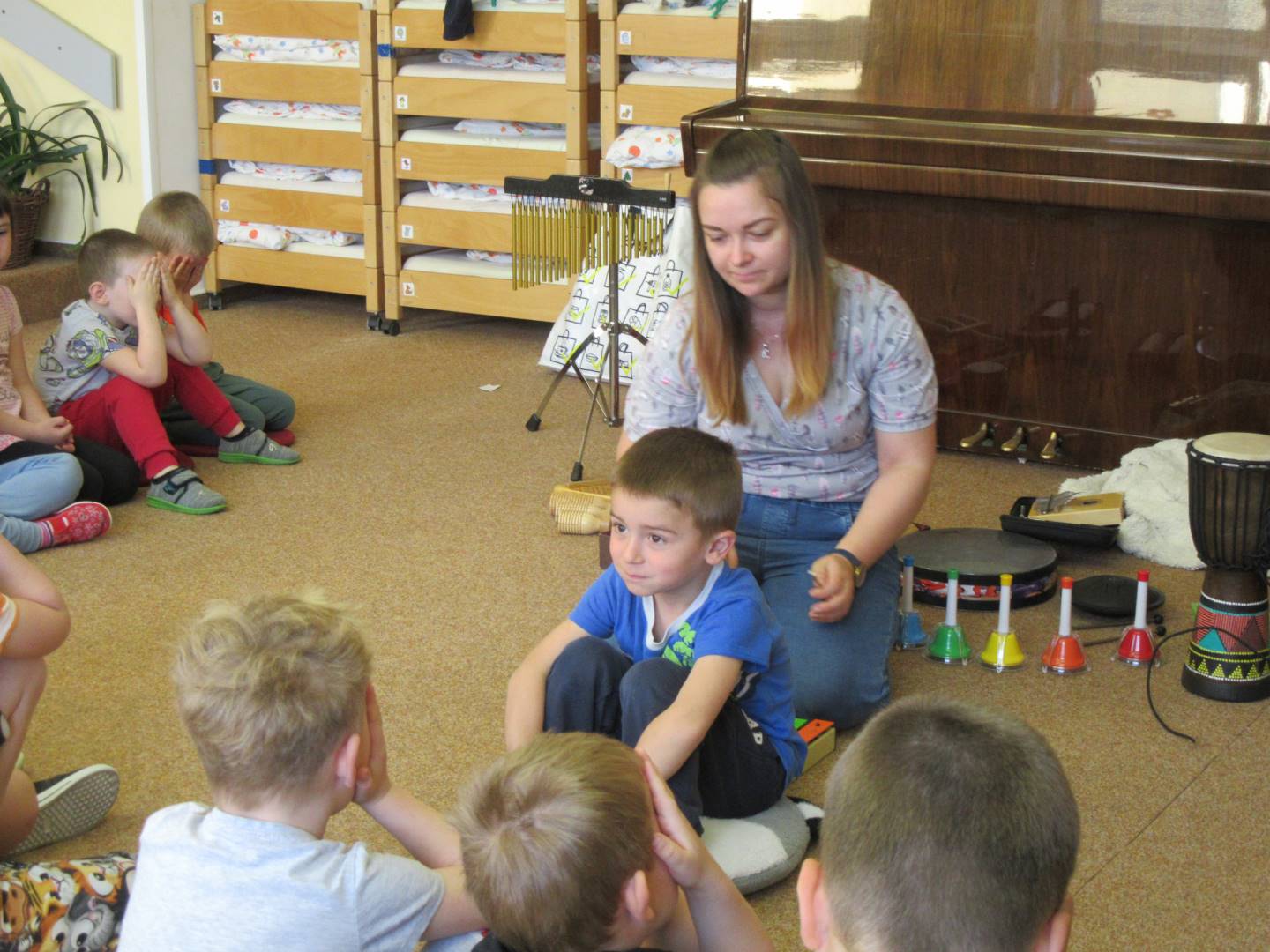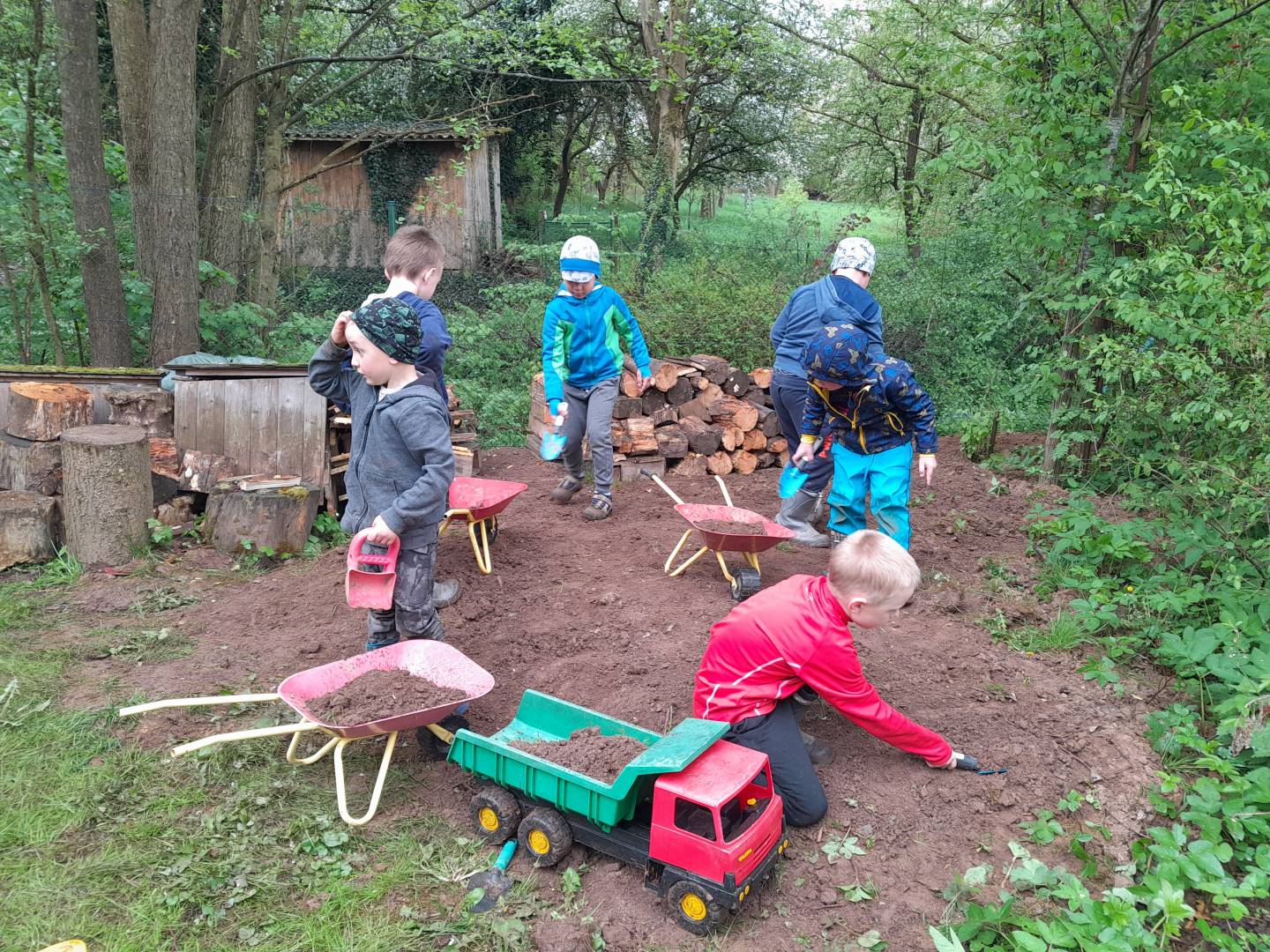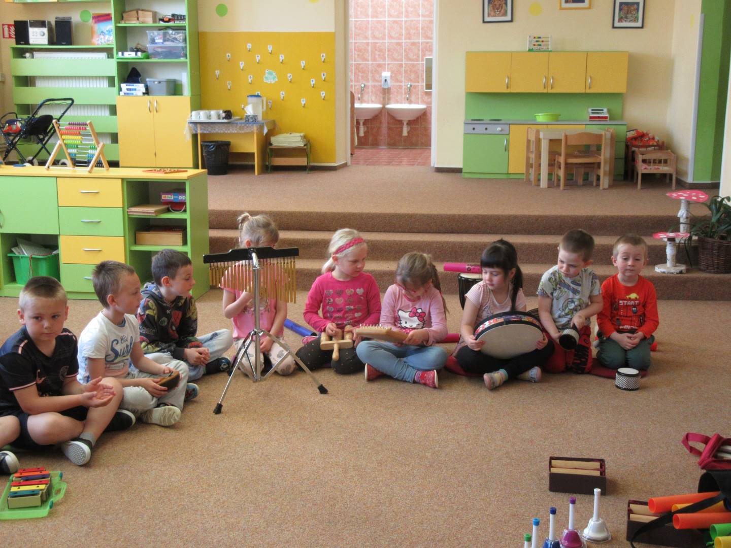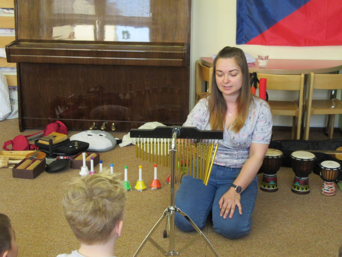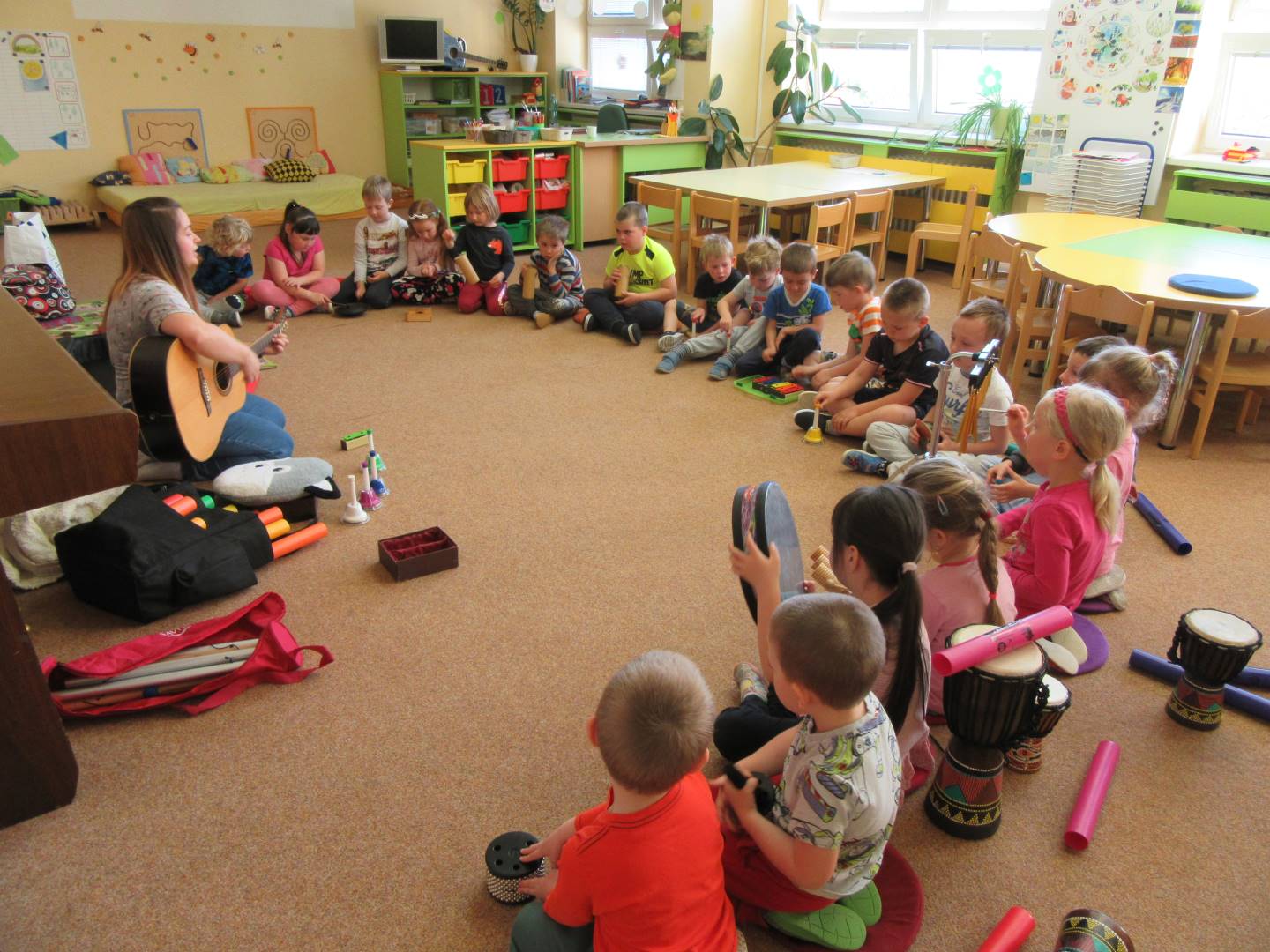 Duben 2024 - jaro, projektový den Fyzika, dopravní prostředky, zdobení týpí a úklid dřeva u maringotky, muzikodrama, slavíme čarodějnice