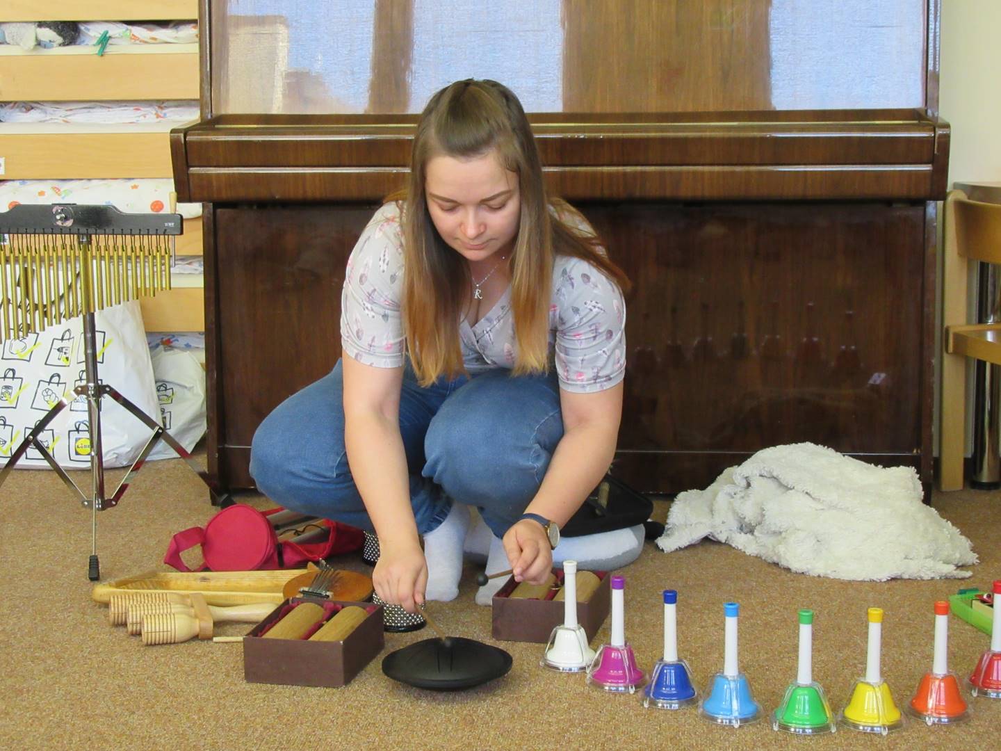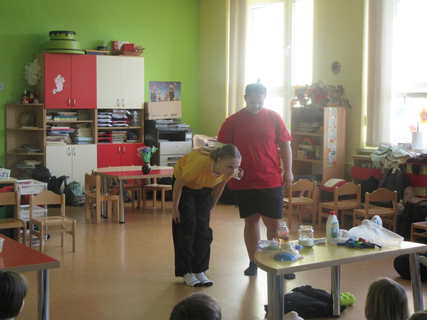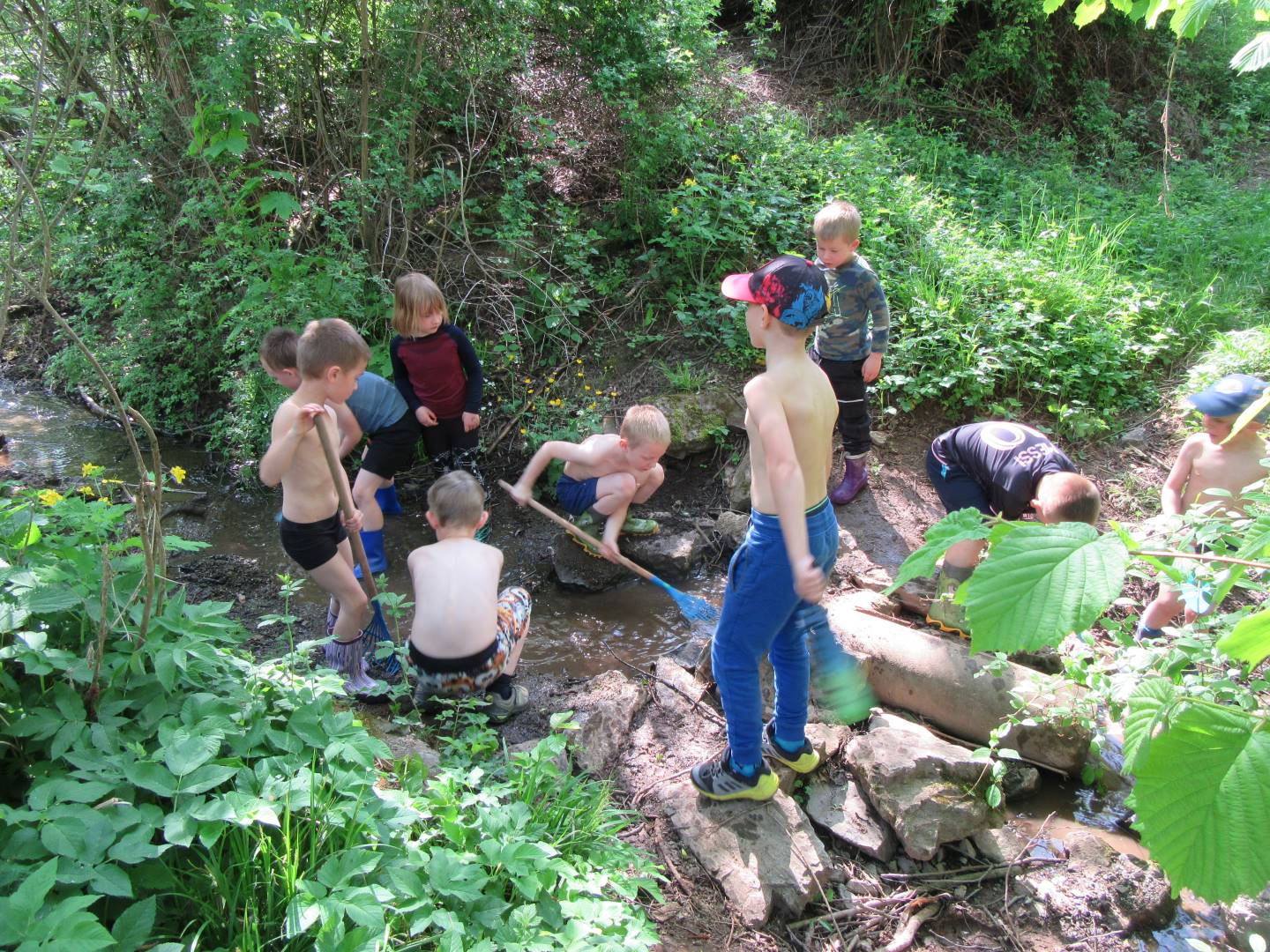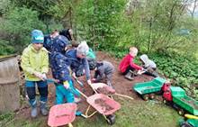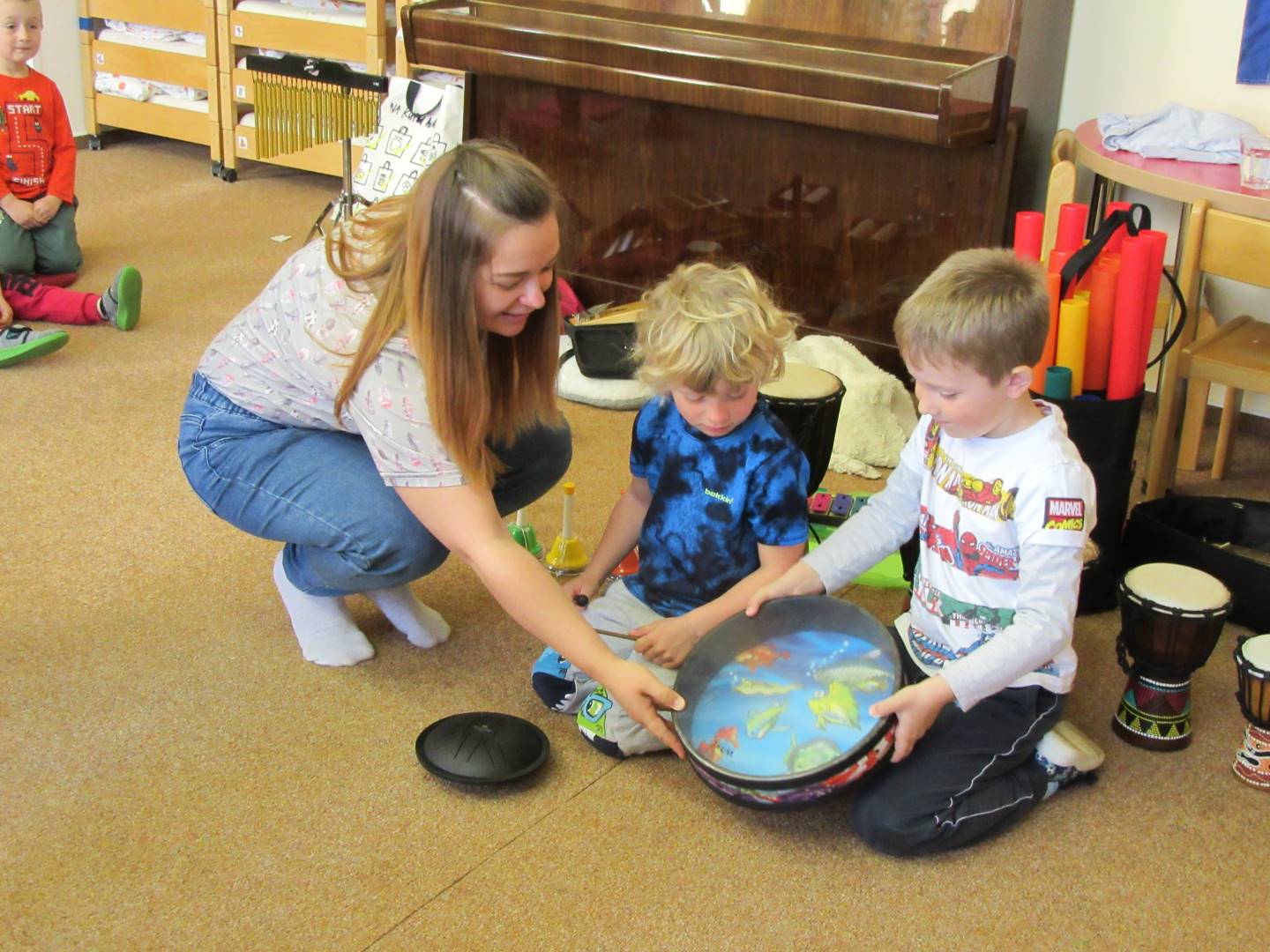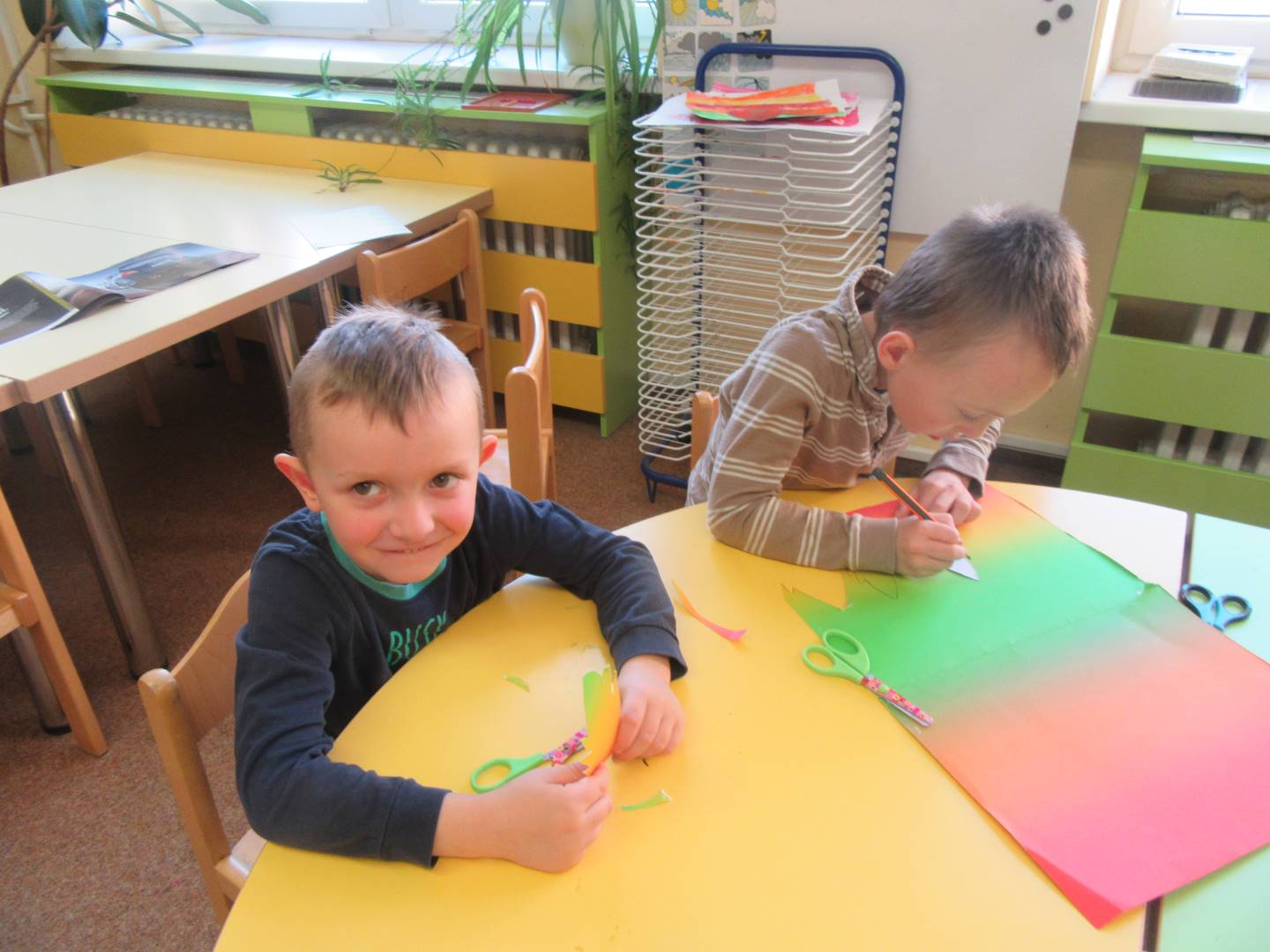 Duben 2024 - jaro, projektový den Fyzika, dopravní prostředky, zdobení týpí a úklid dřeva u maringotky, muzikodrama, slavíme čarodějnice