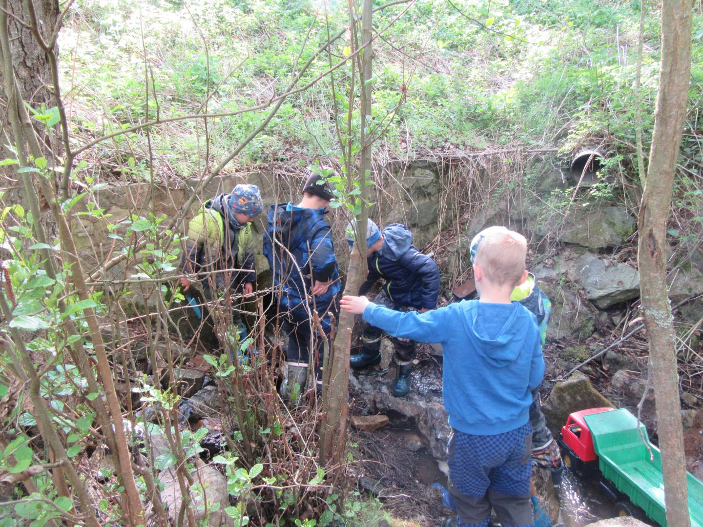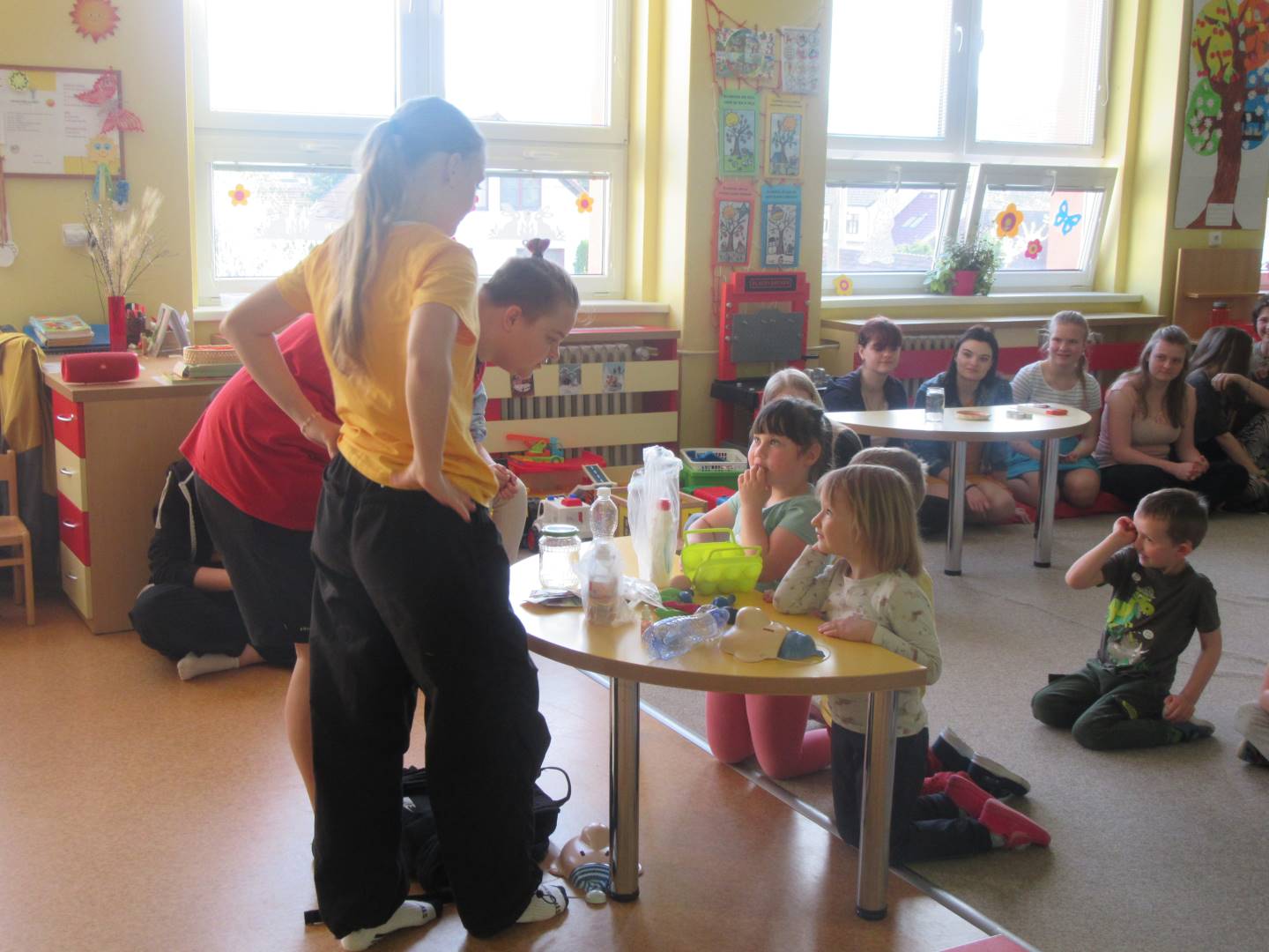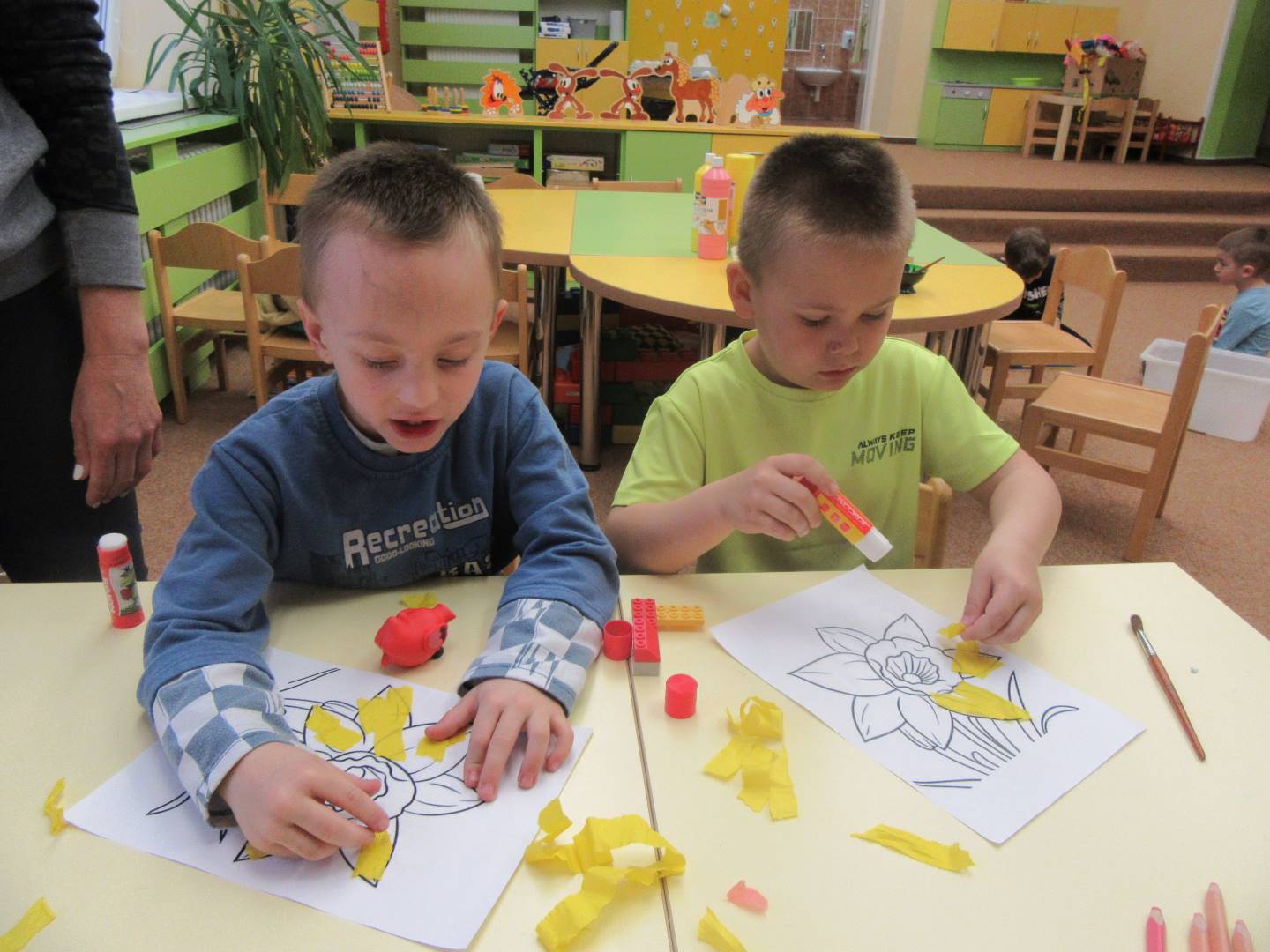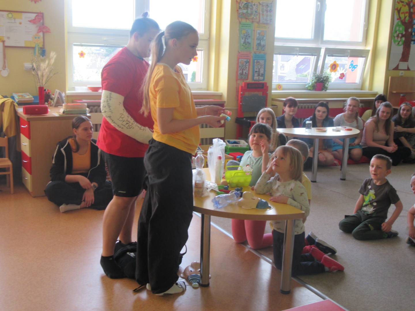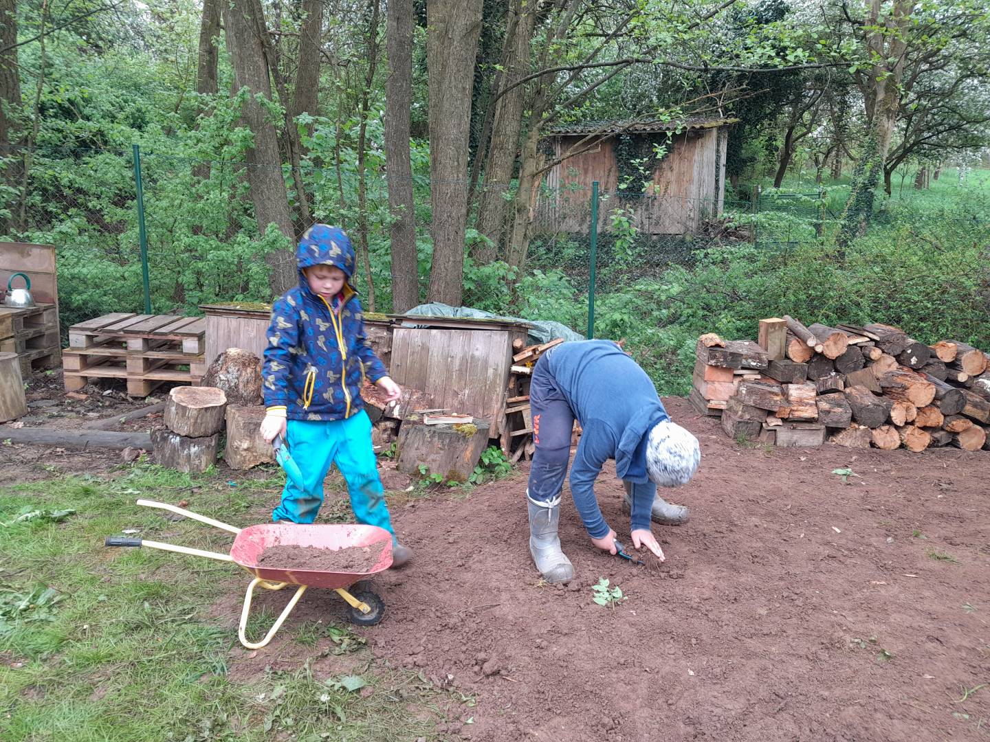 Duben 2024 - jaro, projektový den Fyzika, dopravní prostředky, zdobení týpí a úklid dřeva u maringotky, muzikodrama, slavíme čarodějnice