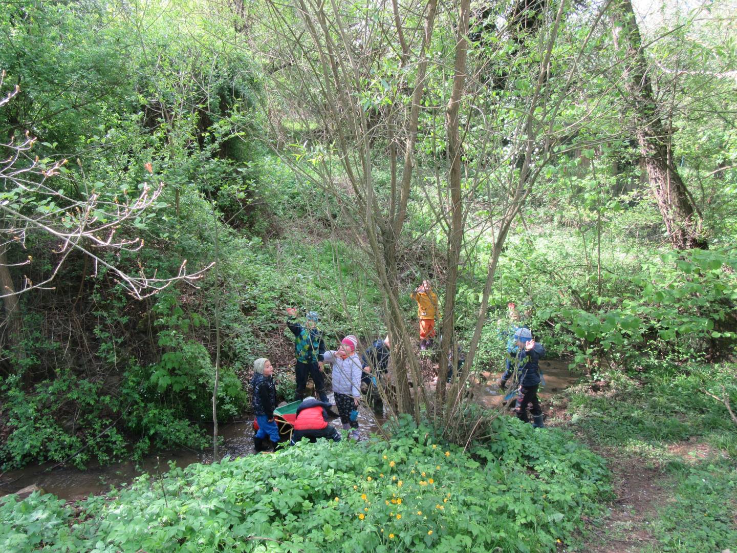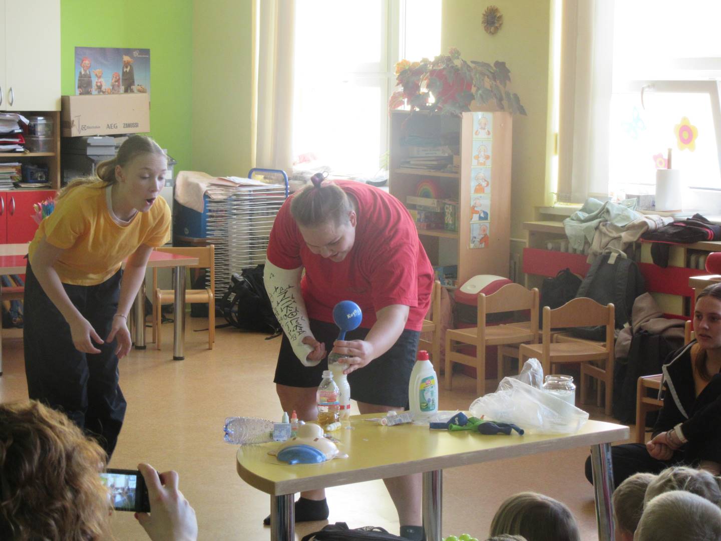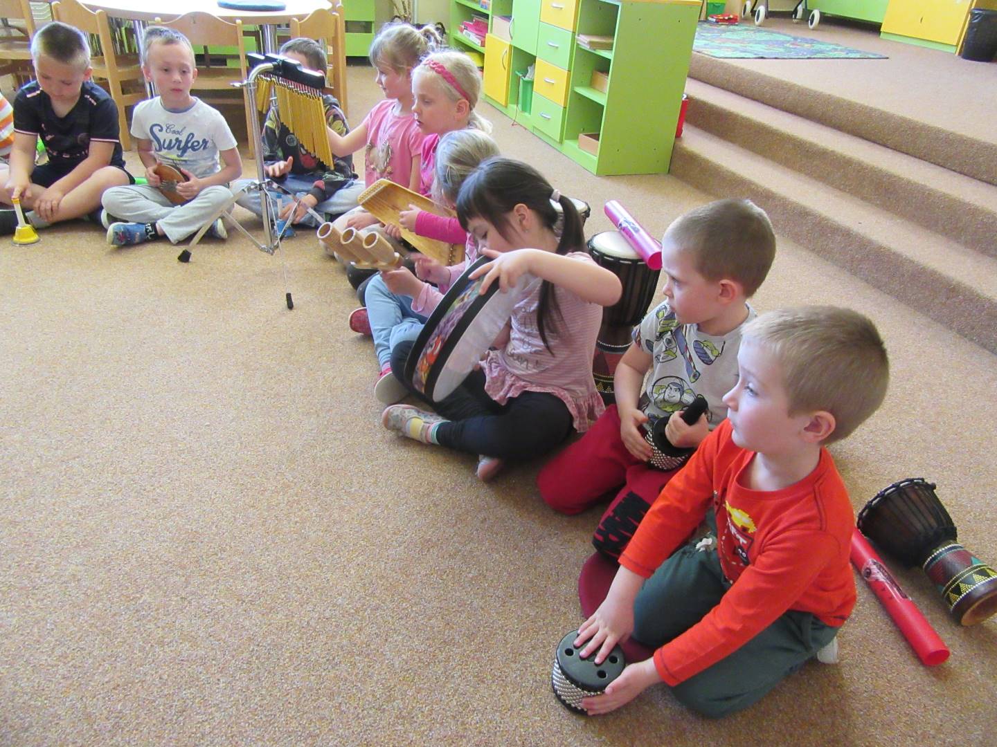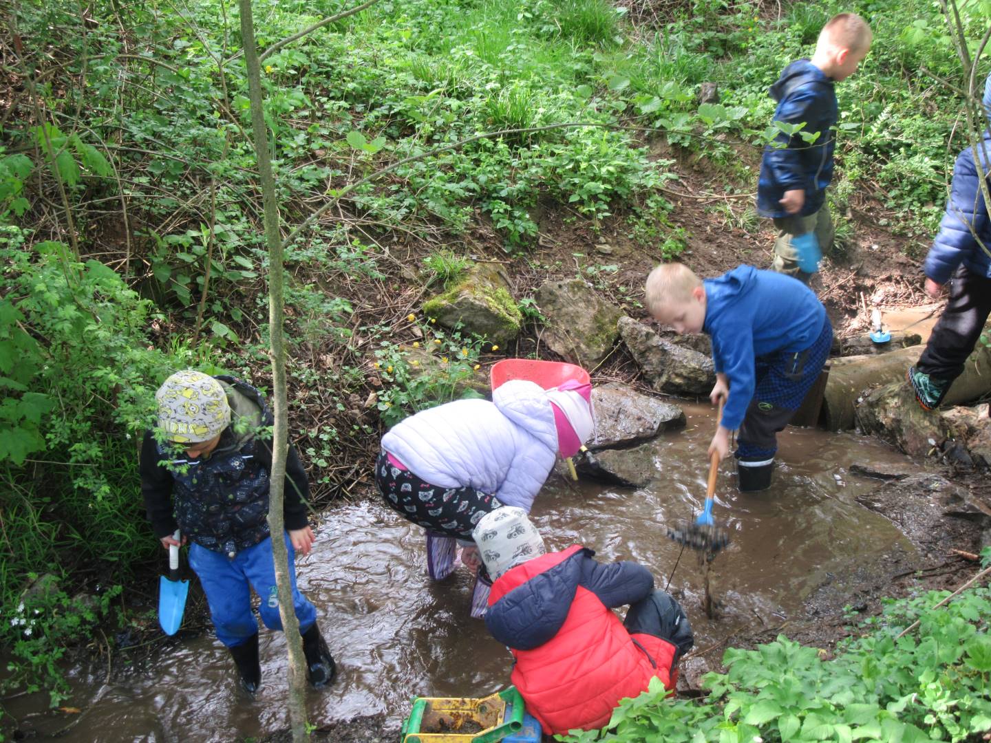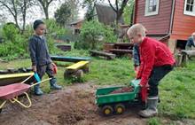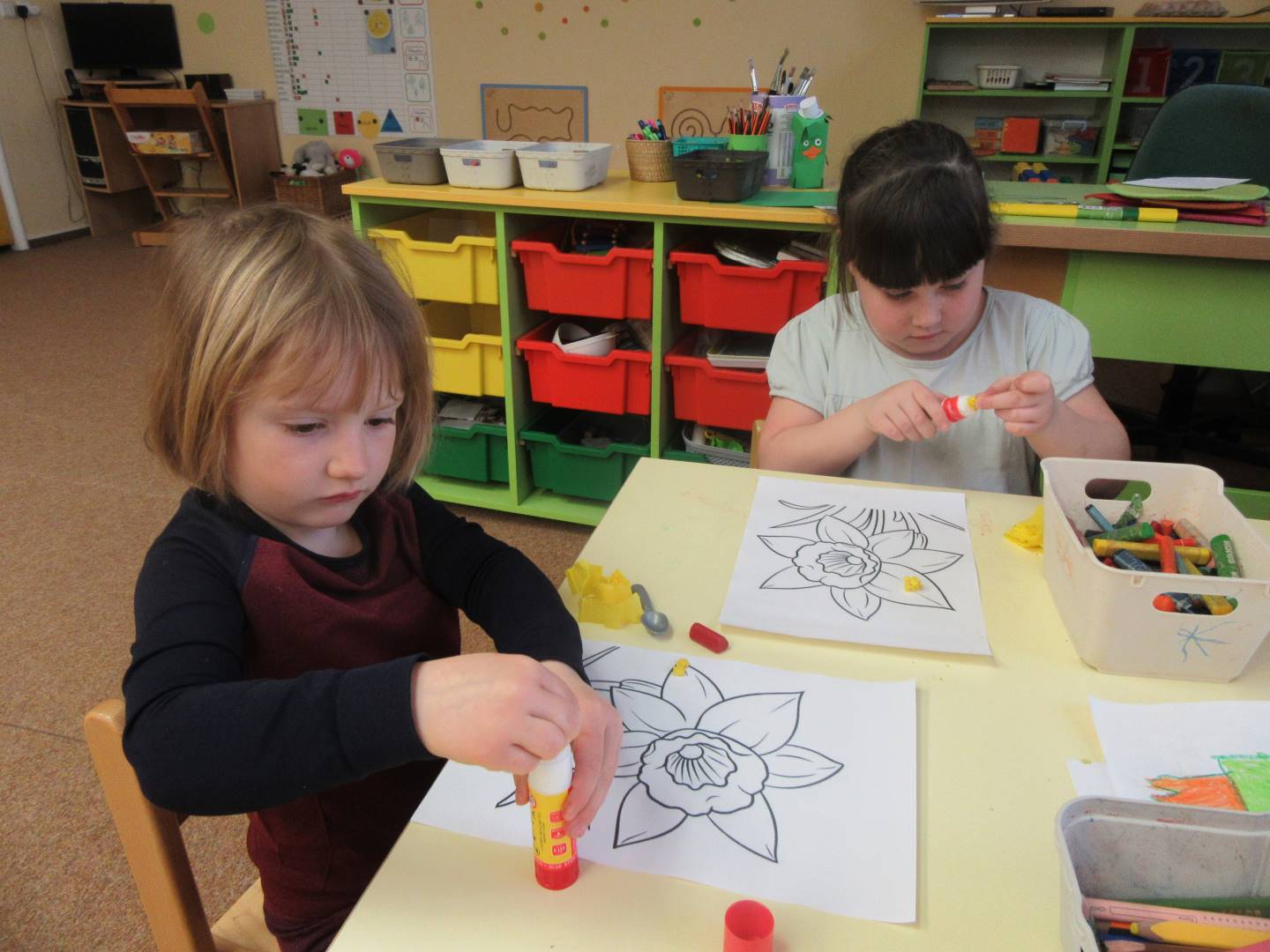 Duben 2024 - jaro, projektový den Fyzika, dopravní prostředky, zdobení týpí a úklid dřeva u maringotky, muzikodrama, slavíme čarodějnice
