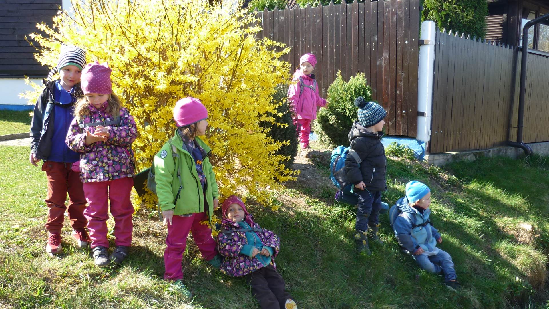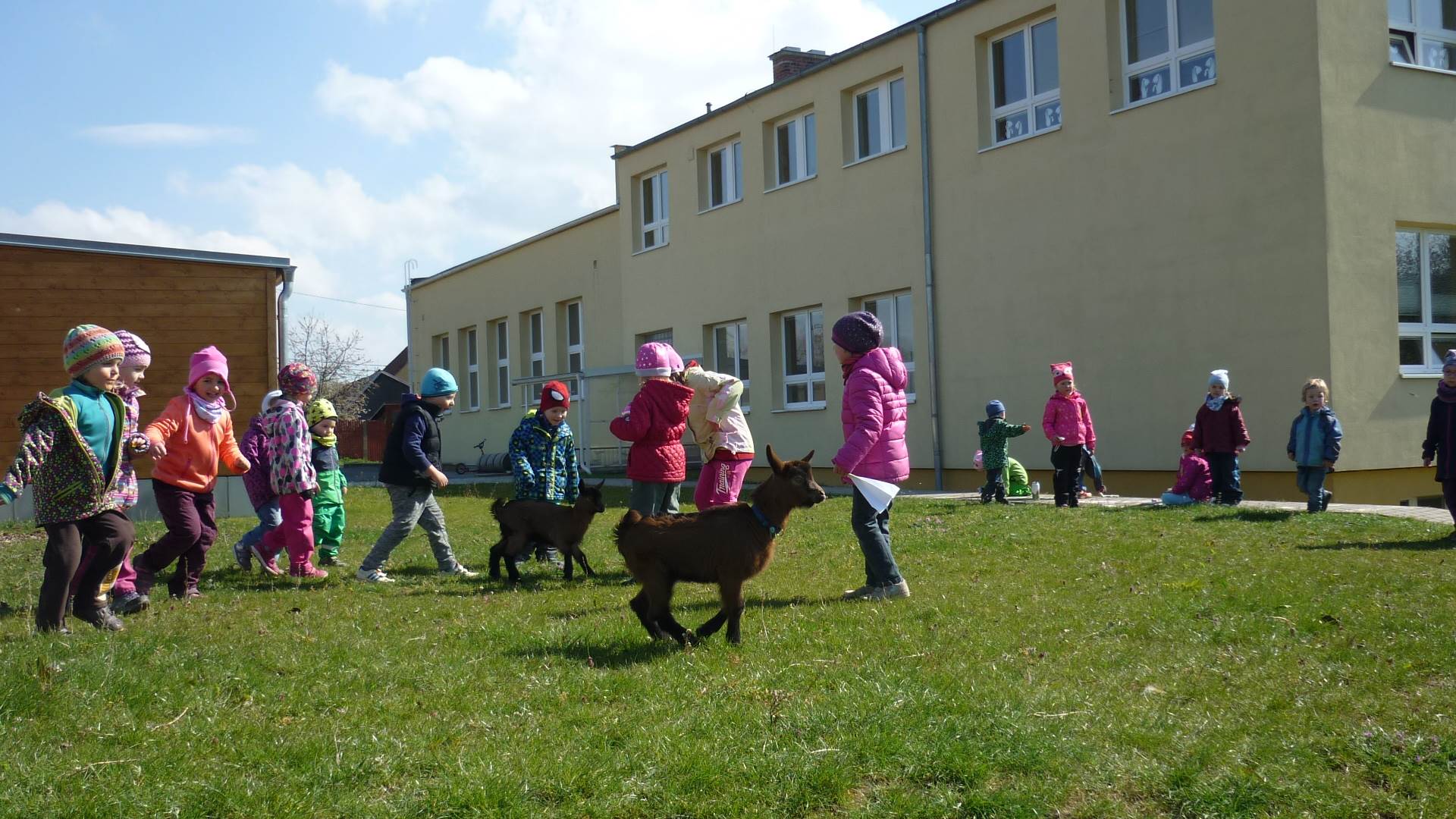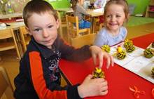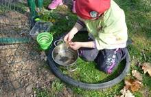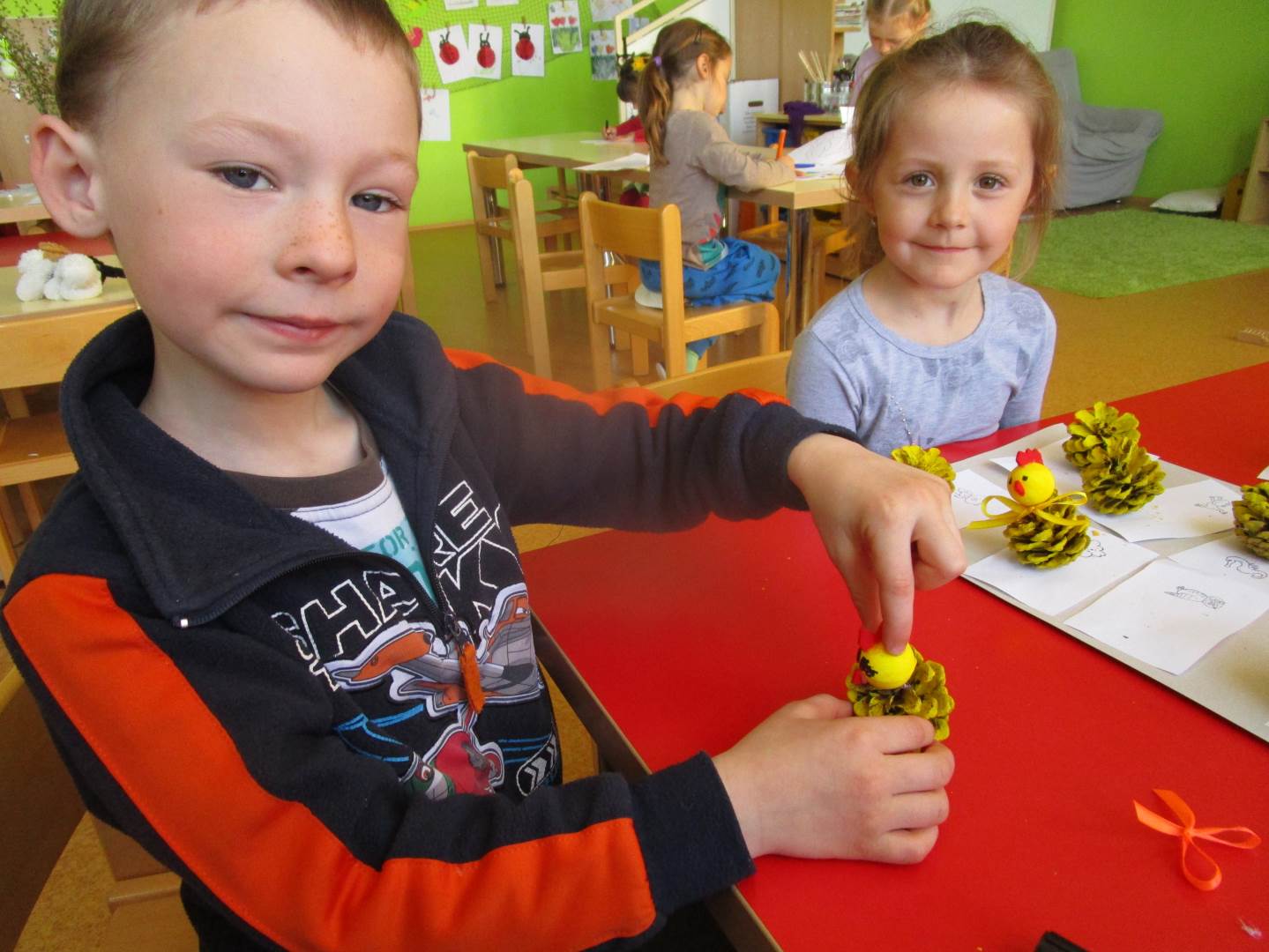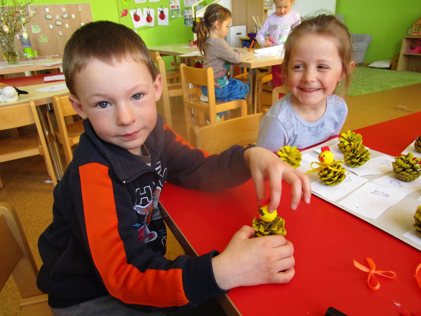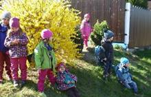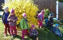 Tento krátký týden se připravujeme na Velikonoce. Ráno nás čeká rozcvička na odrážedlech, a pak už vyrážíme k maringotce. "Vaříme", malujeme kraslice, píšeme prstem do mouky, vytváříme obrazy z přírodnin a užíváme si vody a sluníčka. A to oba dva dny. Ve středu nám paní Mainerová přivezla na školní zahradu ukázat jejich kůzlátka a vyrobili jsme si krásná šišková kuřátka. Velikonoce tak mohou začít!