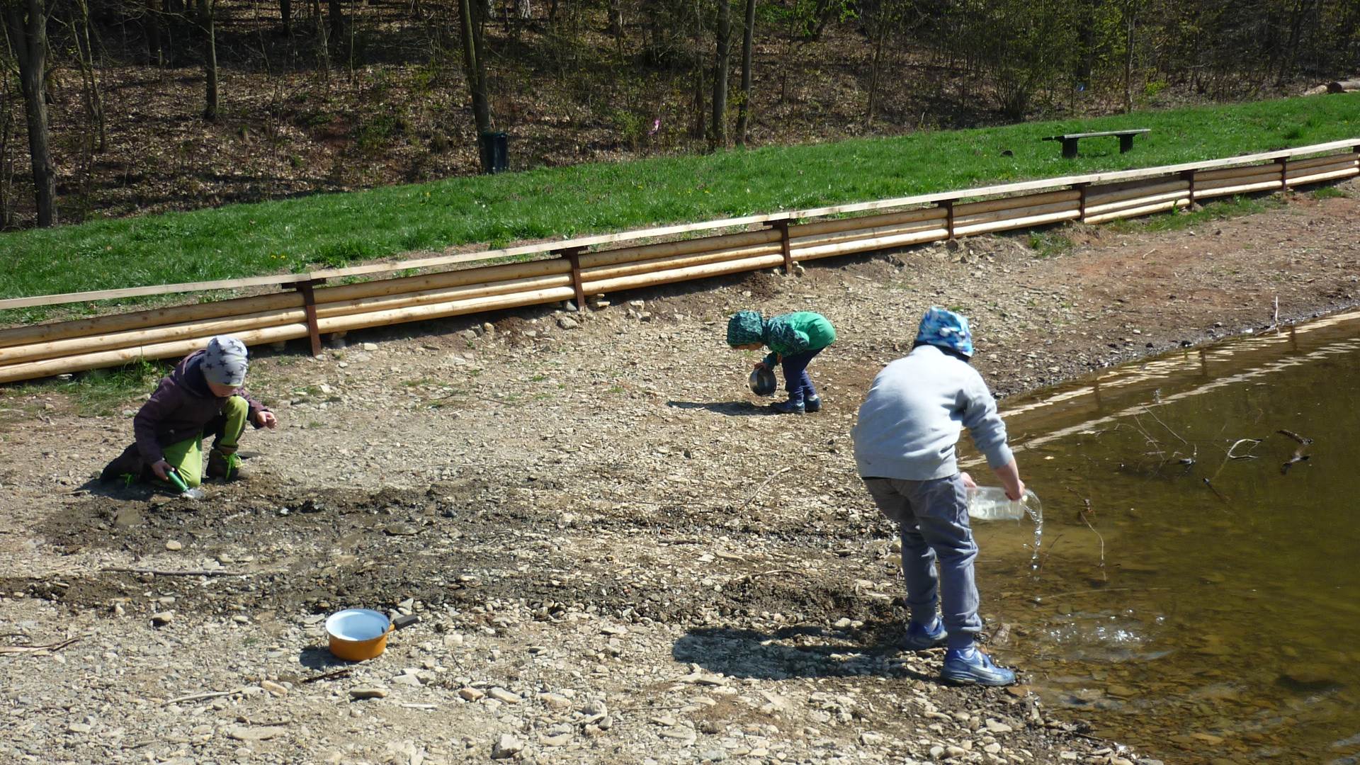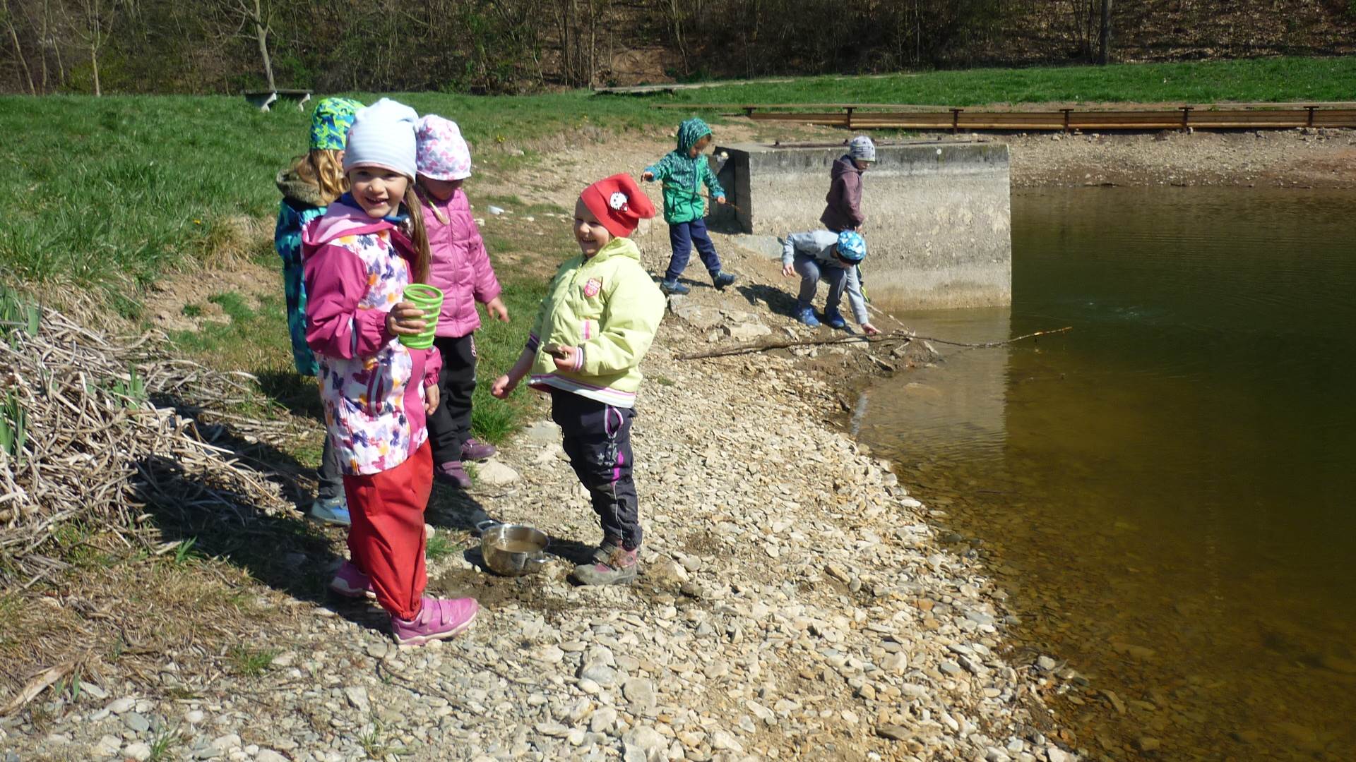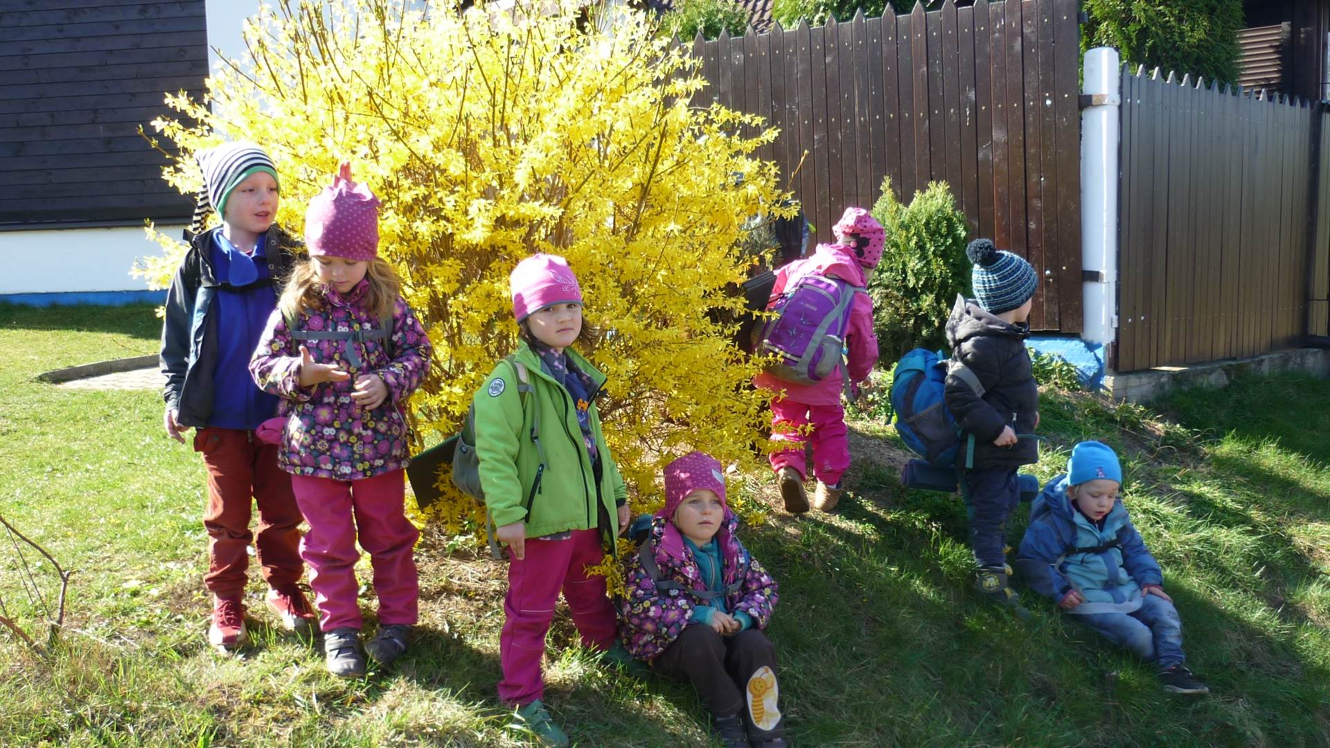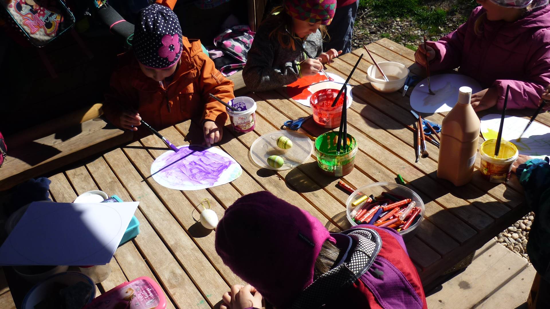 Tento krátký týden se připravujeme na Velikonoce. Ráno nás čeká rozcvička na odrážedlech, a pak už vyrážíme k maringotce. "Vaříme", malujeme kraslice, píšeme prstem do mouky, vytváříme obrazy z přírodnin a užíváme si vody a sluníčka. A to oba dva dny. Ve středu nám paní Mainerová přivezla na školní zahradu ukázat jejich kůzlátka a vyrobili jsme si krásná šišková kuřátka. Velikonoce tak mohou začít!