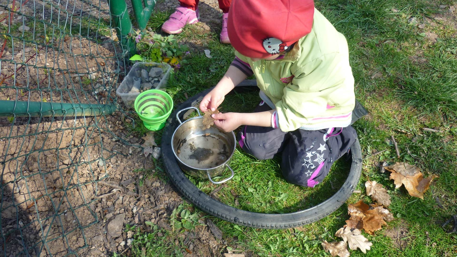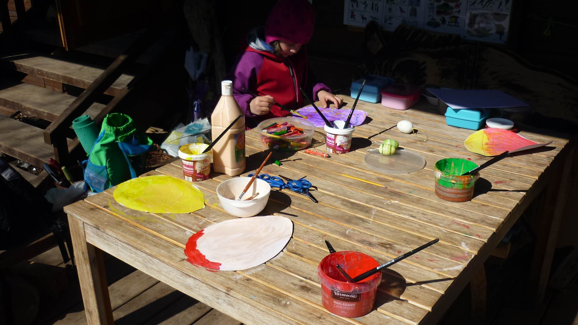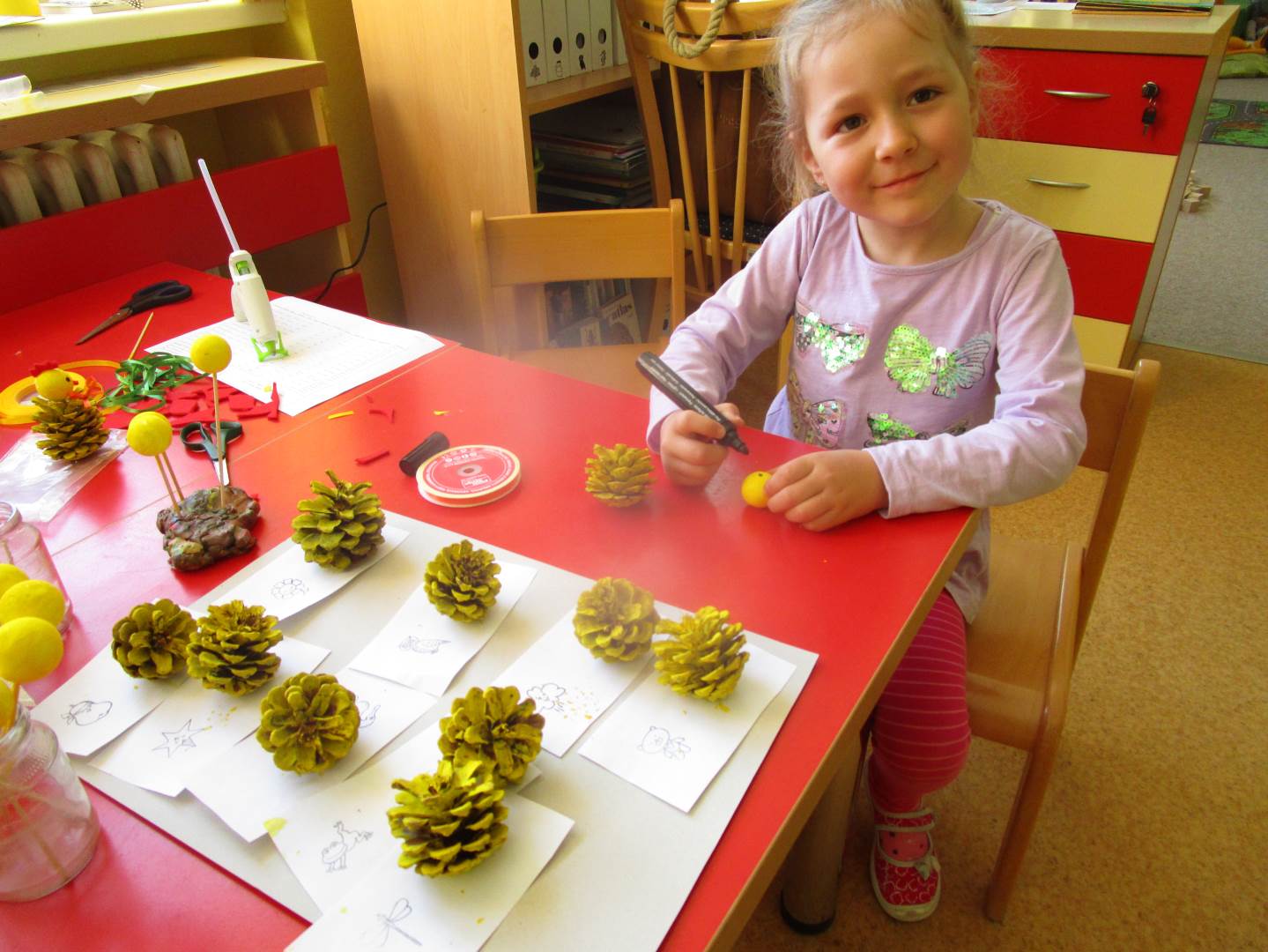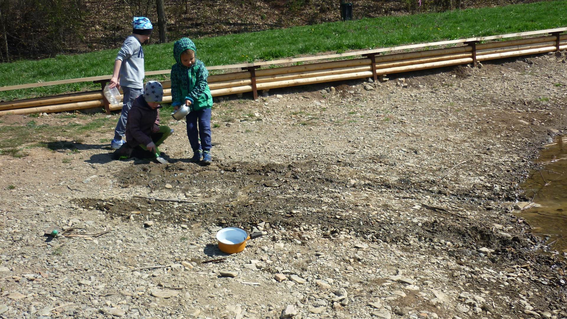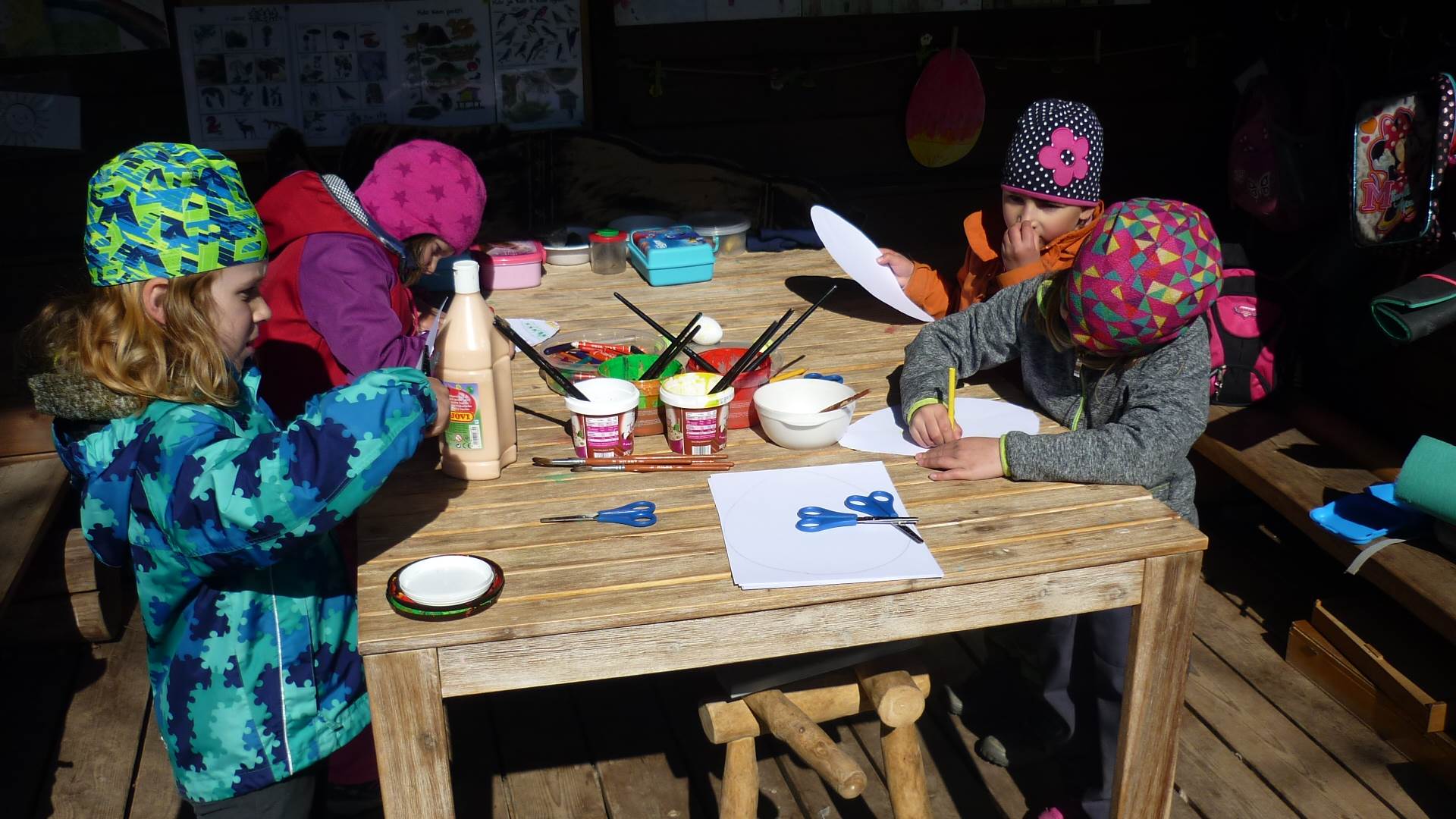 Tento krátký týden se připravujeme na Velikonoce. Ráno nás čeká rozcvička na odrážedlech, a pak už vyrážíme k maringotce. "Vaříme", malujeme kraslice, píšeme prstem do mouky, vytváříme obrazy z přírodnin a užíváme si vody a sluníčka. A to oba dva dny. Ve středu nám paní Mainerová přivezla na školní zahradu ukázat jejich kůzlátka a vyrobili jsme si krásná šišková kuřátka. Velikonoce tak mohou začít!