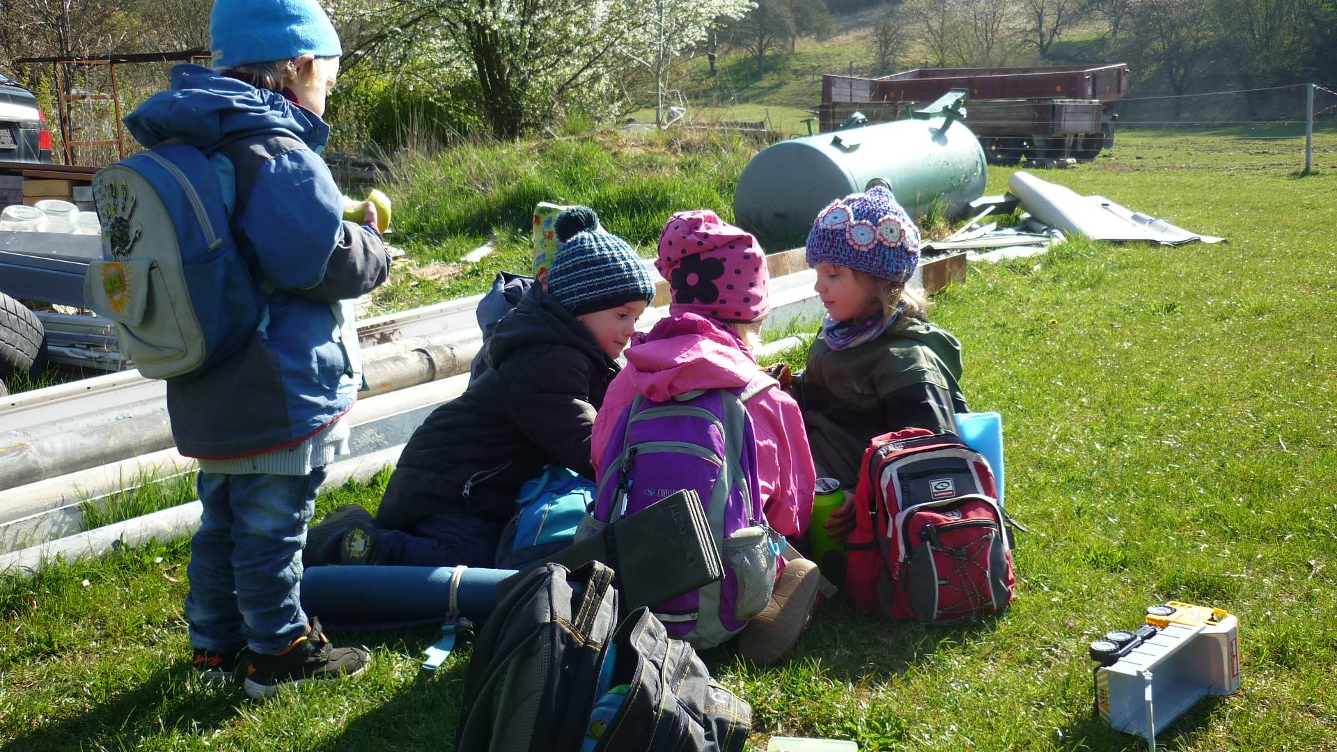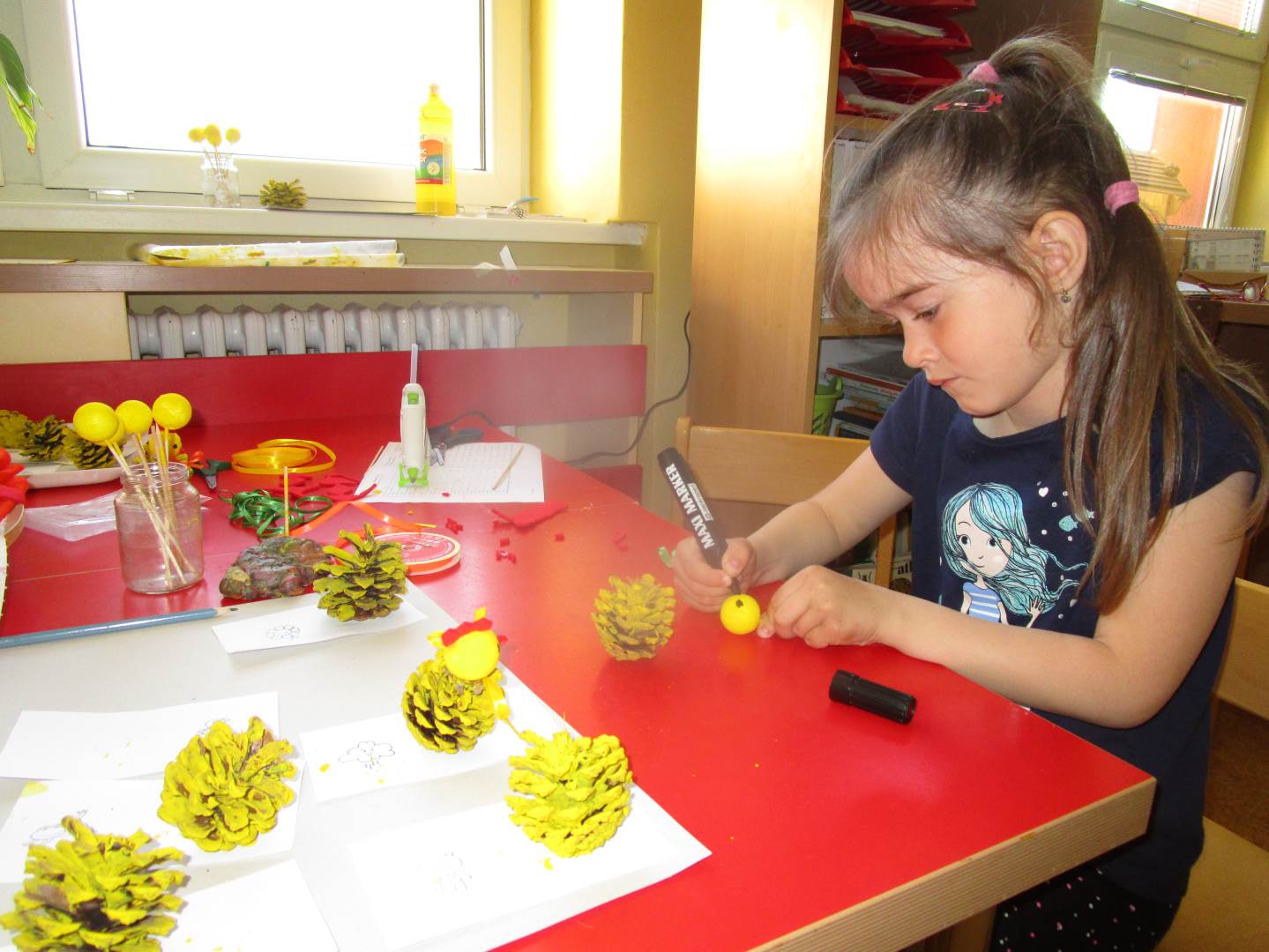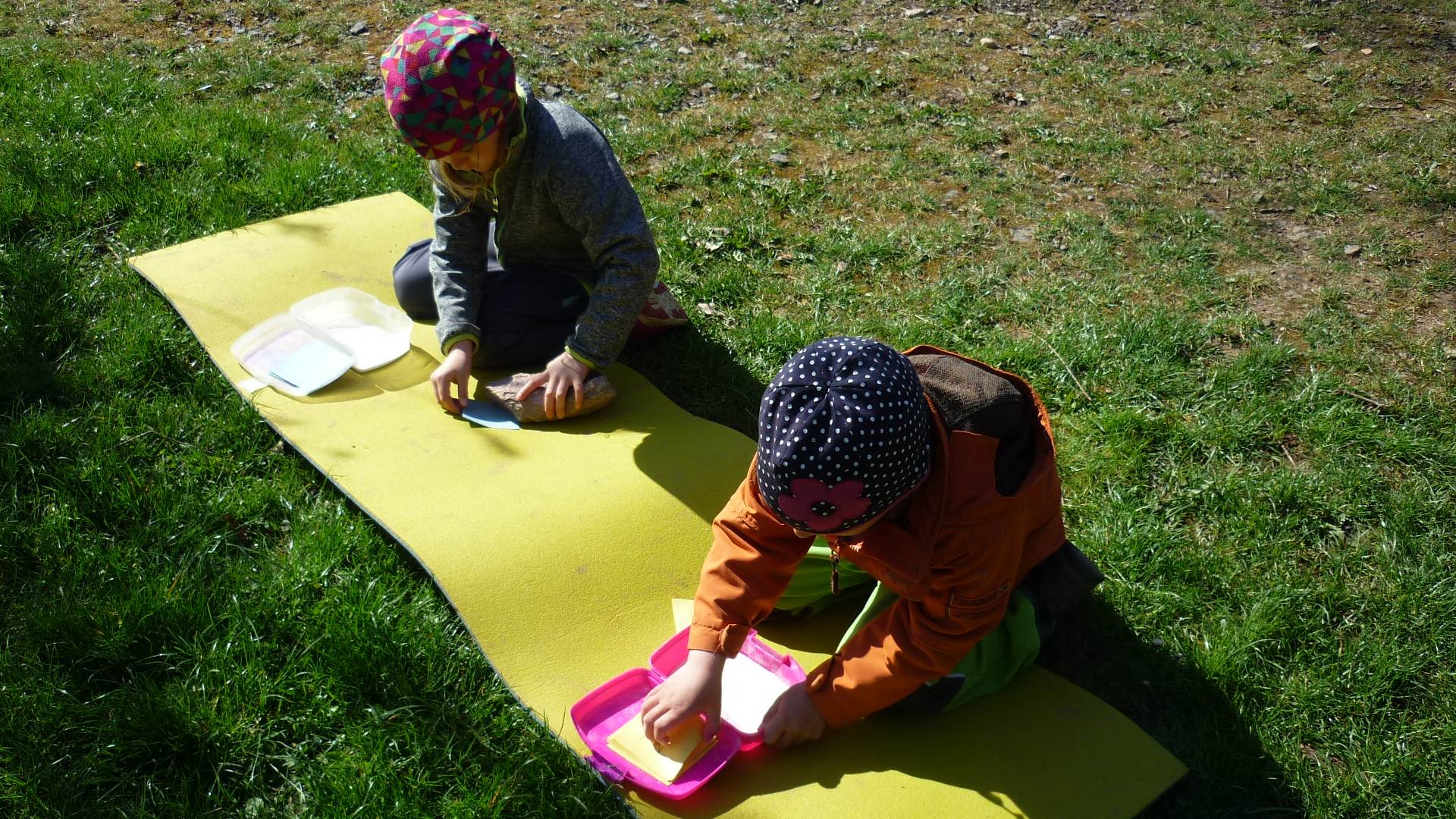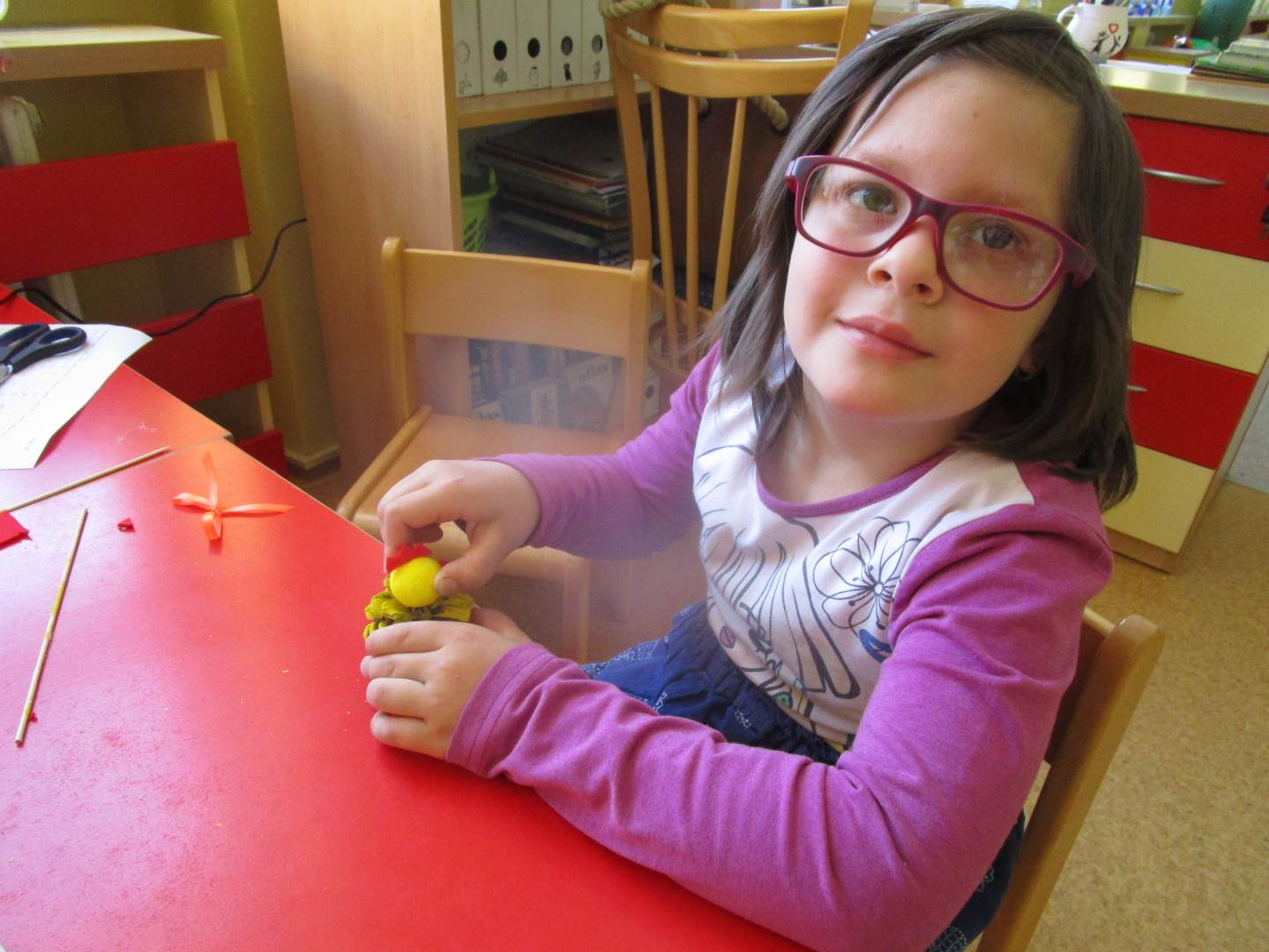 Tento krátký týden se připravujeme na Velikonoce. Ráno nás čeká rozcvička na odrážedlech, a pak už vyrážíme k maringotce. "Vaříme", malujeme kraslice, píšeme prstem do mouky, vytváříme obrazy z přírodnin a užíváme si vody a sluníčka. A to oba dva dny. Ve středu nám paní Mainerová přivezla na školní zahradu ukázat jejich kůzlátka a vyrobili jsme si krásná šišková kuřátka. Velikonoce tak mohou začít!