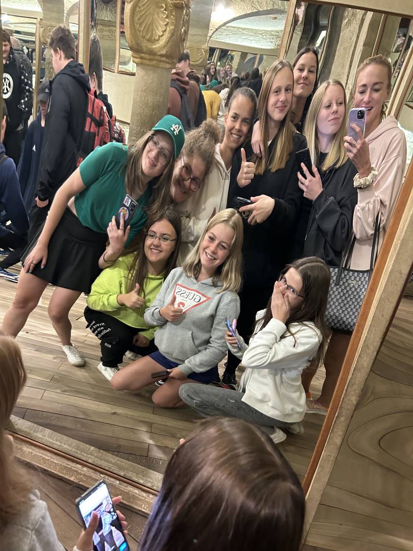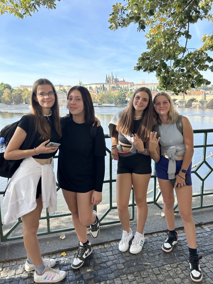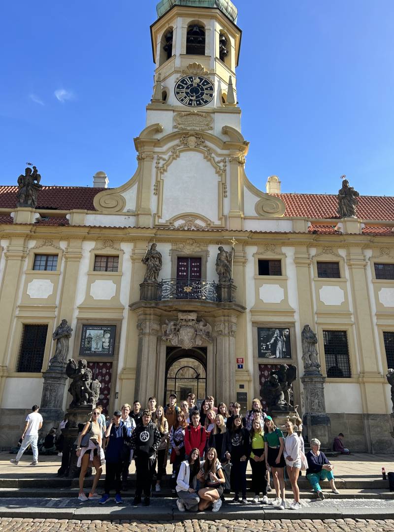 Ve dnech 2. 10. – 3. 10. 2023 se uskutečnila dvoudenní exkurze žáků 9. ročníku do našeho hlavního města Prahy. Vyjížděli jsme již v brzkých ranních hodinách, abychom stihli navštívit co nejvíce památek. Hned po příjezdu do Prahy jsme zamířili na Petřín, kde jsme si nemohli nechat ujít výhled na celou Prahu z Petřínské rozhledny, která se tyčí ve výšce téměř 60 metrů. Mnozí z nás také navštívili Zrcadlové bludiště, na jehož konci se nachází tzv. Síň smíchu, kde jsme se díky pokrouceným zrcadlům proměnili v trpaslíky, otesánky či dlouhá bidla. Z Petřína vedly naše další kroky přímo k Pražskému hradu. Měli jsme štěstí, neboť jsme právě zastihli střídání stráží. Na Pražském hradě jsme absolvovali tzv. Malý okruh, jehož součástí je prohlídka Starého královského paláce, Katedrály sv. Víta či procházka Zlatou uličkou. Odpoledne jsme měli na programu komentovanou prohlídku Národního divadla, díky níž jsme se dozvěděli spoustu zajímavostí nejen o historii divadla, ale také o významných osobnostech, které zde působily. Po celodenním chození jsme kolem 17. hodiny dorazili příjemně unaveni na Smíchov, zde jsme se ubytovali v penzionu a načerpali síly na další den.