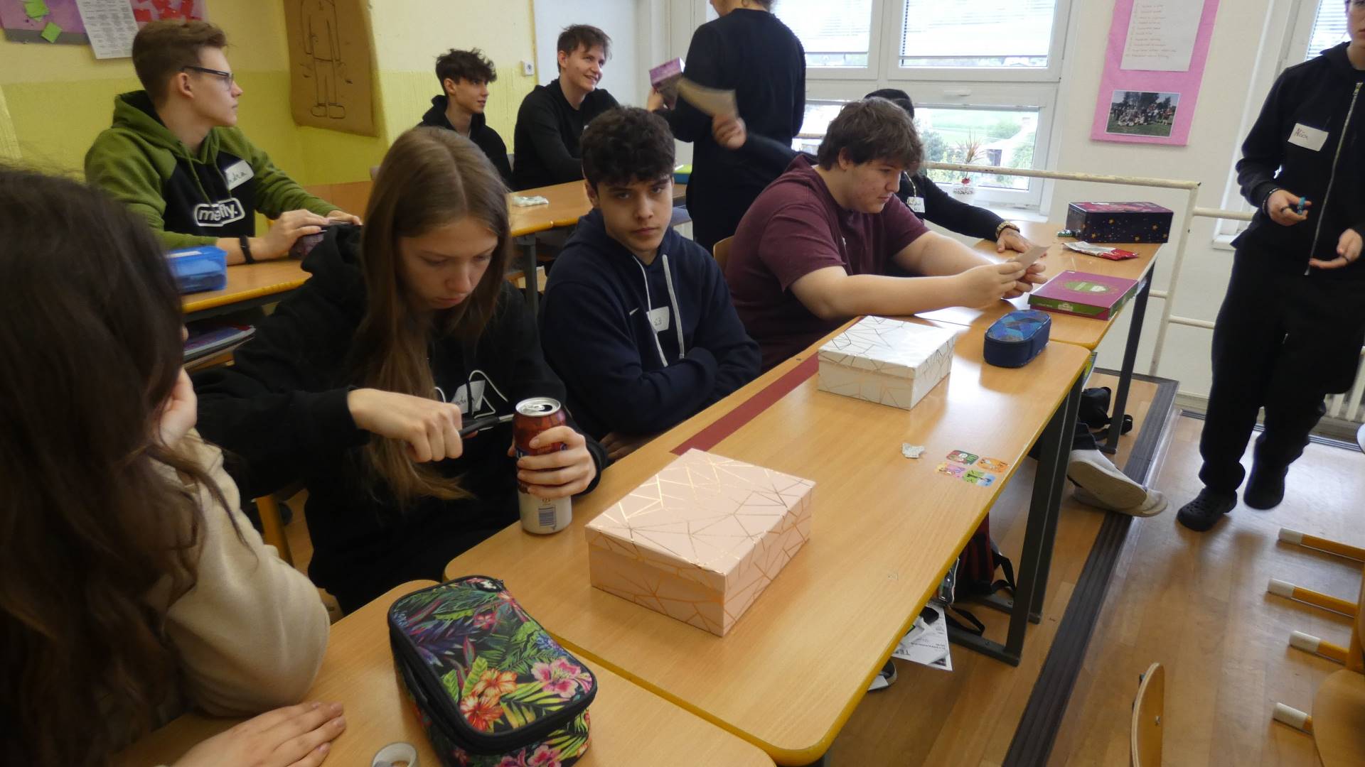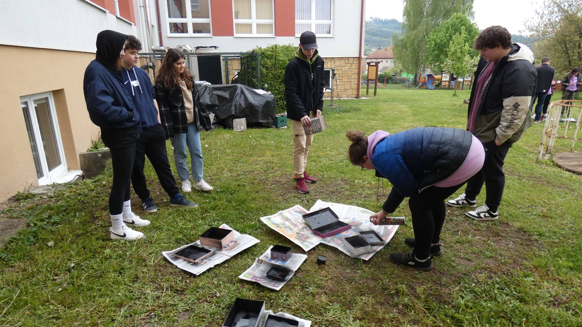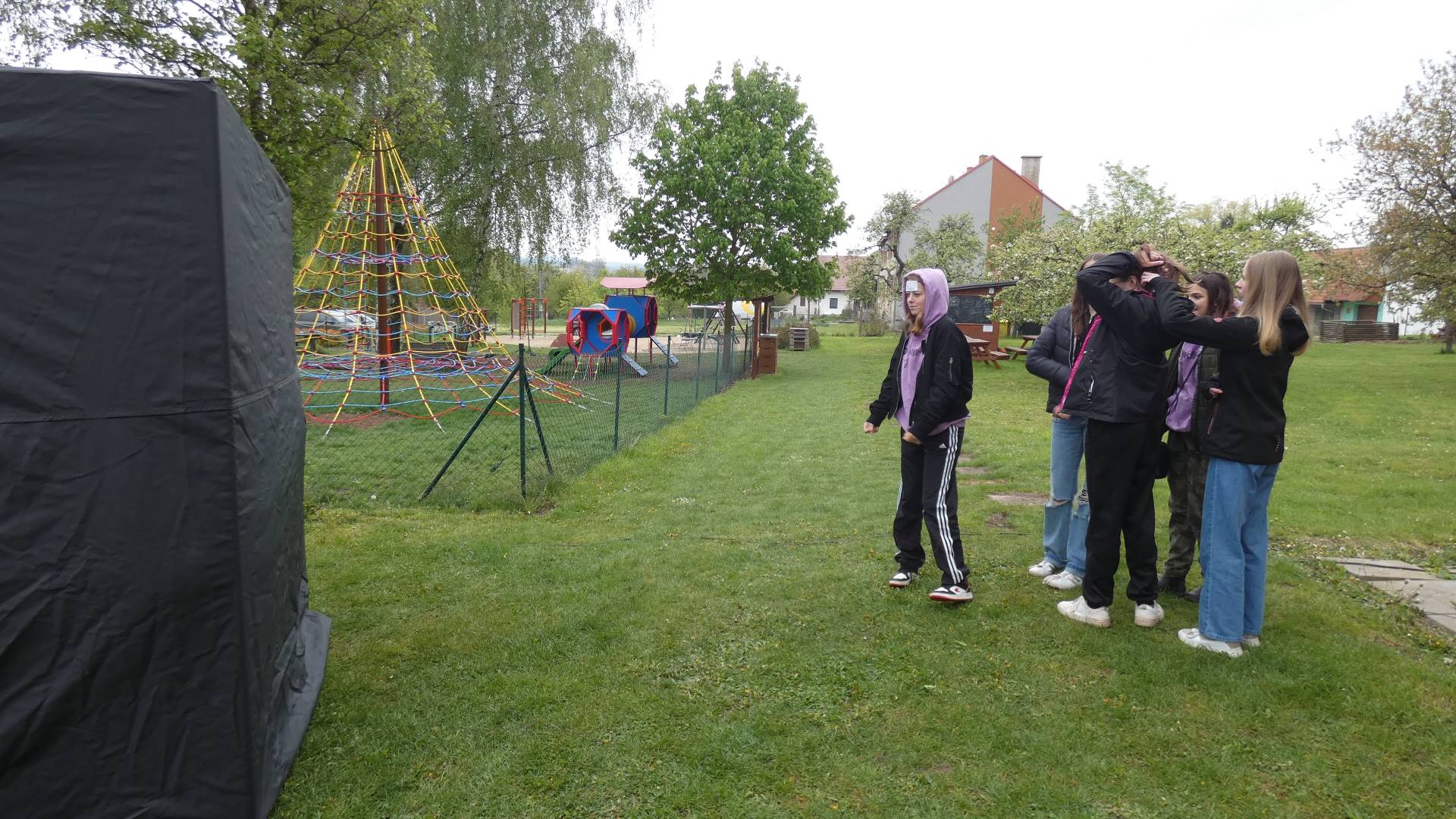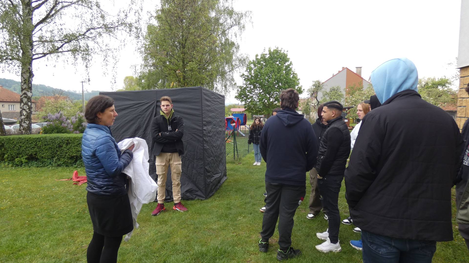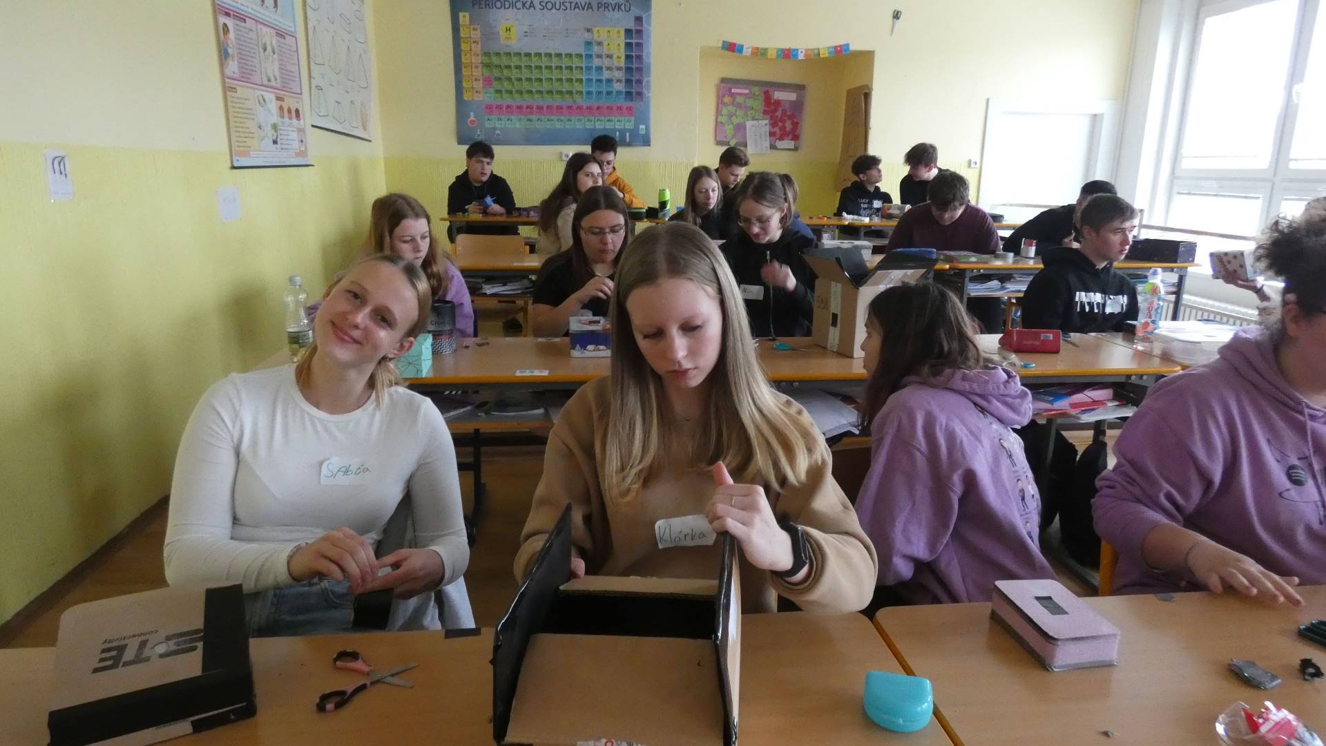 Ve středu 24. dubna si mohli naši žáci deváté třídy pod vedením profesionální fotografky paní Gabriely Sauer Kolčavové vyzkoušet, jak funguje fotoaparát a jak si vyrobit fotografii pomocí krabičky. Spojili si znalosti z fyziky a chemie s dovednostmi z dílen. Nejen že se podívali do obřího fotoaparátu, ale také si z přinesených krabiček vlastnoručně vyrobili funkční fotoaparát. Fotografie si i vlastnoručně vyvolali v provizorní temné komoře. Všichni si odnesli nejen svoje fotografie, ale především spoustu skvělých zážitků a nových informací.