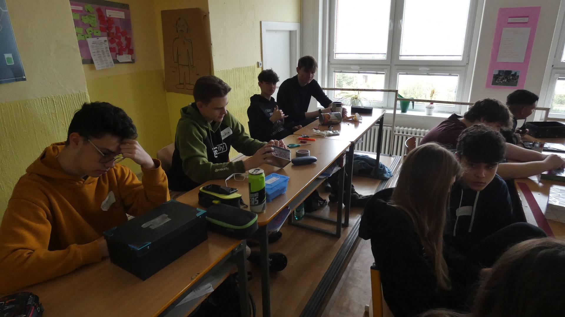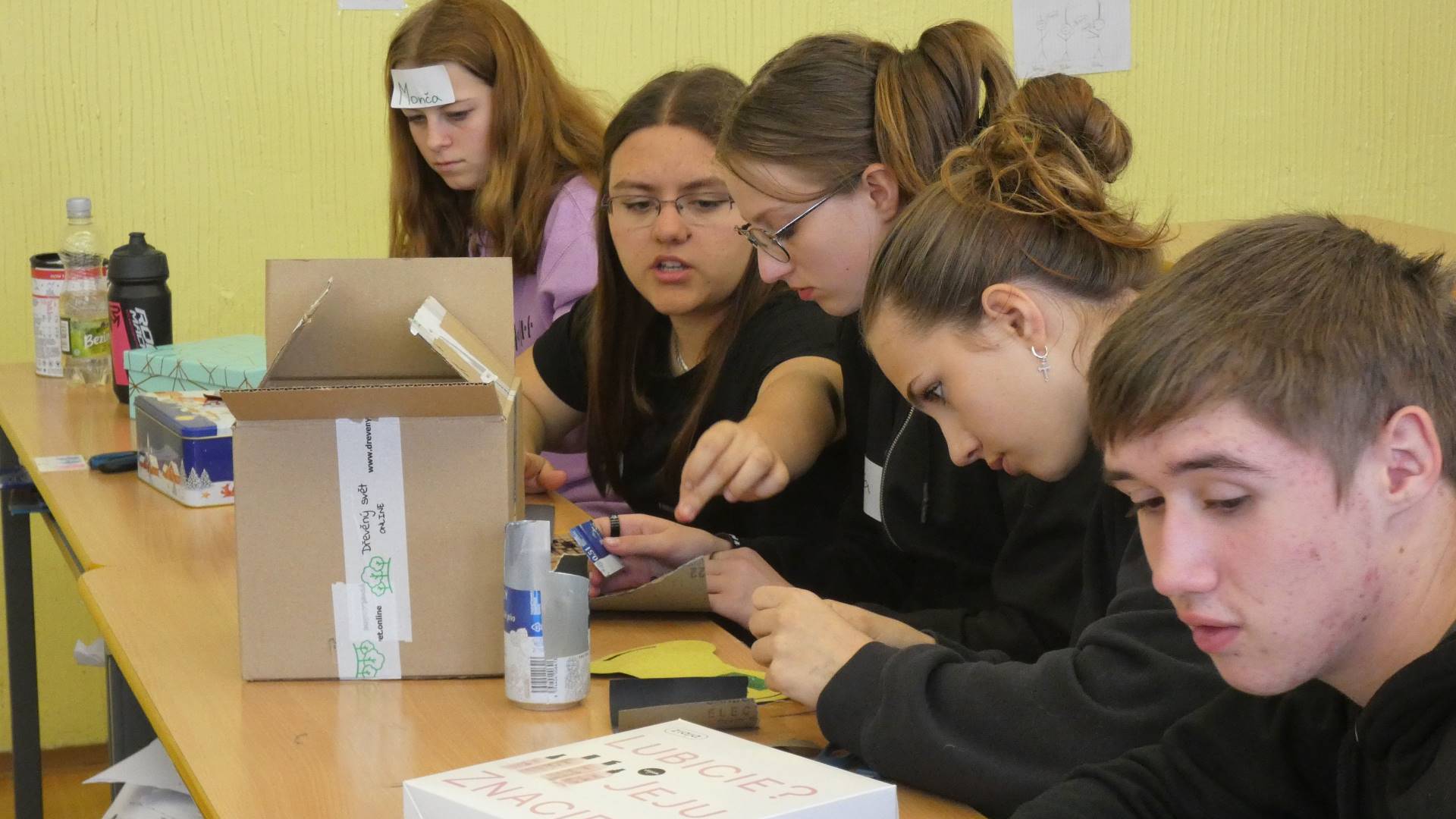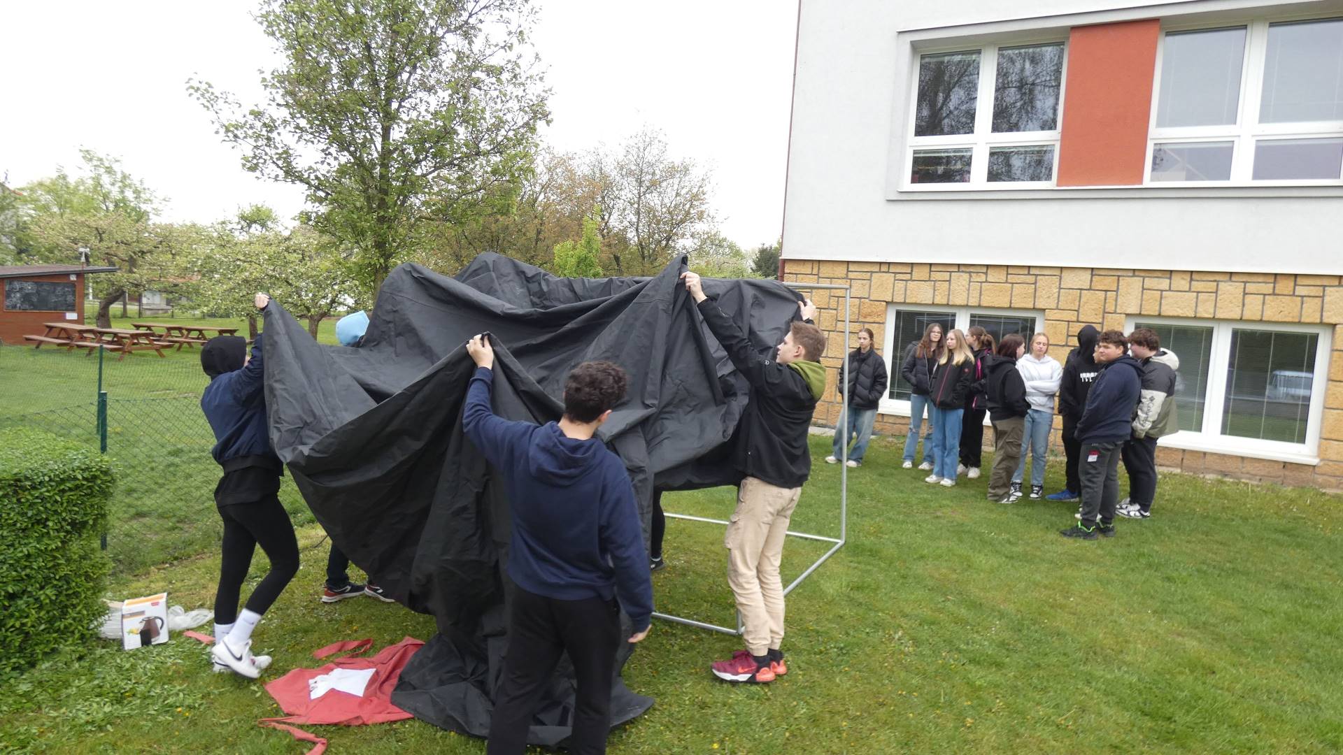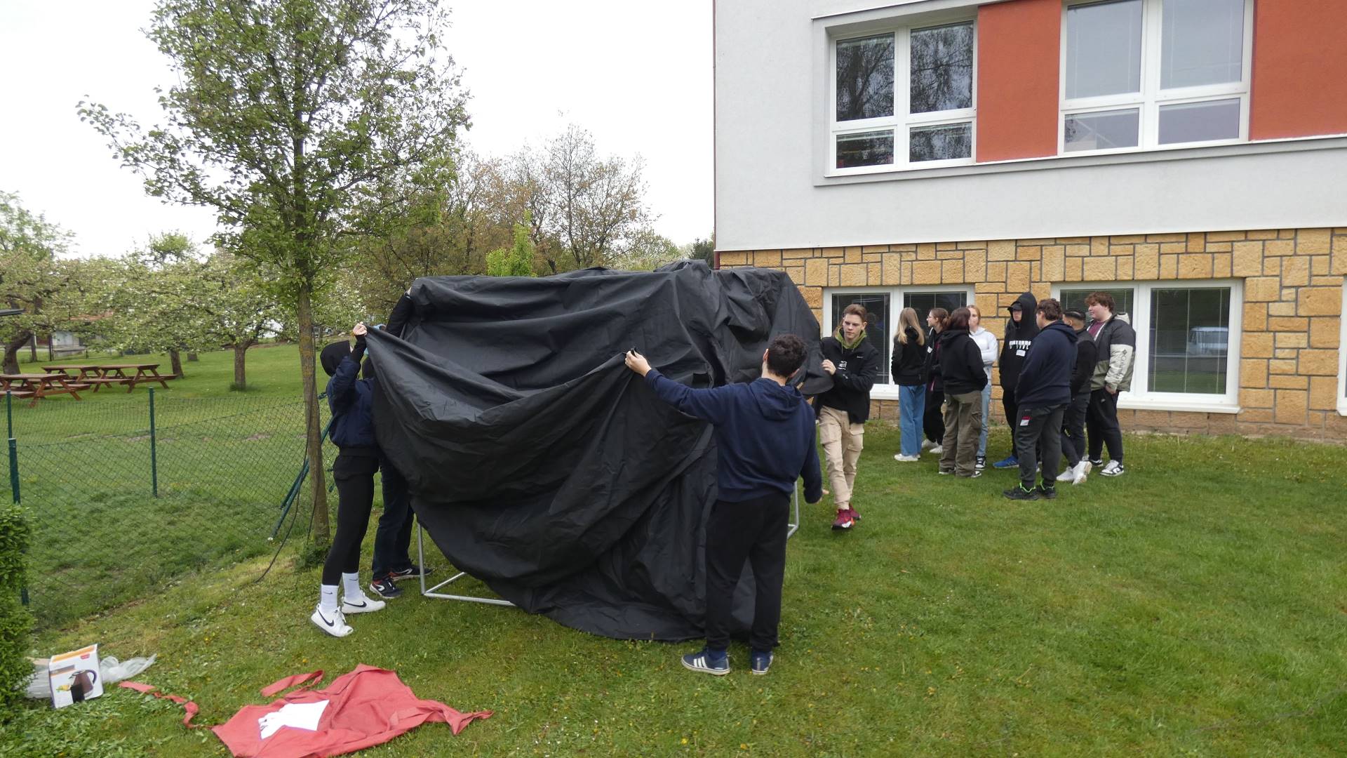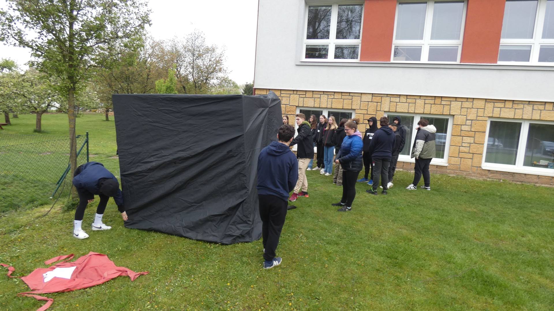 Ve středu 24. dubna si mohli naši žáci deváté třídy pod vedením profesionální fotografky paní Gabriely Sauer Kolčavové vyzkoušet, jak funguje fotoaparát a jak si vyrobit fotografii pomocí krabičky. Spojili si znalosti z fyziky a chemie s dovednostmi z dílen. Nejen že se podívali do obřího fotoaparátu, ale také si z přinesených krabiček vlastnoručně vyrobili funkční fotoaparát. Fotografie si i vlastnoručně vyvolali v provizorní temné komoře. Všichni si odnesli nejen svoje fotografie, ale především spoustu skvělých zážitků a nových informací.