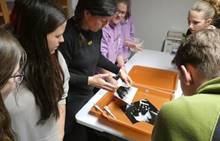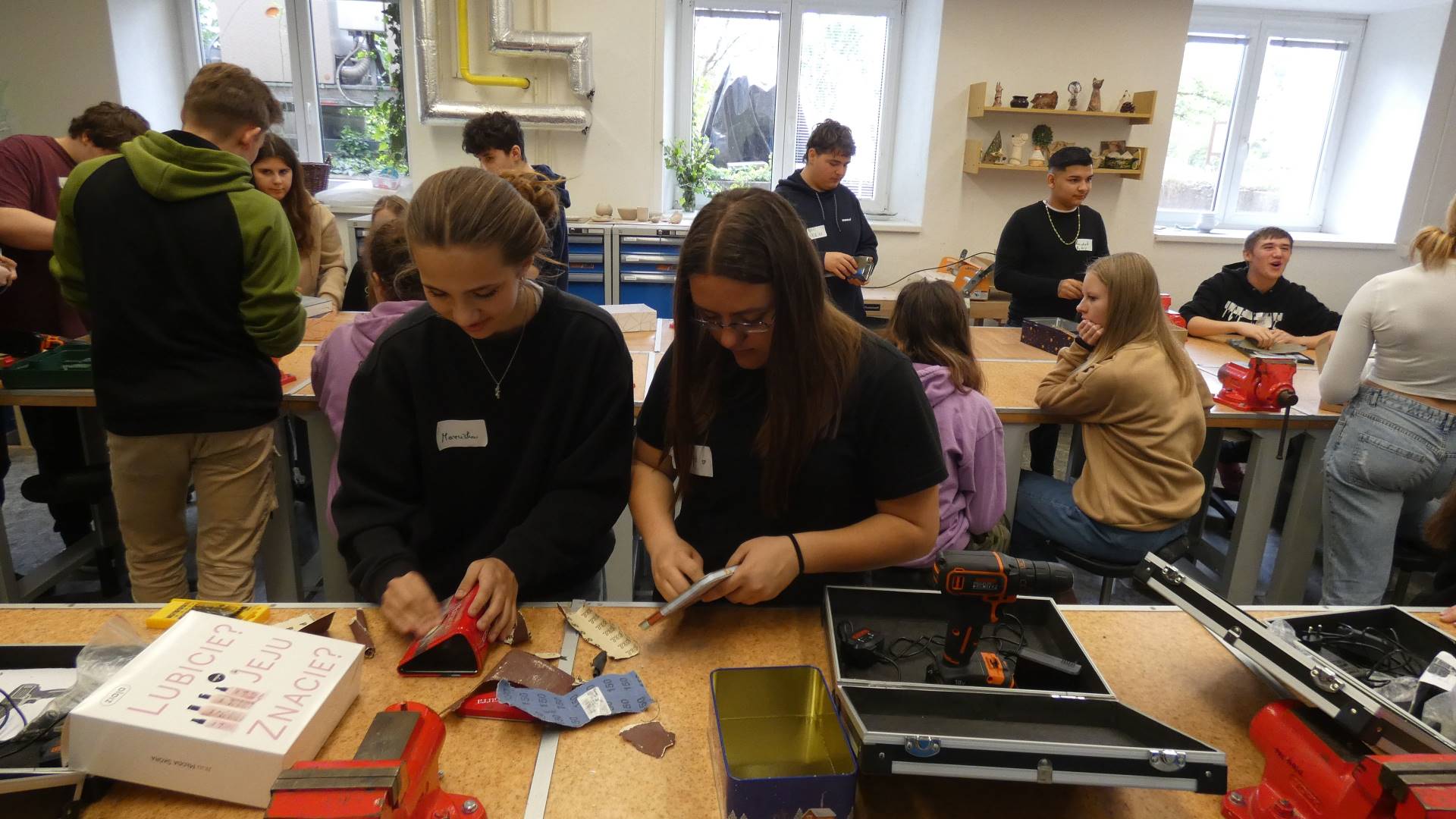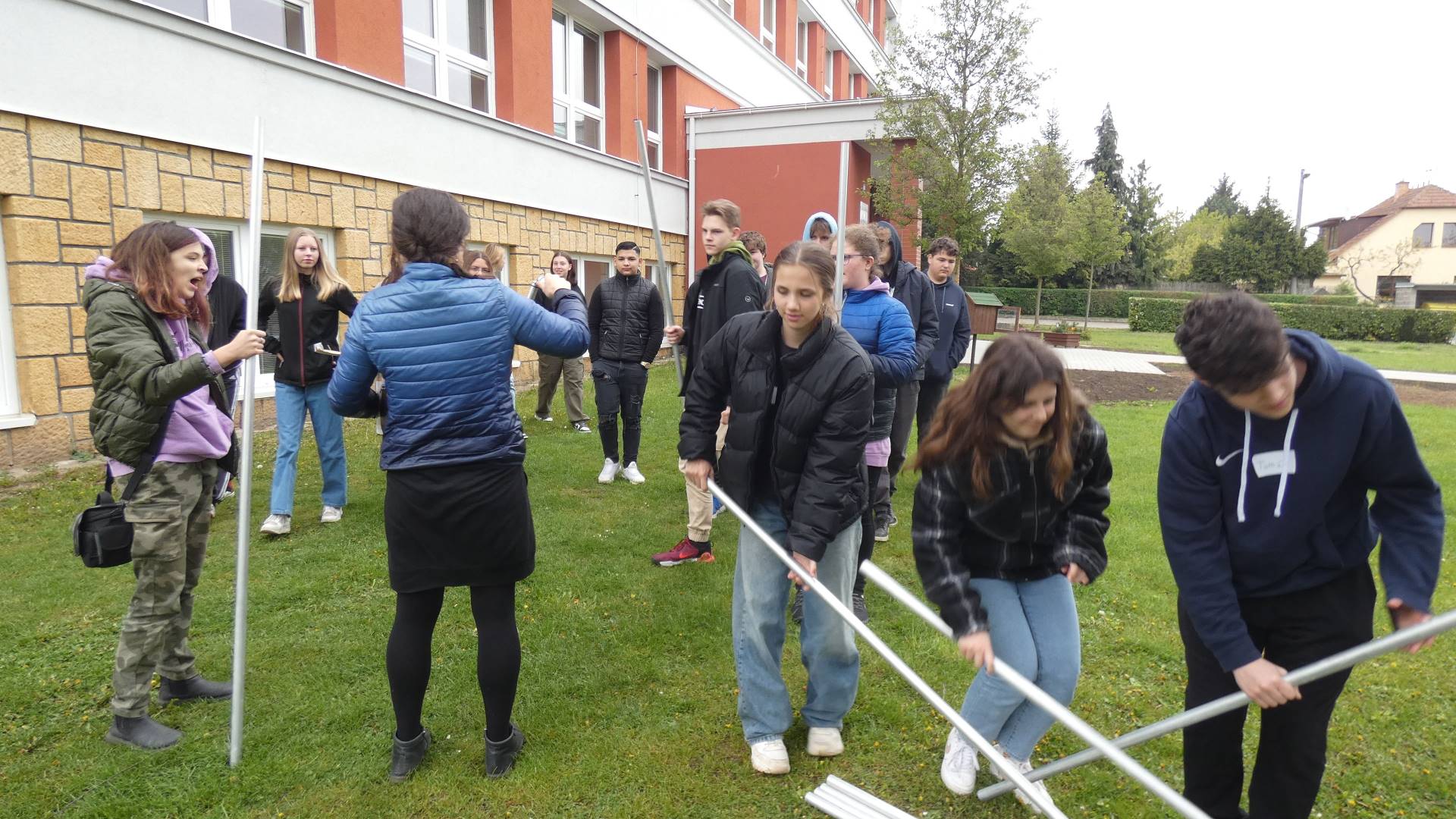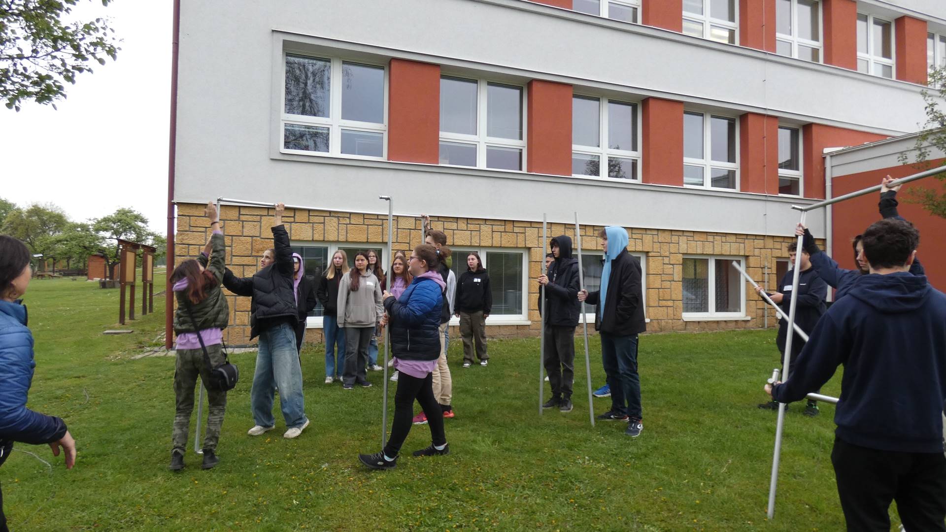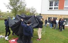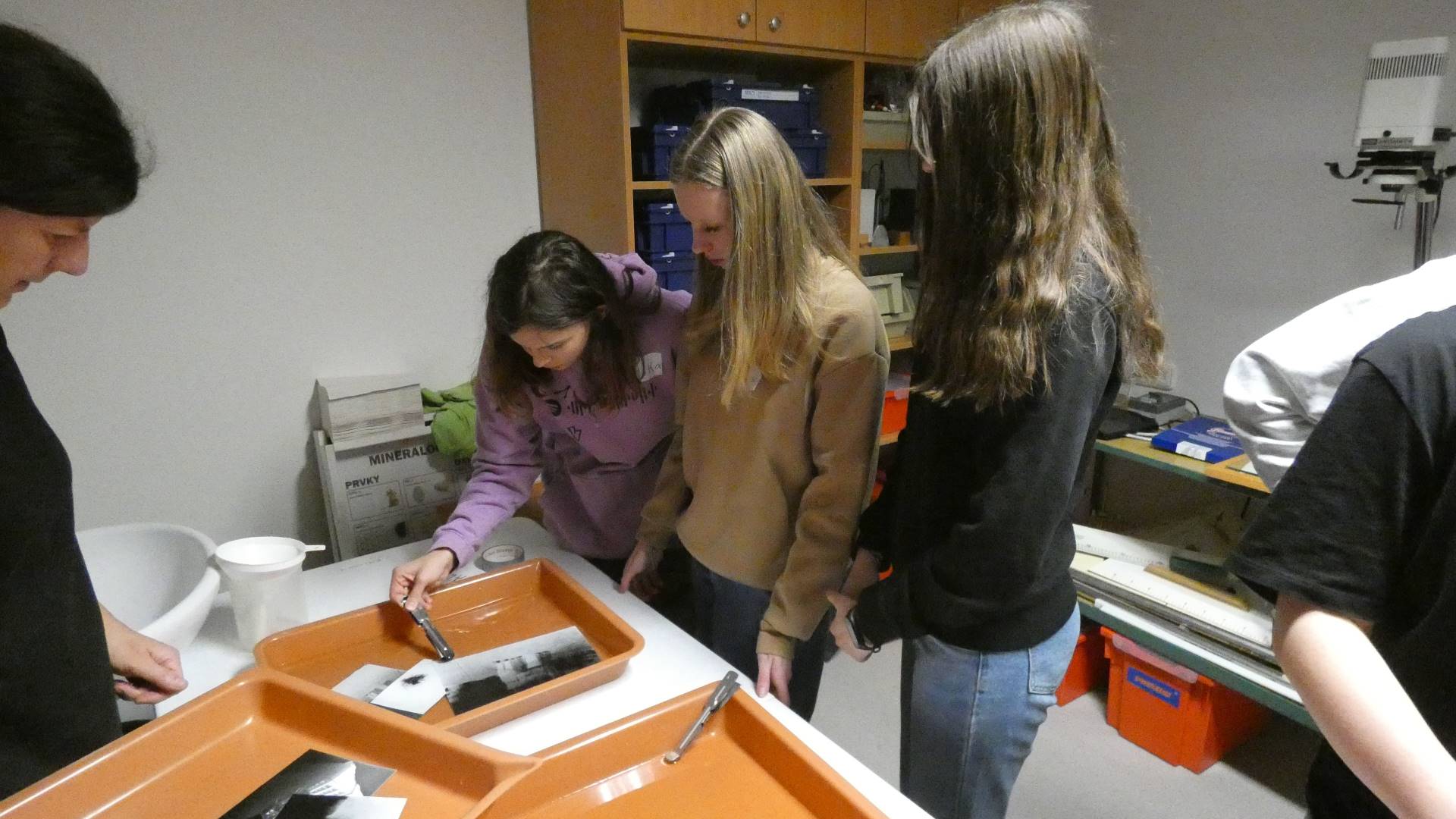 Ve středu 24. dubna si mohli naši žáci deváté třídy pod vedením profesionální fotografky paní Gabriely Sauer Kolčavové vyzkoušet, jak funguje fotoaparát a jak si vyrobit fotografii pomocí krabičky. Spojili si znalosti z fyziky a chemie s dovednostmi z dílen. Nejen že se podívali do obřího fotoaparátu, ale také si z přinesených krabiček vlastnoručně vyrobili funkční fotoaparát. Fotografie si i vlastnoručně vyvolali v provizorní temné komoře. Všichni si odnesli nejen svoje fotografie, ale především spoustu skvělých zážitků a nových informací.